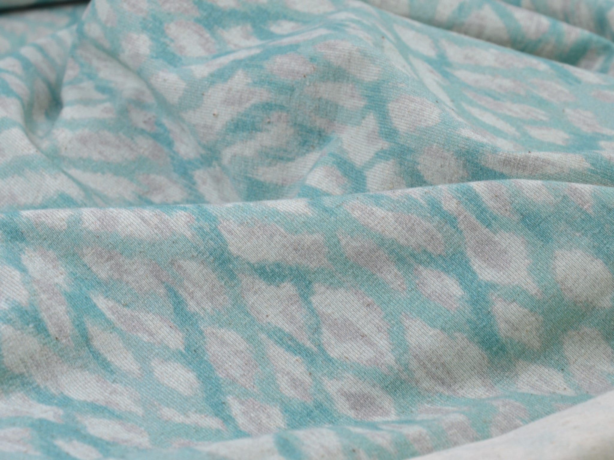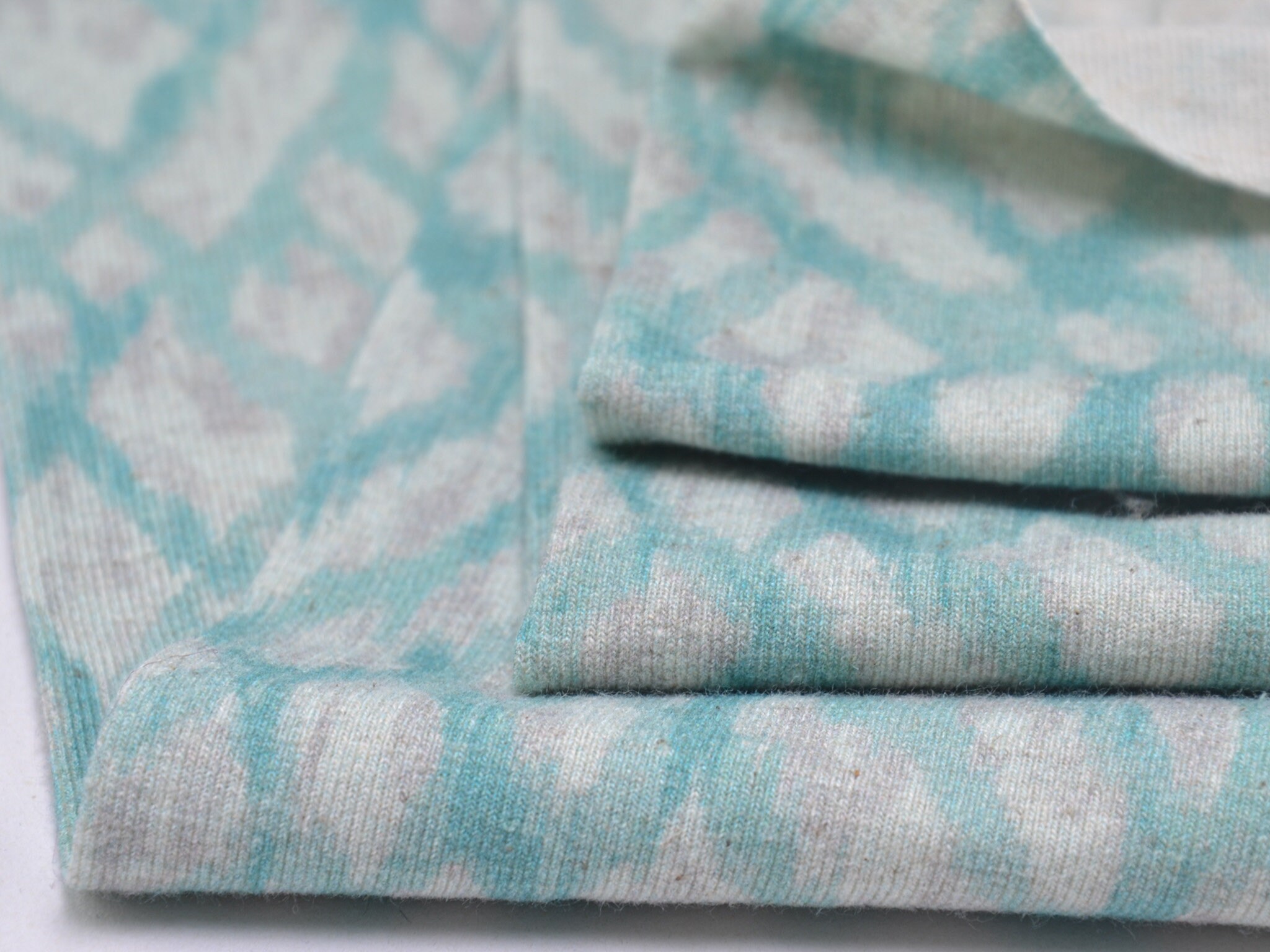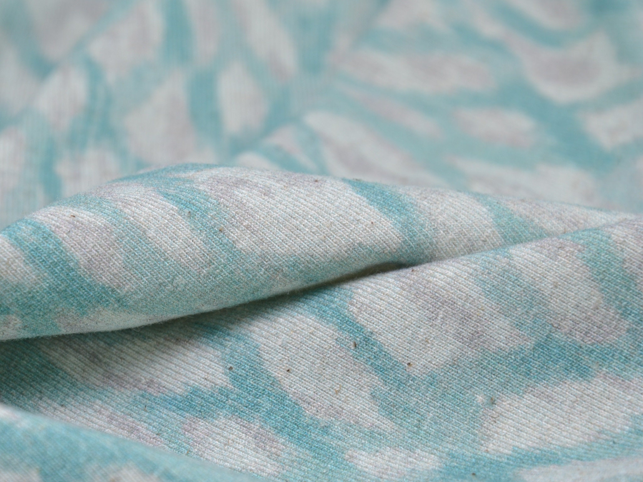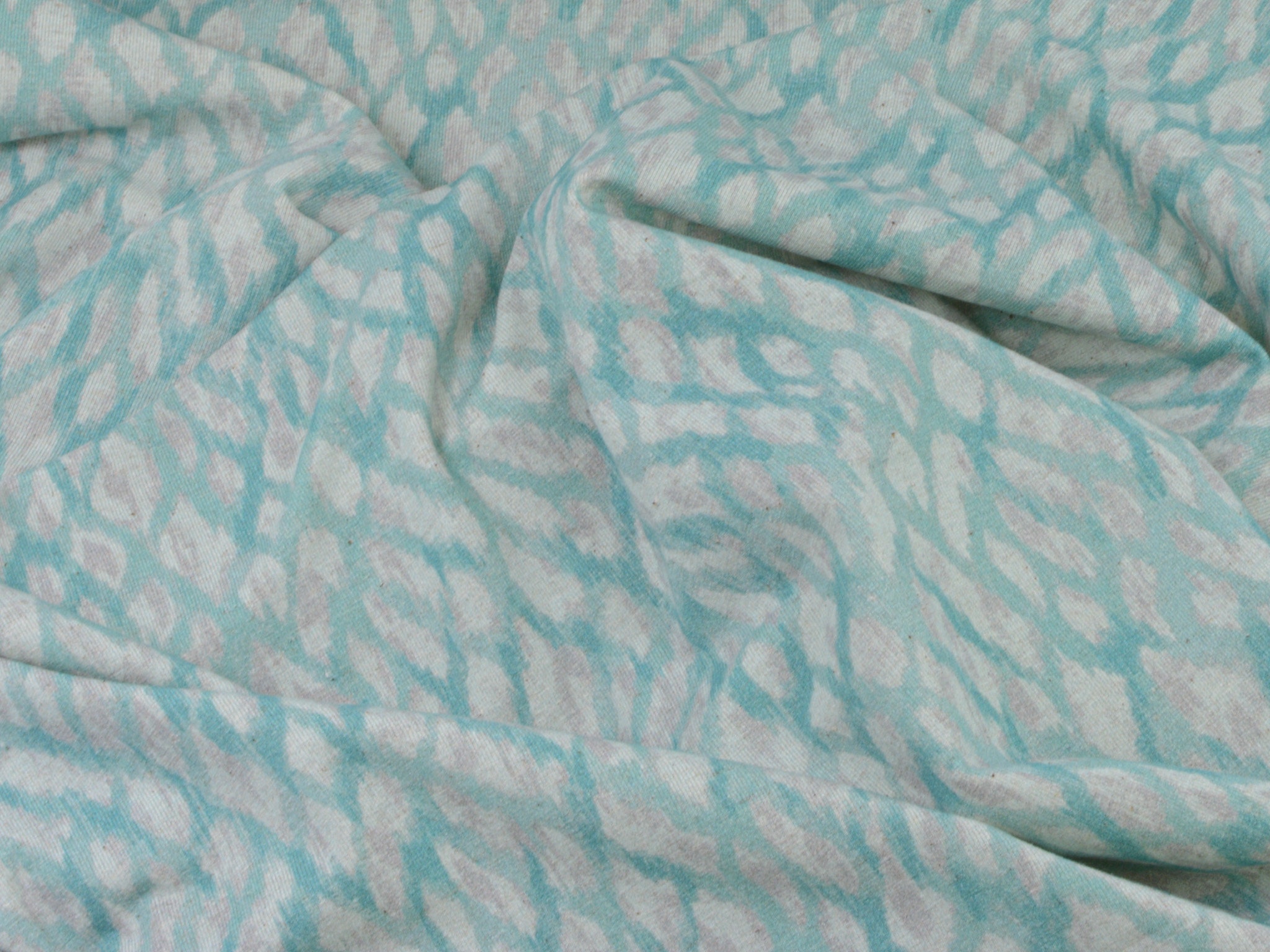 Hochwertiger Jersey aus Baumwolle und Leinen von Hilco. Der Jersey ist dünn, meliert und geometrisch gemustert. Nähe daraus Sommer T-Shirts und Kleider.