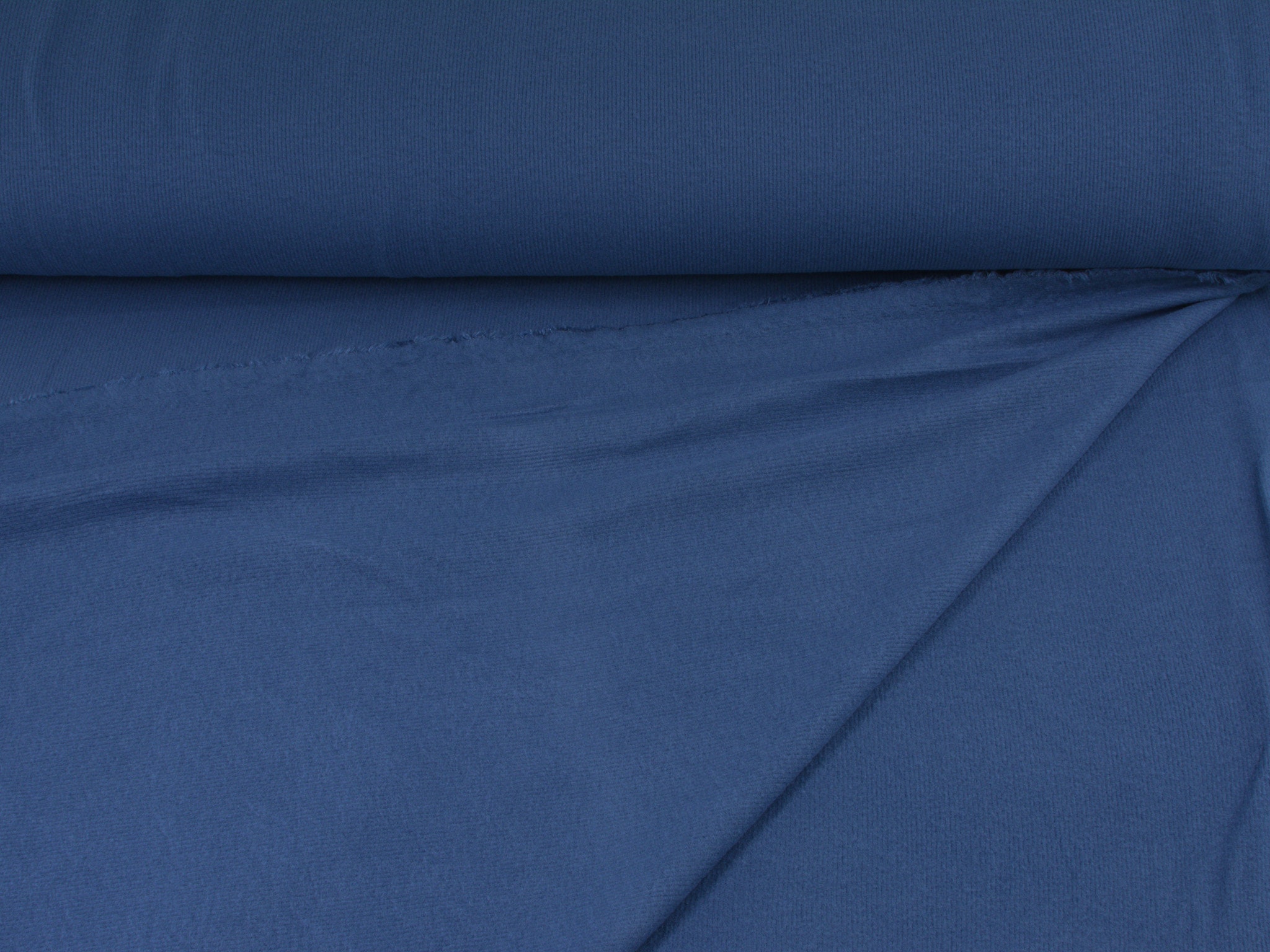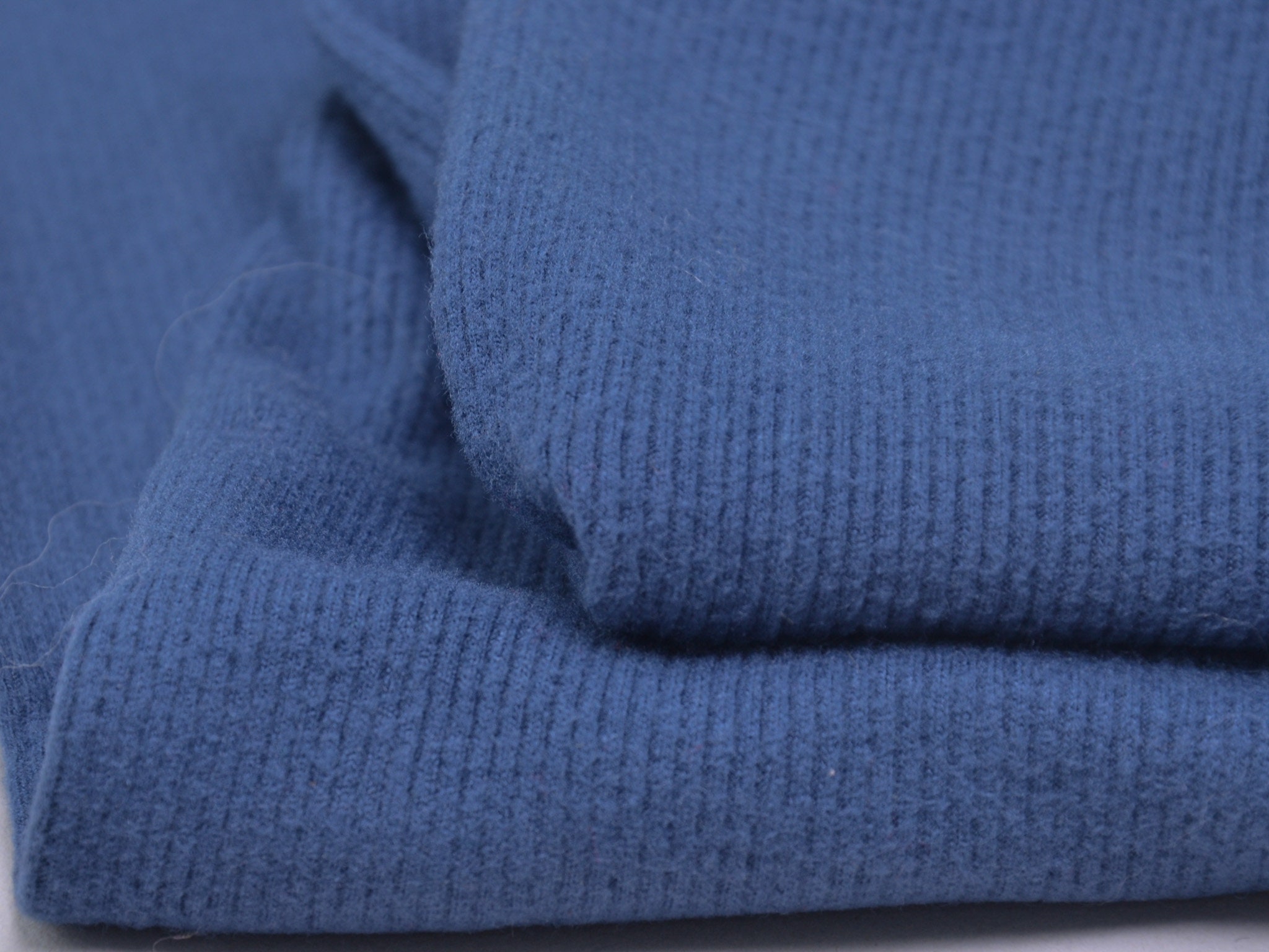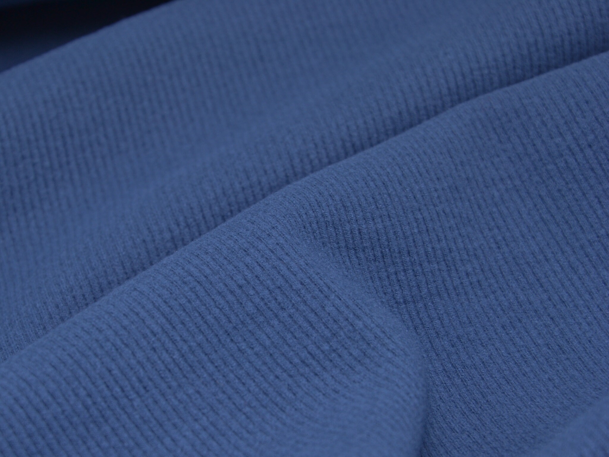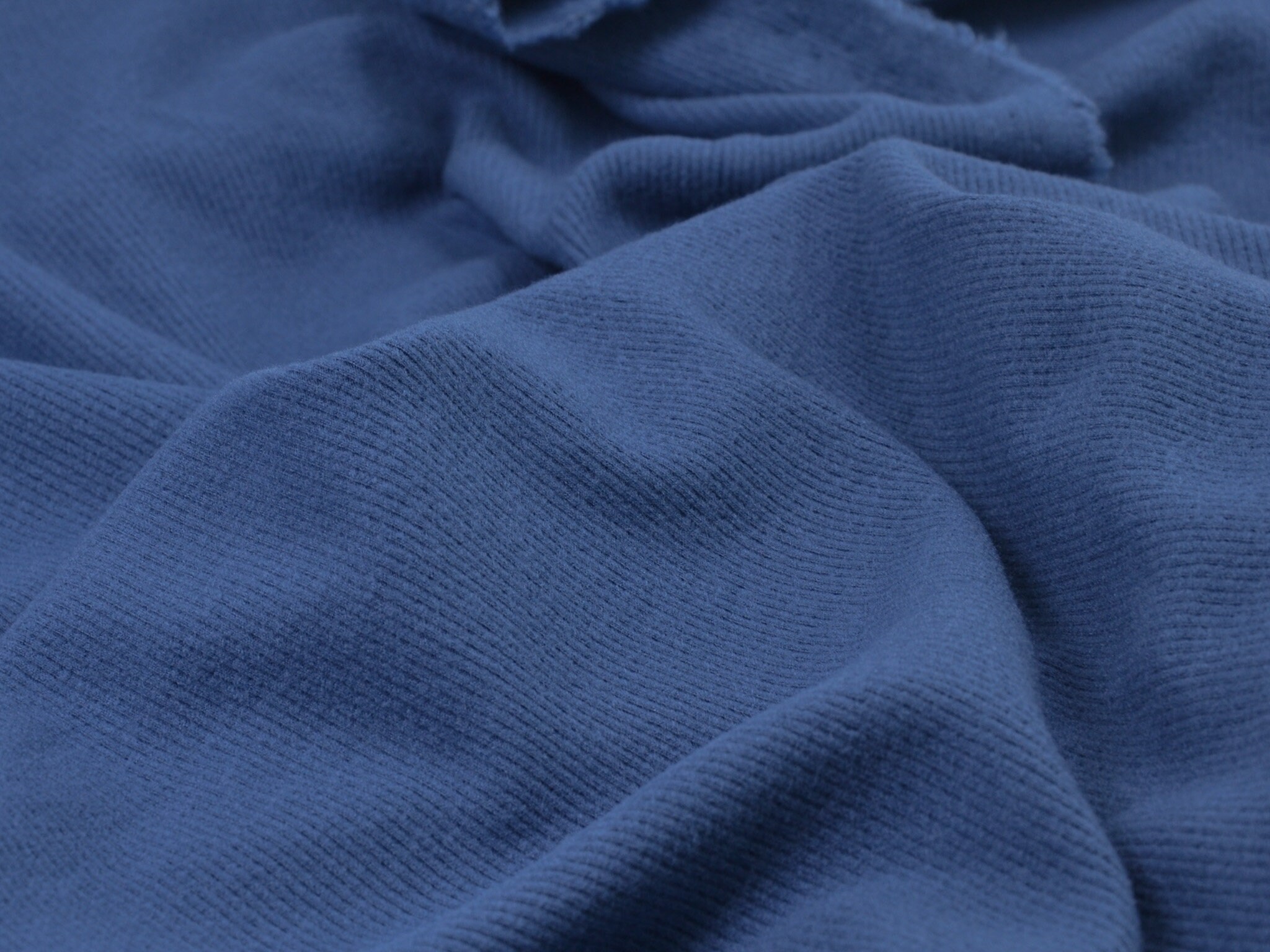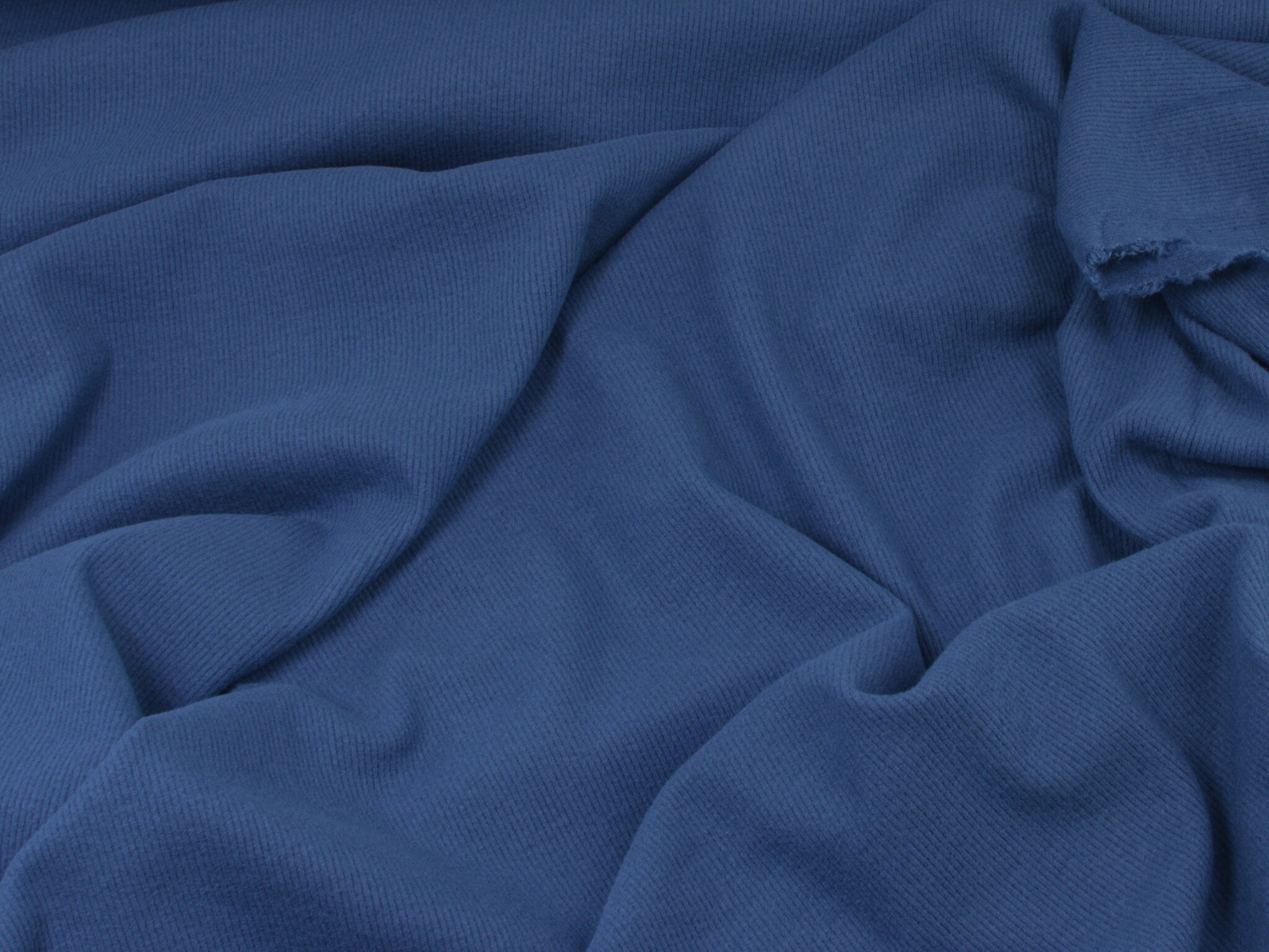 Brushed Rippenjersey in jeansblau. Dünner, weicher, fließender Jersey aus Viskose. Perfekt für T-Shirts, Kleider, Röcke und vieles mehr.