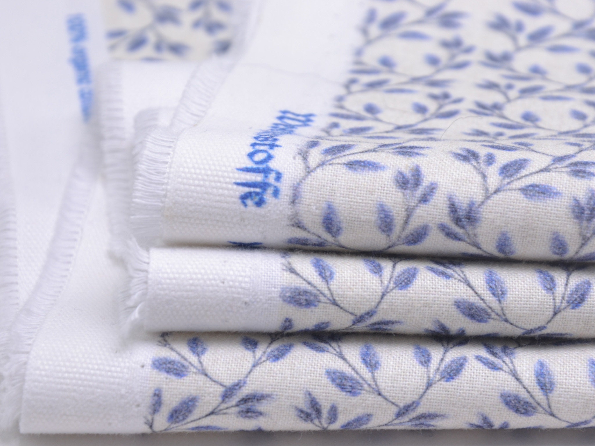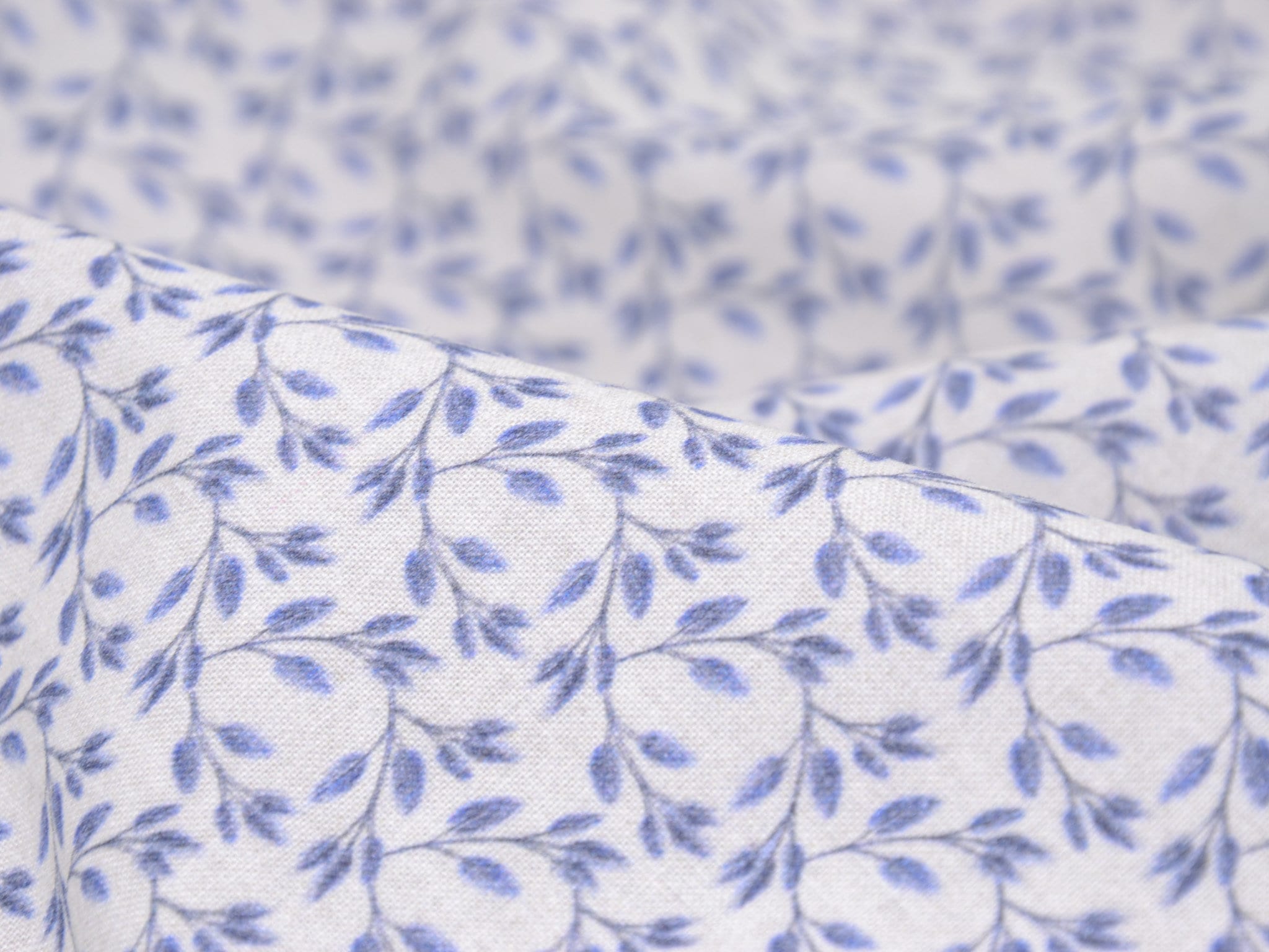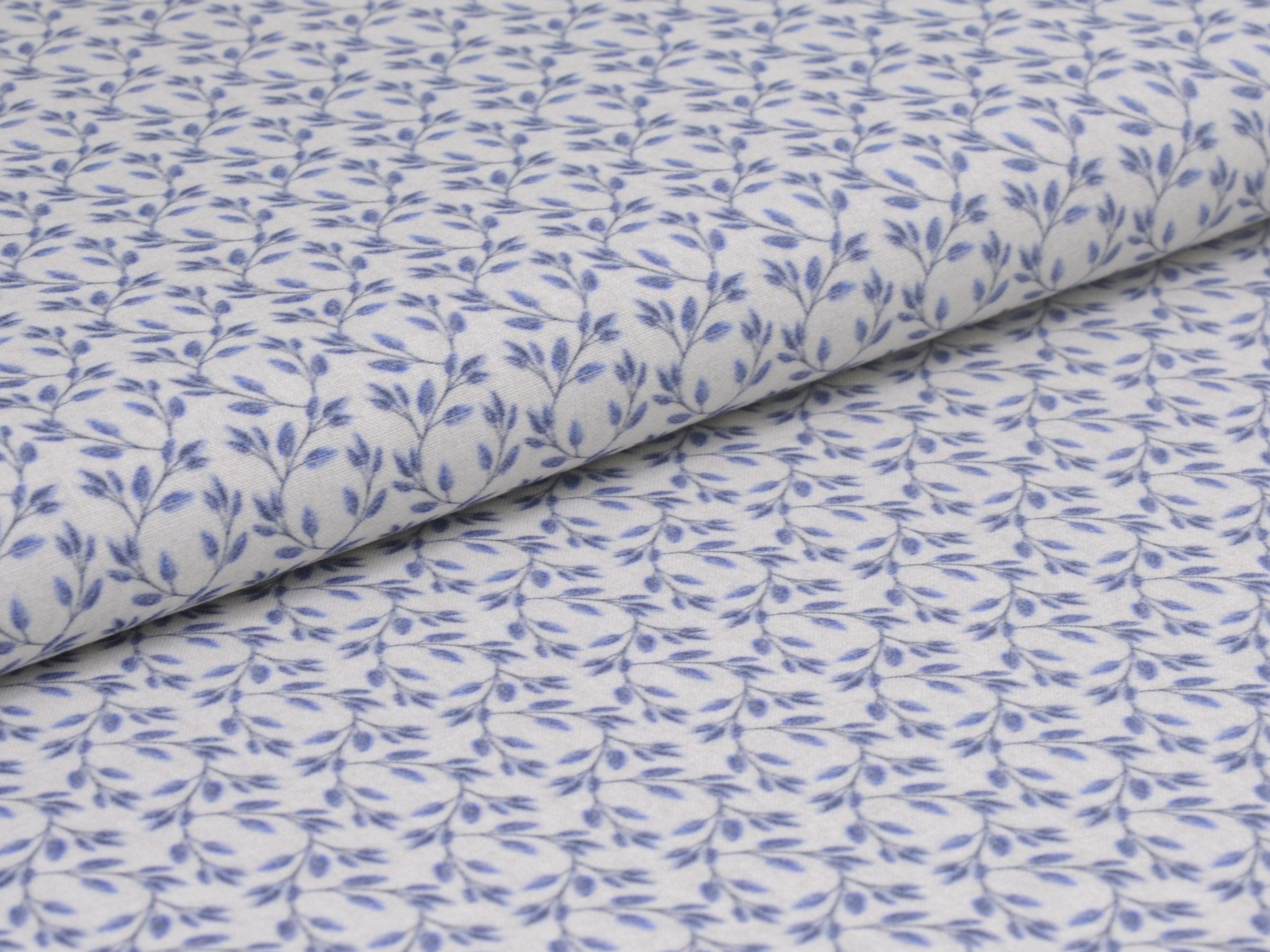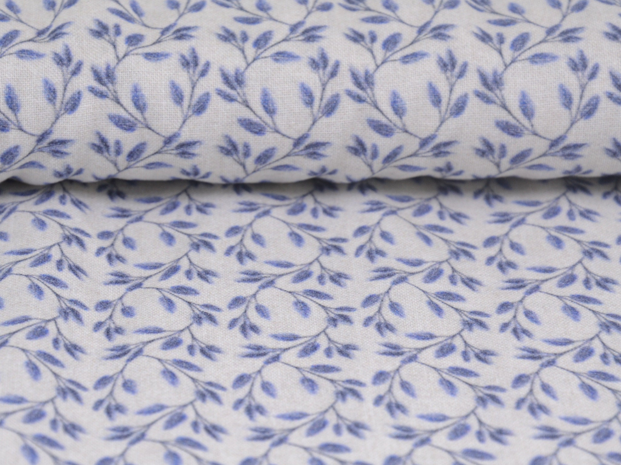Hochwertiger Baumwollstoff von Westfalenstoffe aus kbA Baumwolle. Der Digitaldruck Stoff aus der Serie Versailles ist beige mit blauen Blättern. Nähe draus Taschen, Utensilos, Accessoires, Patchwork und vieles mehr.
