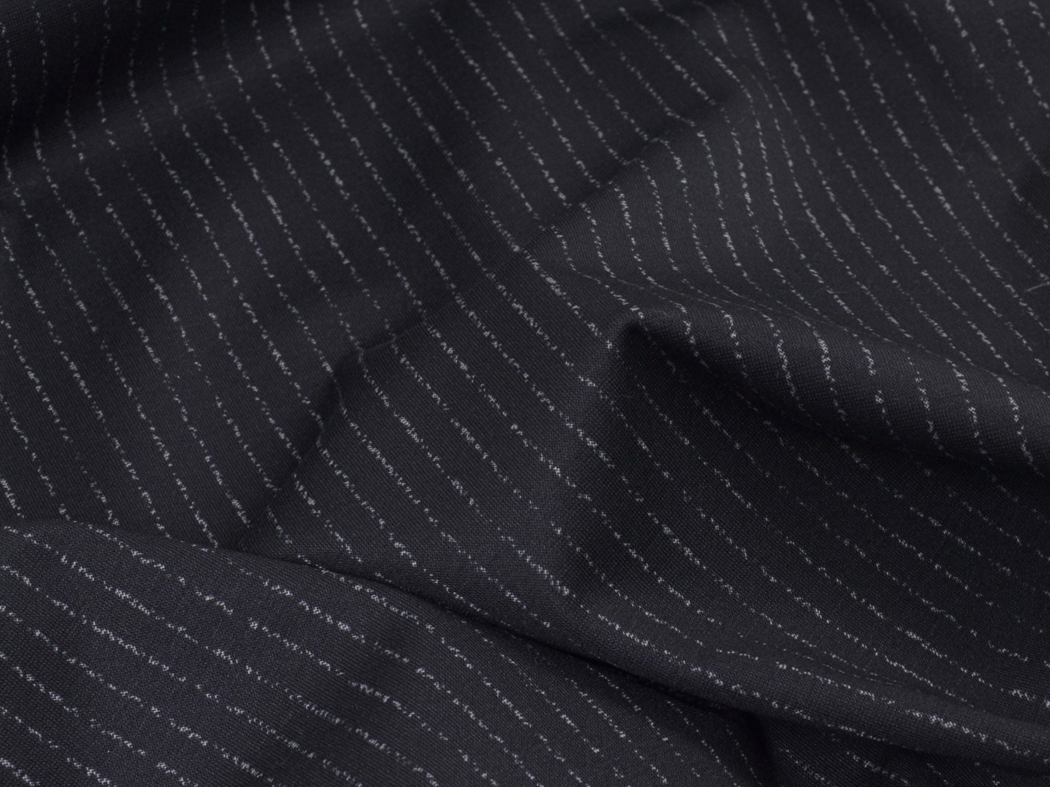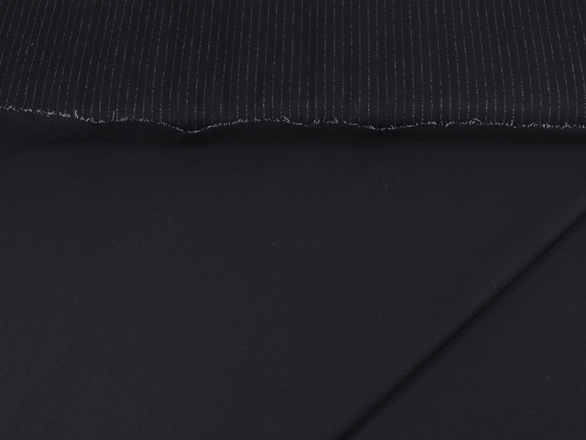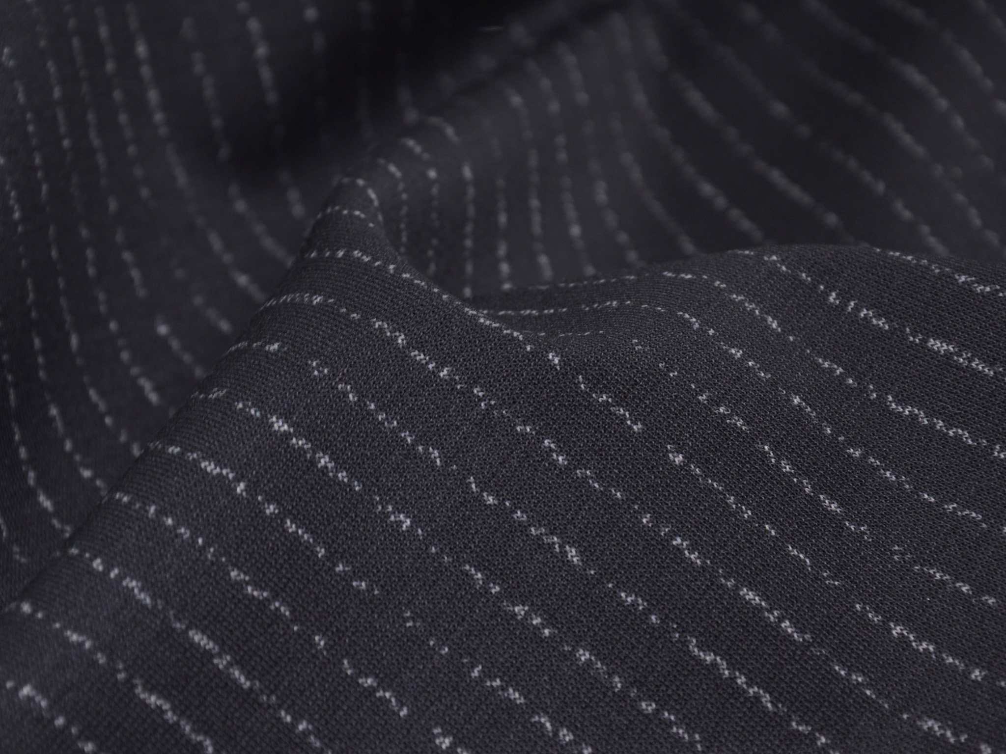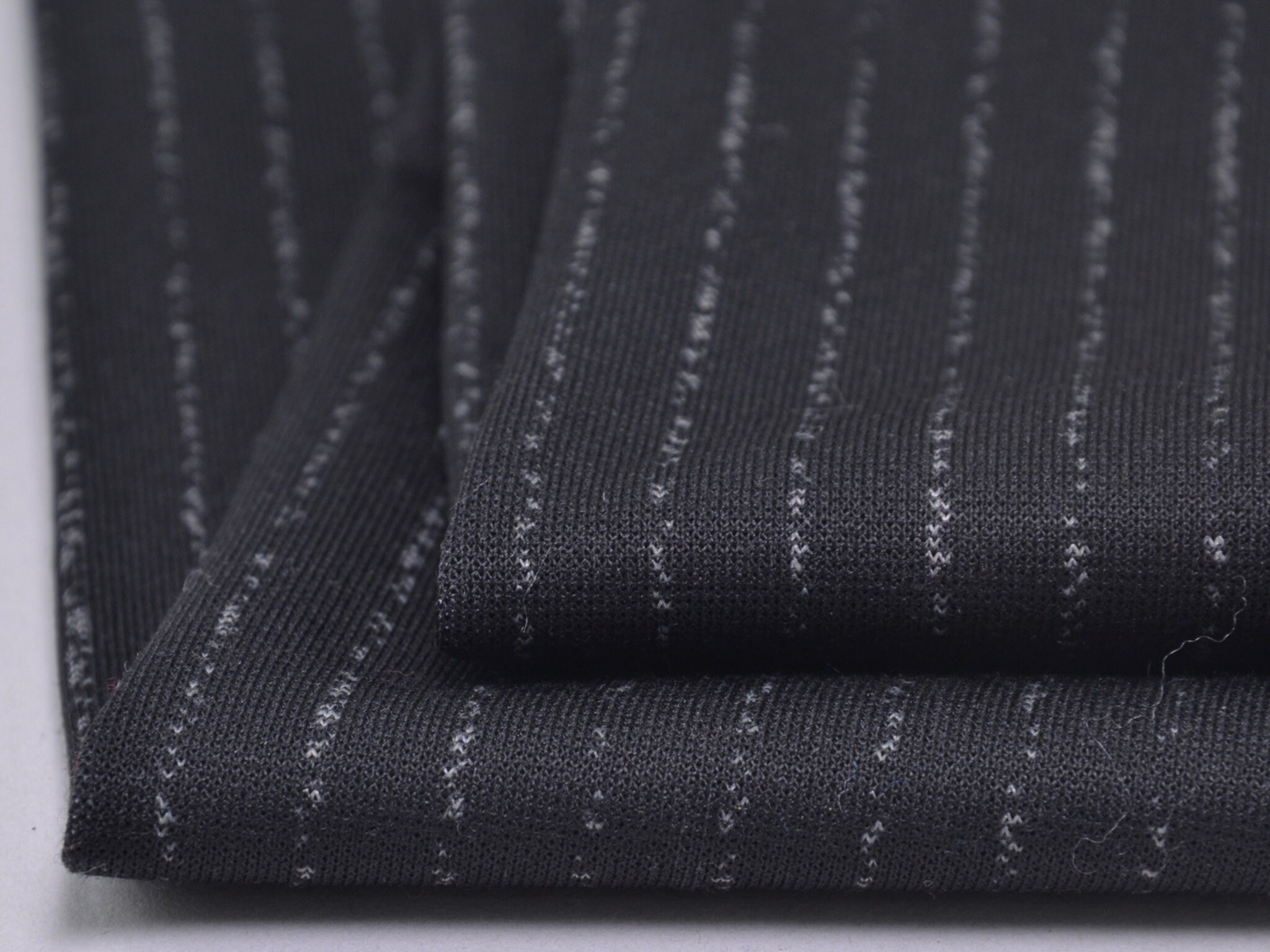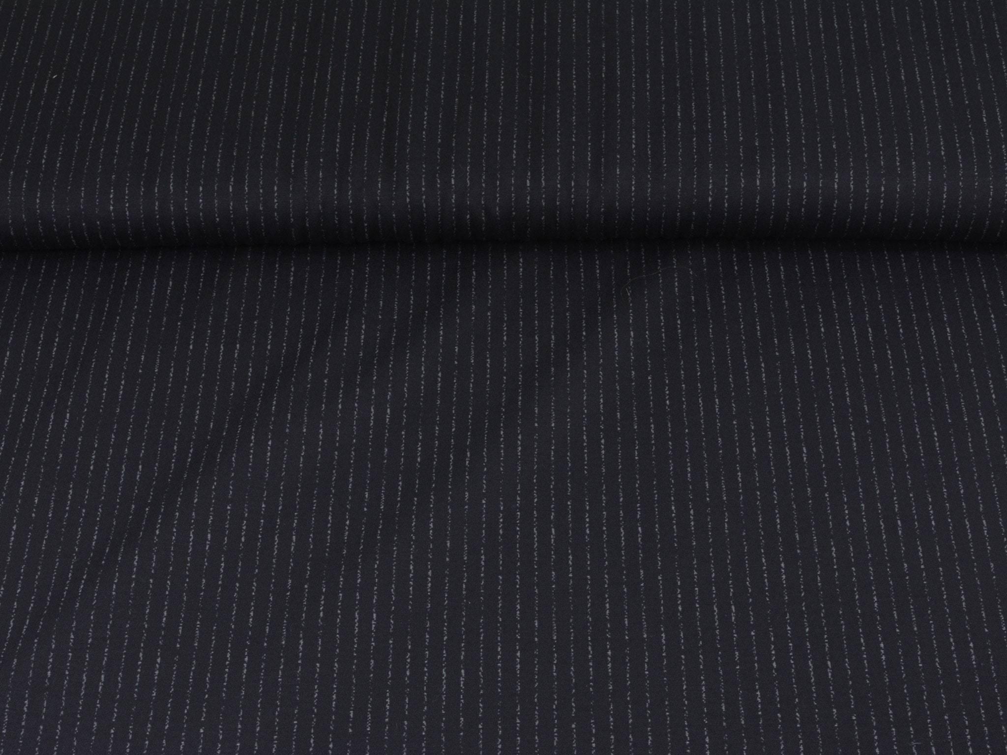 Fester Jersey in schwarz mit hellgrauen Streifen, Nadelstreifen. Der Stoff ist in beide Richtungen elastisch. Du kannst daraus tolle Hosen, Röcke, Kleider und vieles mehr nähen.