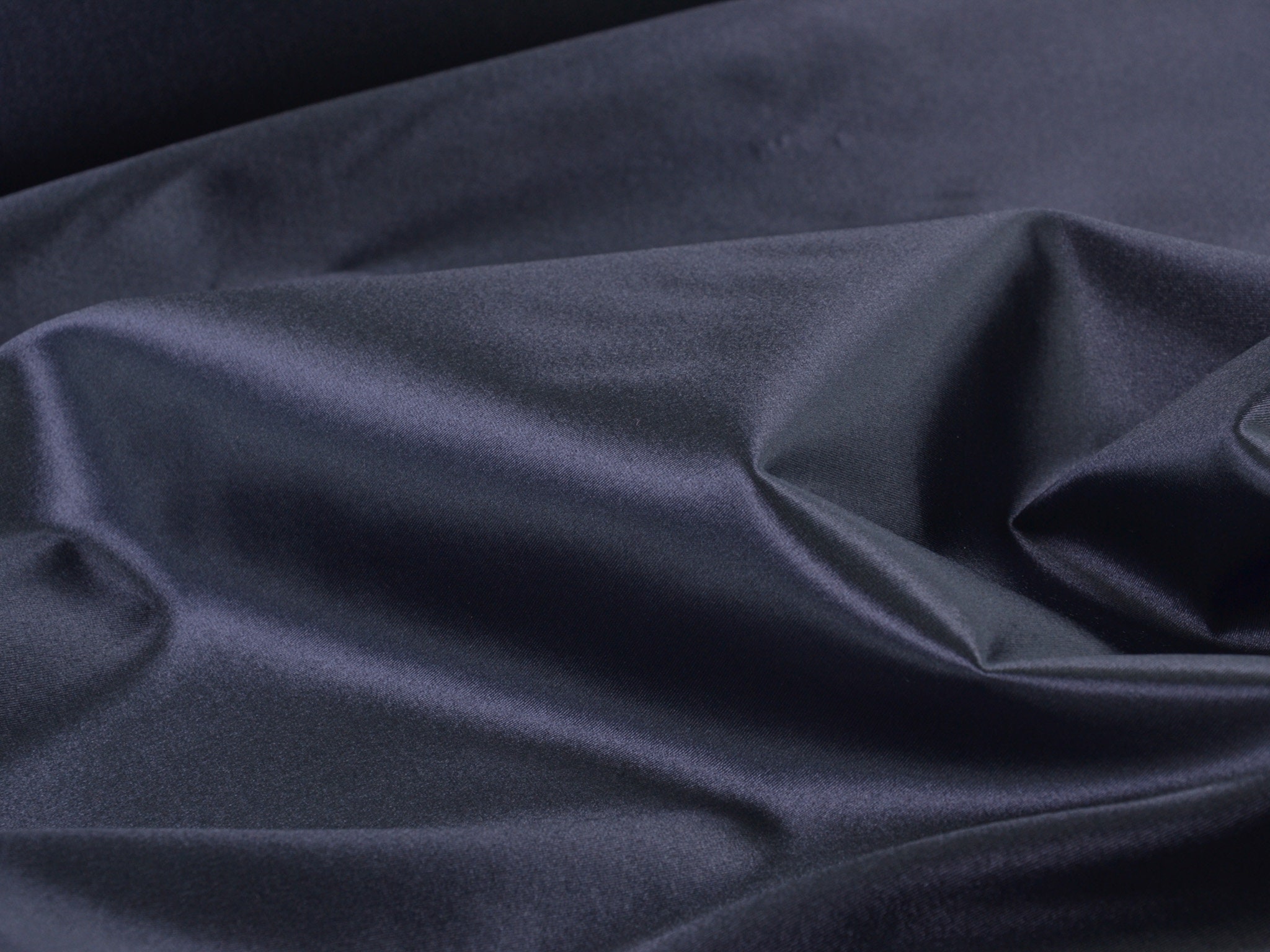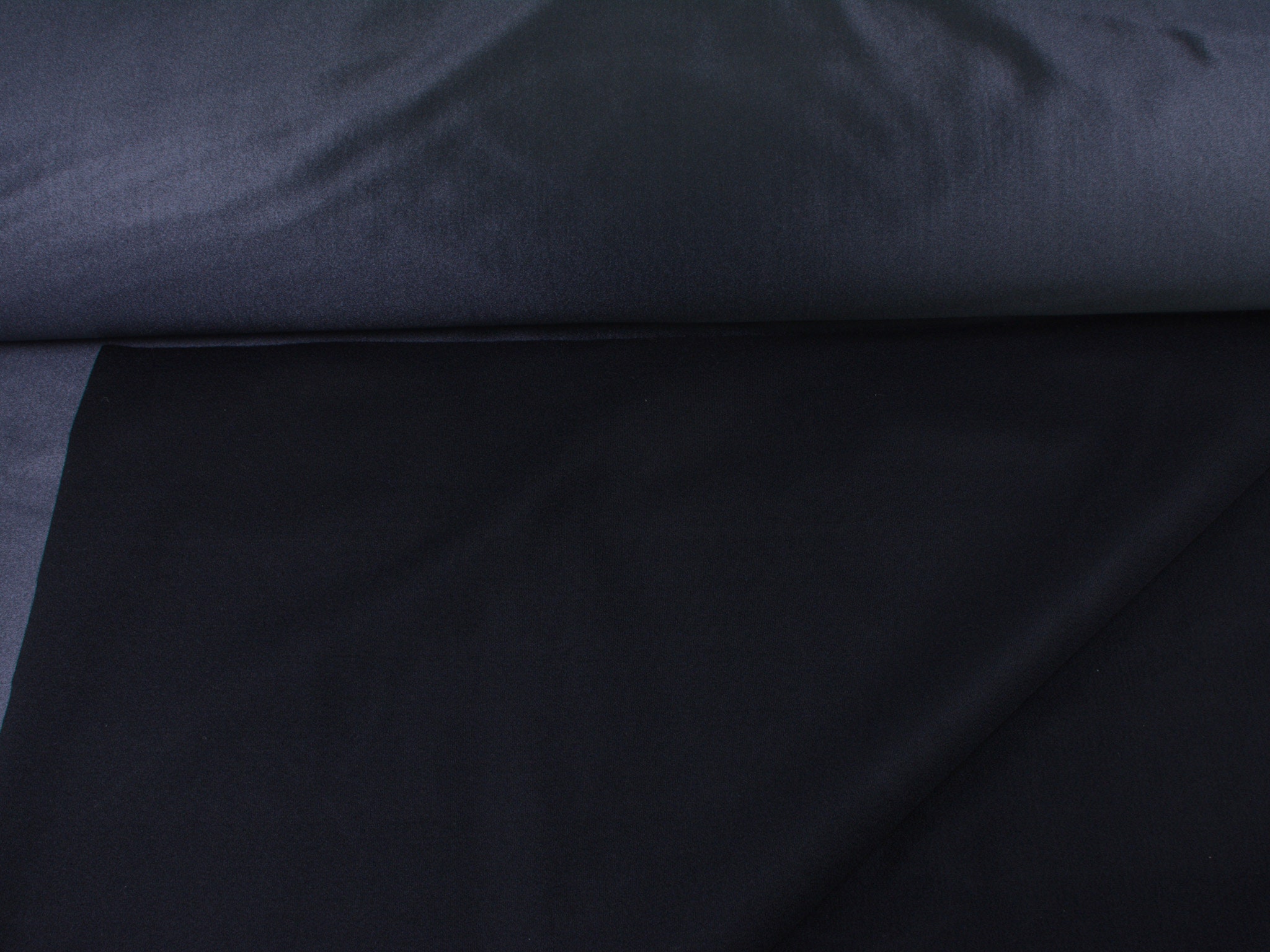 Ausgefallener Stoff mit glänzender, Lack-Oberseite und weicher Abseite in schwarz. Der Stoff ist leicht elastisch und wunderbar zum Nähen von Jacken, Röcken mit Stand und vielem mehr.