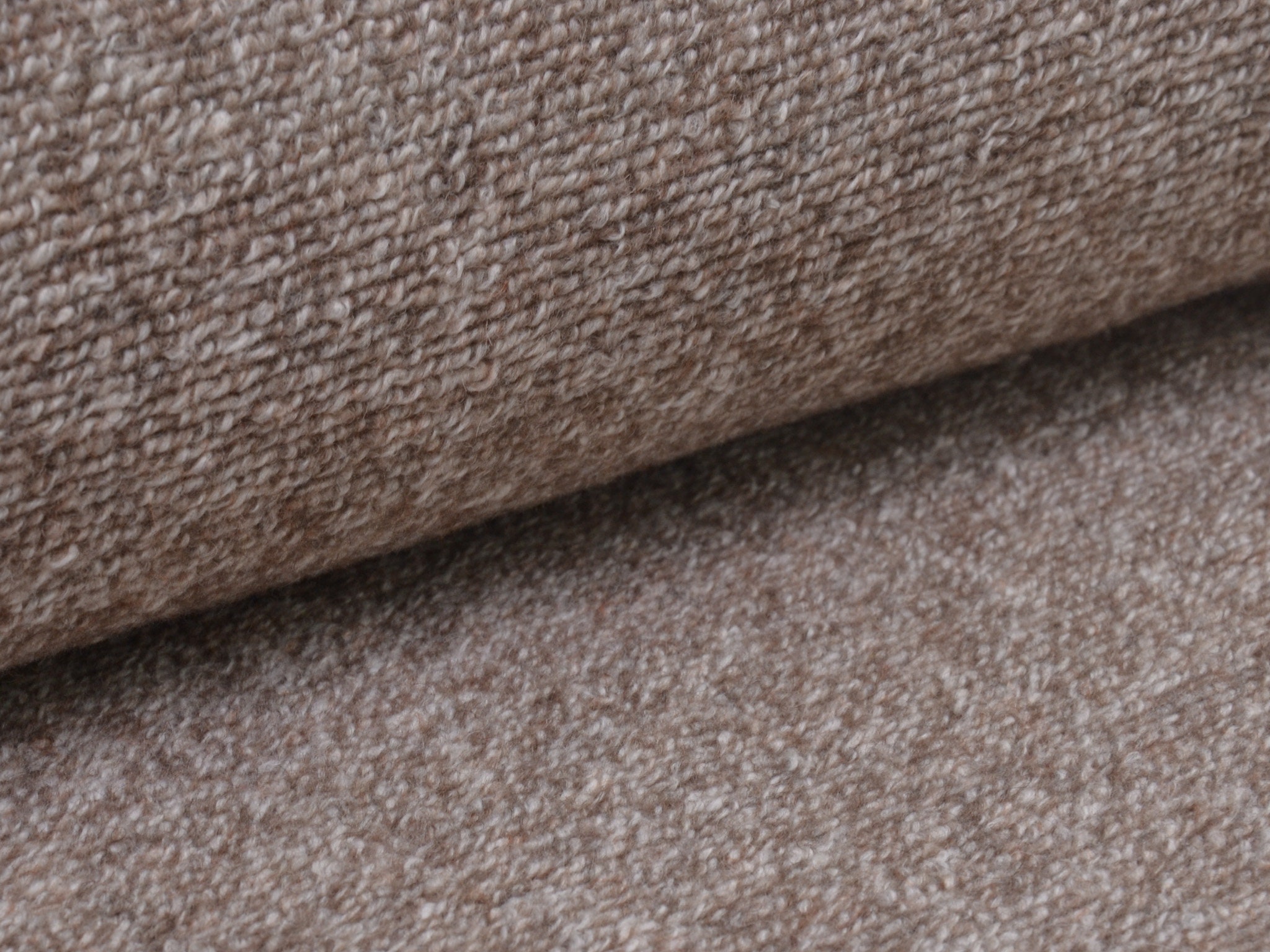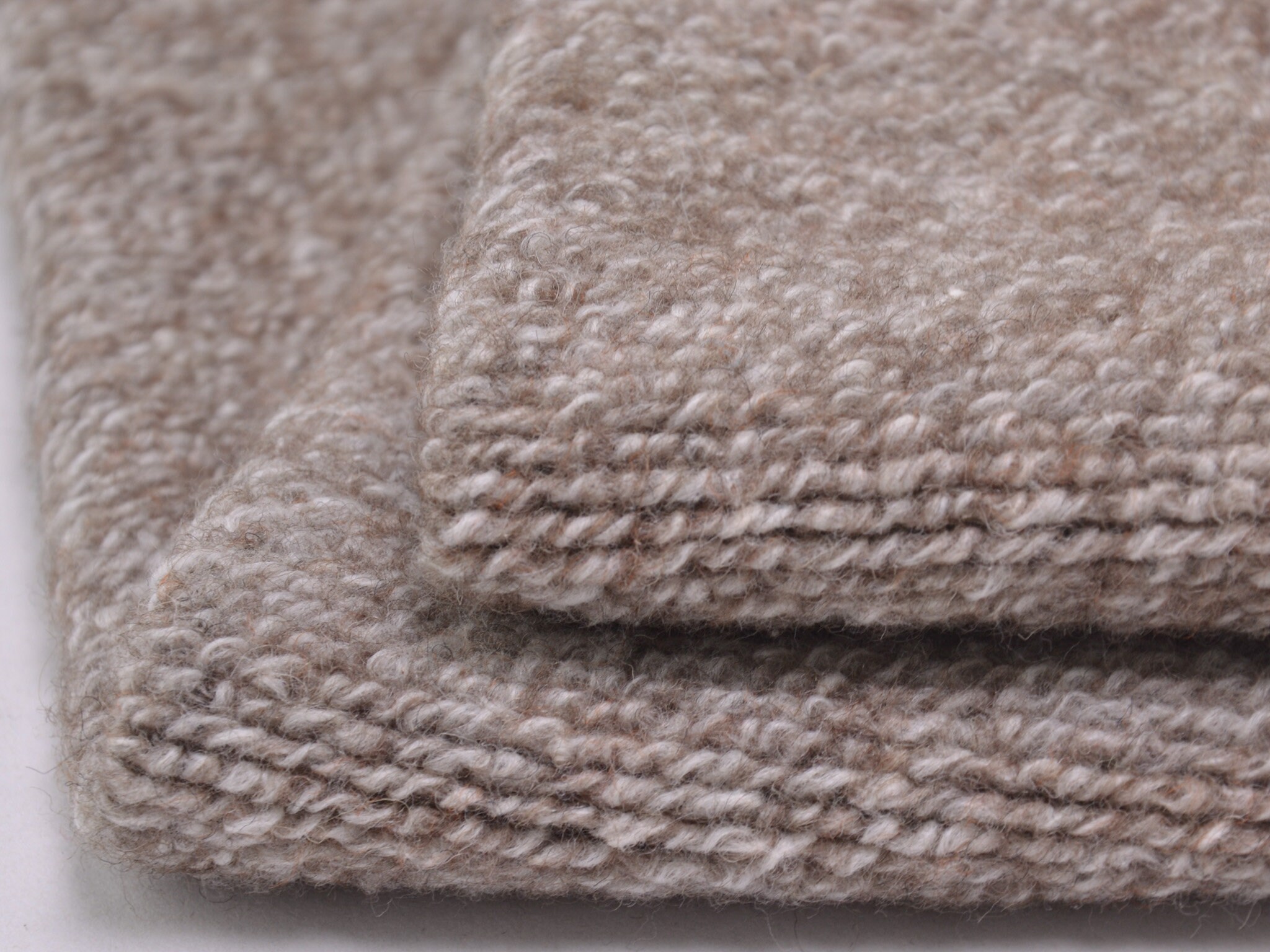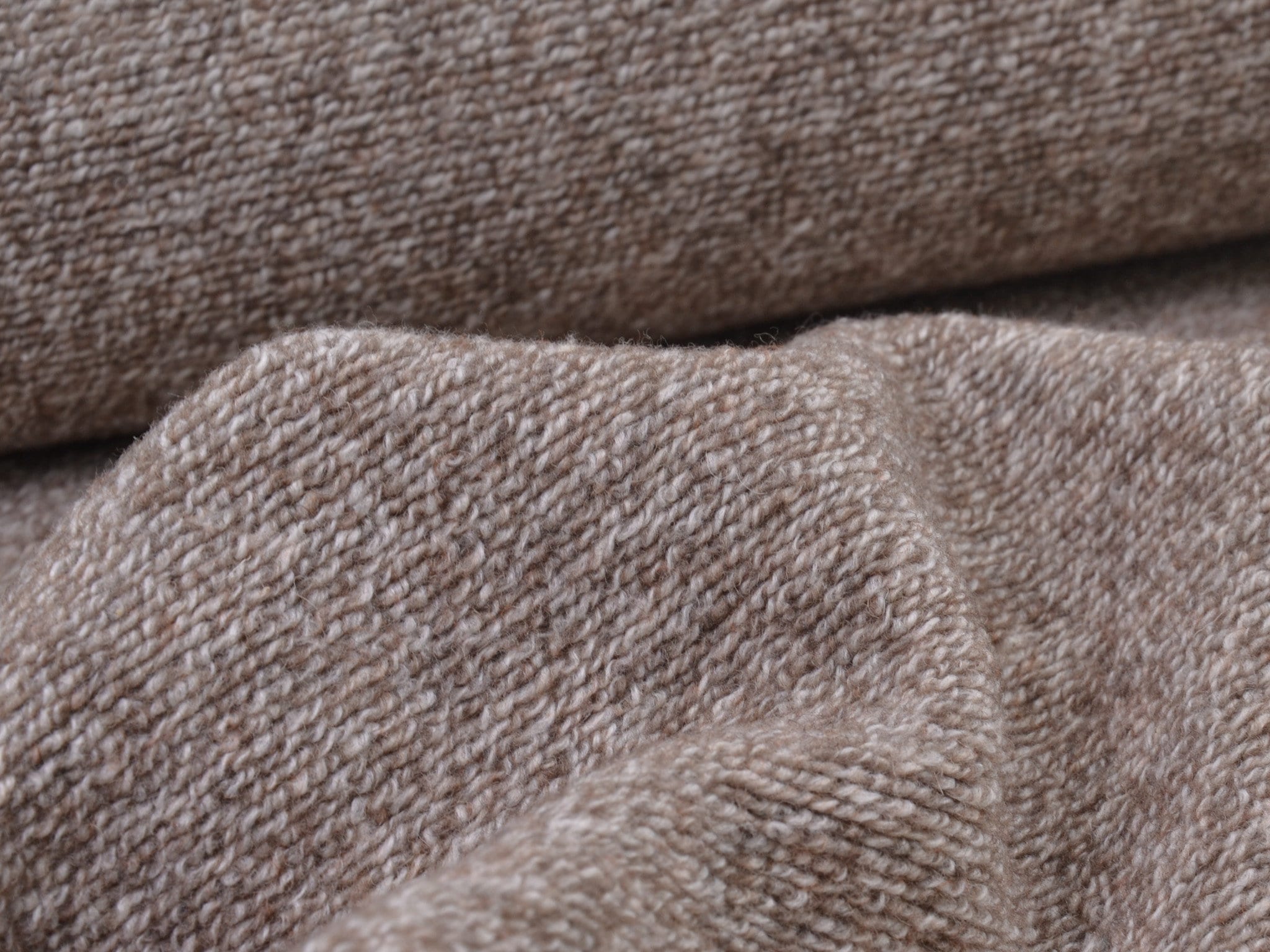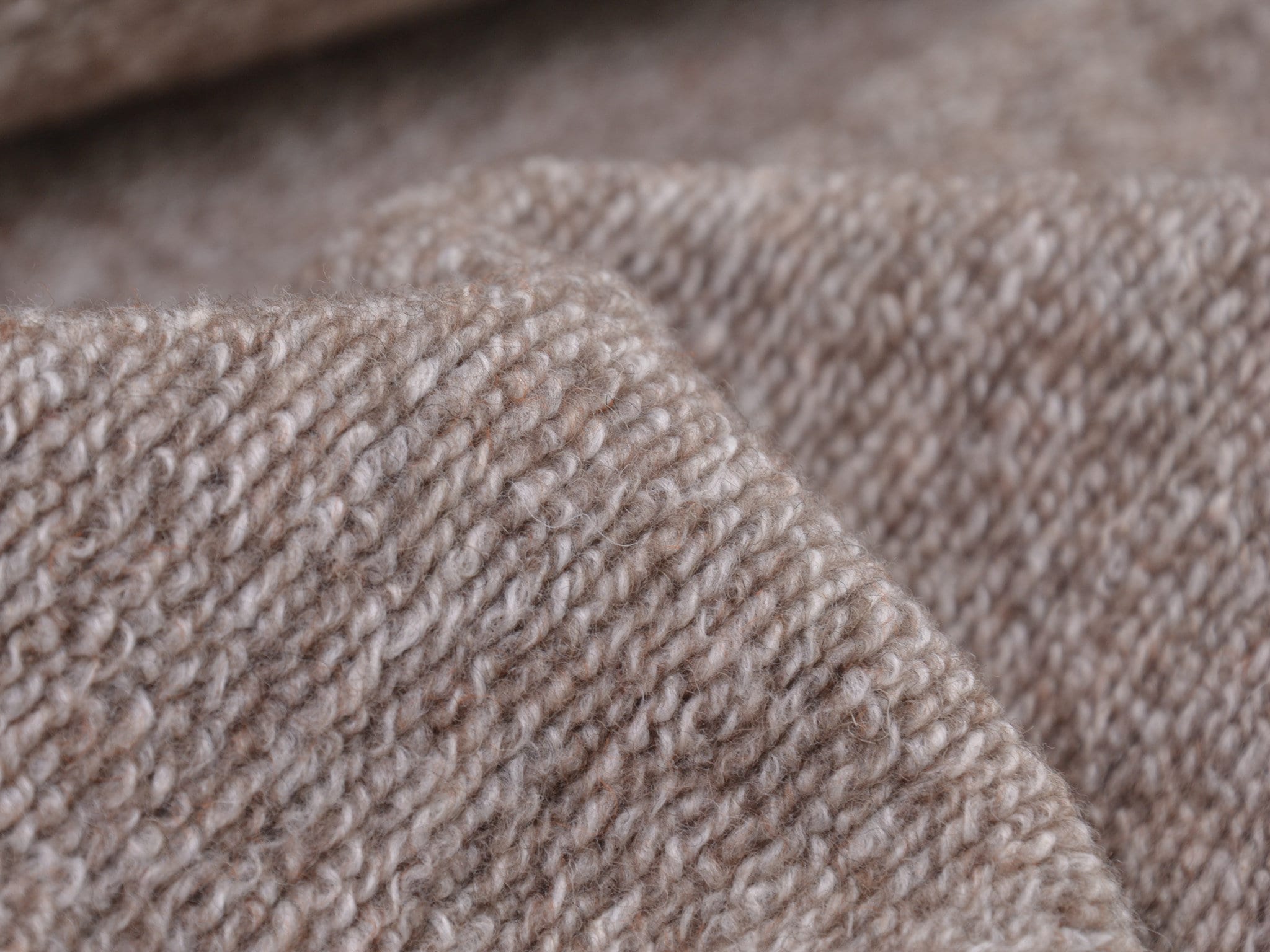Chunky knit wool fabric in beige melange. Perfect for sewing cardigans and knit jackets.