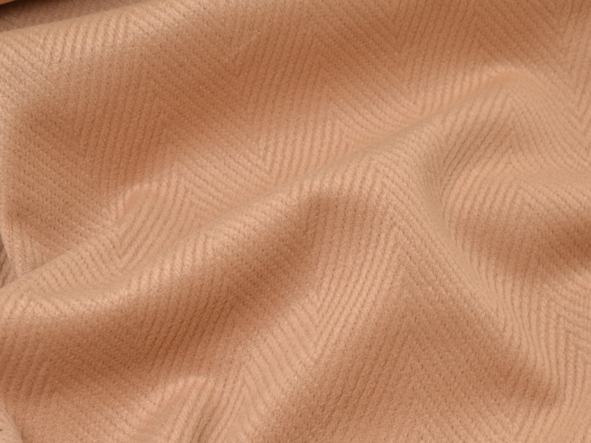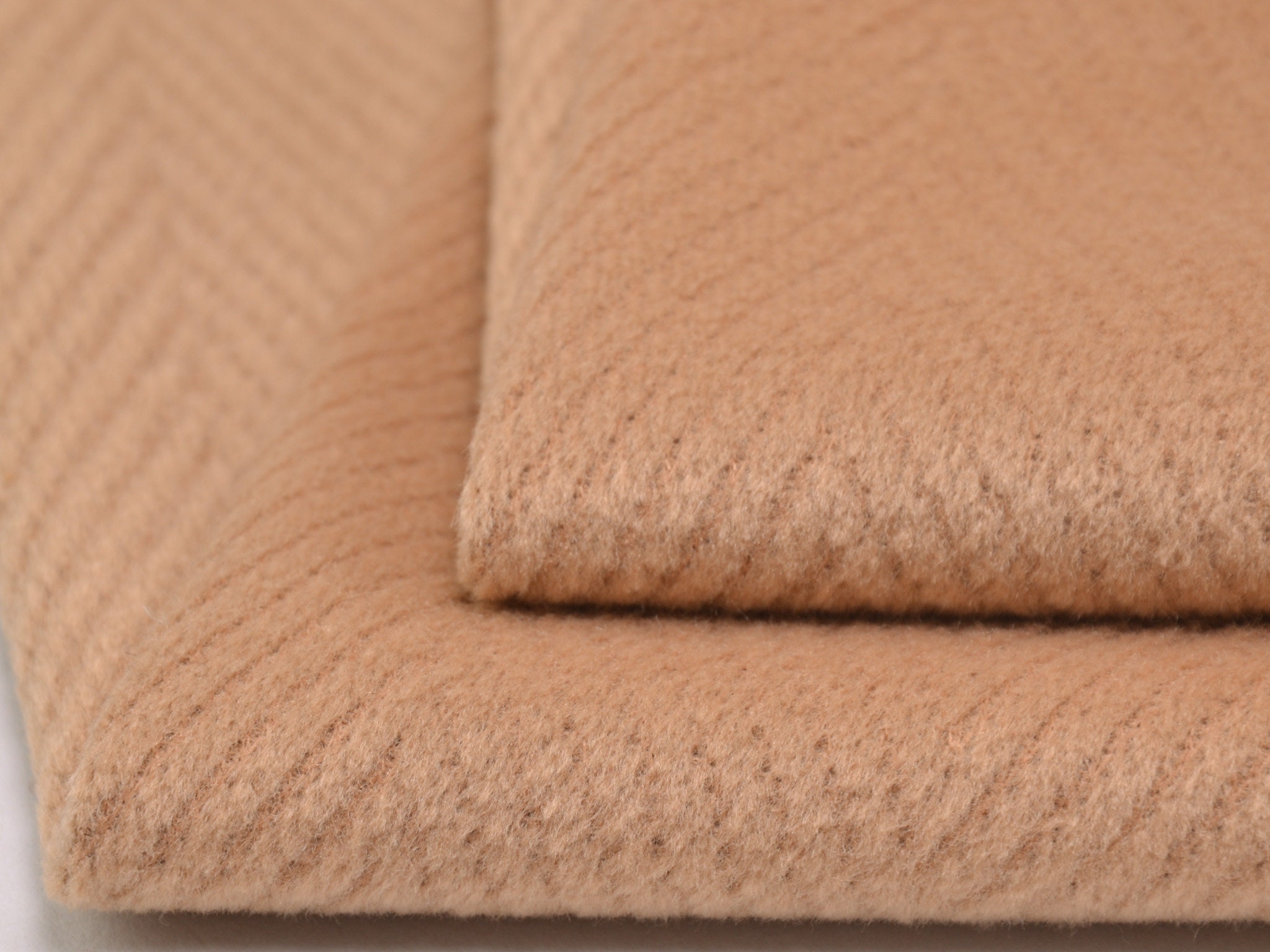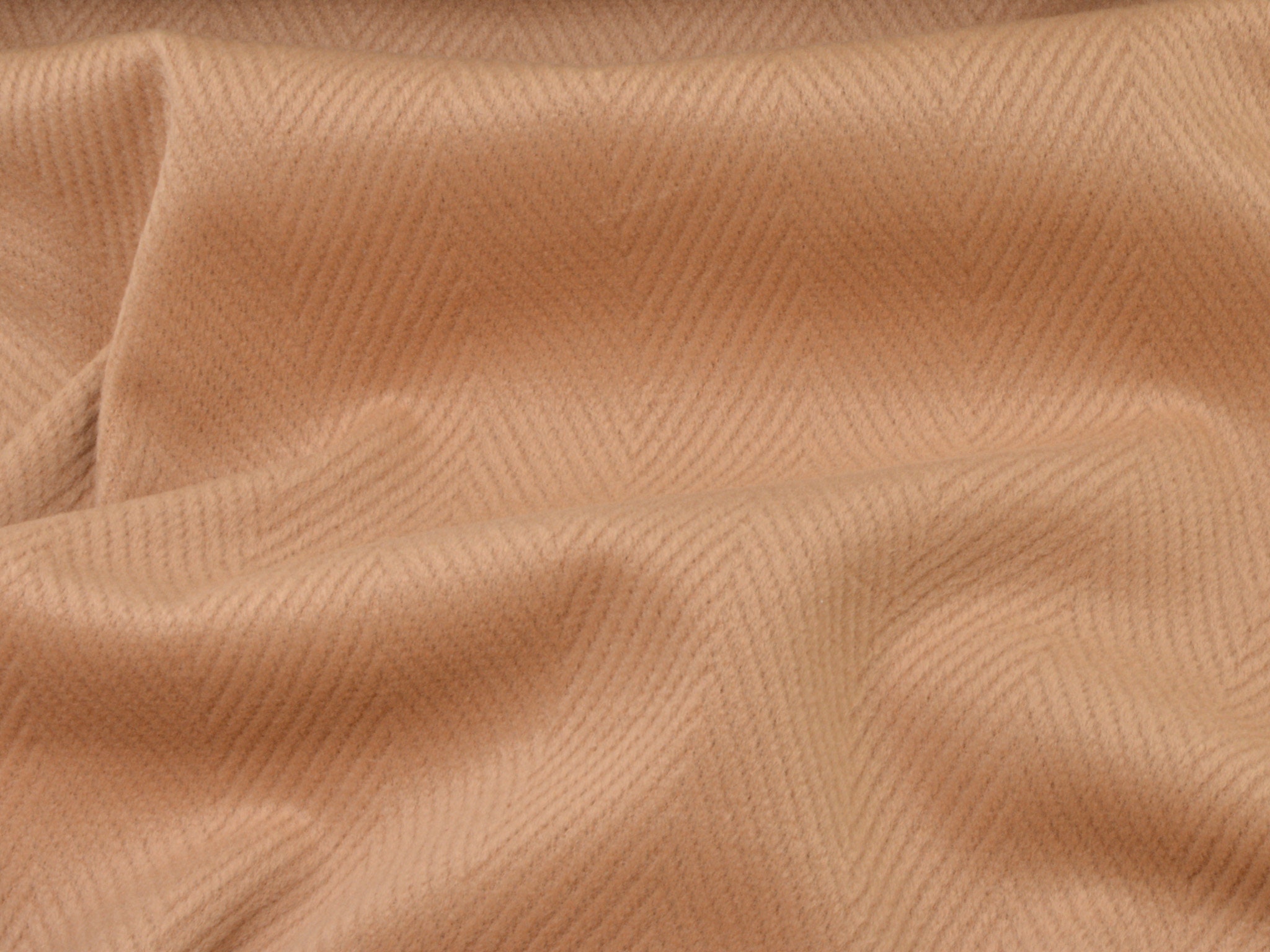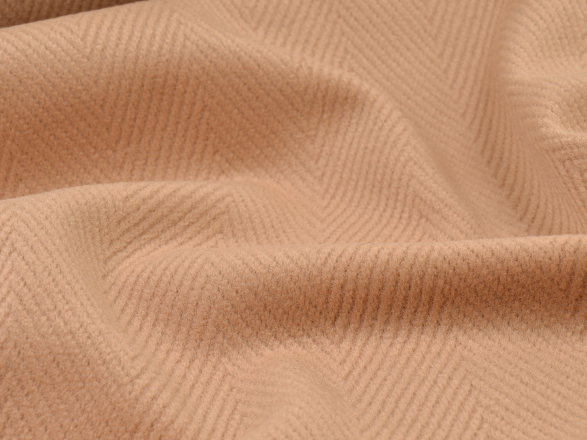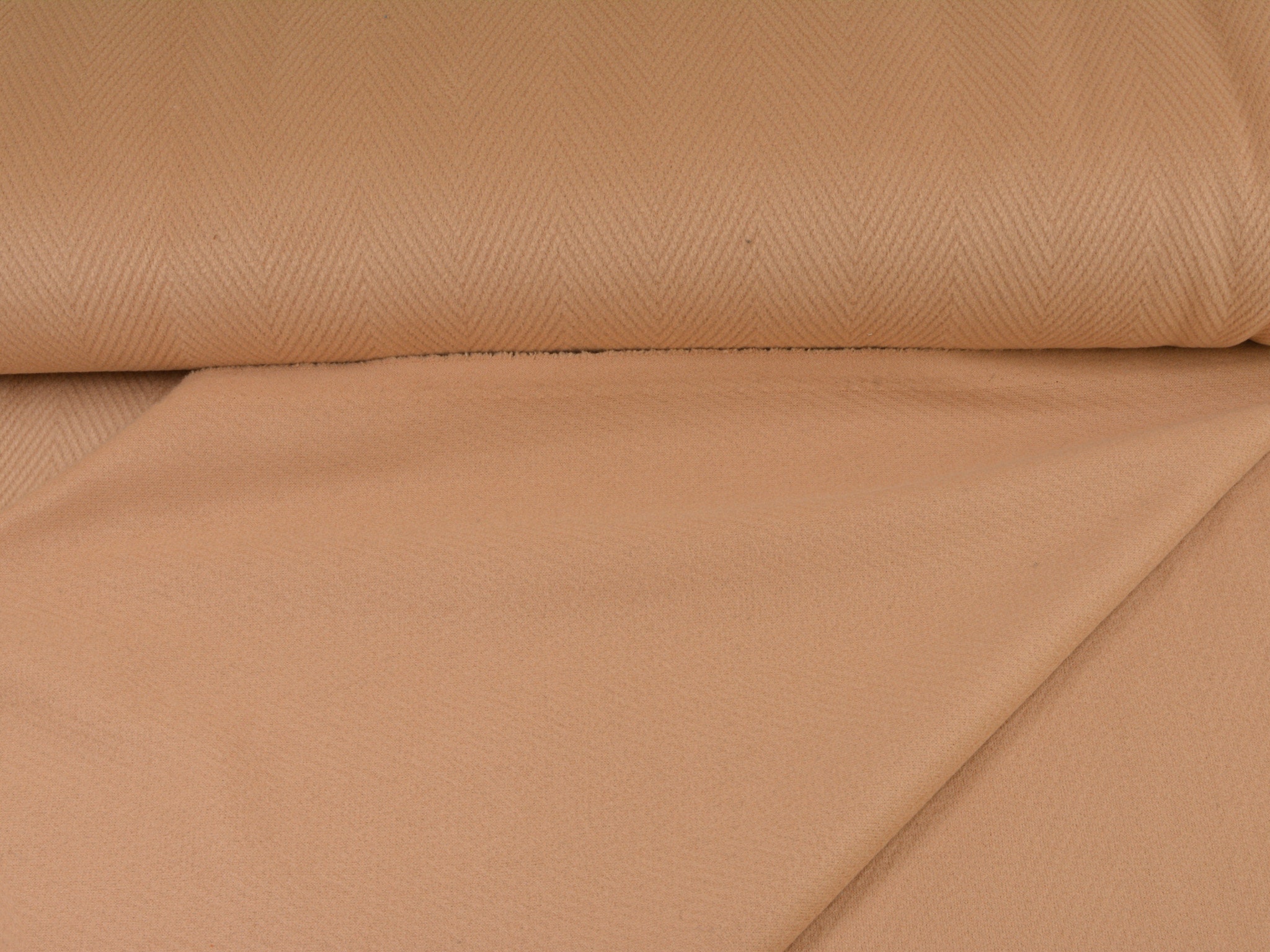 Hochwertiger Mantelstoff aus Wolle in beige. Der feste Strickstoff zeigt ein Fischgratmuster mit Flor. Du kannst daraus Jacken, Mäntel und vieles mehr nähen.