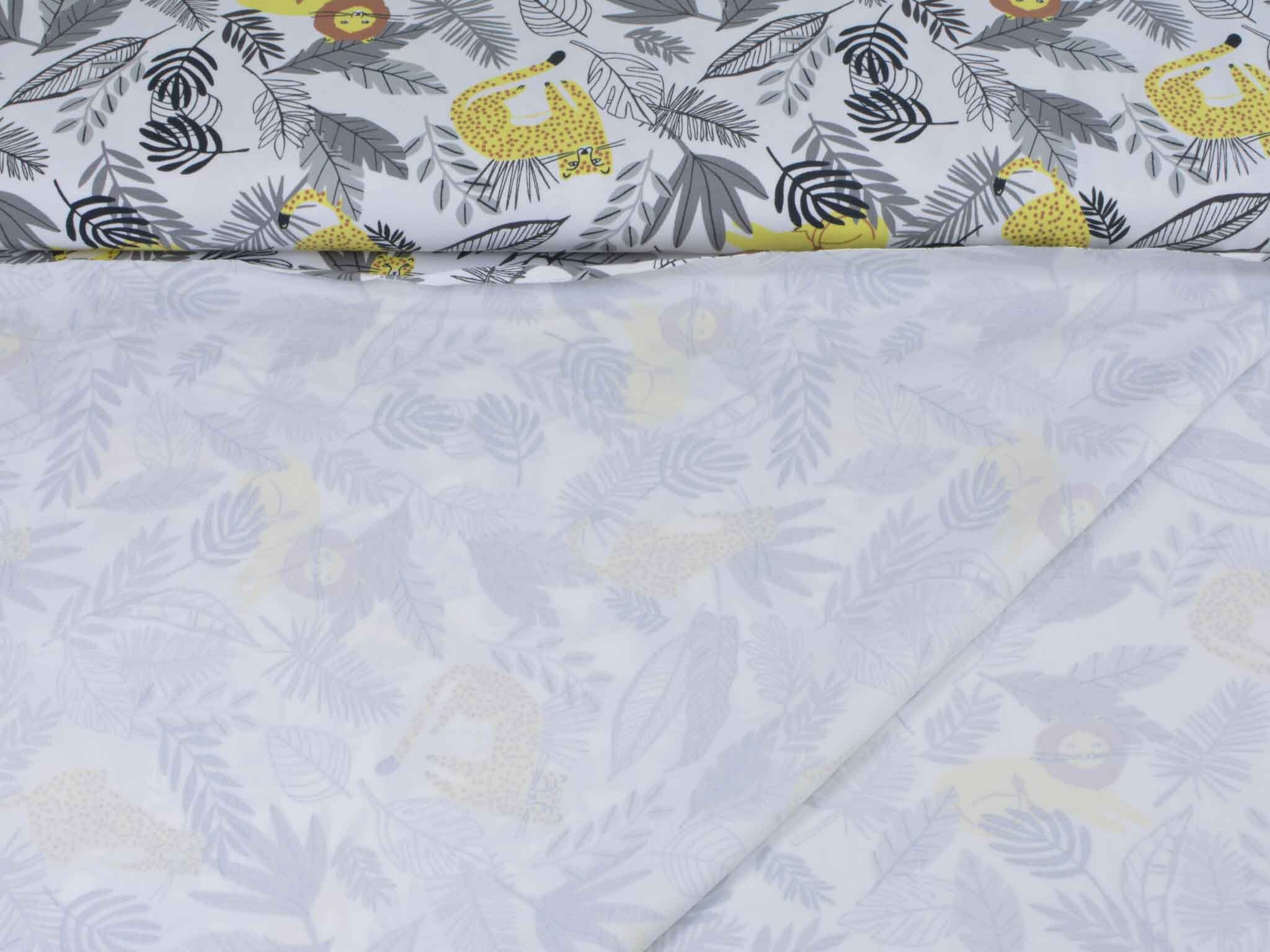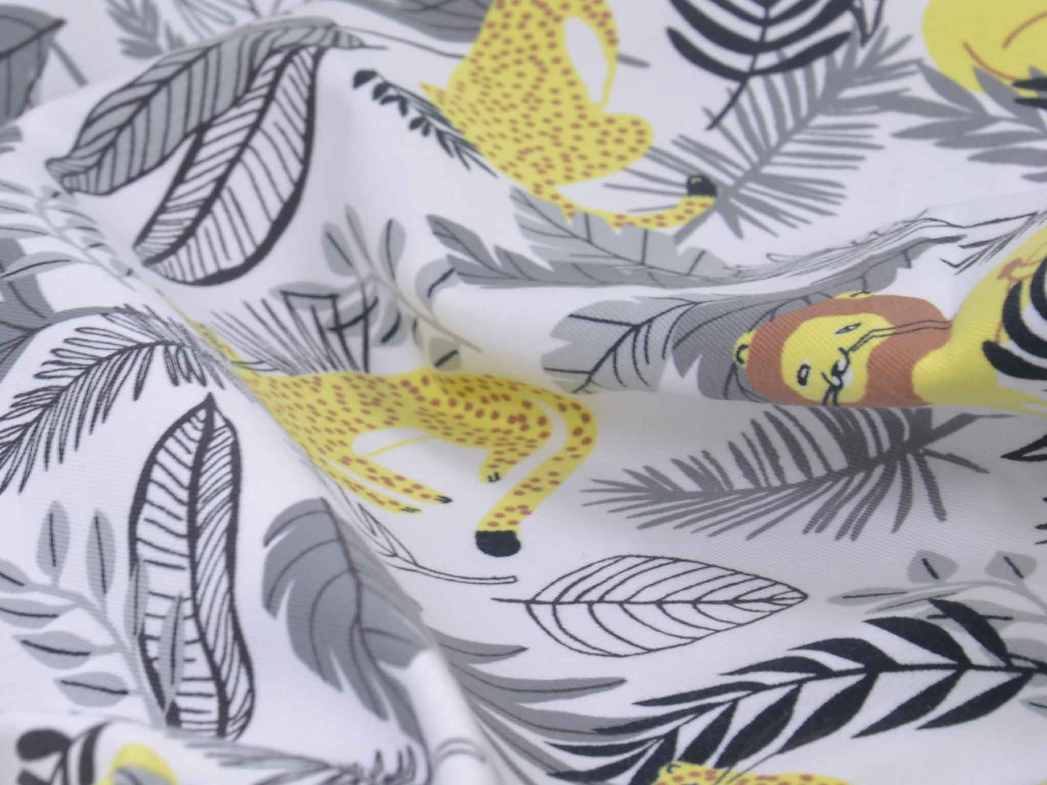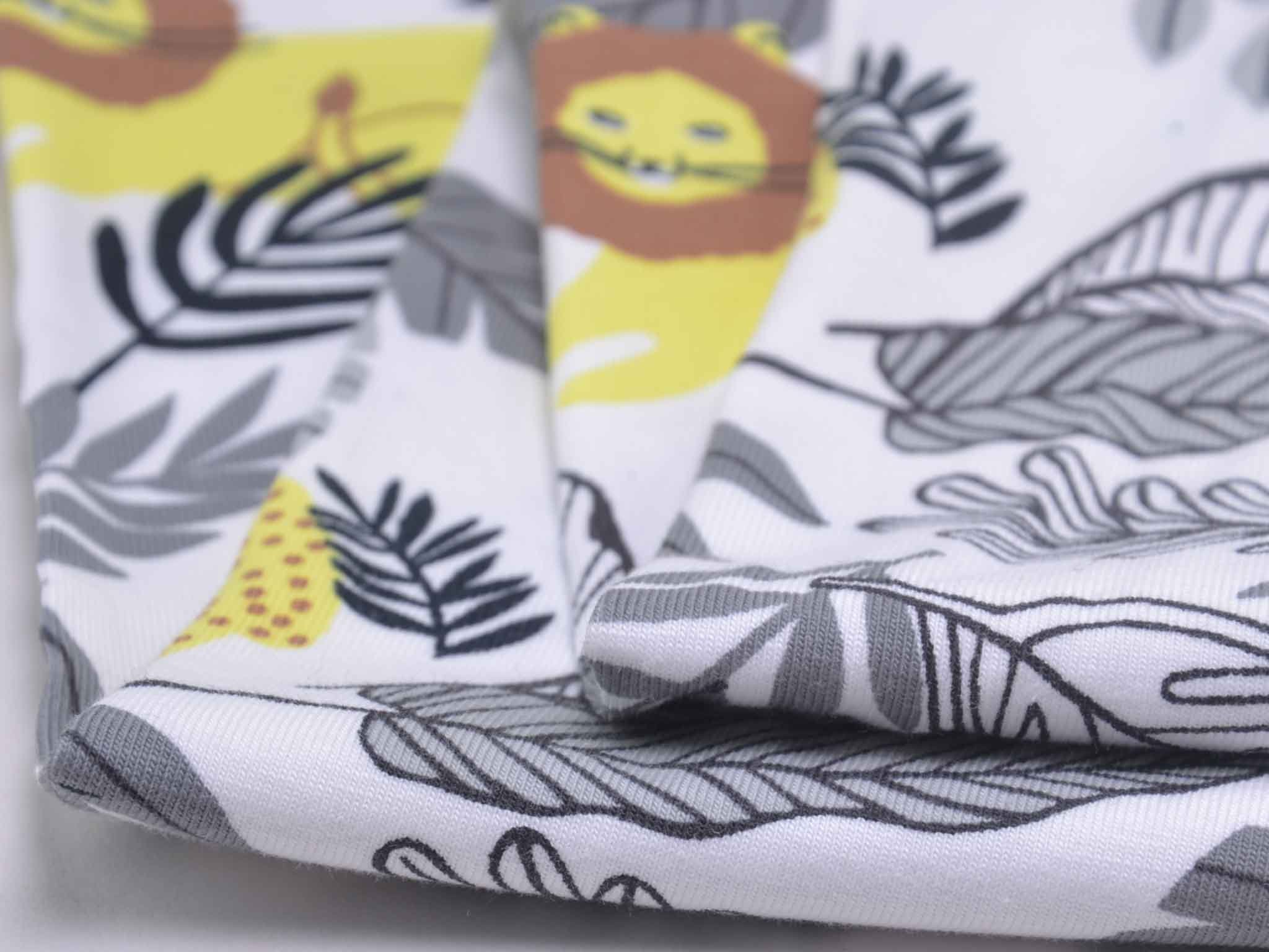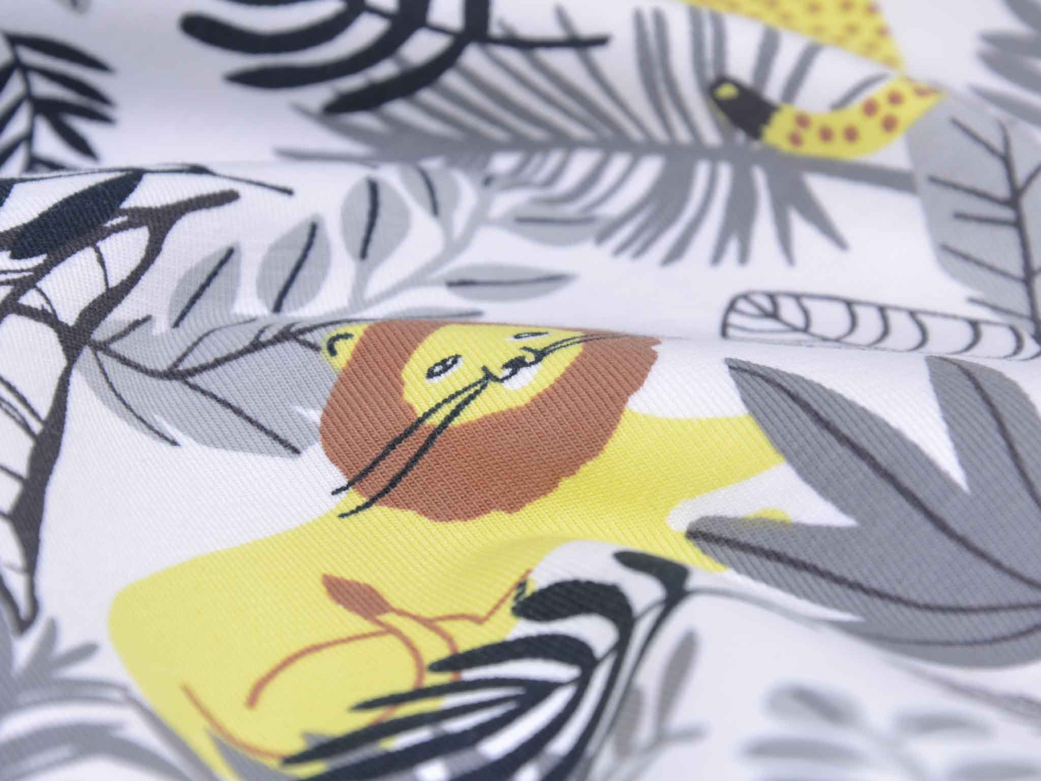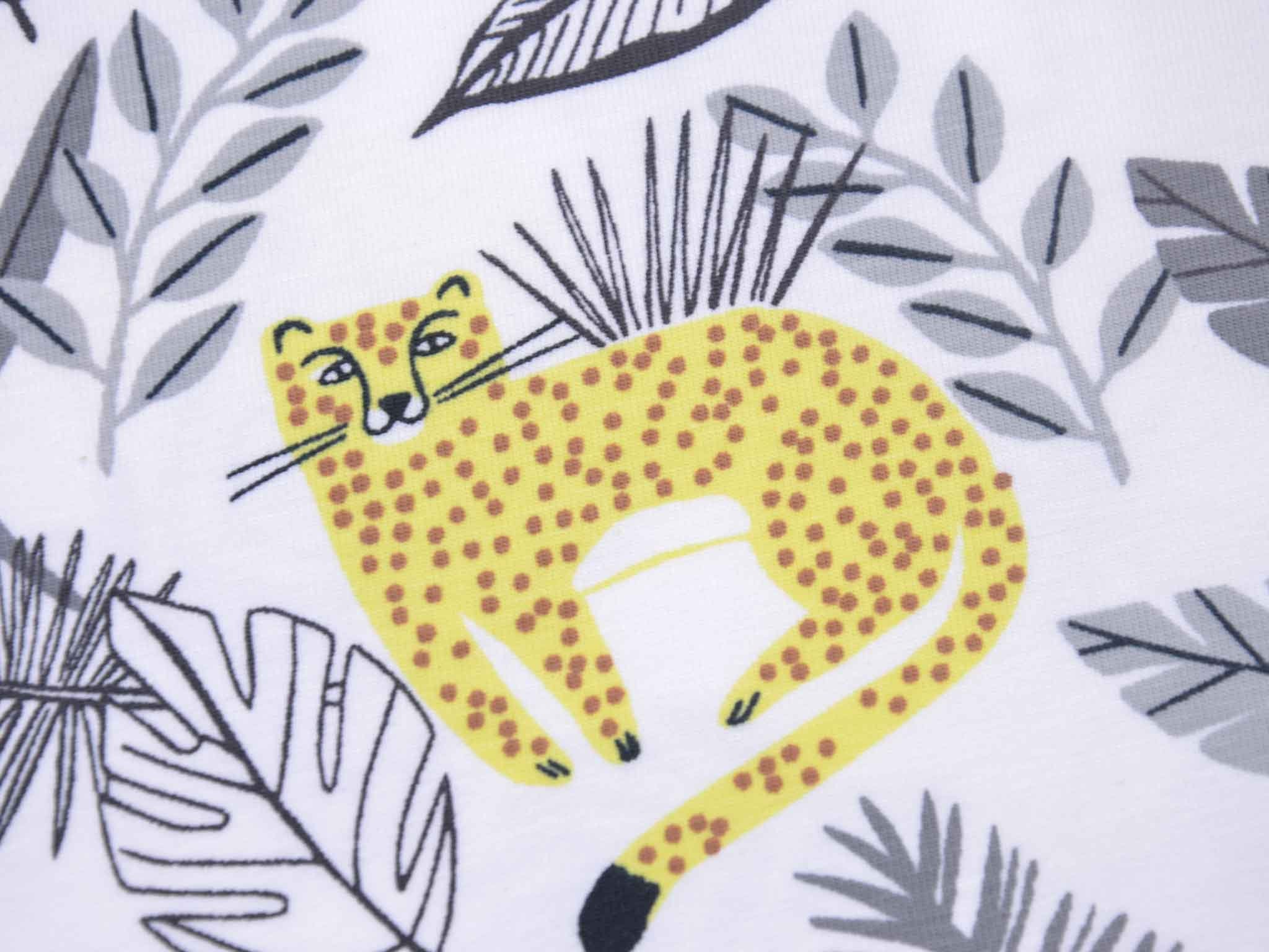 Toller Baumwoll-Jeresy von Katia. Der Stoff mit Löwen und Leoparden ist perfekt geeignet um T-Shirts, Kleider, Hosen und Röcke zu Nähen.