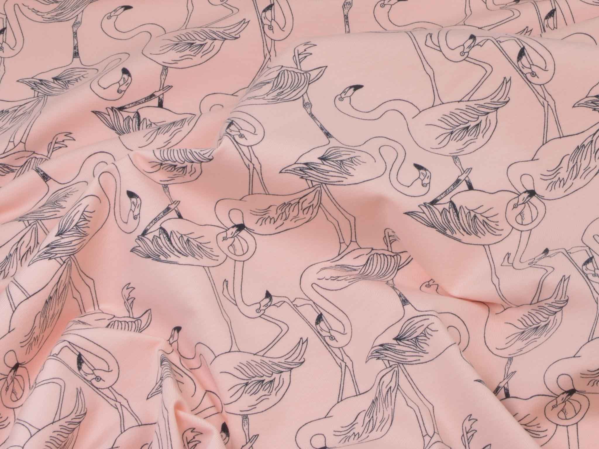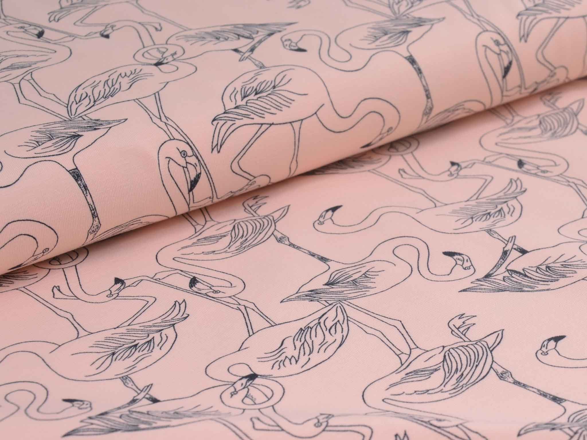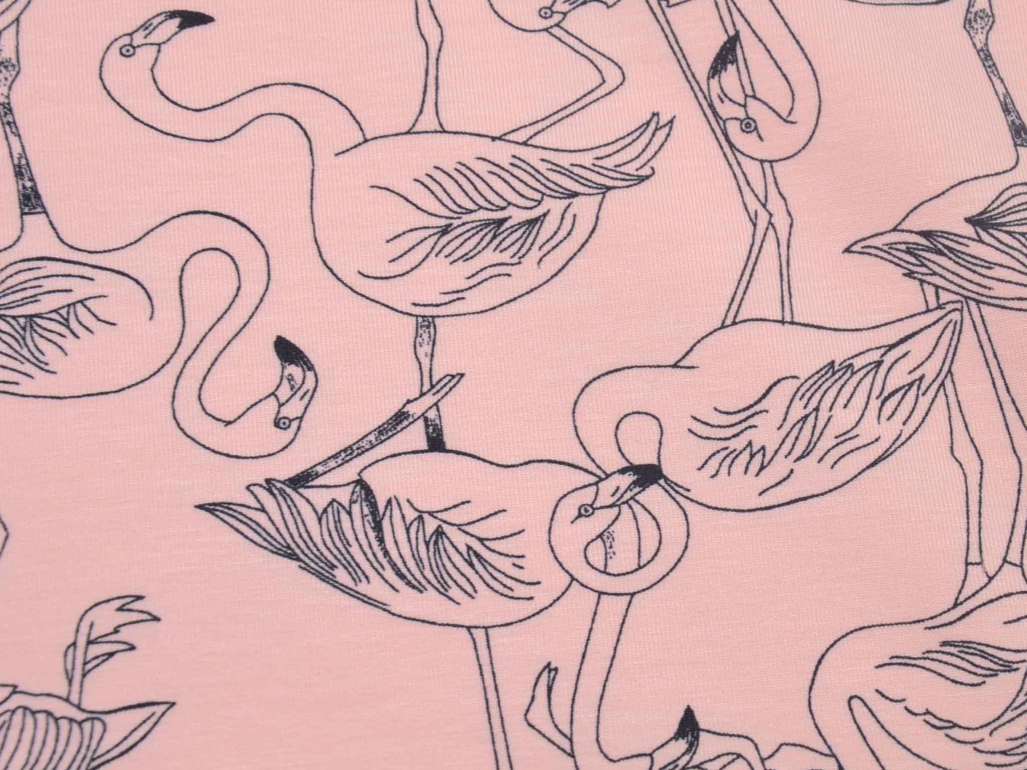Toller Baumwoll-Jeresy von Katia. Der Stoff mit Flamingos ist perfekt geeignet um T-Shirts, Kleider, Hosen und Röcke zu Nähen.