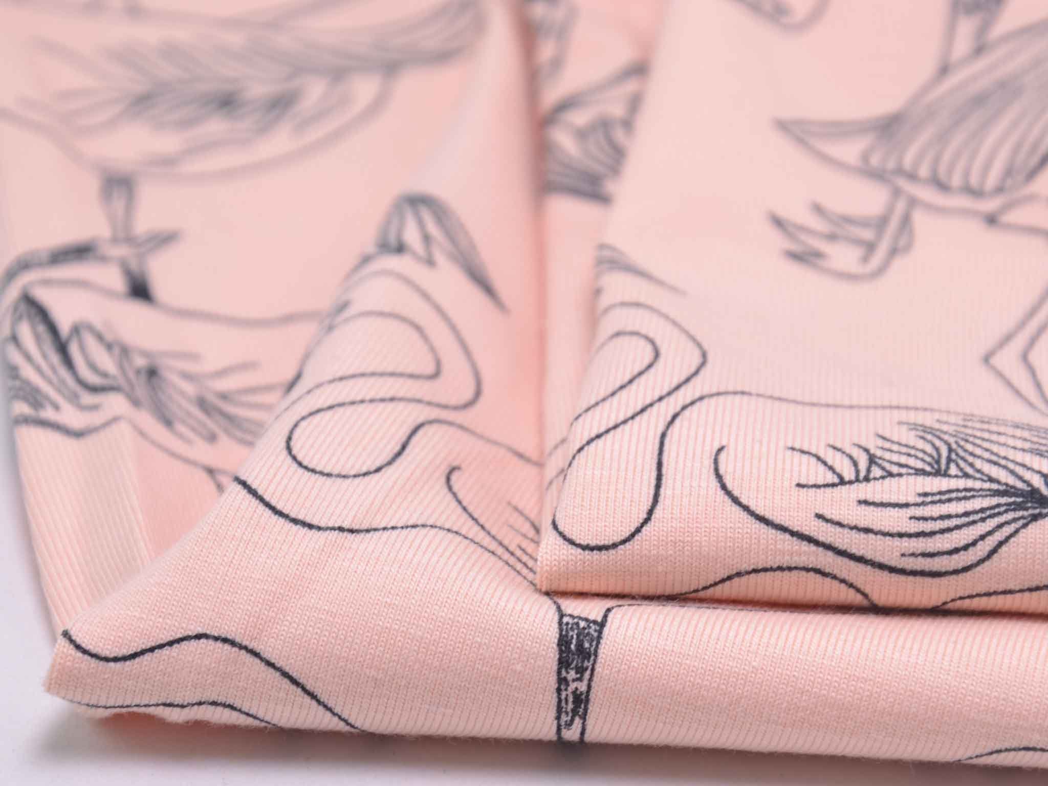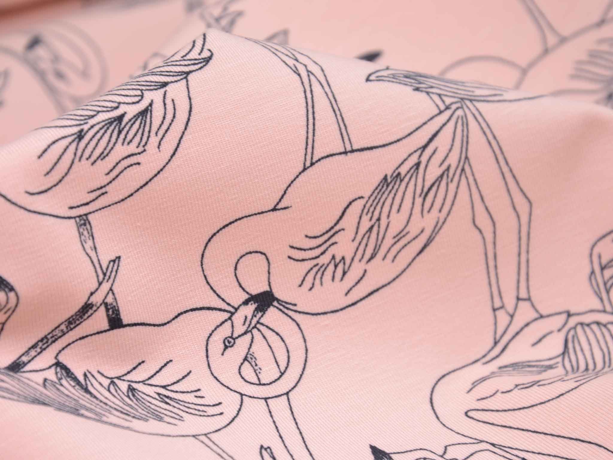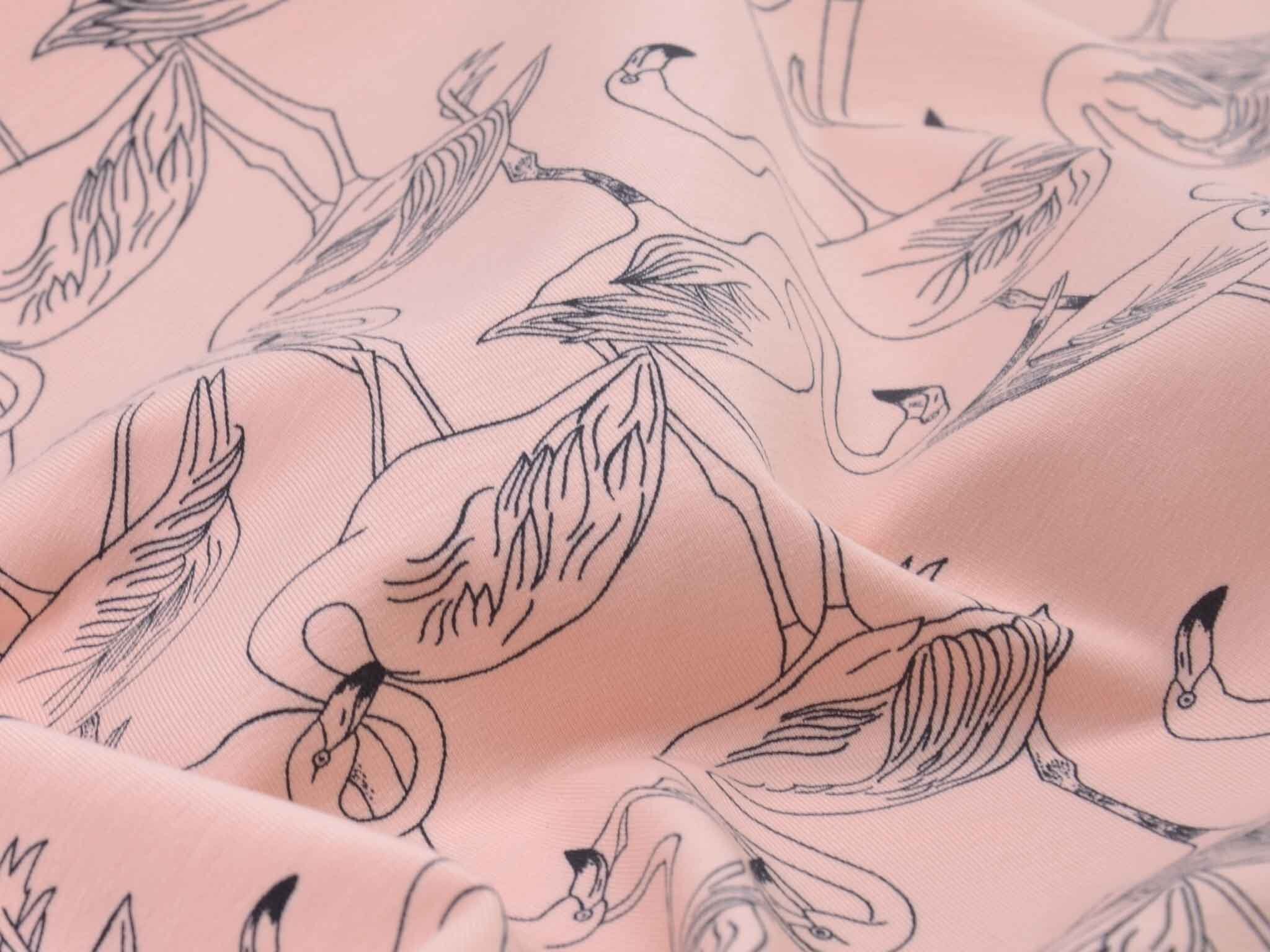 Toller Baumwoll-Jeresy von Katia. Der Stoff mit Flamingos ist perfekt geeignet um T-Shirts, Kleider, Hosen und Röcke zu Nähen.