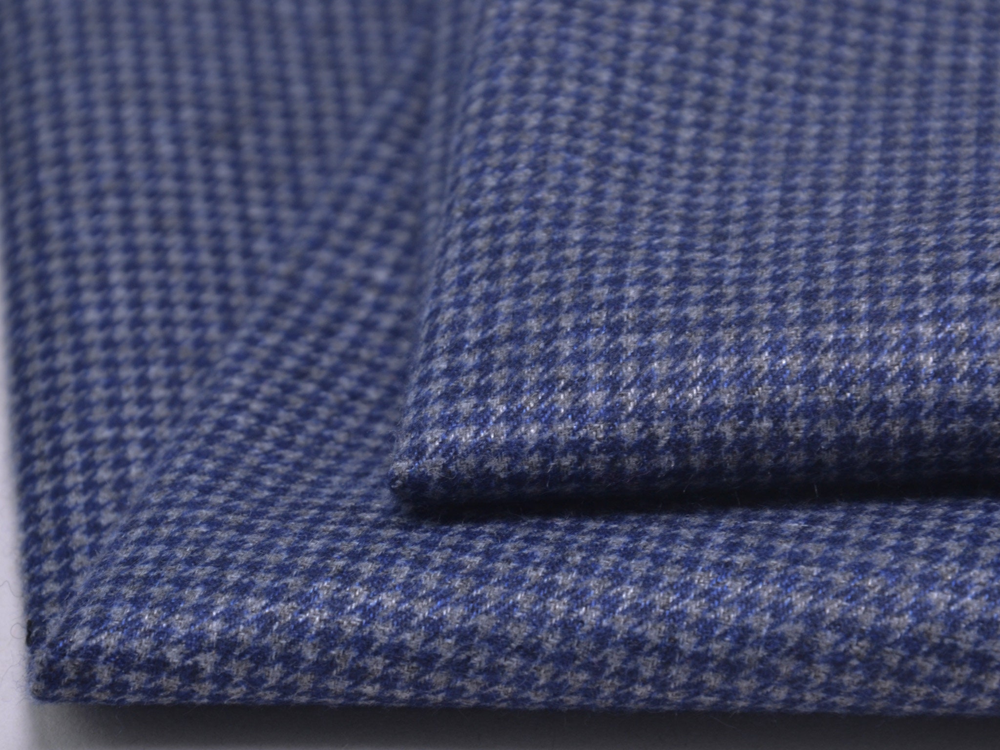 Thin fabric for jackets, raincoats, ponchos, dog coats, and much more. The right side is a silver-gray mottled and water-repellent. The left side is blue-gray with a houndstooth pattern. The left side feels somewhat like flannel. The special thing about this fabric is that it doesn't require any additional lining. This allows you to sew quick, fashionable clothing and can also trim the fabric edges with bias binding.