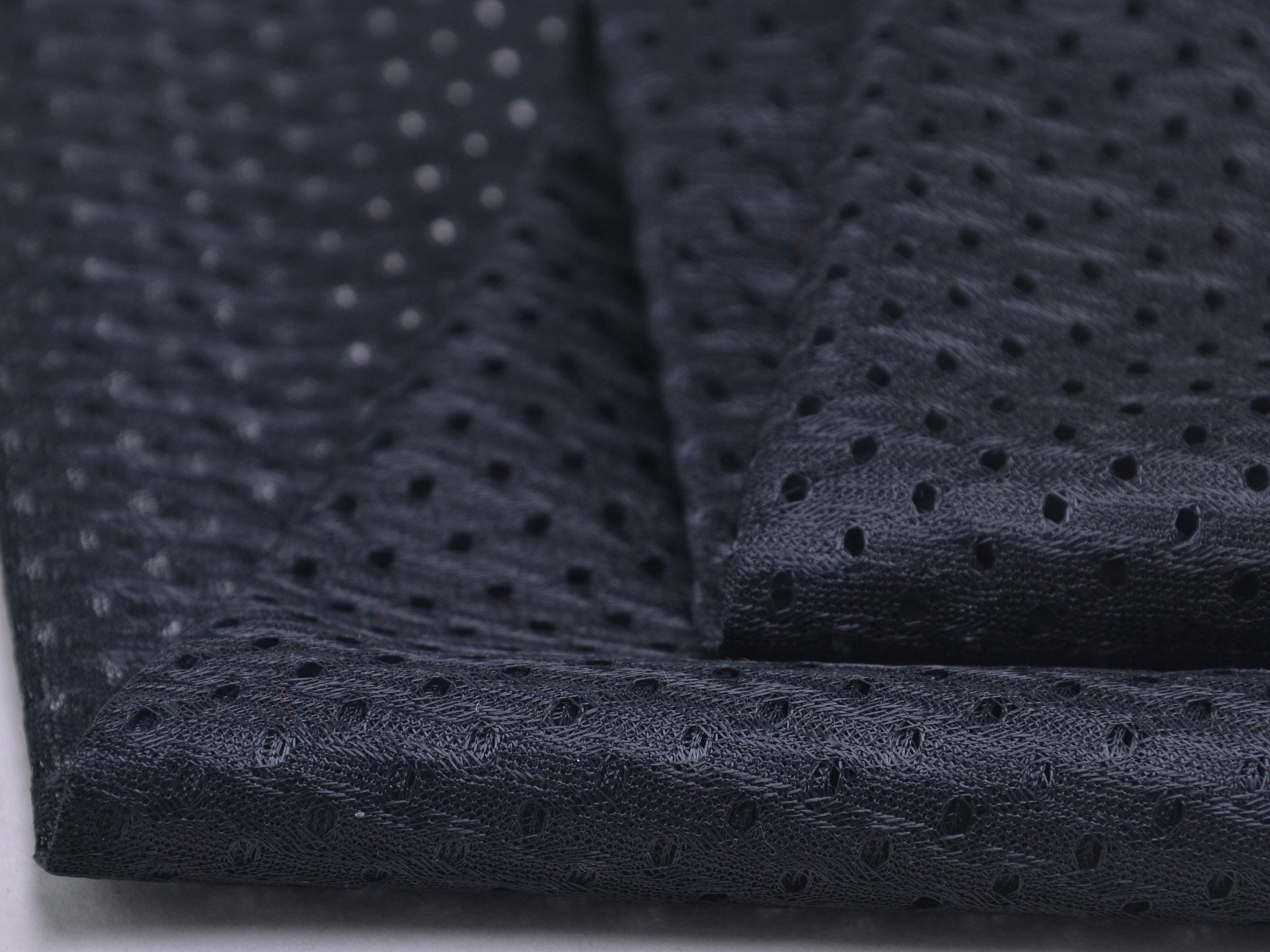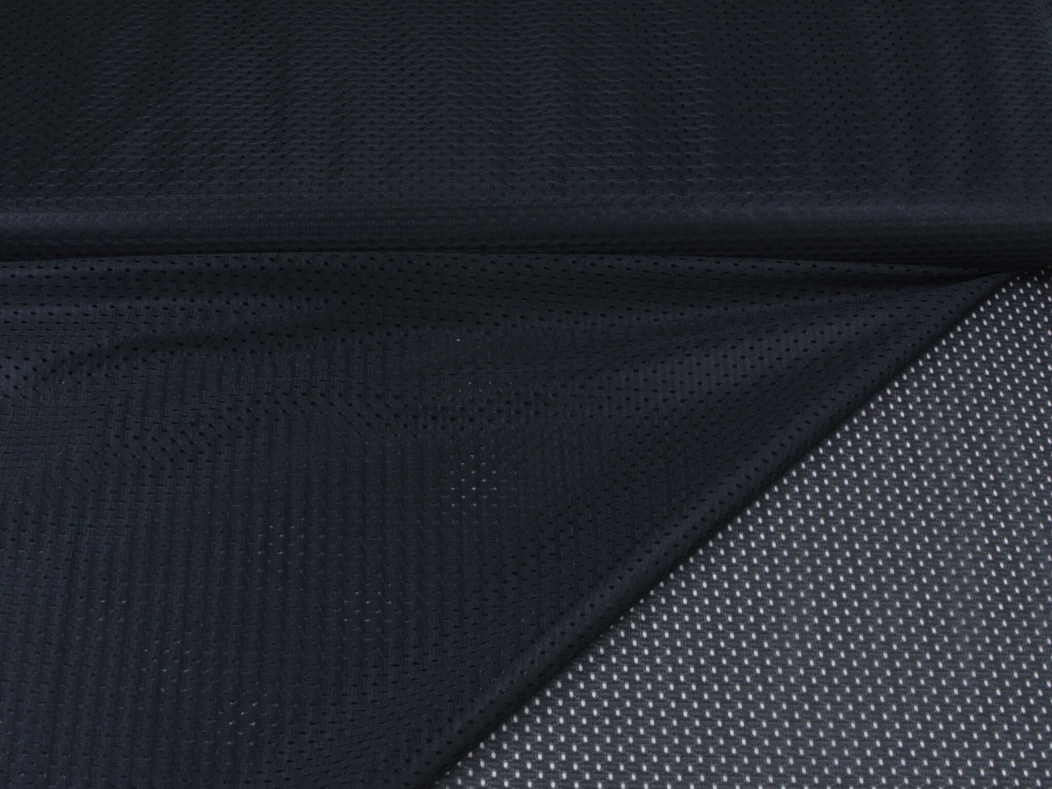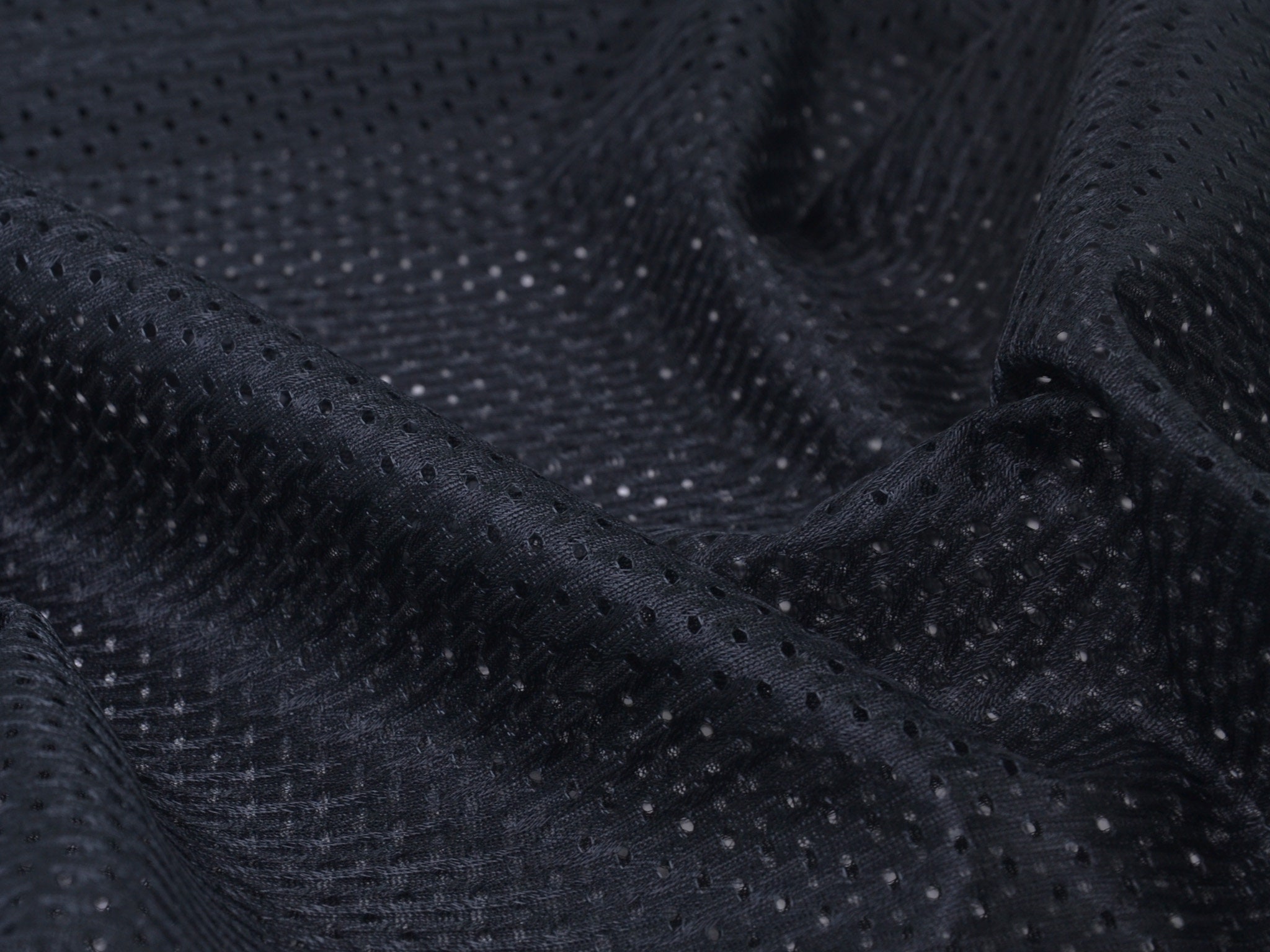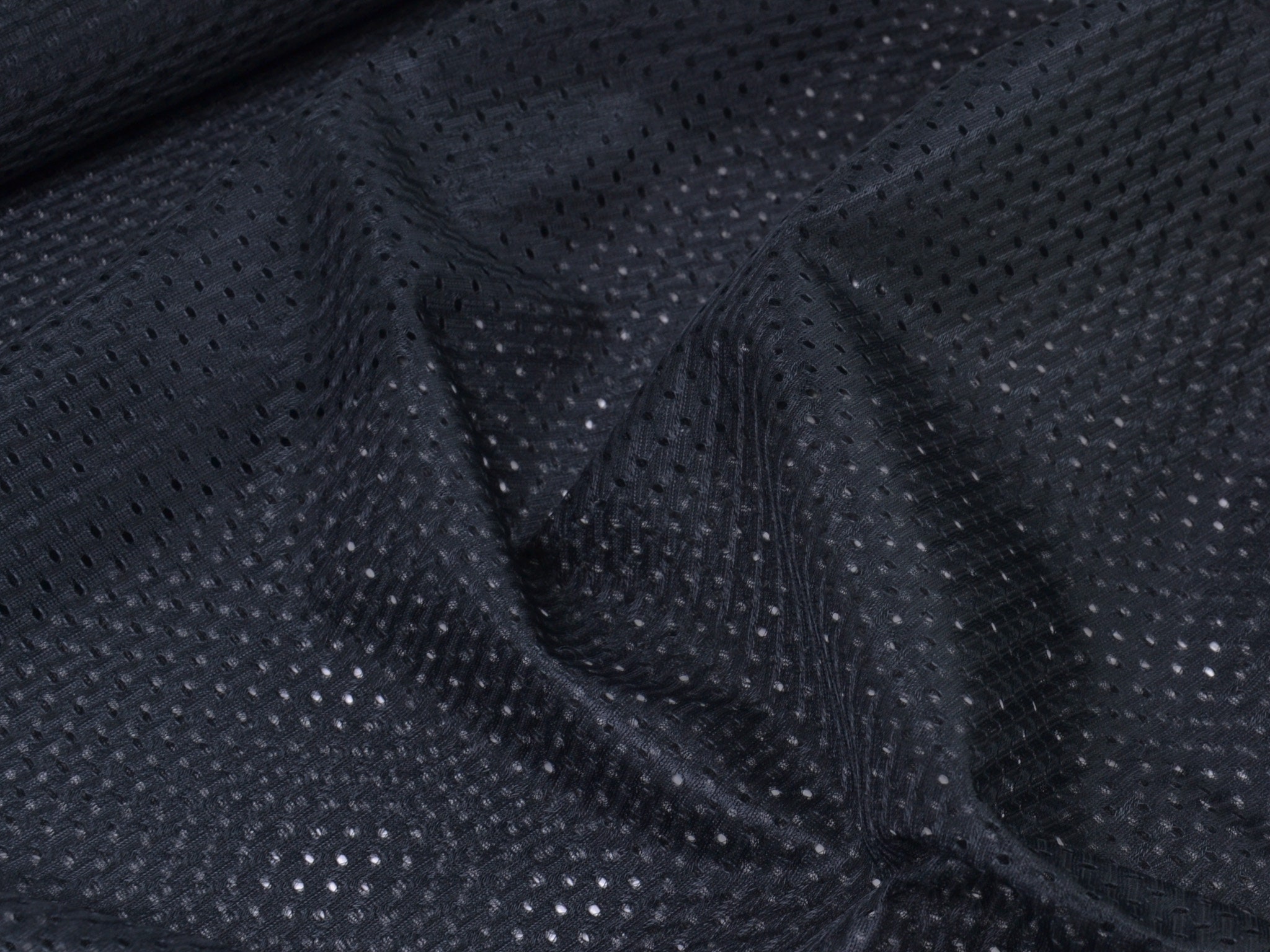 Plain black lining fabric for sportswear. The fabric is thin, stretchy, and breathable thanks to the holes. Sew the fabric as a lining for your sports jackets, sweatpants, and much more.