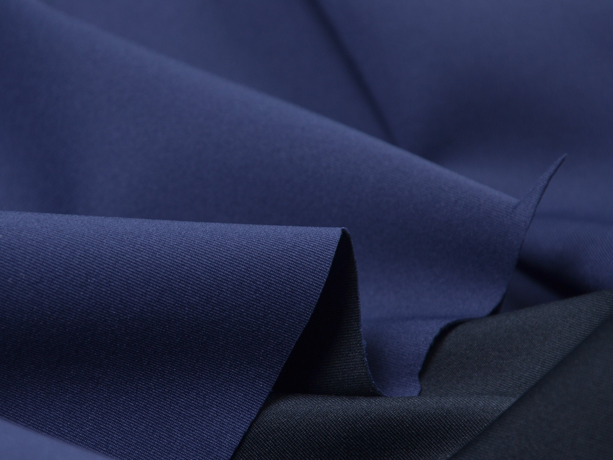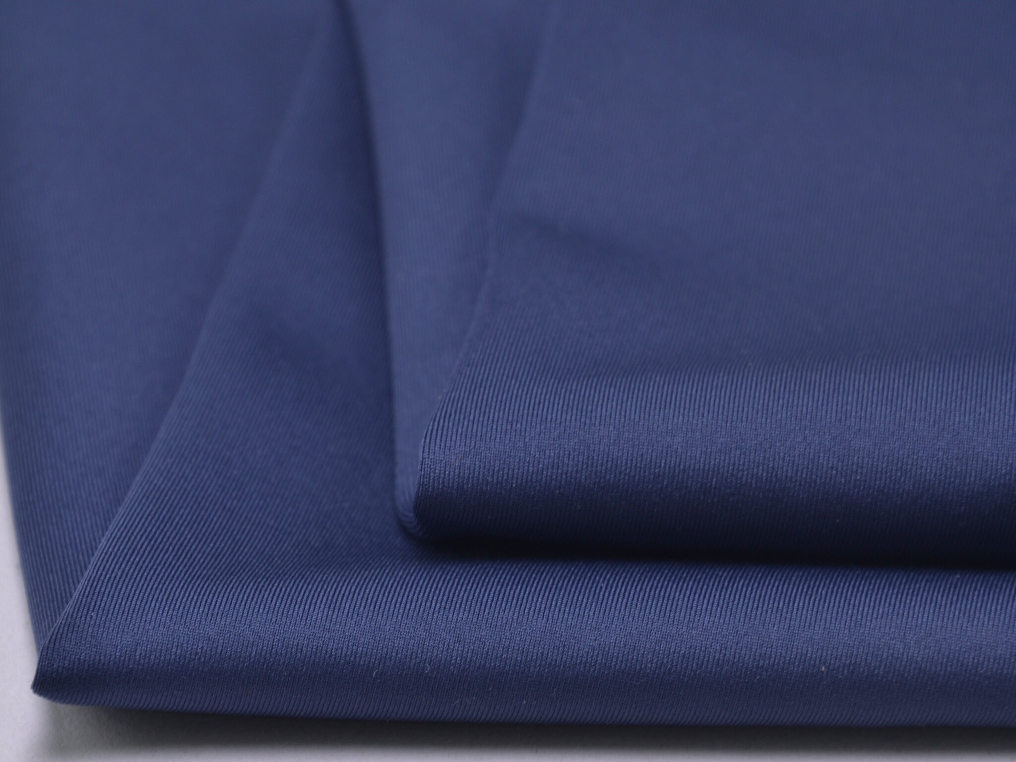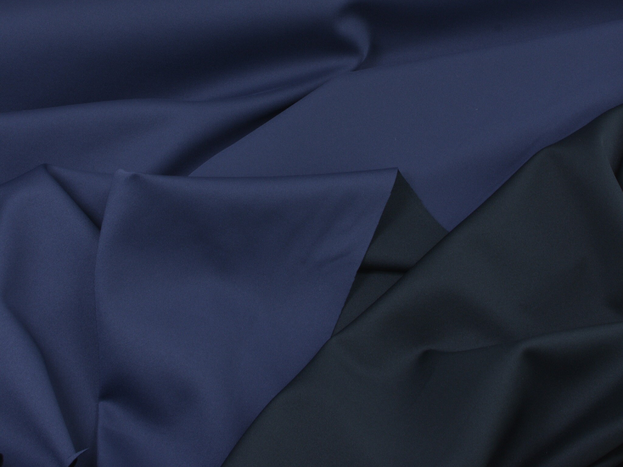Dünner, leichter, glatt Stoff für Sportbekleidung. Der Stoff ist von beiden Seiten zu verwenden. Die eine Seite ist mittelblau, die andere dunkelblau. Der Stoff ist elastisch. Nähe dir daraus Badeanzuge, Sportleggings, Bikinis und vieles mehr.