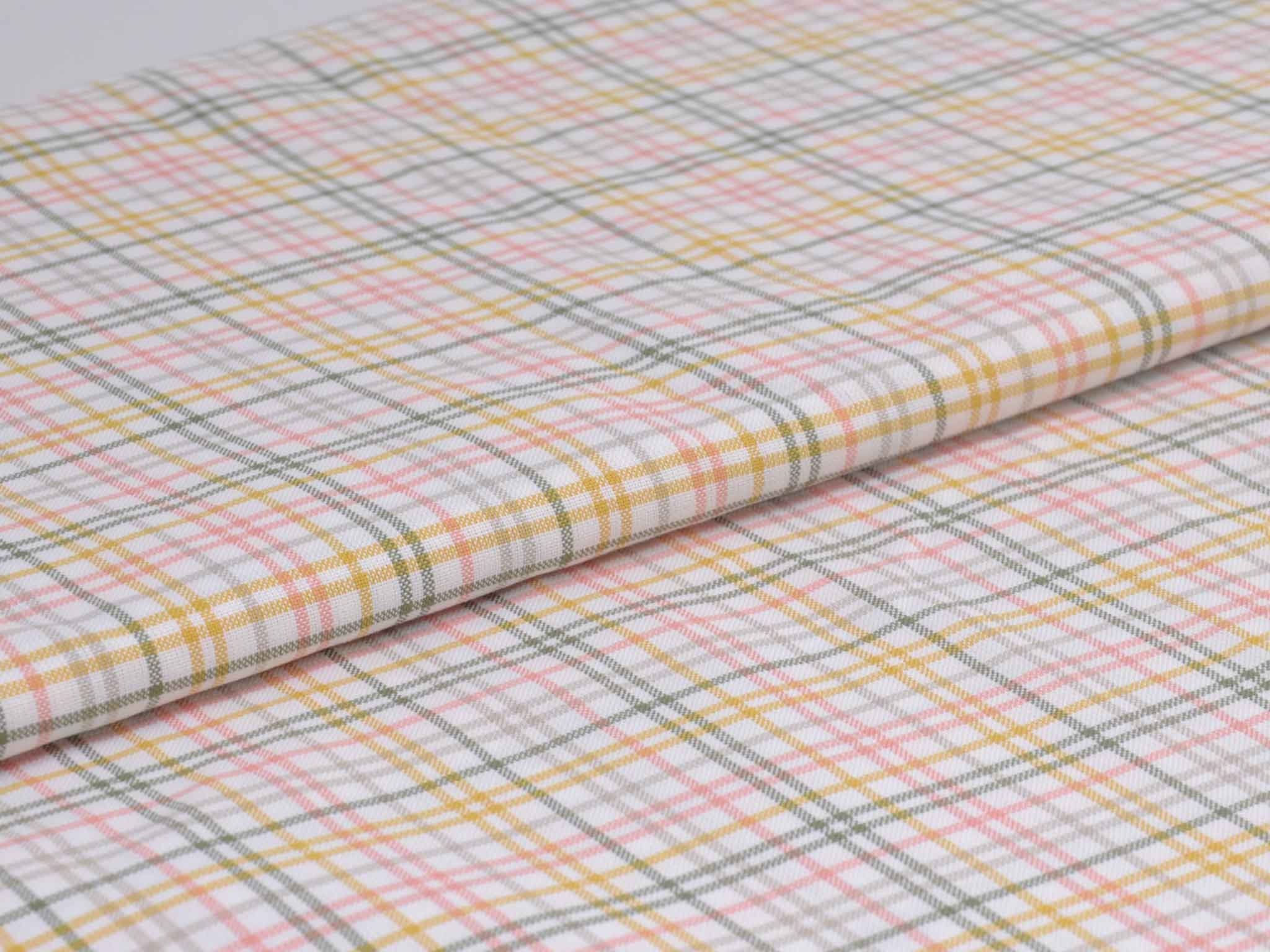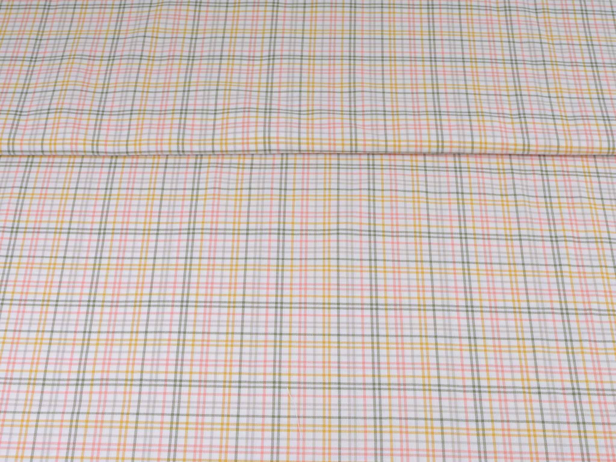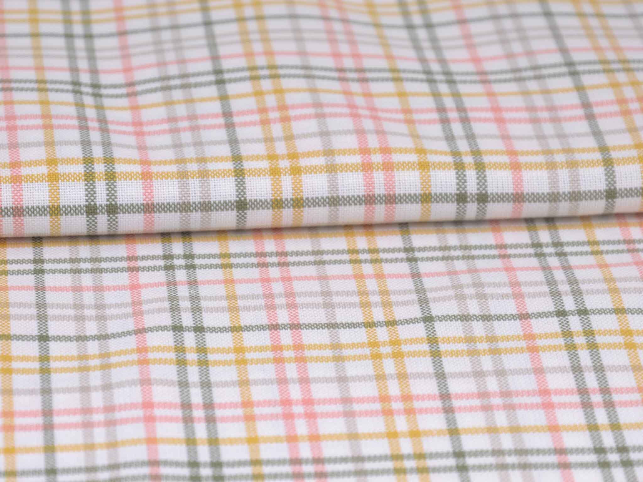 Sehr hochwertiger Webstoff aus Baumwolle von Westfalenstoffe. Der Stoff ist weiß, grün, rosa, gelb kariert. Der Stoff ist nicht gedruckt, sondern gewebt. Er ist glatt und matt. Nähe daraus Blusen, Kleider, Röcke, Kissen, Taschen und vieles mehr. Der Stoff ist made in Germany.