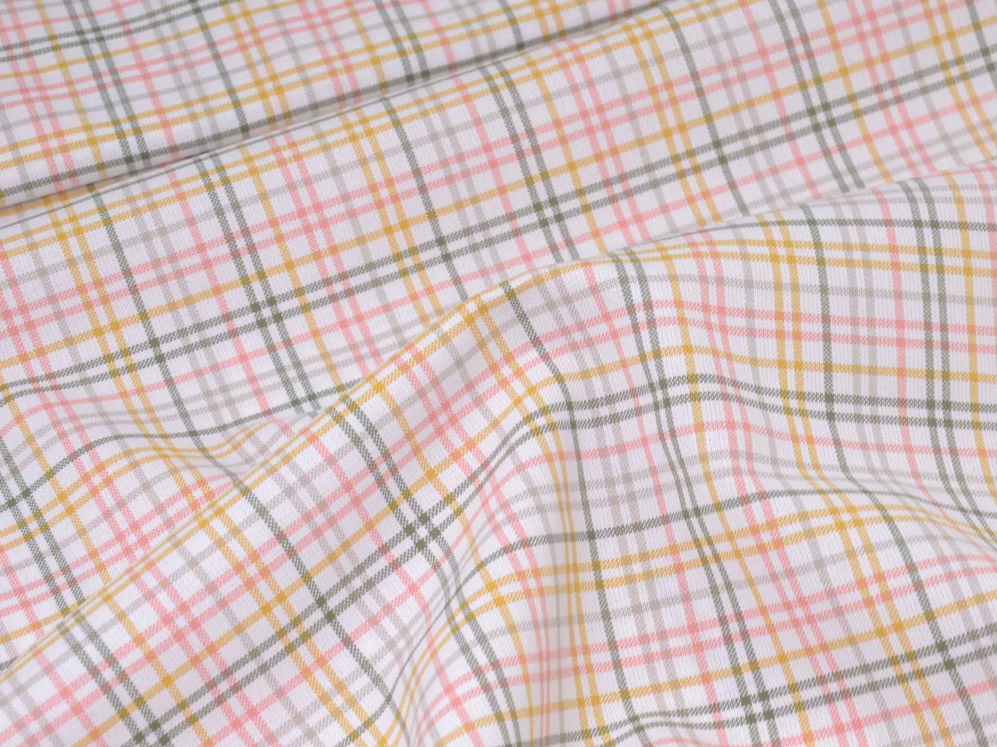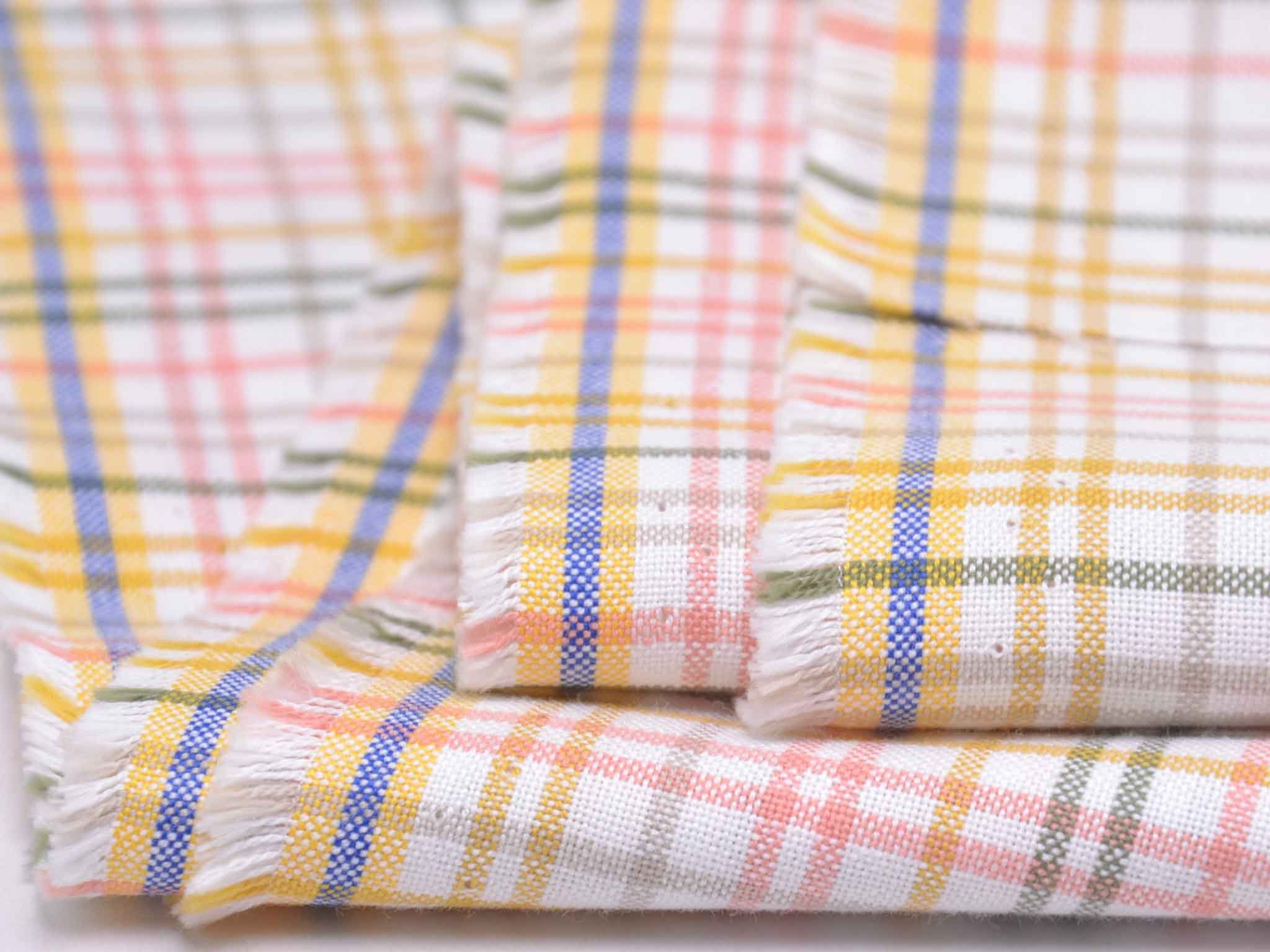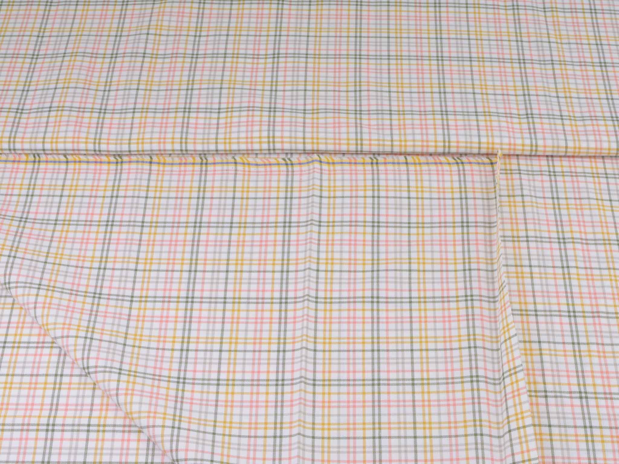 Sehr hochwertiger Webstoff aus Baumwolle von Westfalenstoffe. Der Stoff ist weiß, grün, rosa, gelb kariert. Der Stoff ist nicht gedruckt, sondern gewebt. Er ist glatt und matt. Nähe daraus Blusen, Kleider, Röcke, Kissen, Taschen und vieles mehr. Der Stoff ist made in Germany.