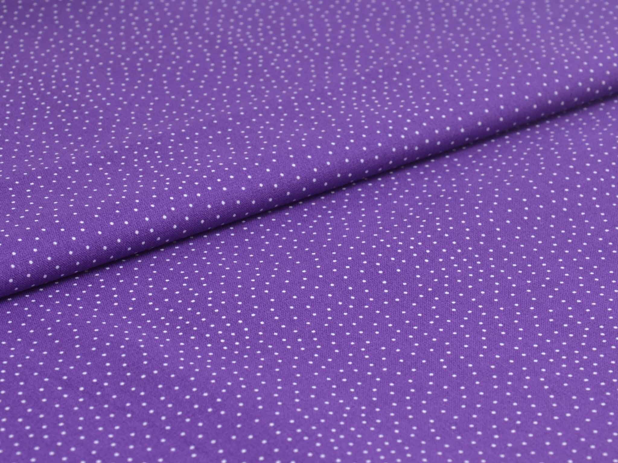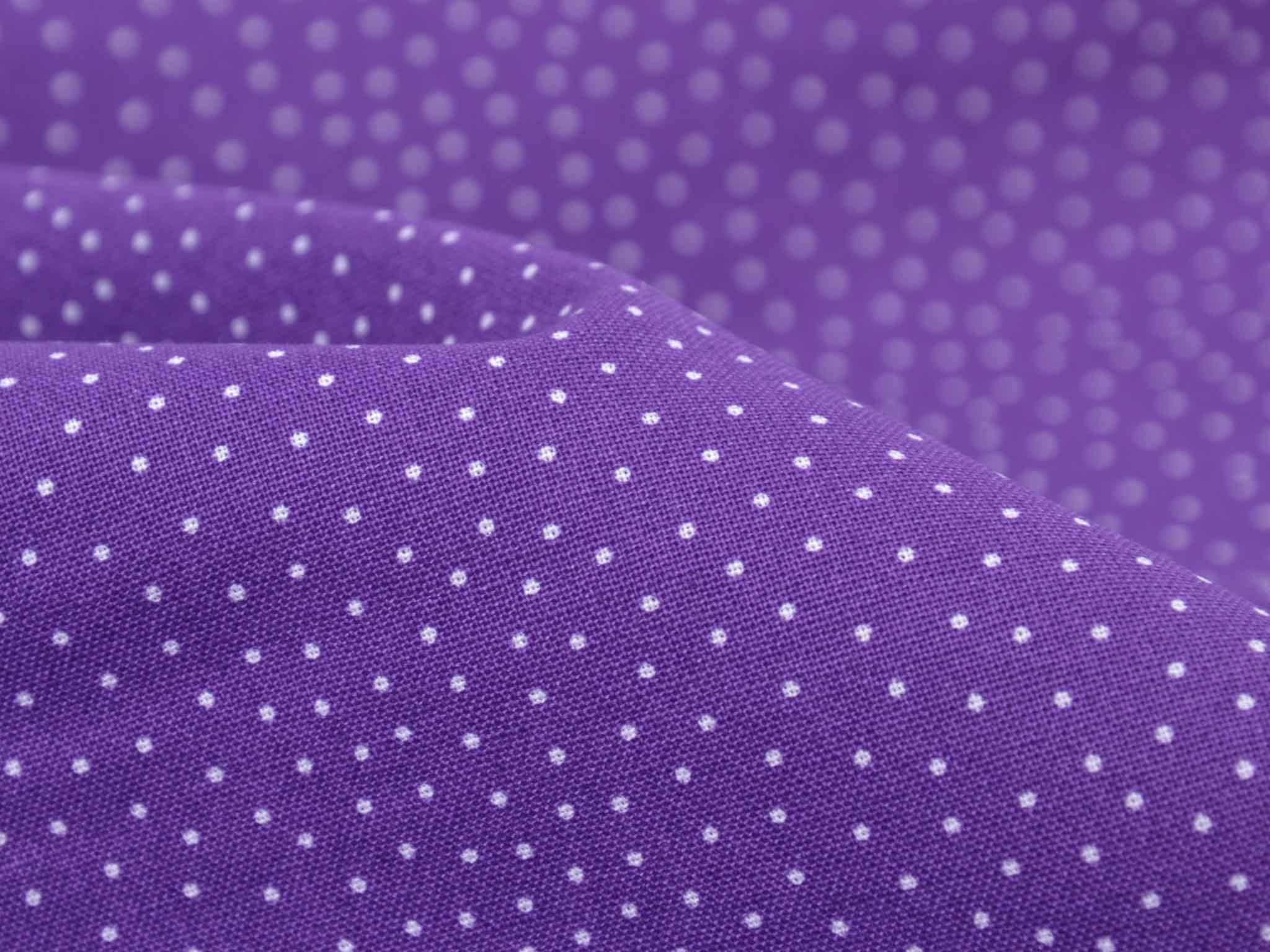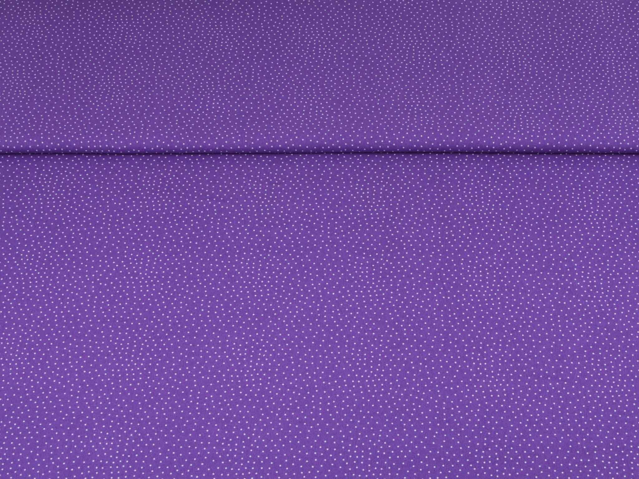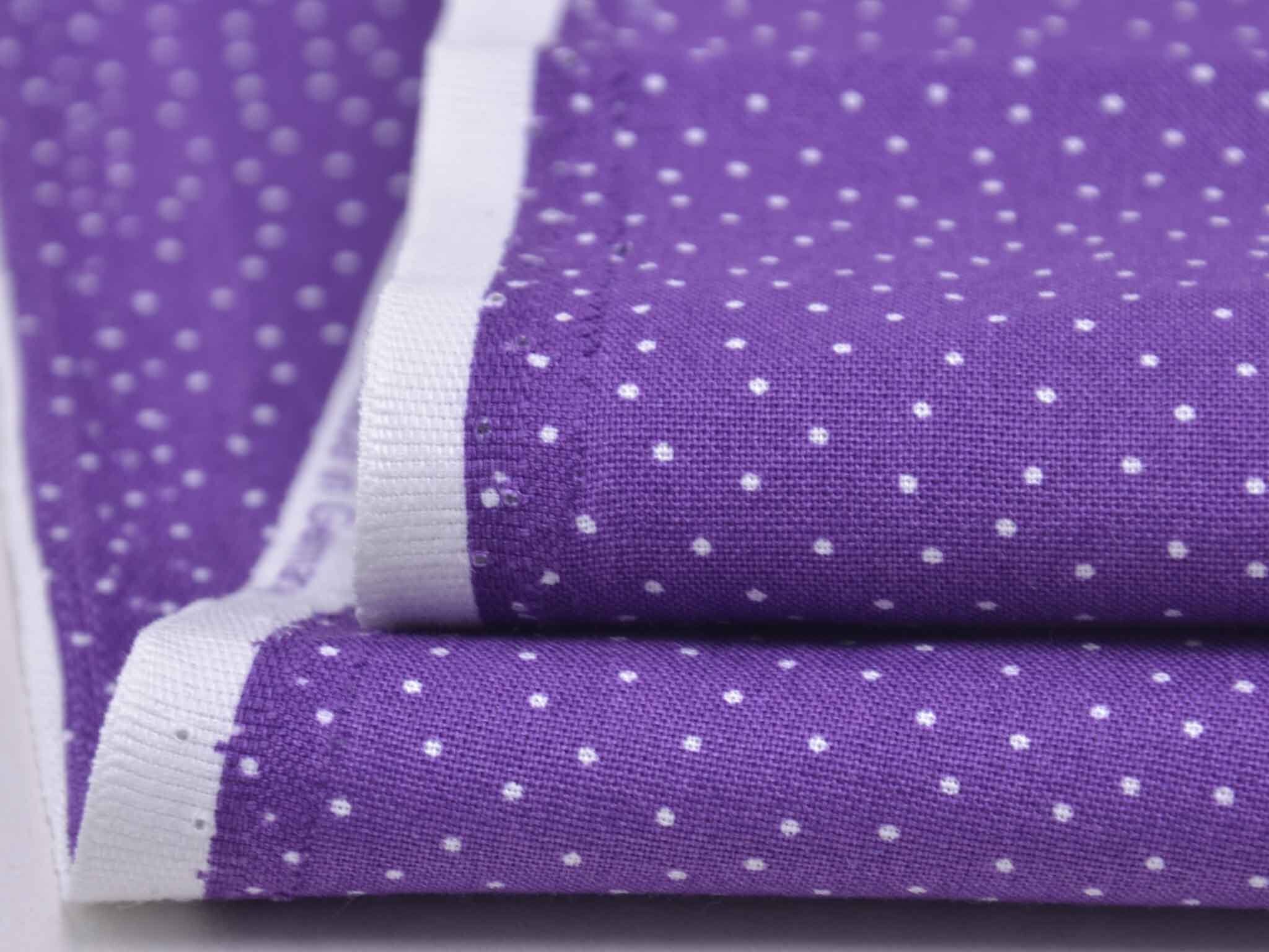 Sehr hochwertiger Webstoff aus Baumwolle von Westfalenstoffe. Der Digitaldruckstoff ist lila mit kleinen, weißen Punkten. Er ist glatt und matt. Nähe daraus Blusen, Kleider, Röcke, Kissen, Taschen und vieles mehr. Der Stoff ist made in Germany.