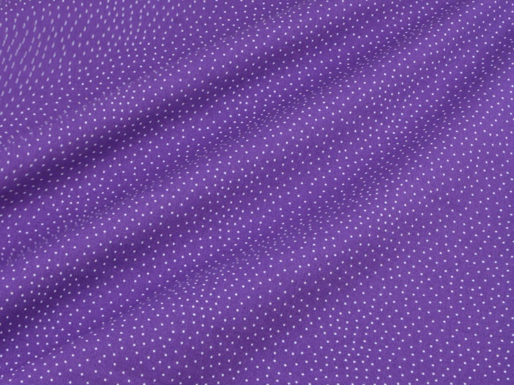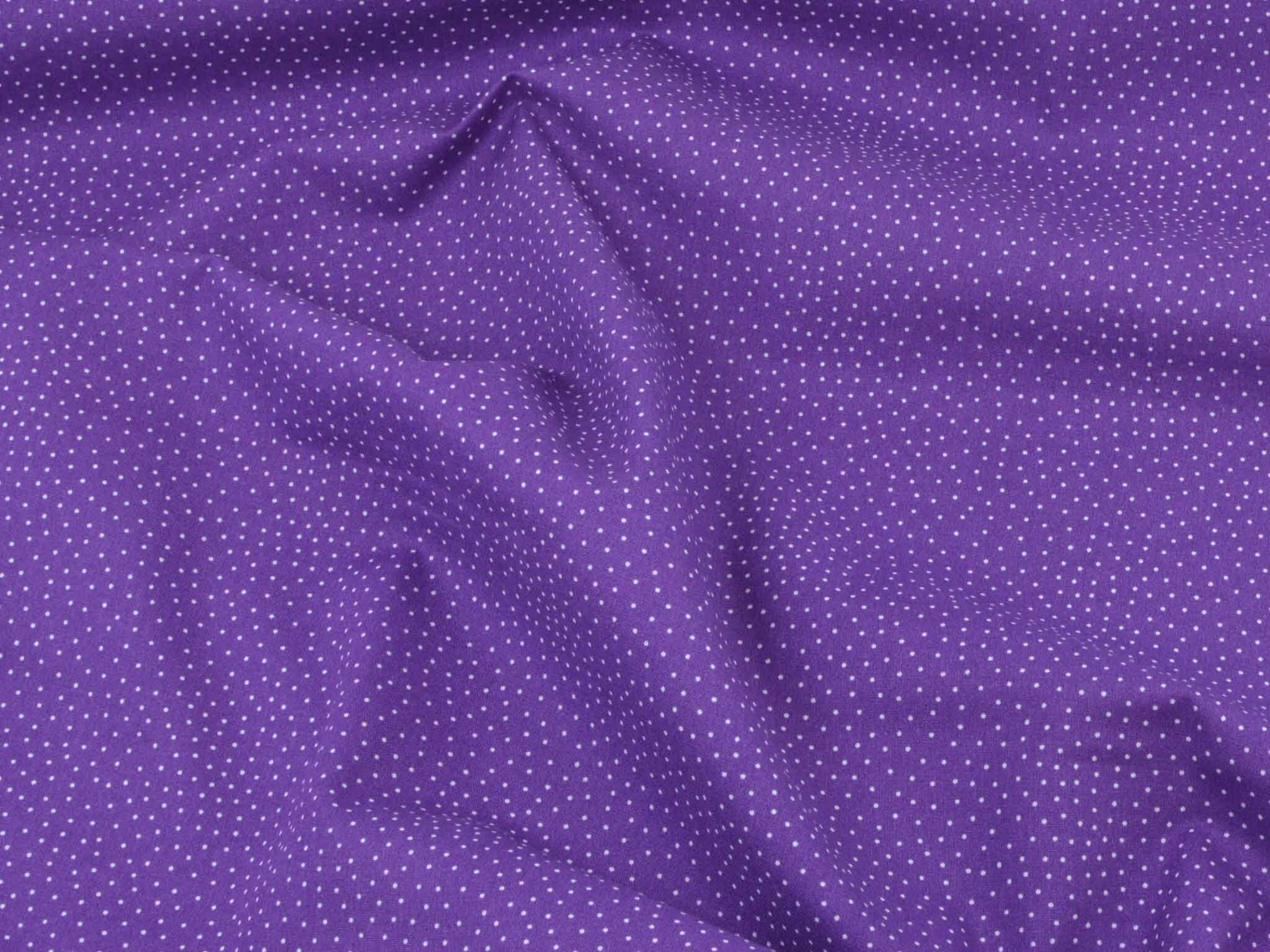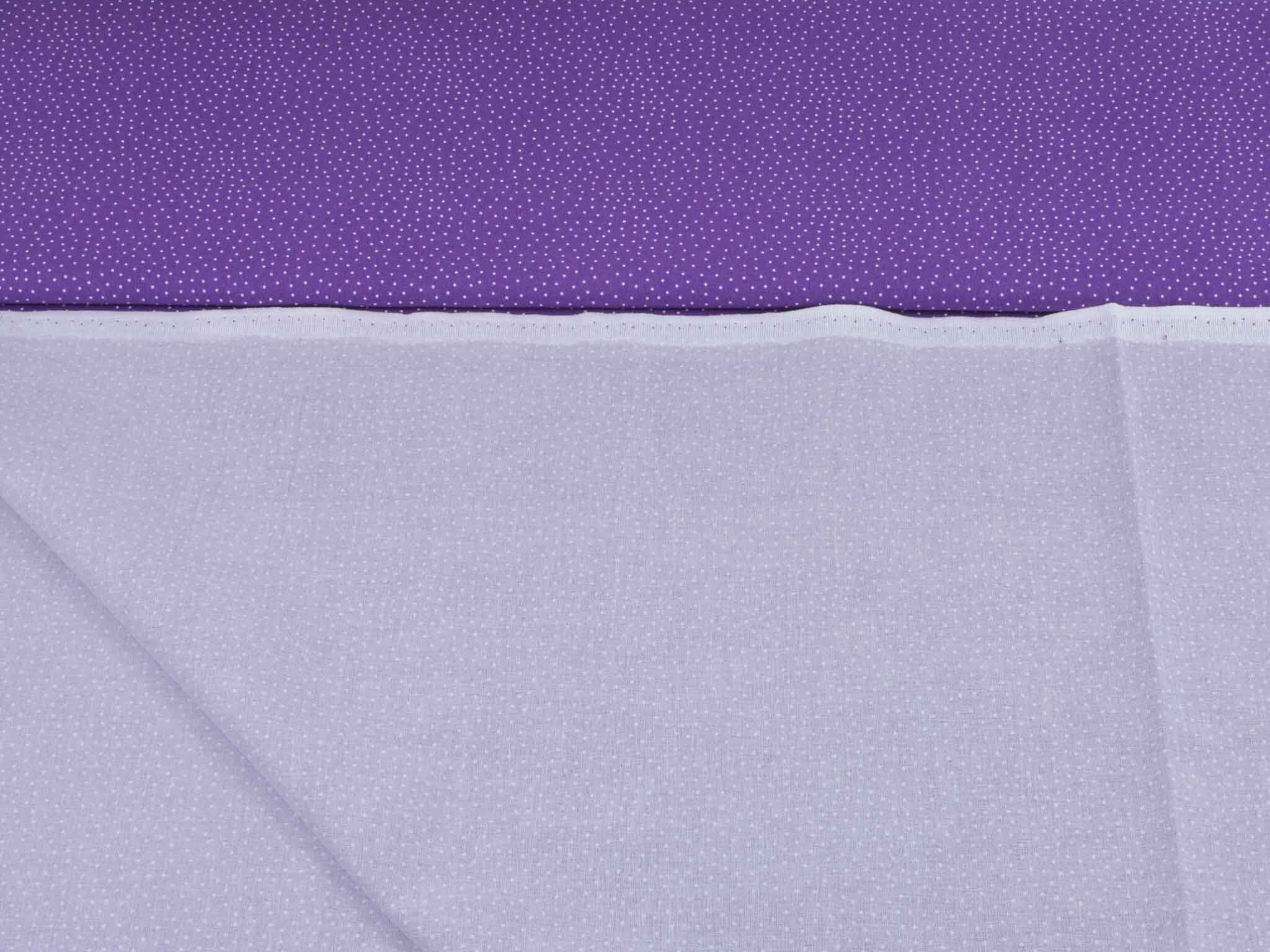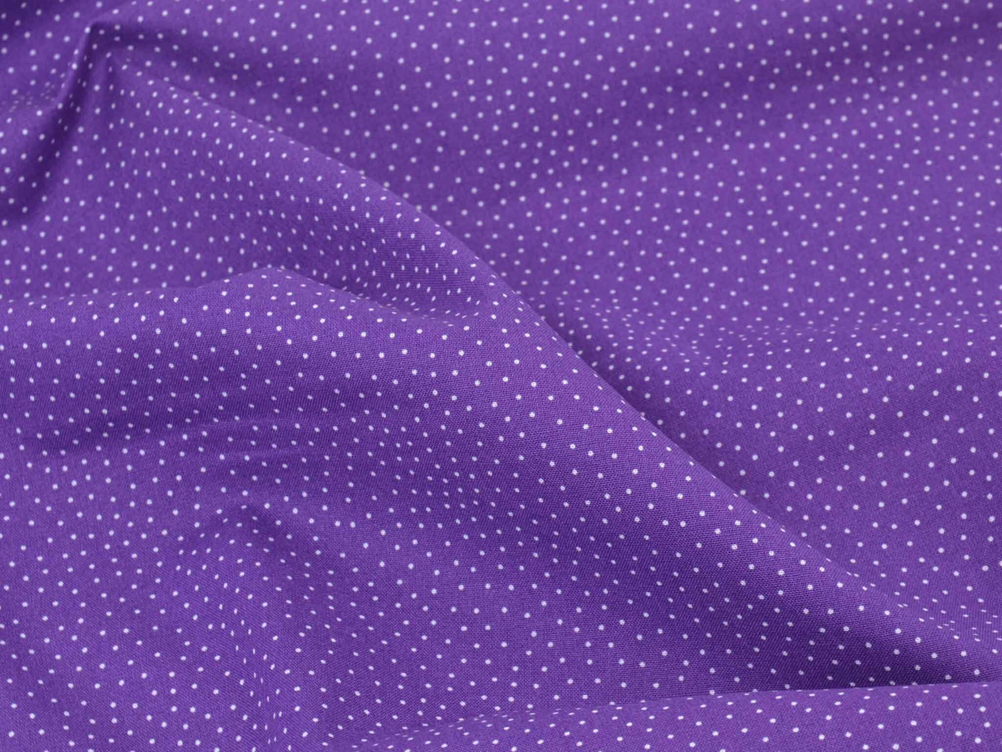 Sehr hochwertiger Webstoff aus Baumwolle von Westfalenstoffe. Der Digitaldruckstoff ist lila mit kleinen, weißen Punkten. Er ist glatt und matt. Nähe daraus Blusen, Kleider, Röcke, Kissen, Taschen und vieles mehr. Der Stoff ist made in Germany.