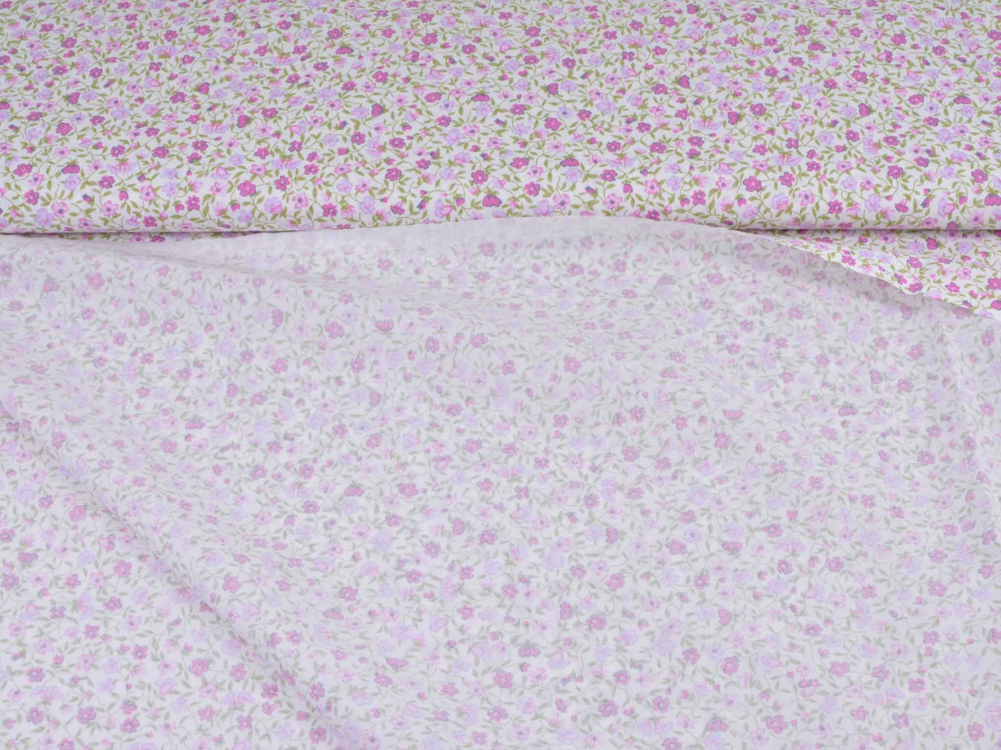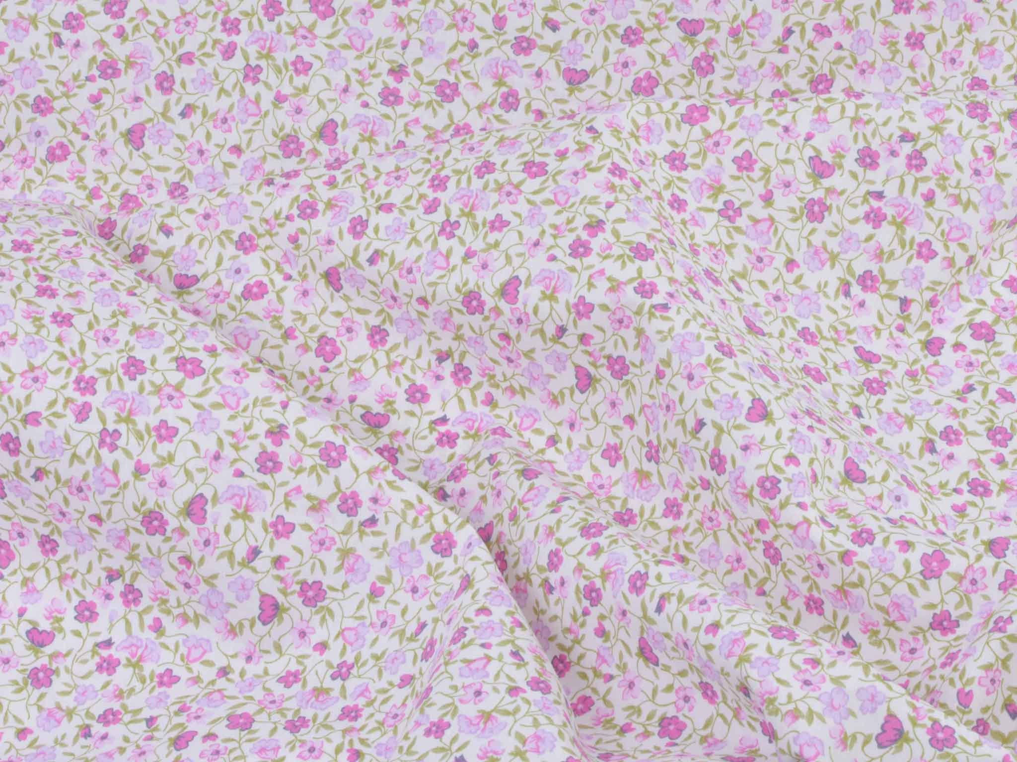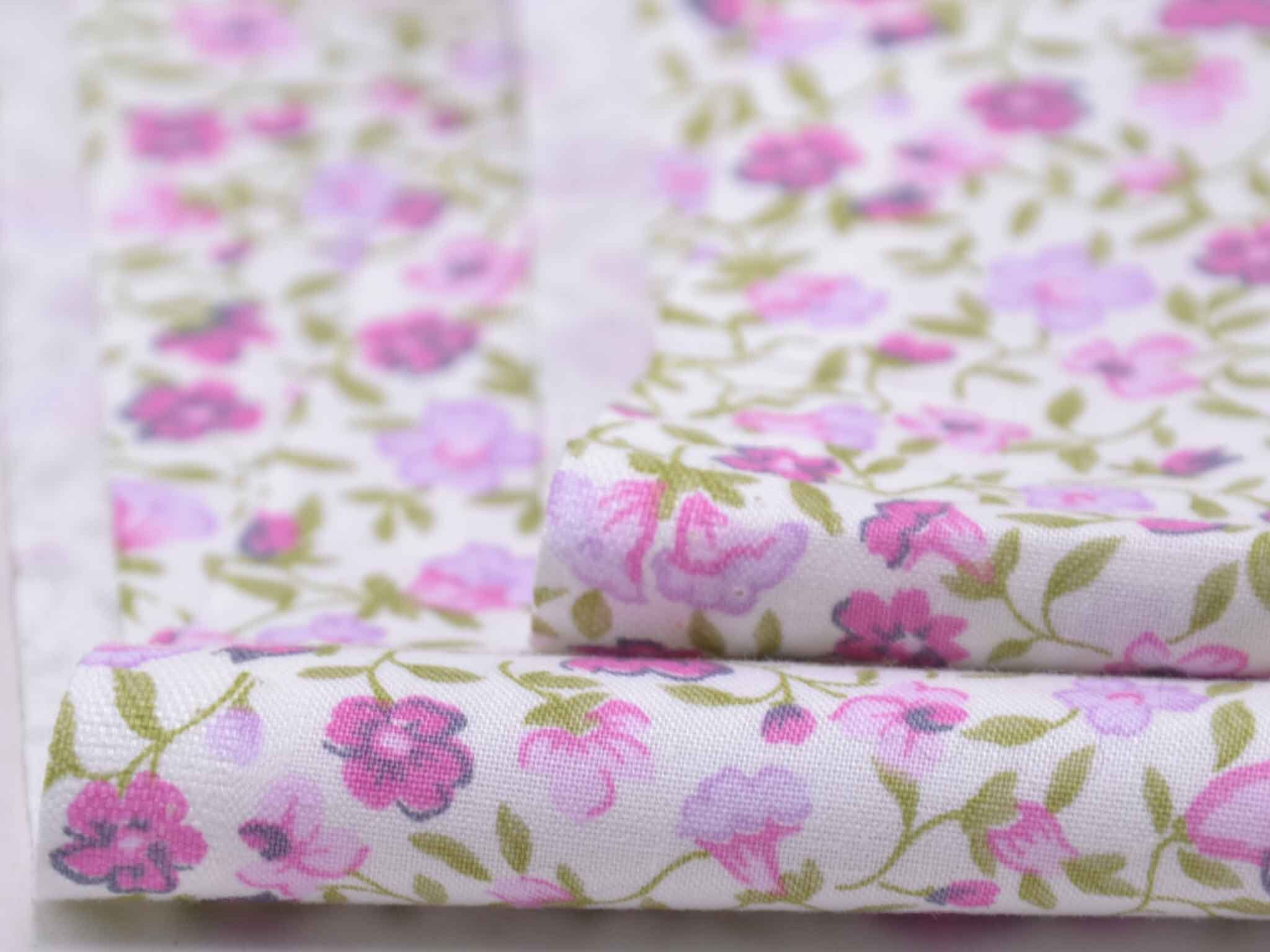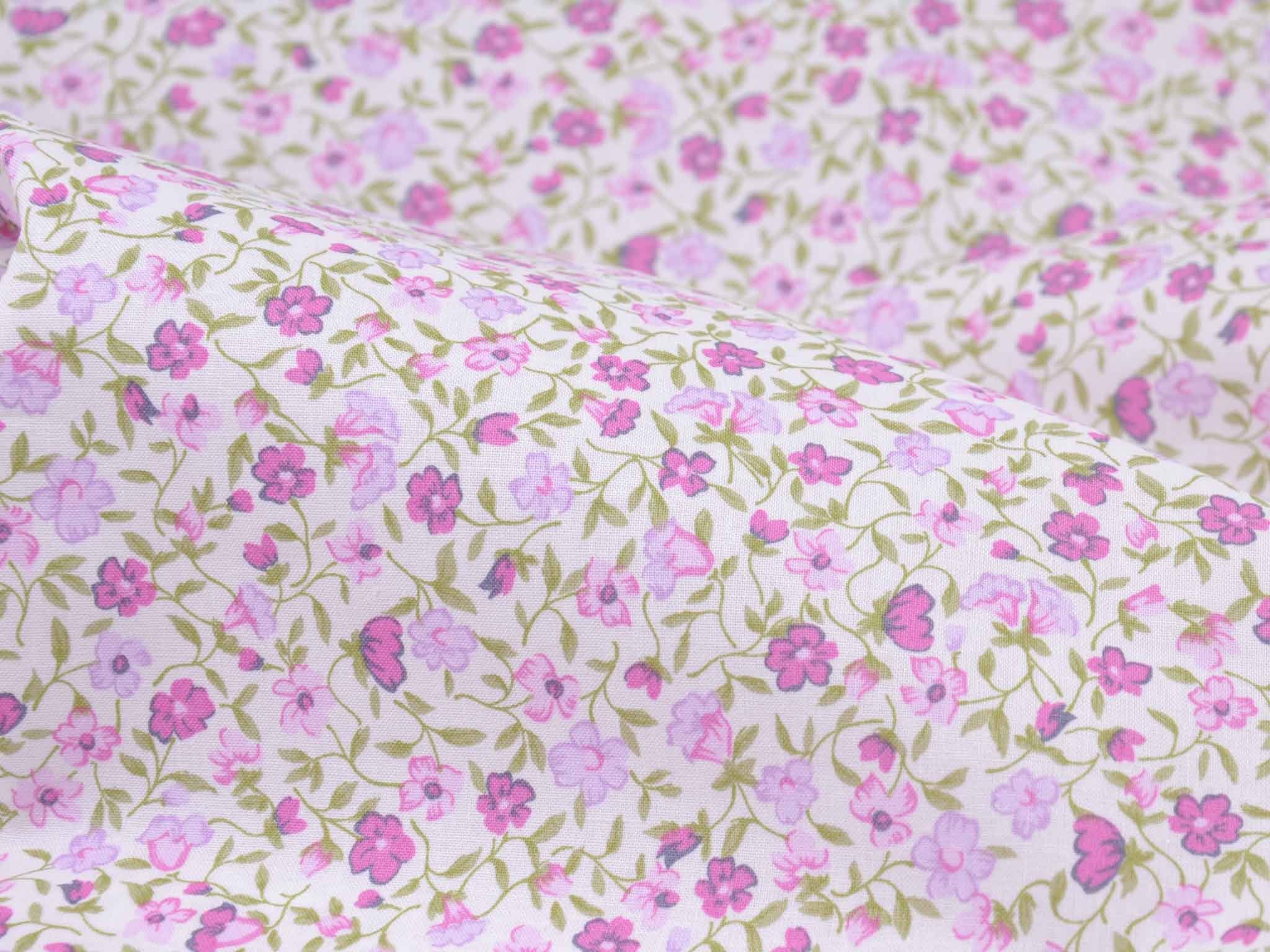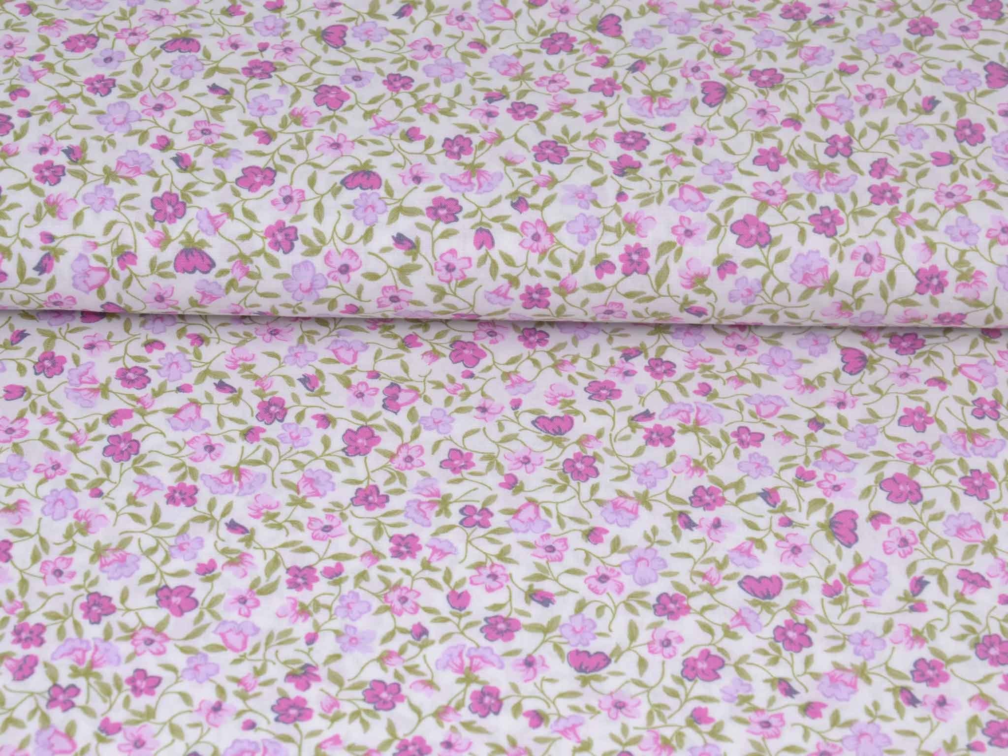 Sehr hochwertiger Webstoff aus Baumwolle von Westfalenstoffe. Der Druckstoff ist weiß mit kleinen rosa und lila Blümchen. Er ist glatt und matt. Nähe daraus Blusen, Kleider, Röcke, Kissen, Taschen und vieles mehr. Der Stoff ist made in Germany.