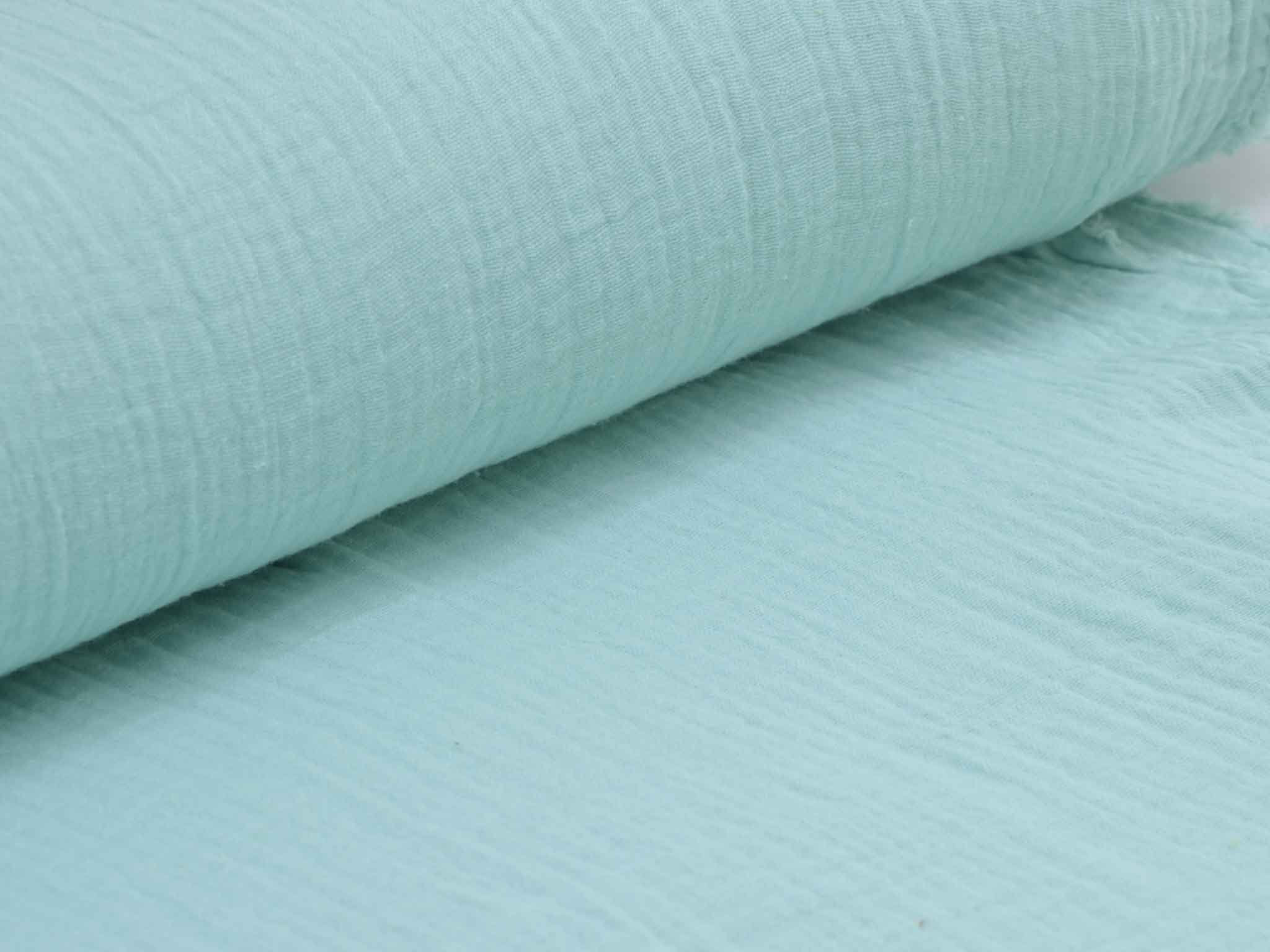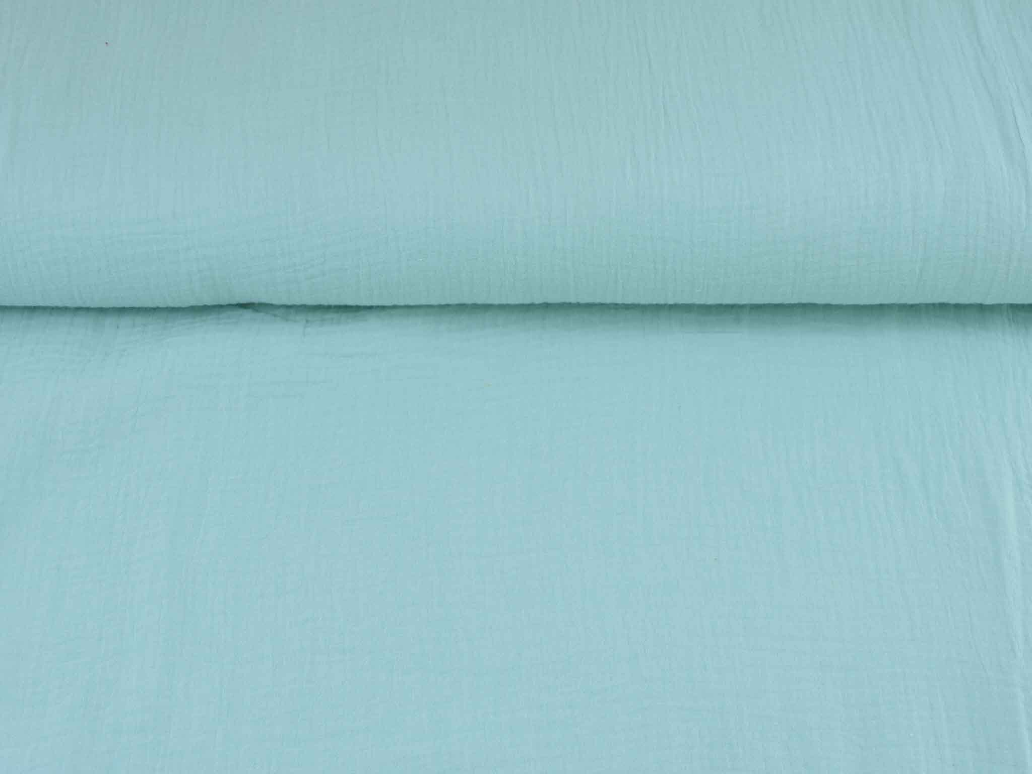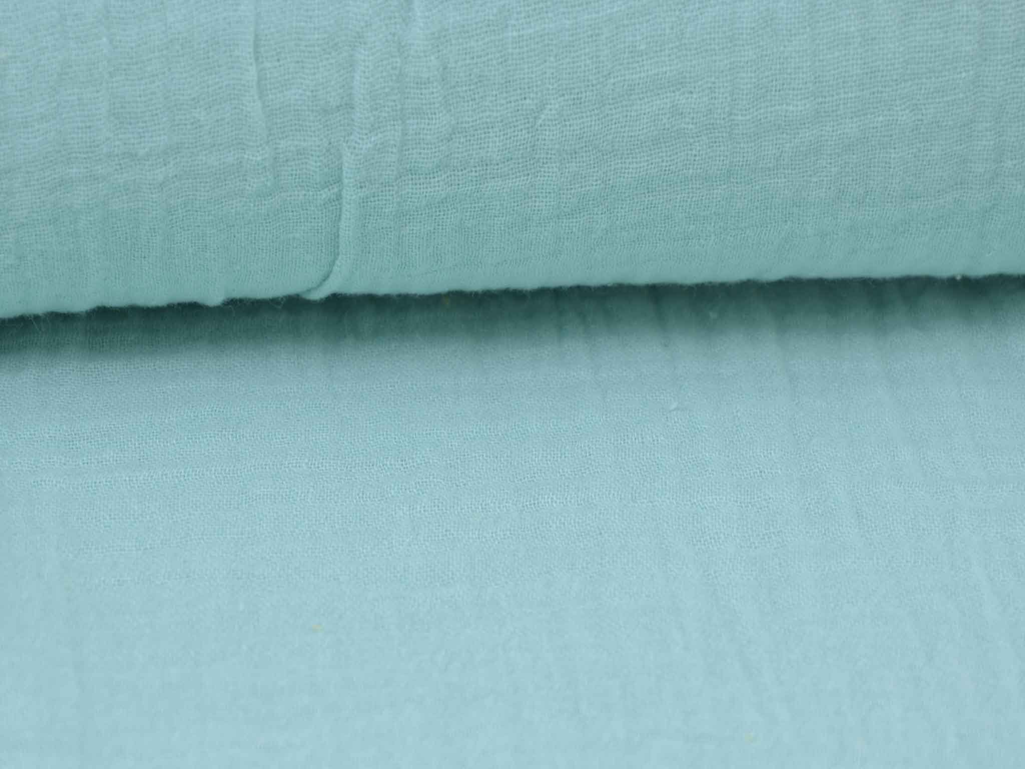 Hochwertiger Musselin aus Baumwolle. Der zweilagige Stoff in einfarbig mint. Musselin hat einen weichen Fall und fühlt sich auf der Haut gut an. Du kannst Musseline wunderbar miteinander kombinieren. Nähe dir zum Beispiel Blusen, Kleider, Röcke, Kissen, Tagesdecken, Tücher und so so vieles mehr.