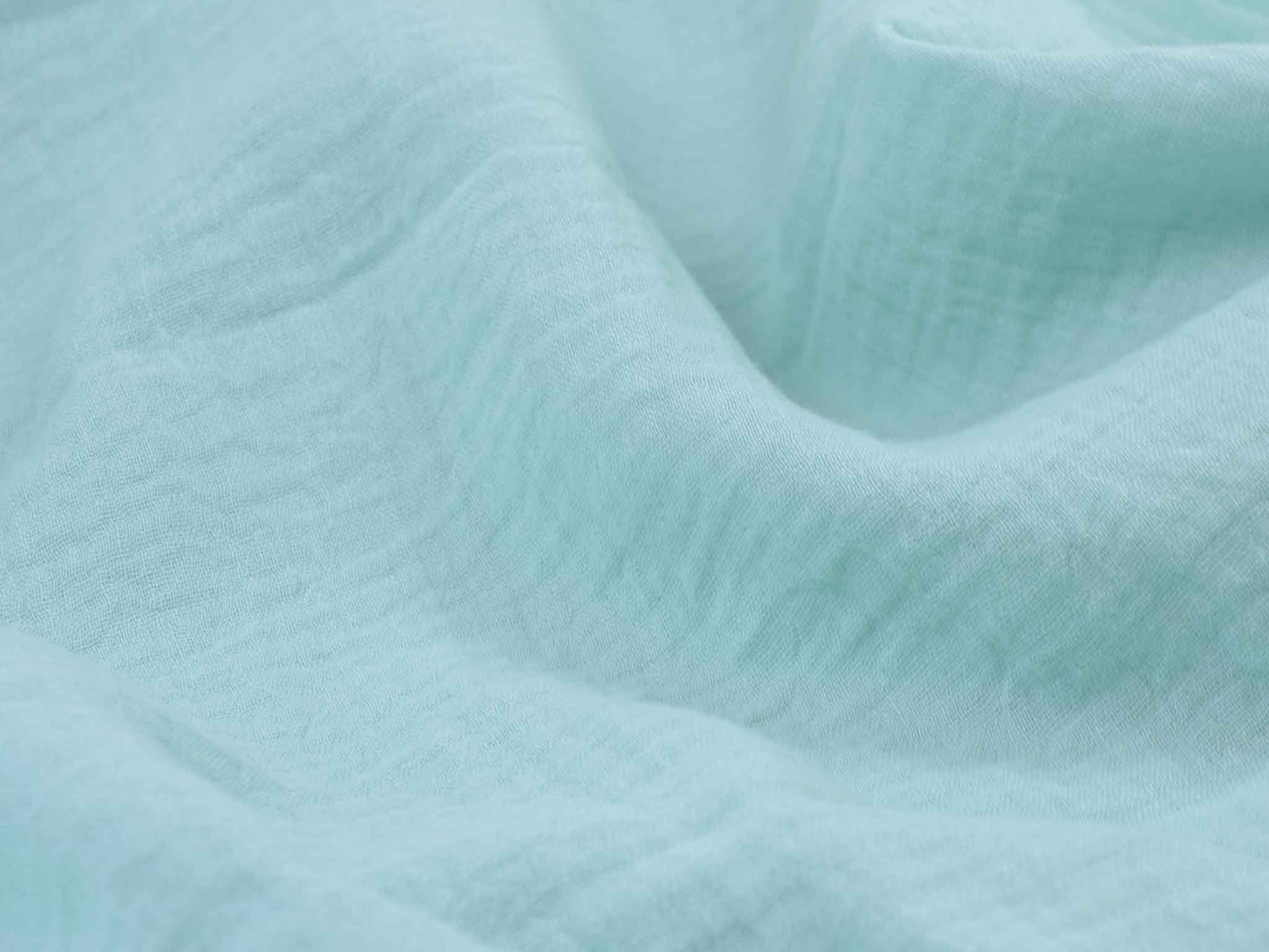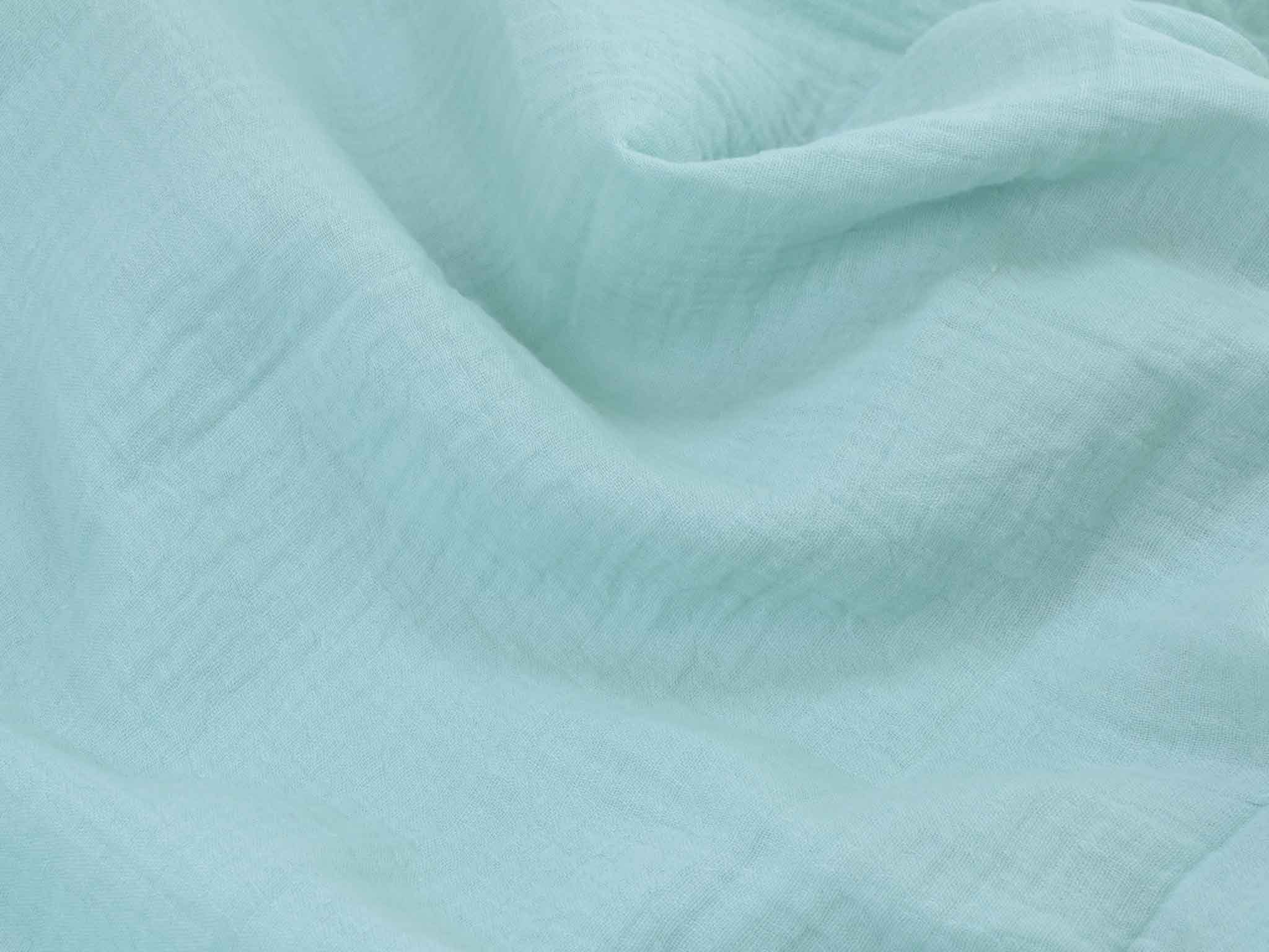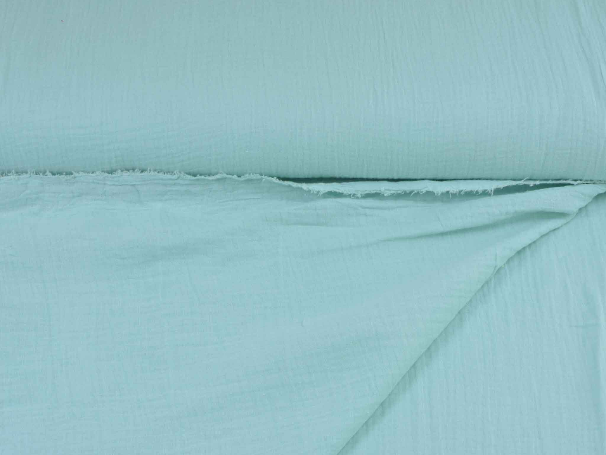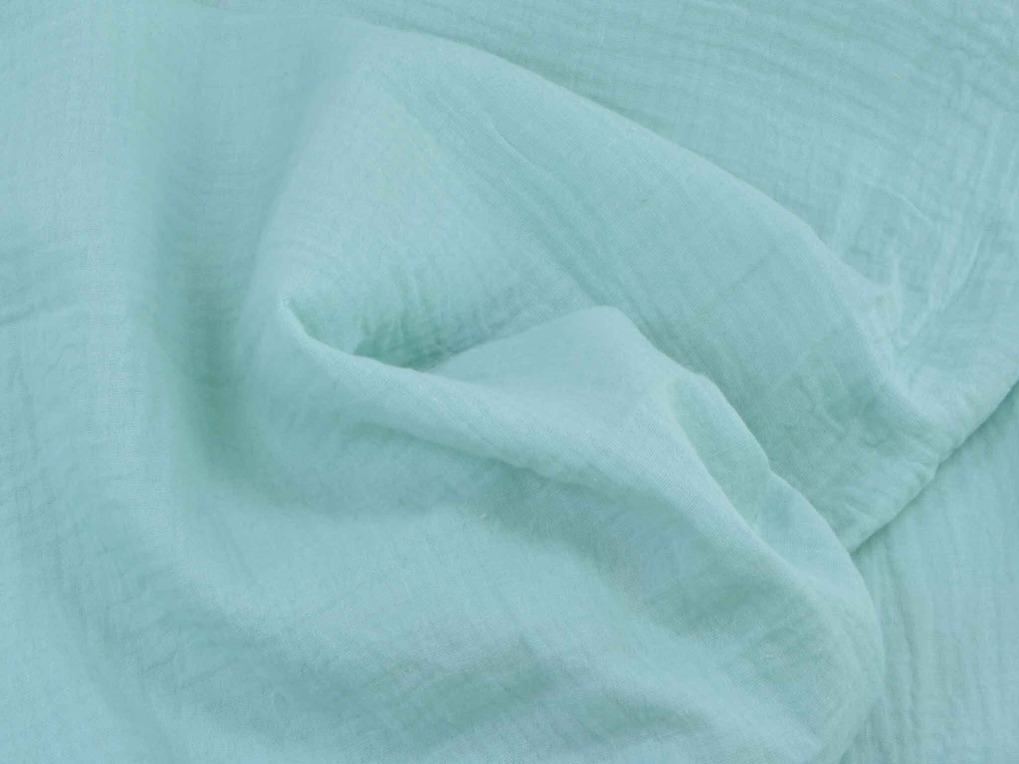 Hochwertiger Musselin aus Baumwolle. Der zweilagige Stoff in einfarbig mint. Musselin hat einen weichen Fall und fühlt sich auf der Haut gut an. Du kannst Musseline wunderbar miteinander kombinieren. Nähe dir zum Beispiel Blusen, Kleider, Röcke, Kissen, Tagesdecken, Tücher und so so vieles mehr.