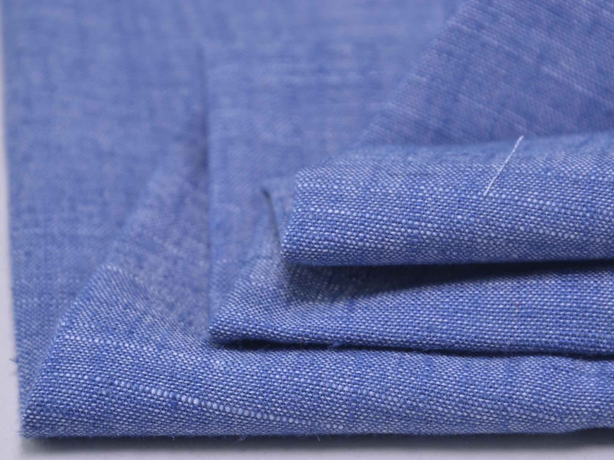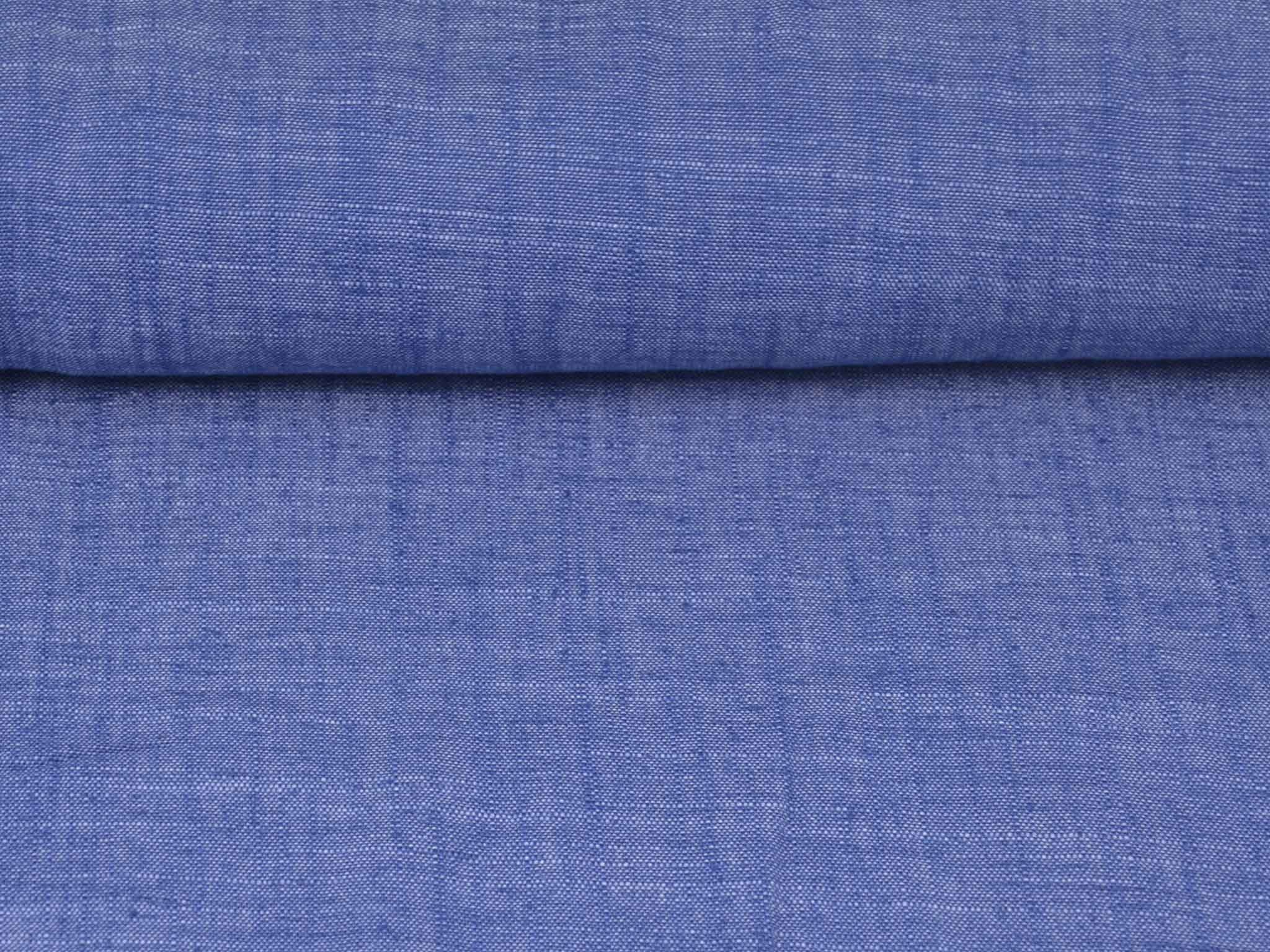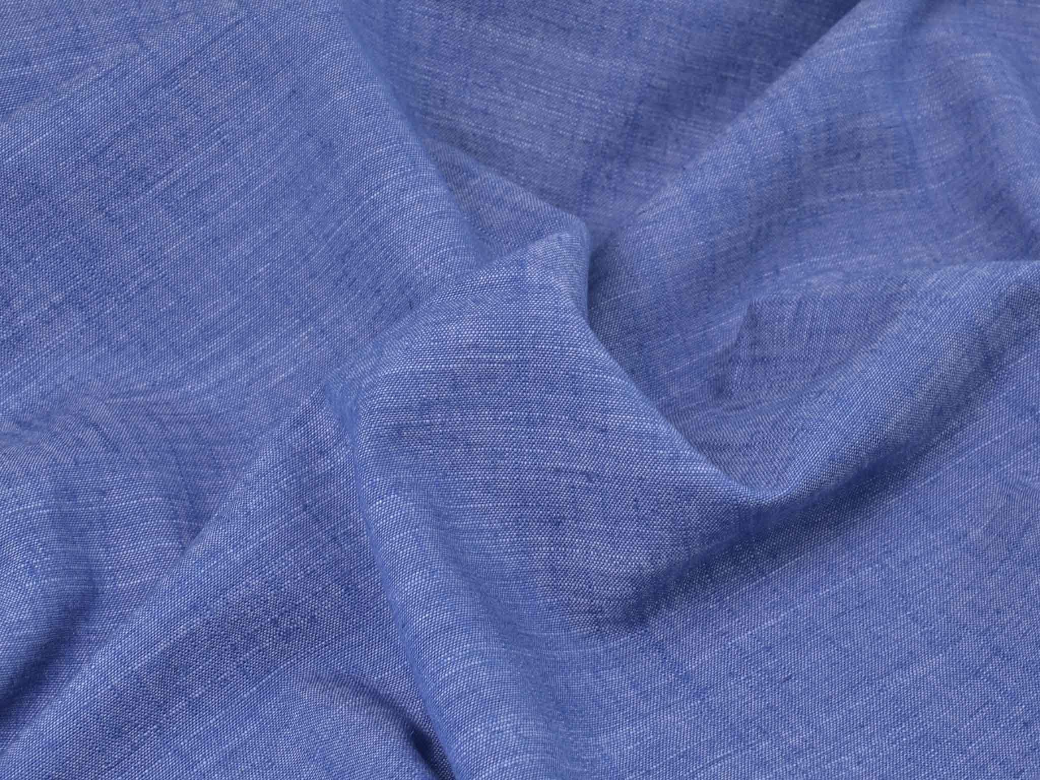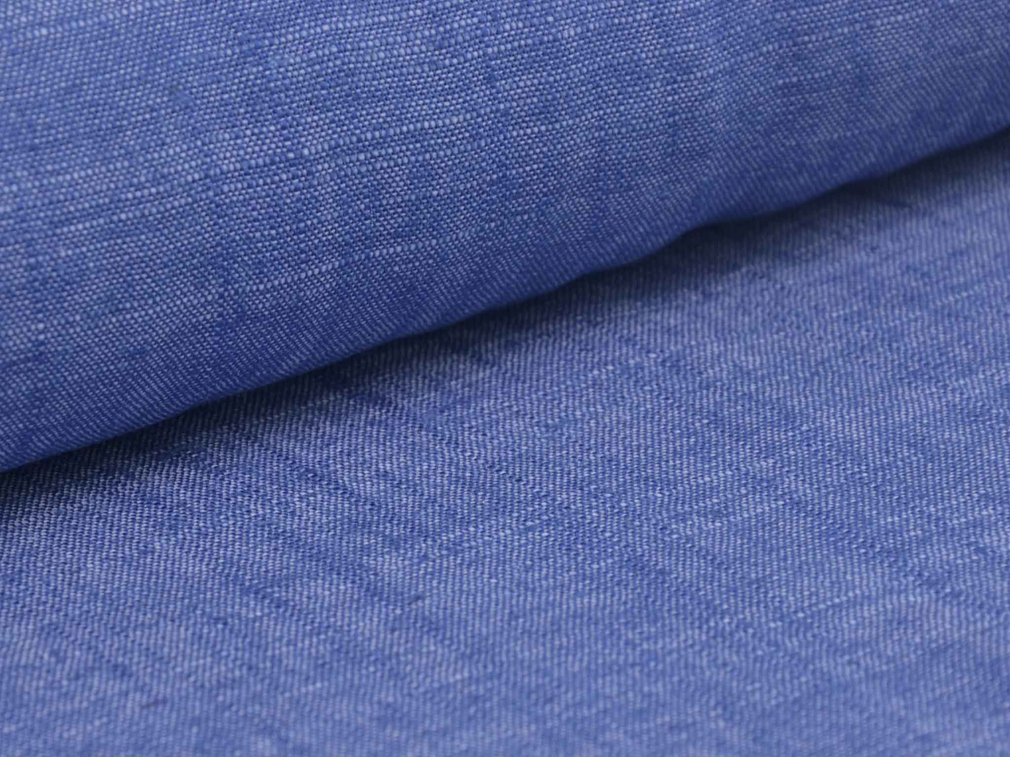 Blau melierter Leinenstoff mit Viskose und Polyester. Der Stoff fühlt sich glatt an und hat eine typische Leinenstruktur. Er eignet sich super für Hosen, Kleider, Röcke und vieles mehr.