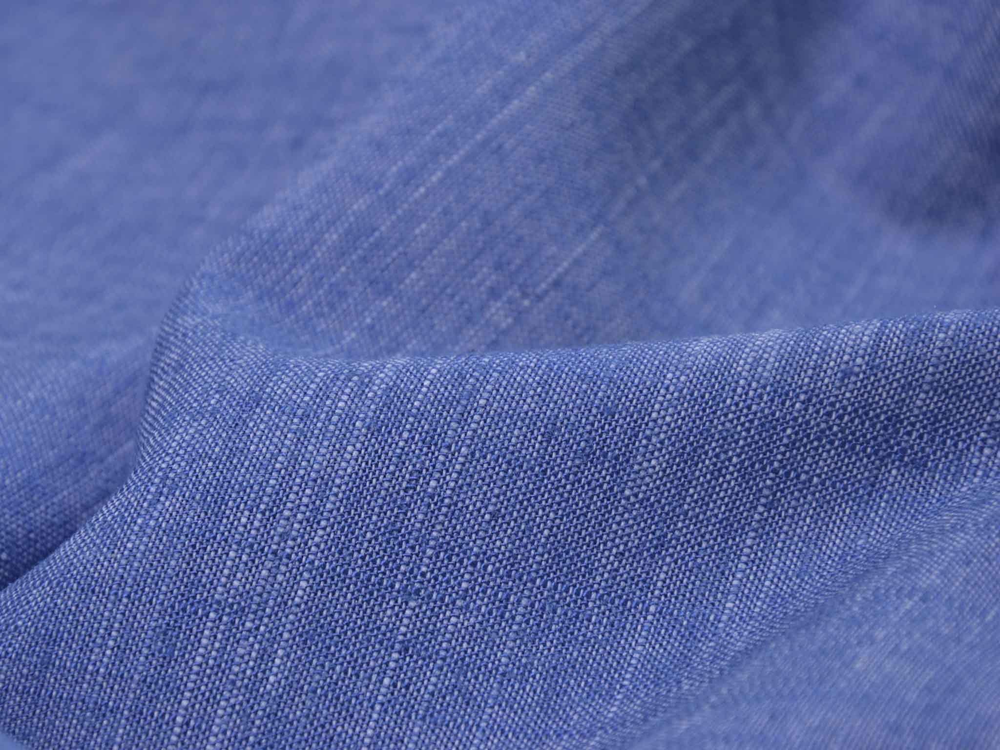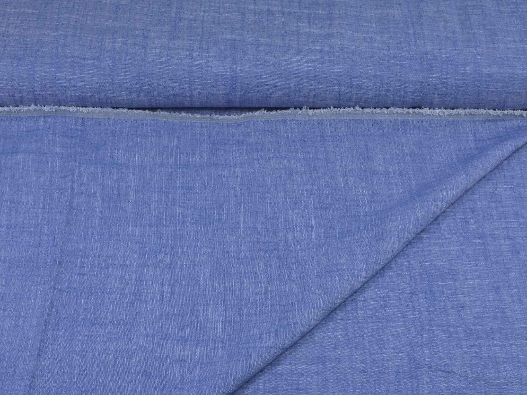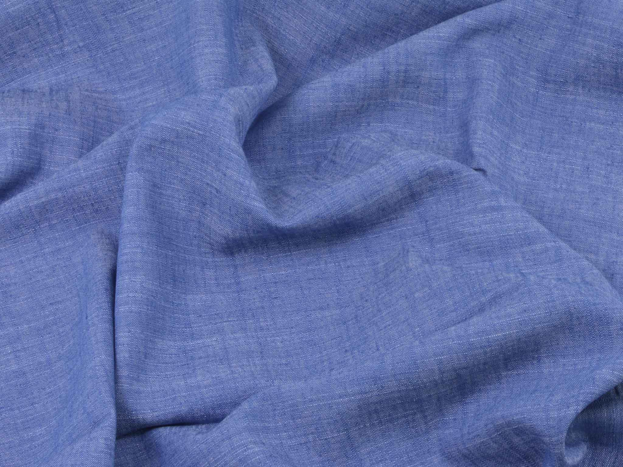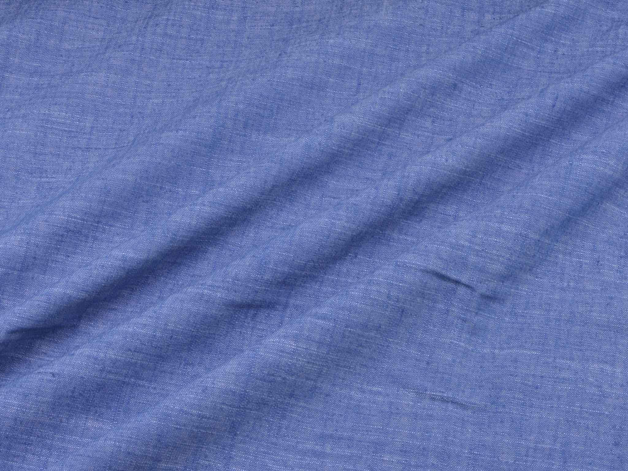 Blau melierter Leinenstoff mit Viskose und Polyester. Der Stoff fühlt sich glatt an und hat eine typische Leinenstruktur. Er eignet sich super für Hosen, Kleider, Röcke und vieles mehr.