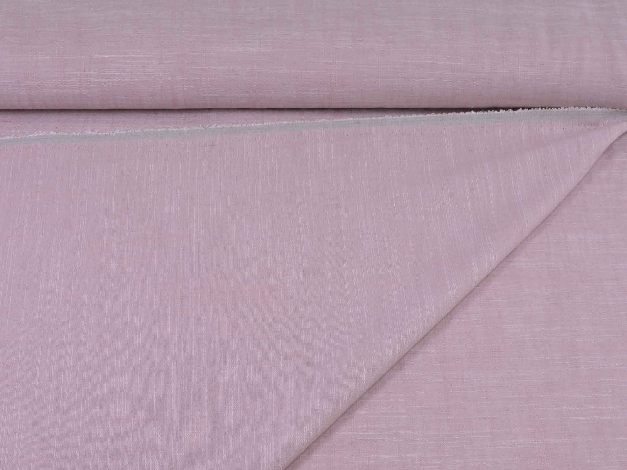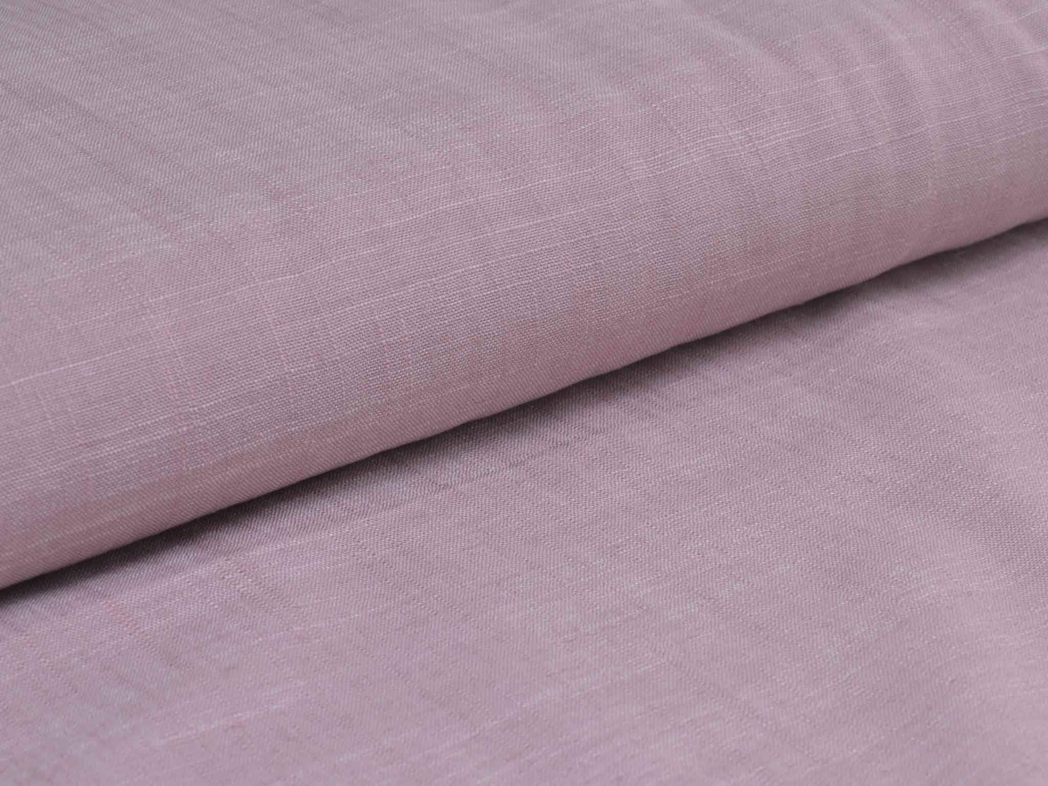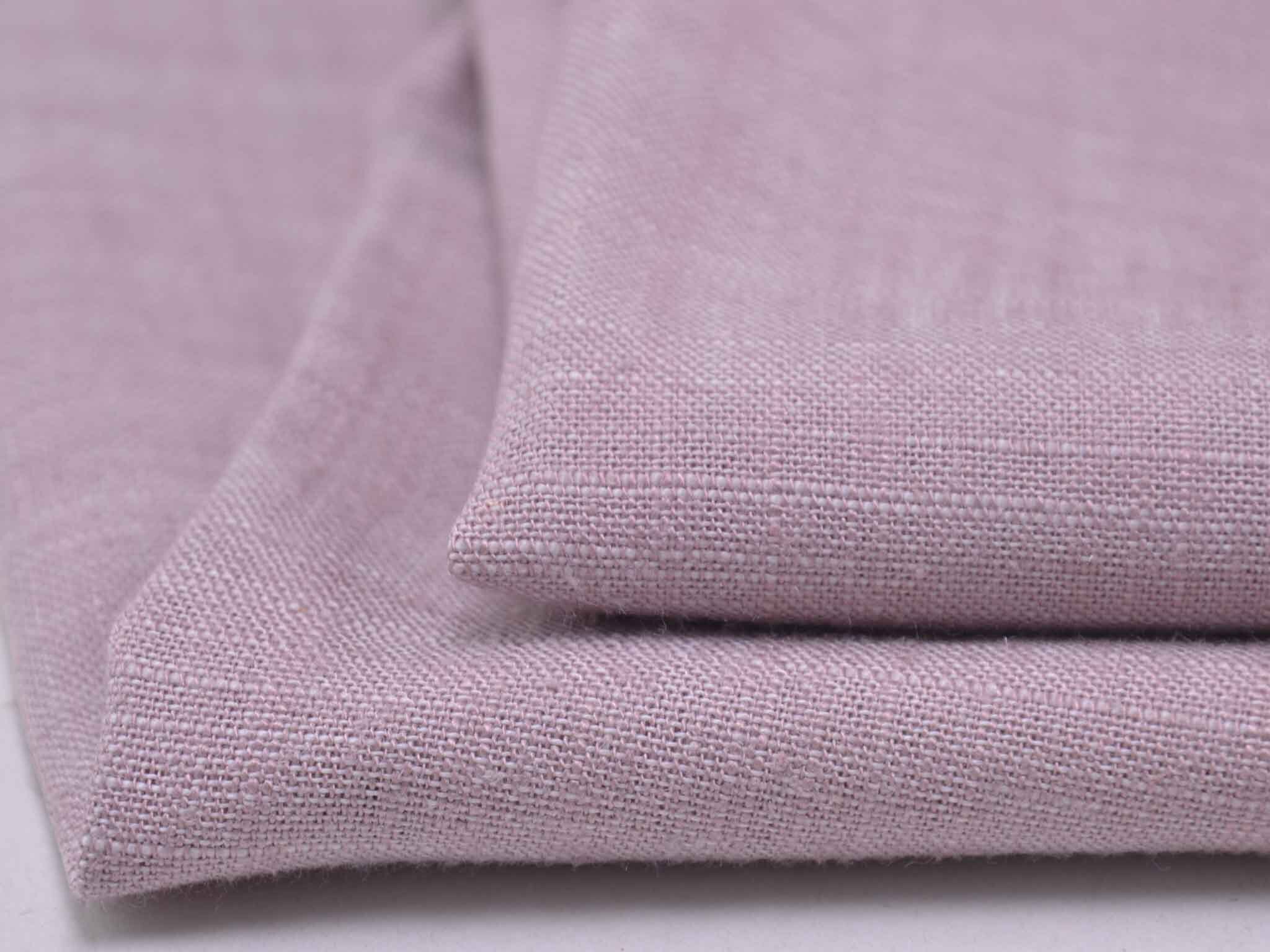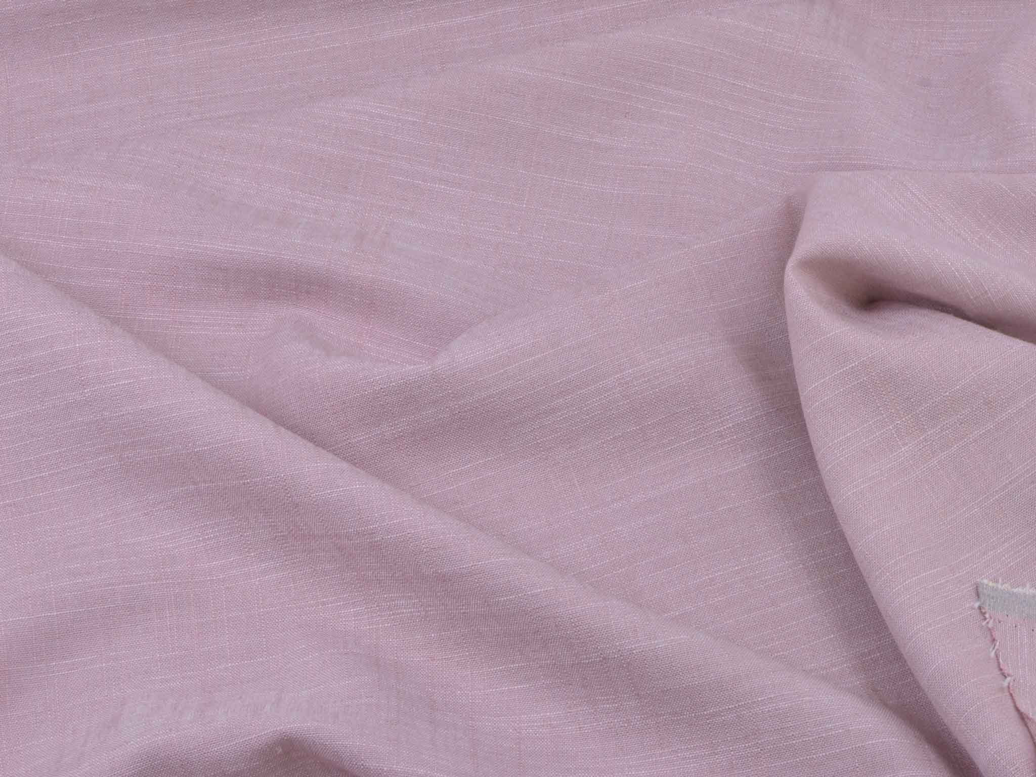 Rosa melierter Leinenstoff mit Viskose und Polyester. Der Stoff fühlt sich glatt an und hat eine typische Leinenstruktur. Er eignet sich super für Hosen, Kleider, Röcke und vieles mehr.