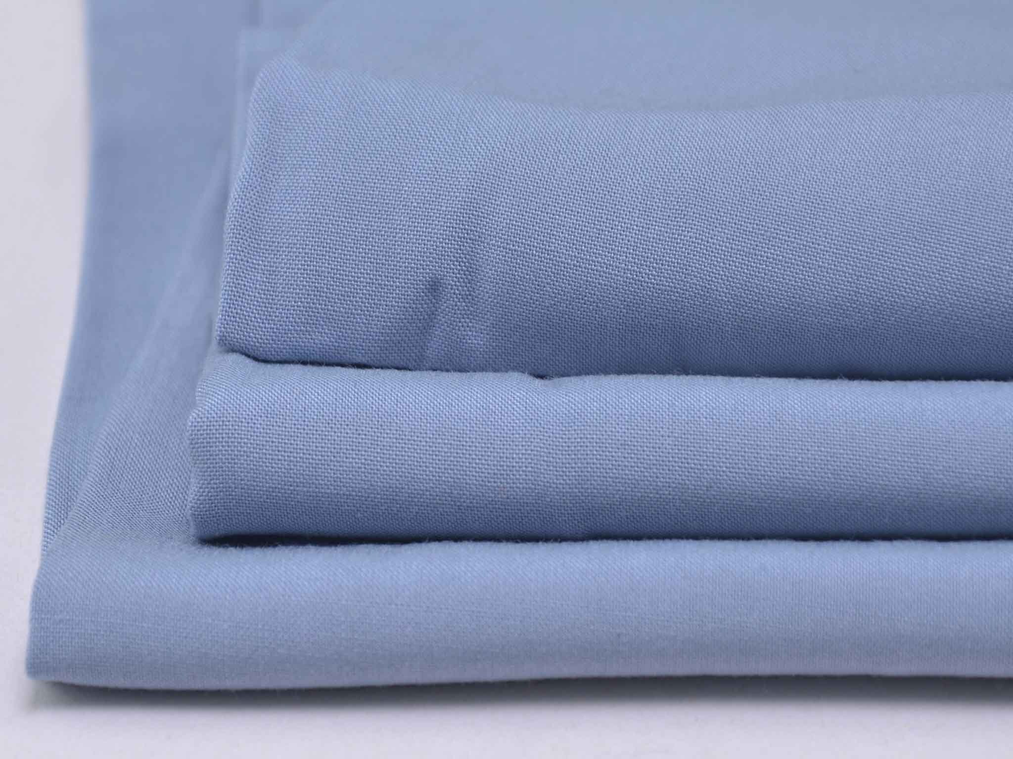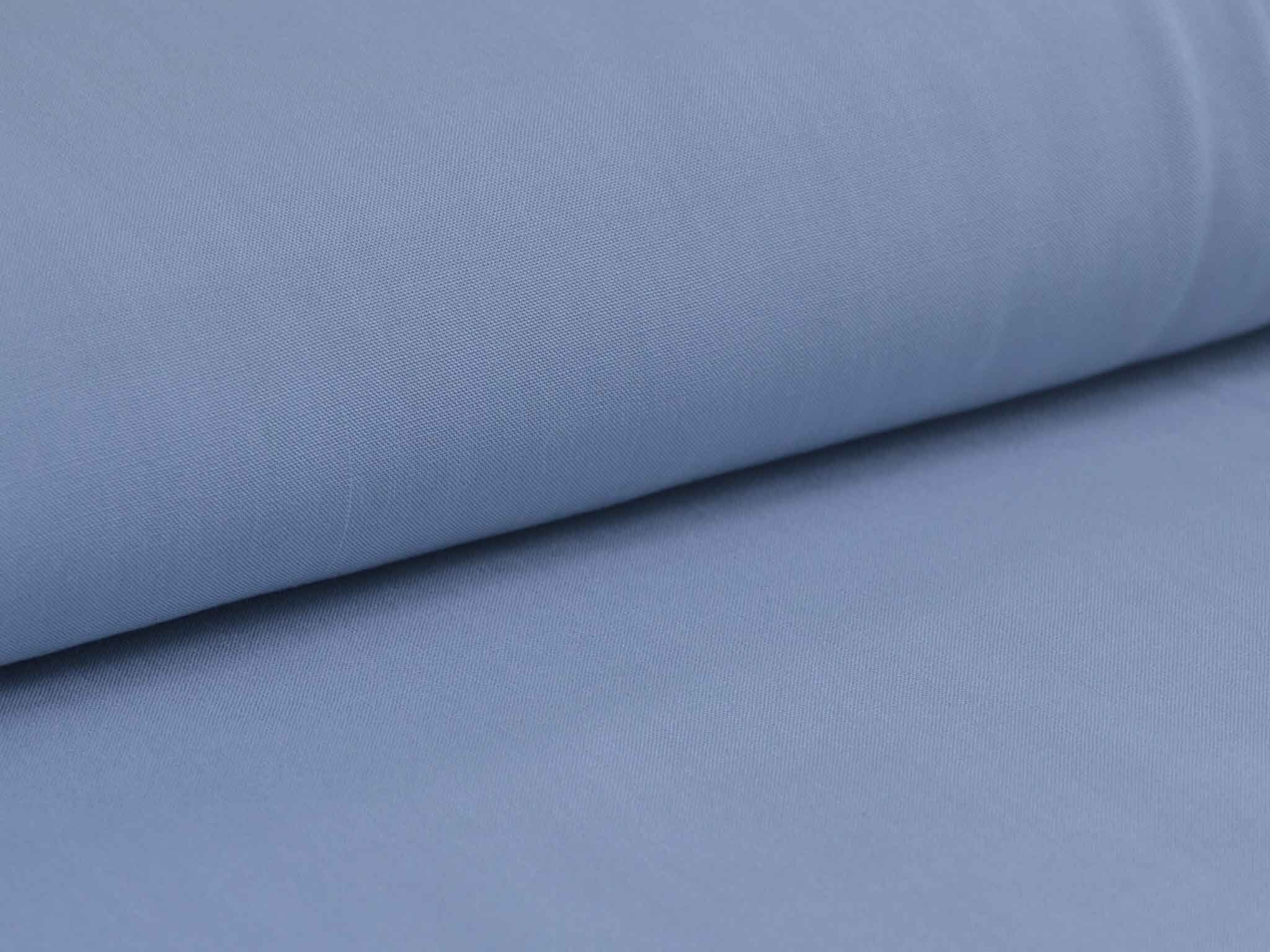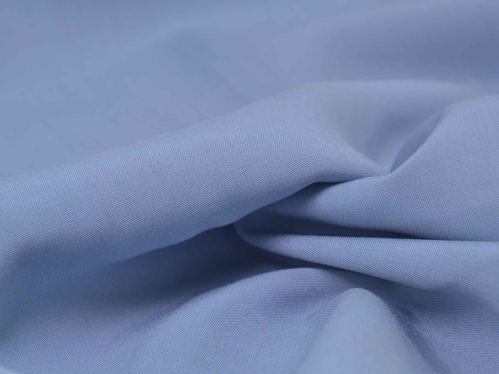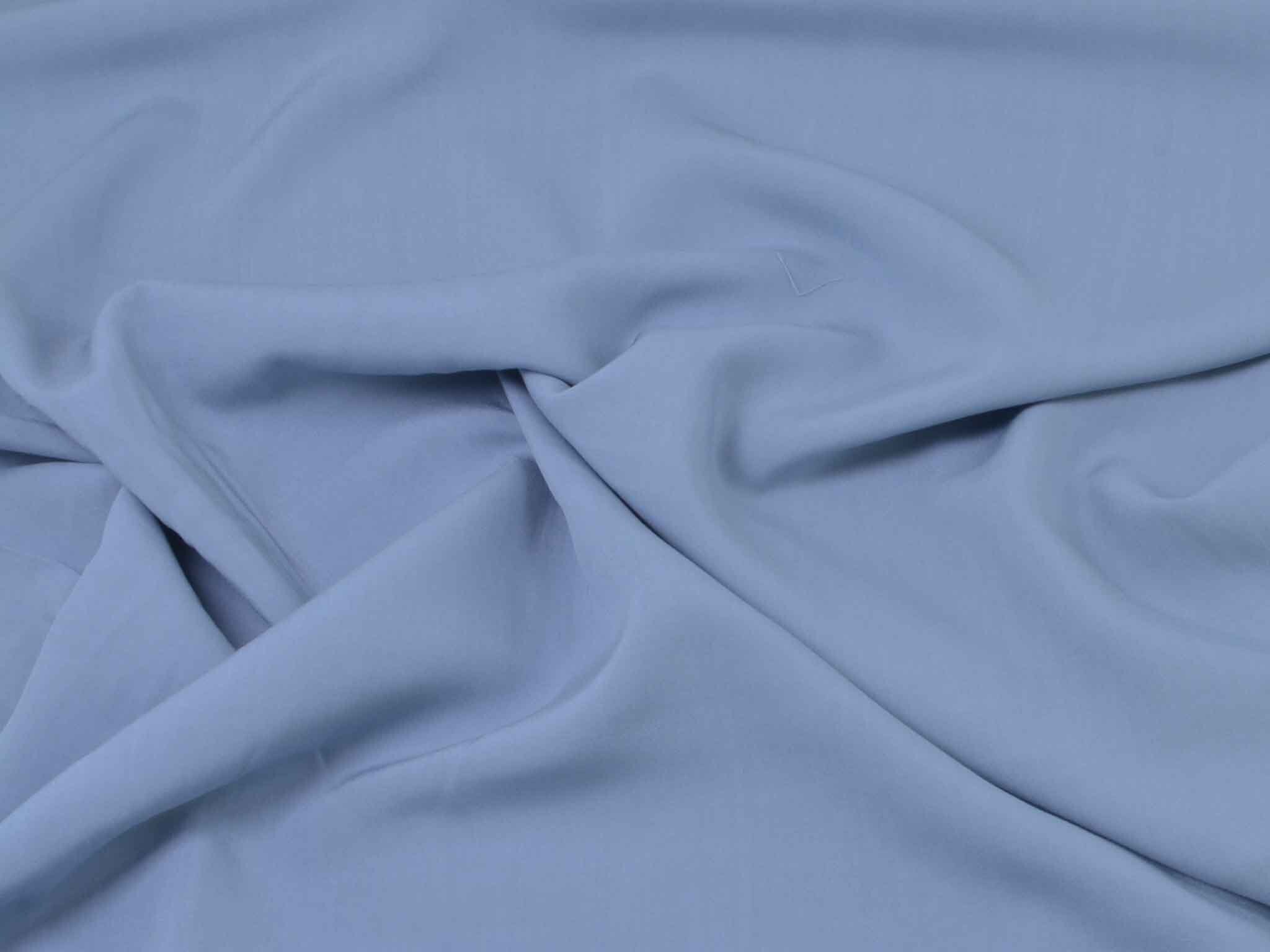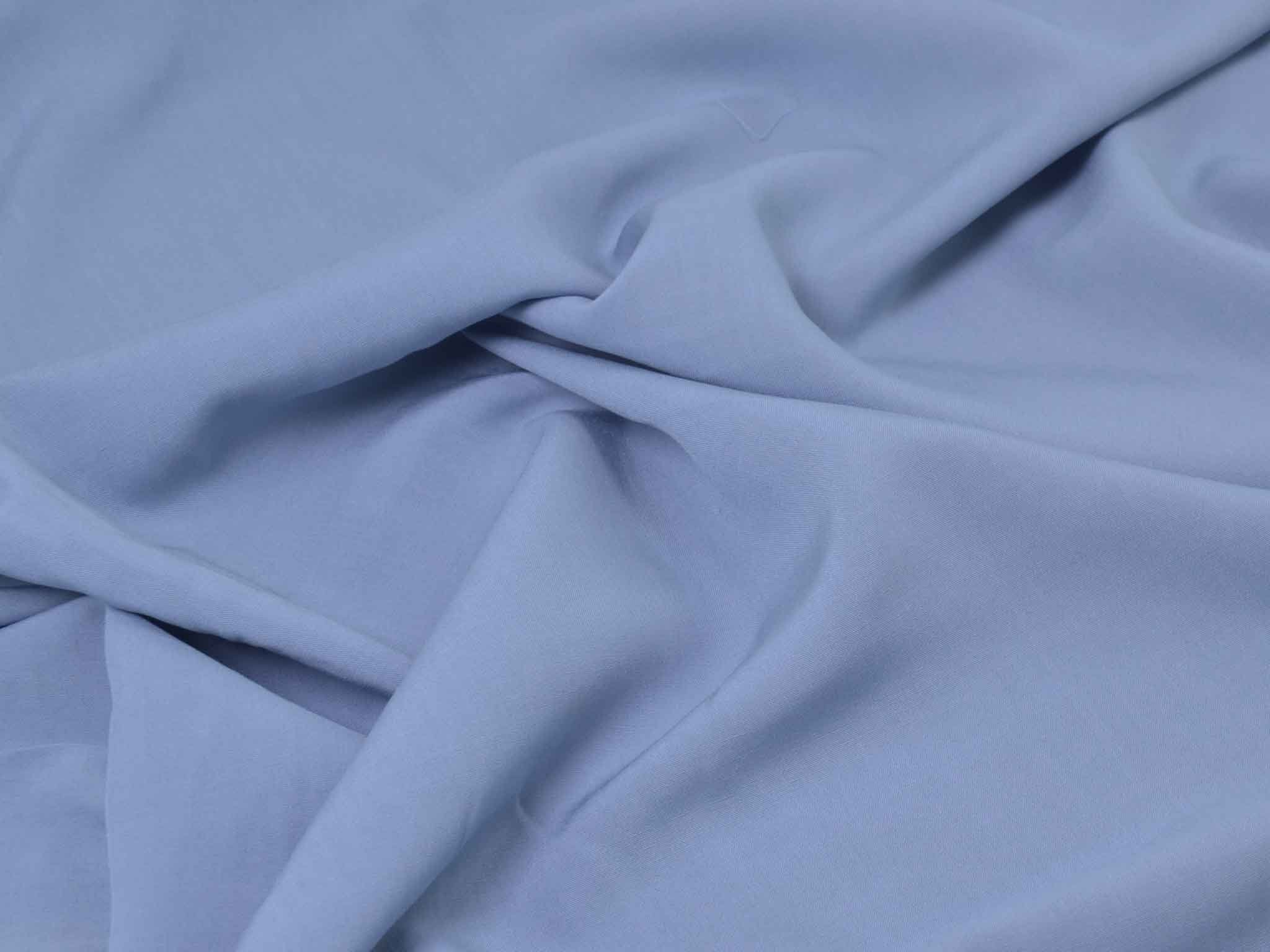 Webware aus 100 % Viskose in hellblau. Der Stoff ist glatt und fließend, er fühlt sich weich an. Er eignet sich super für Blusen, Kleider, schwingende Röcke, fließende Hosen und vieles mehr.