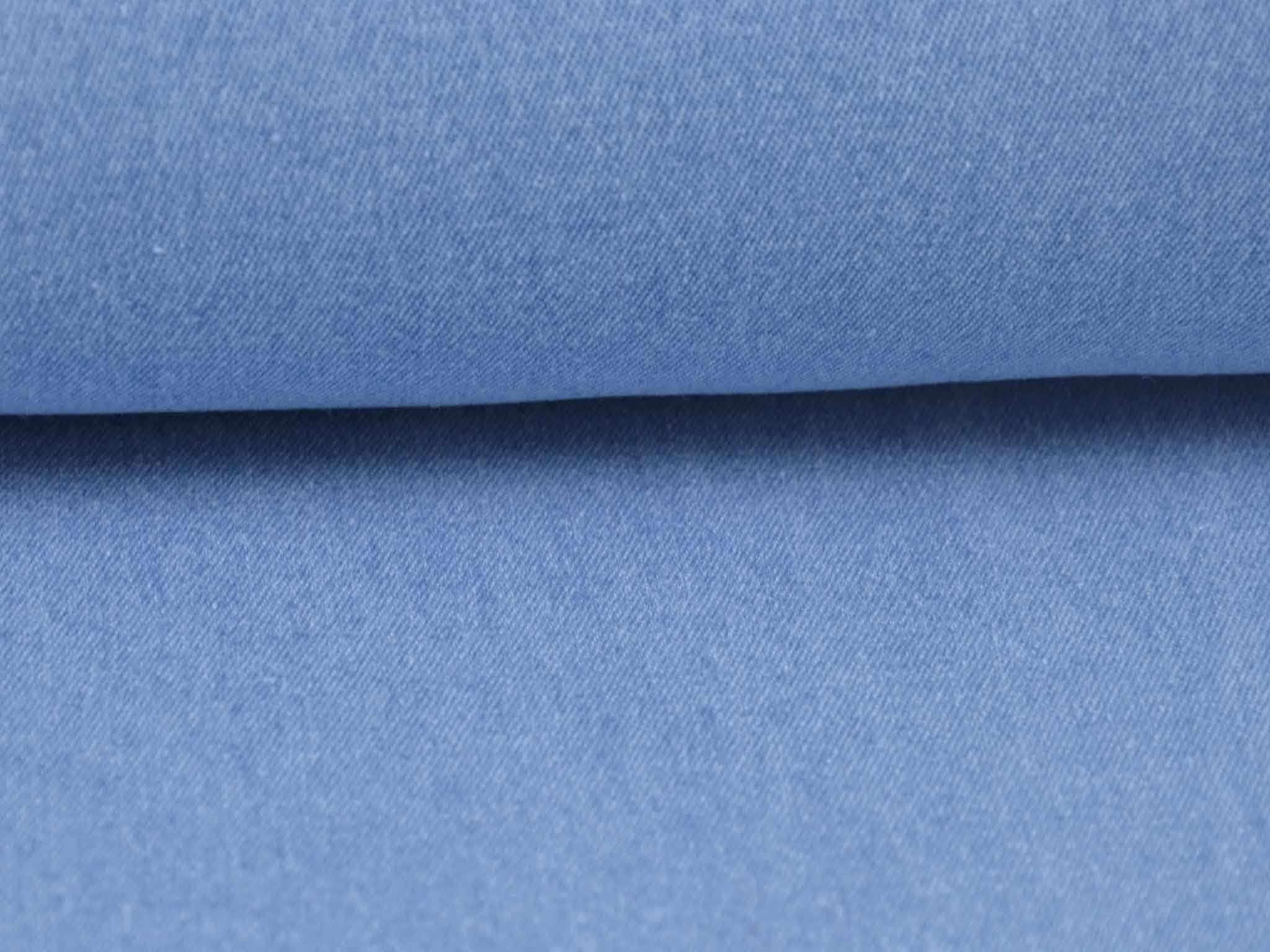 High-quality denim fabric in light blue made of cotton and elastane. The fabric is stretchy yet feels sturdy. It's perfect for jeans, skirts, dresses, and much more.