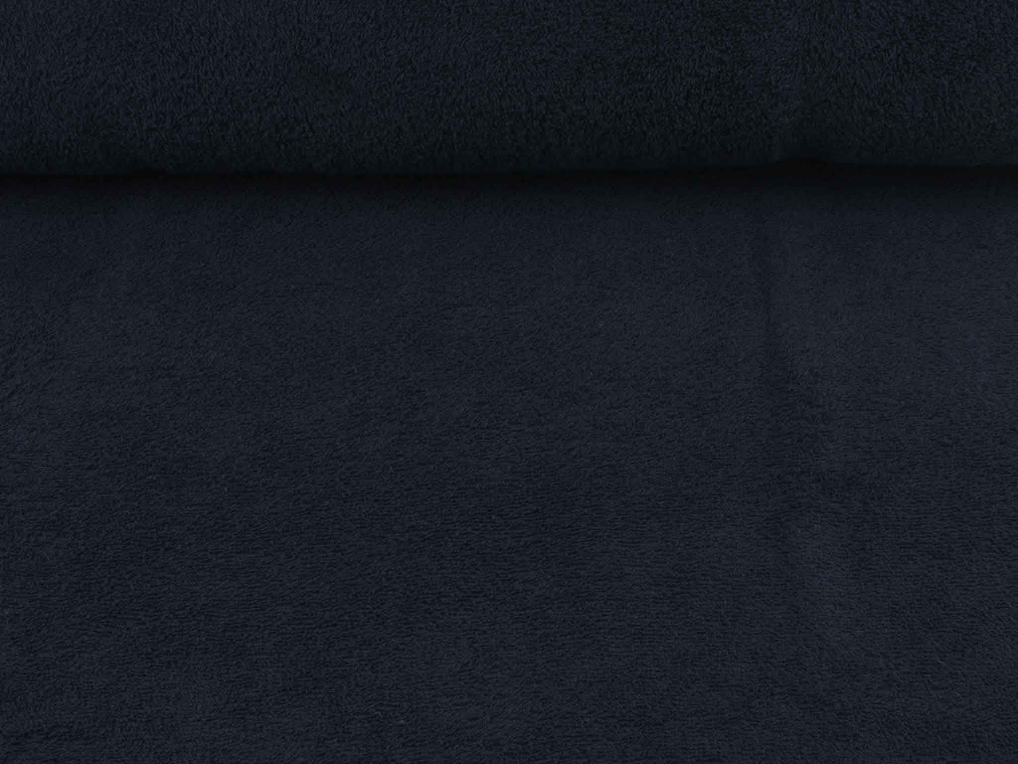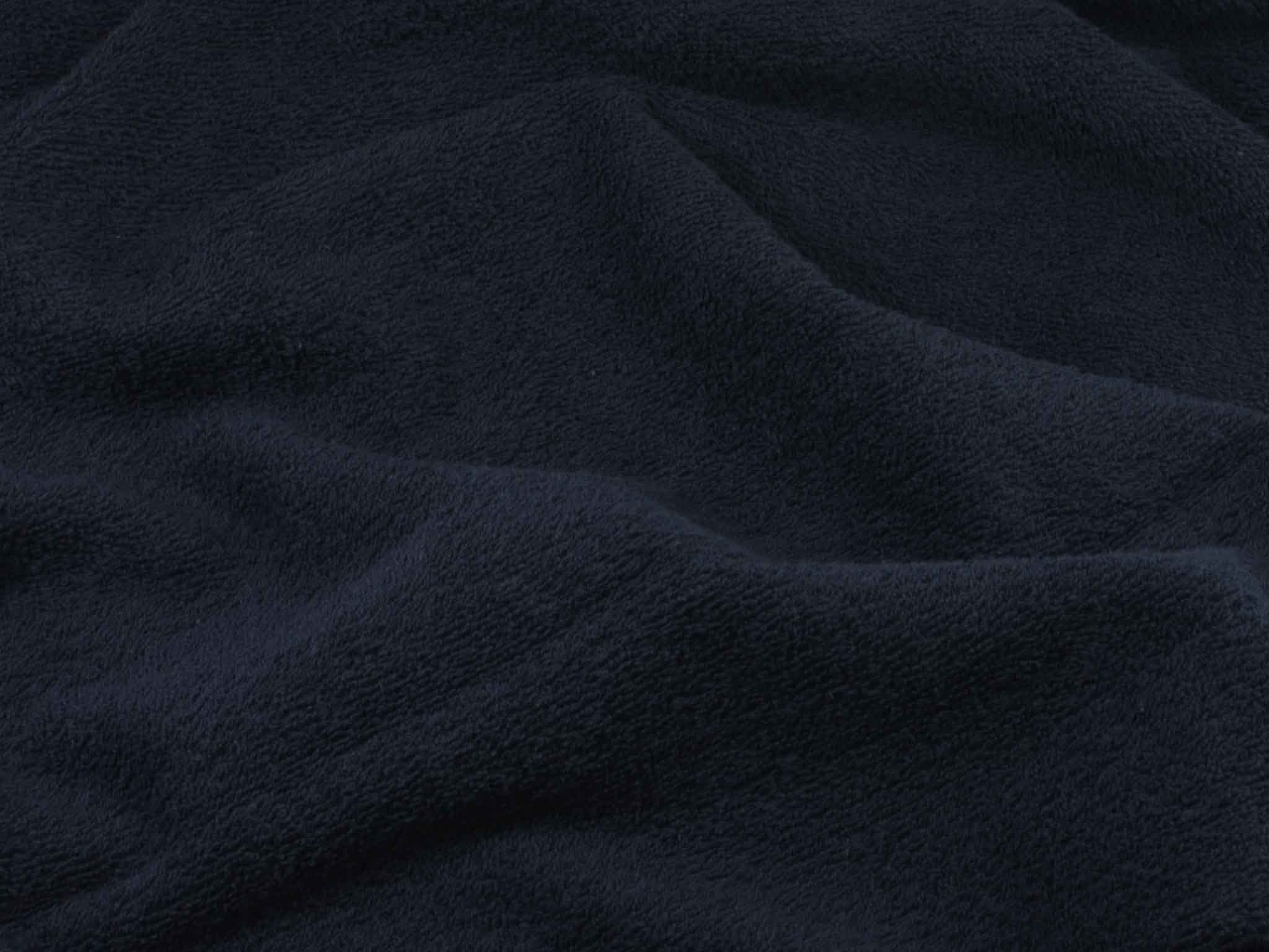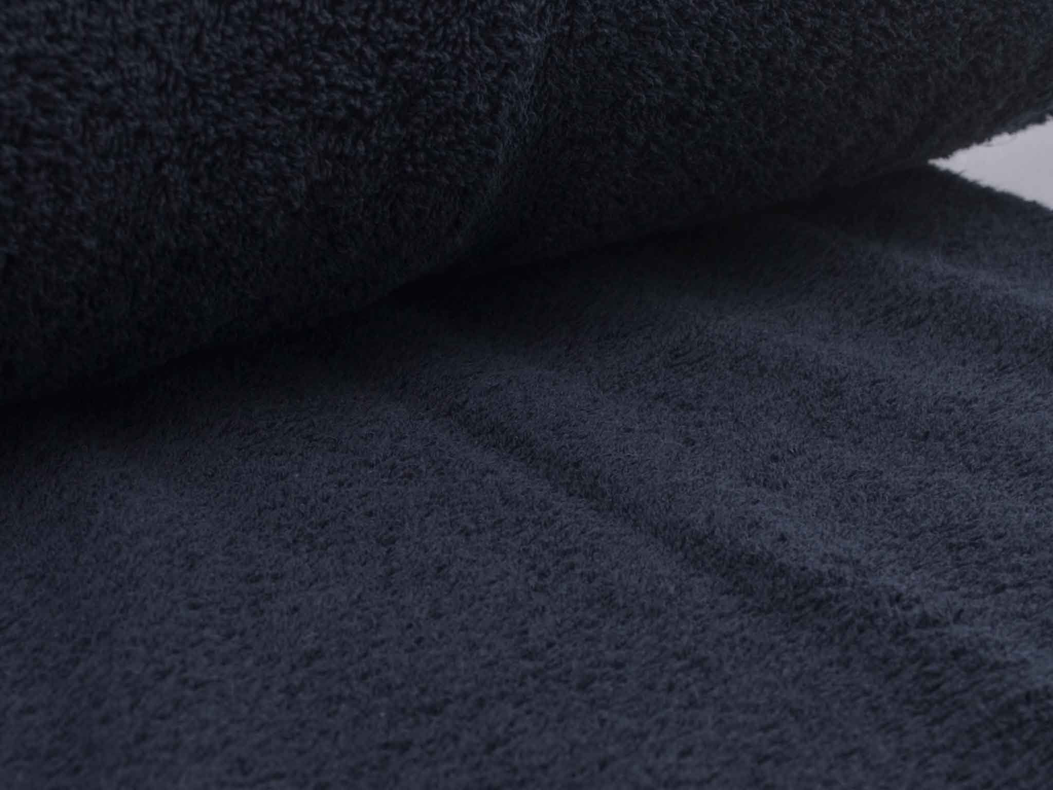 Der Frottee besteht zu 90% aus Baumwolle und ist uni schwarz. Der Stoff ist voluminös und saugfähig, er eignet sich super für Bademäntel, Handtücher, Kosmetikpads und vieles mehr.