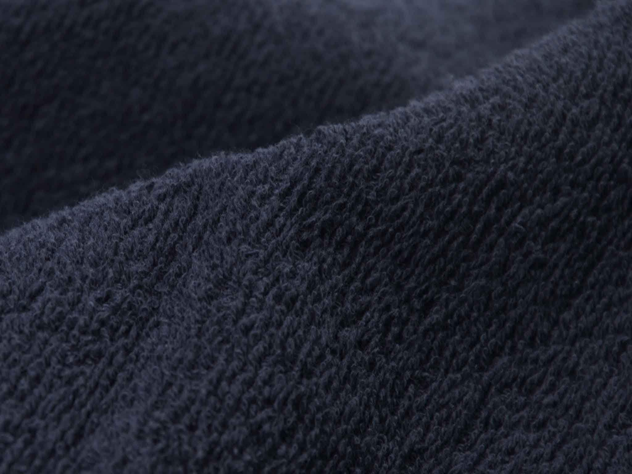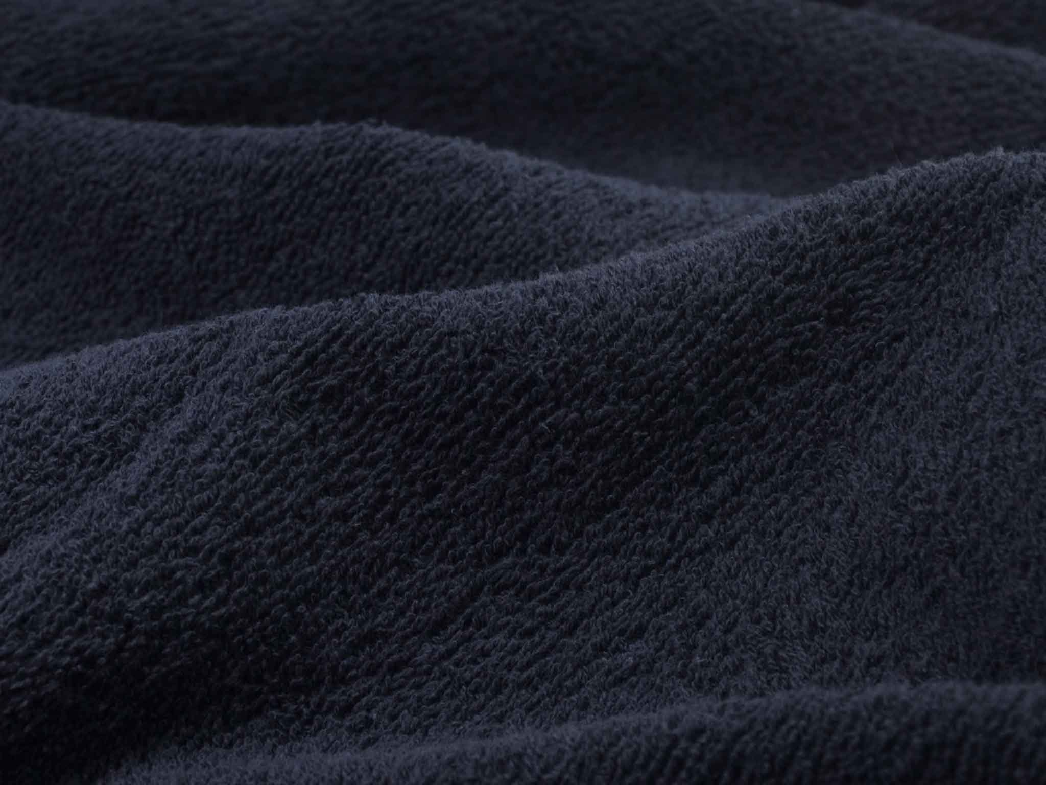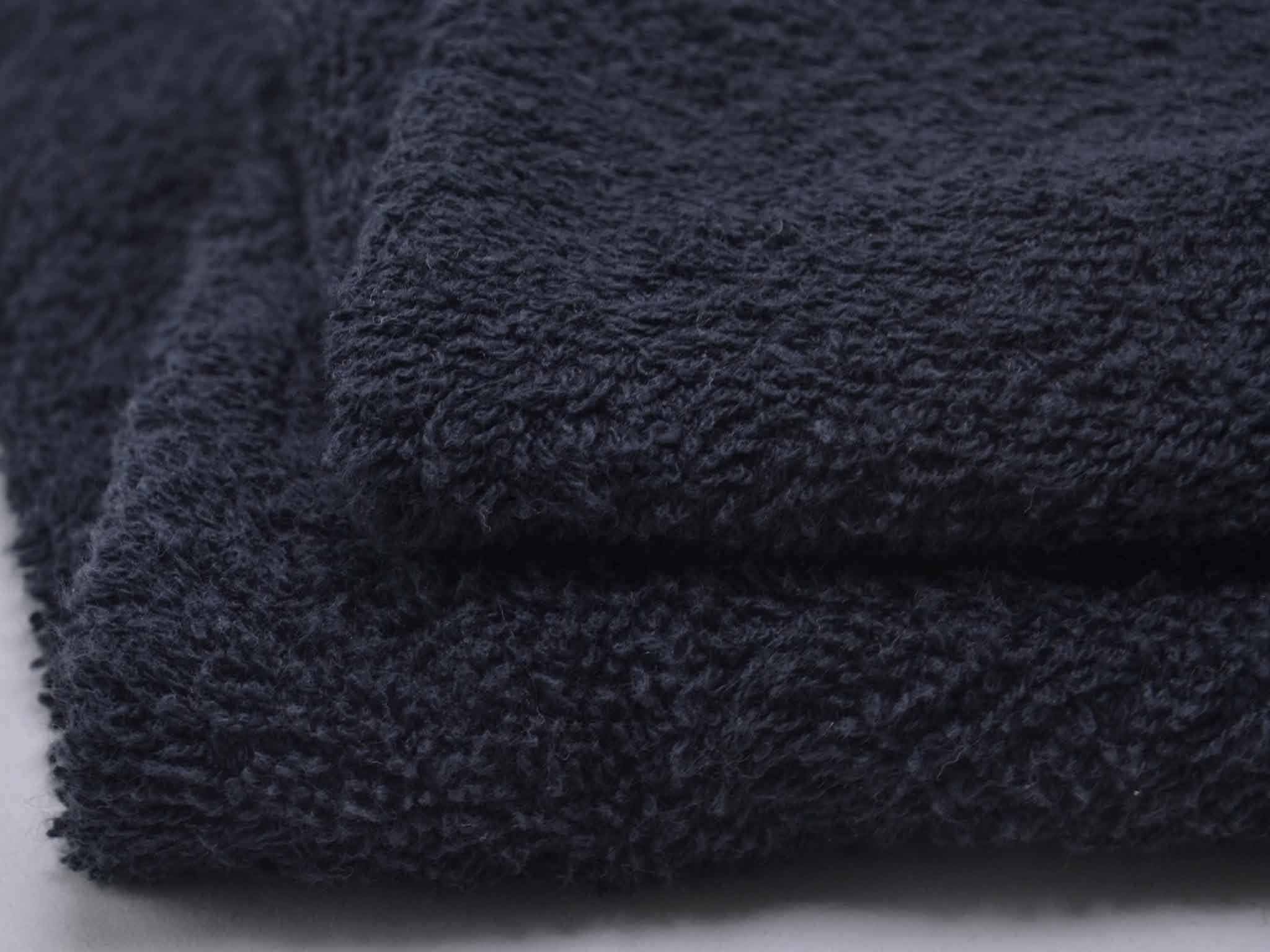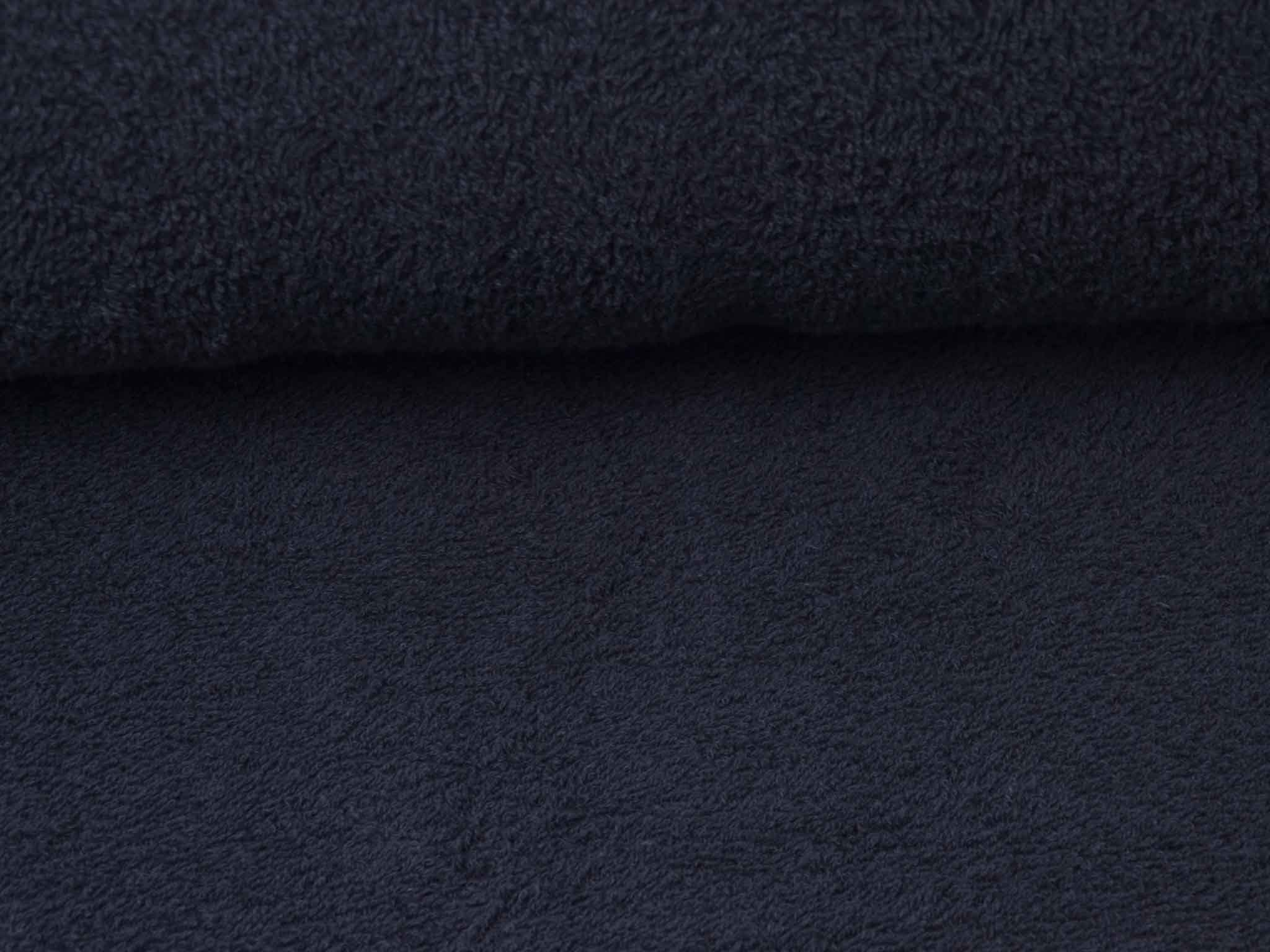 Der Frottee besteht zu 90% aus Baumwolle und ist uni schwarz. Der Stoff ist voluminös und saugfähig, er eignet sich super für Bademäntel, Handtücher, Kosmetikpads und vieles mehr.