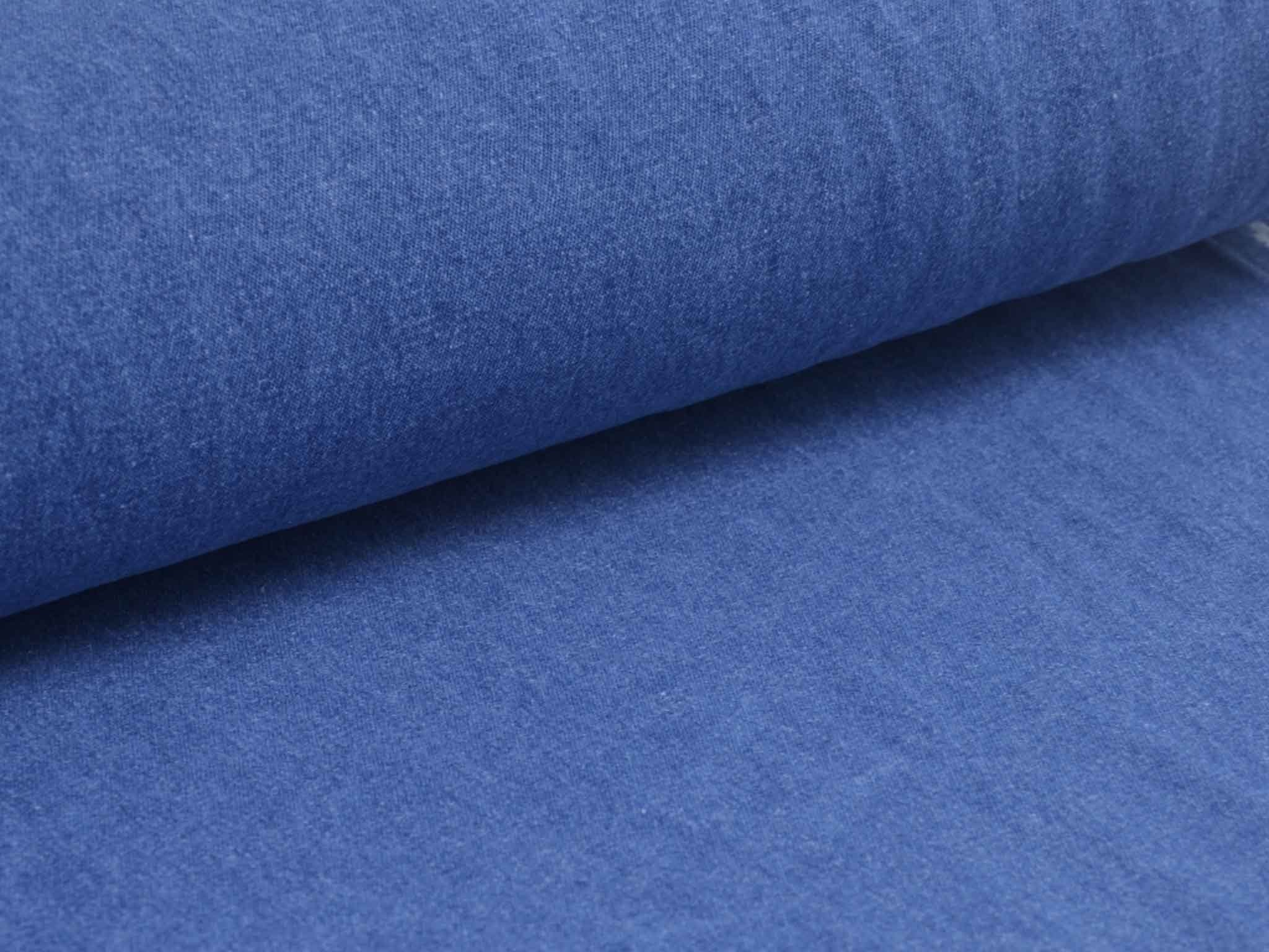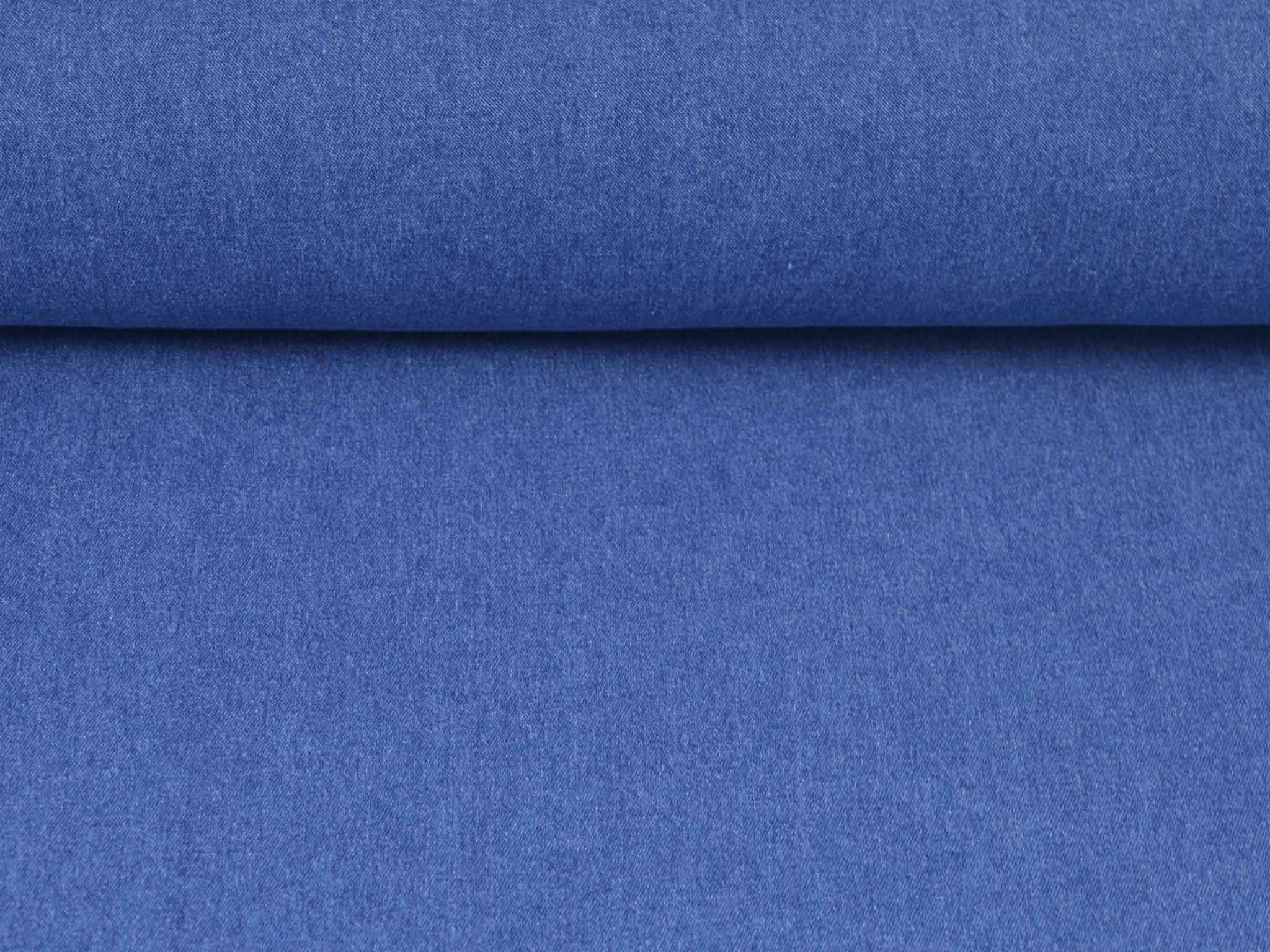 High-quality blue denim fabric made from cotton and elastane. The fabric is stretchy yet feels sturdy. It's perfect for jeans, skirts, dresses, and much more.