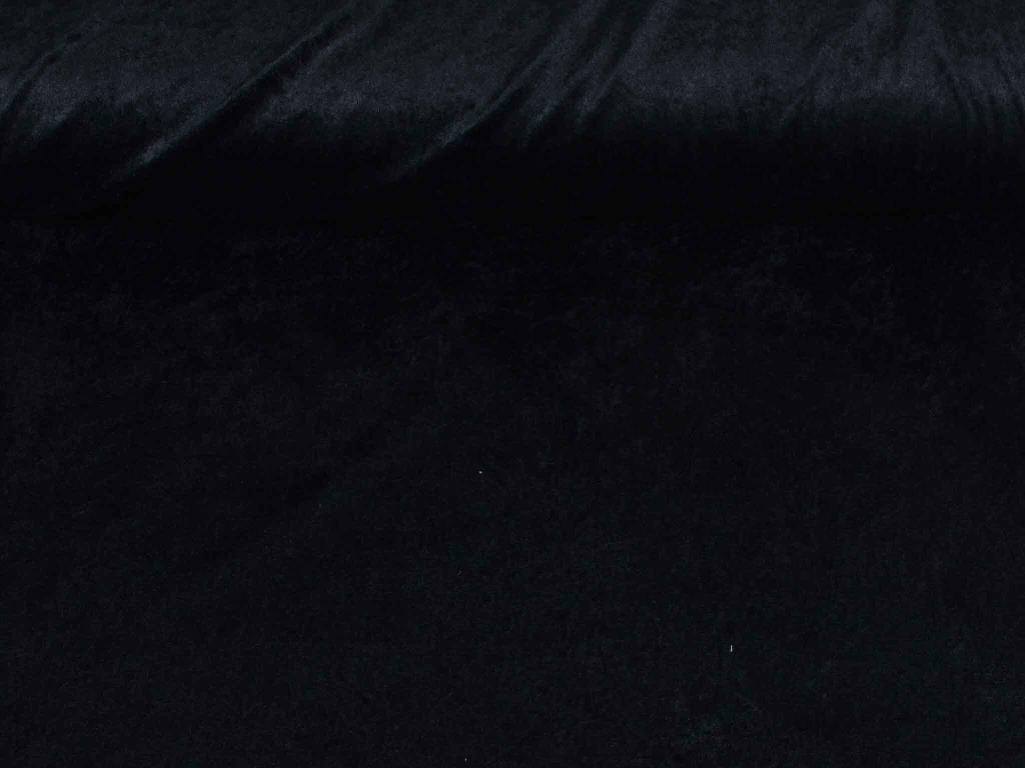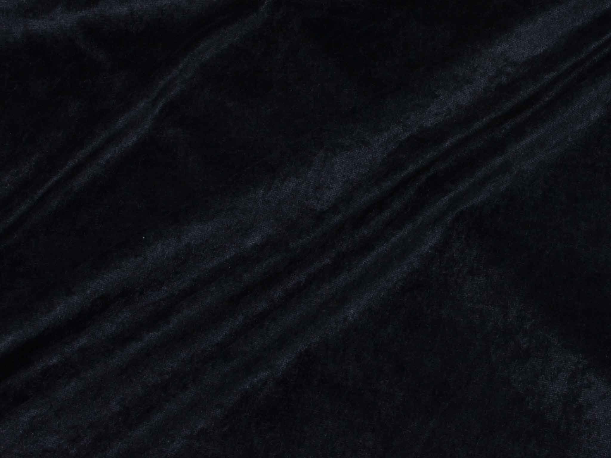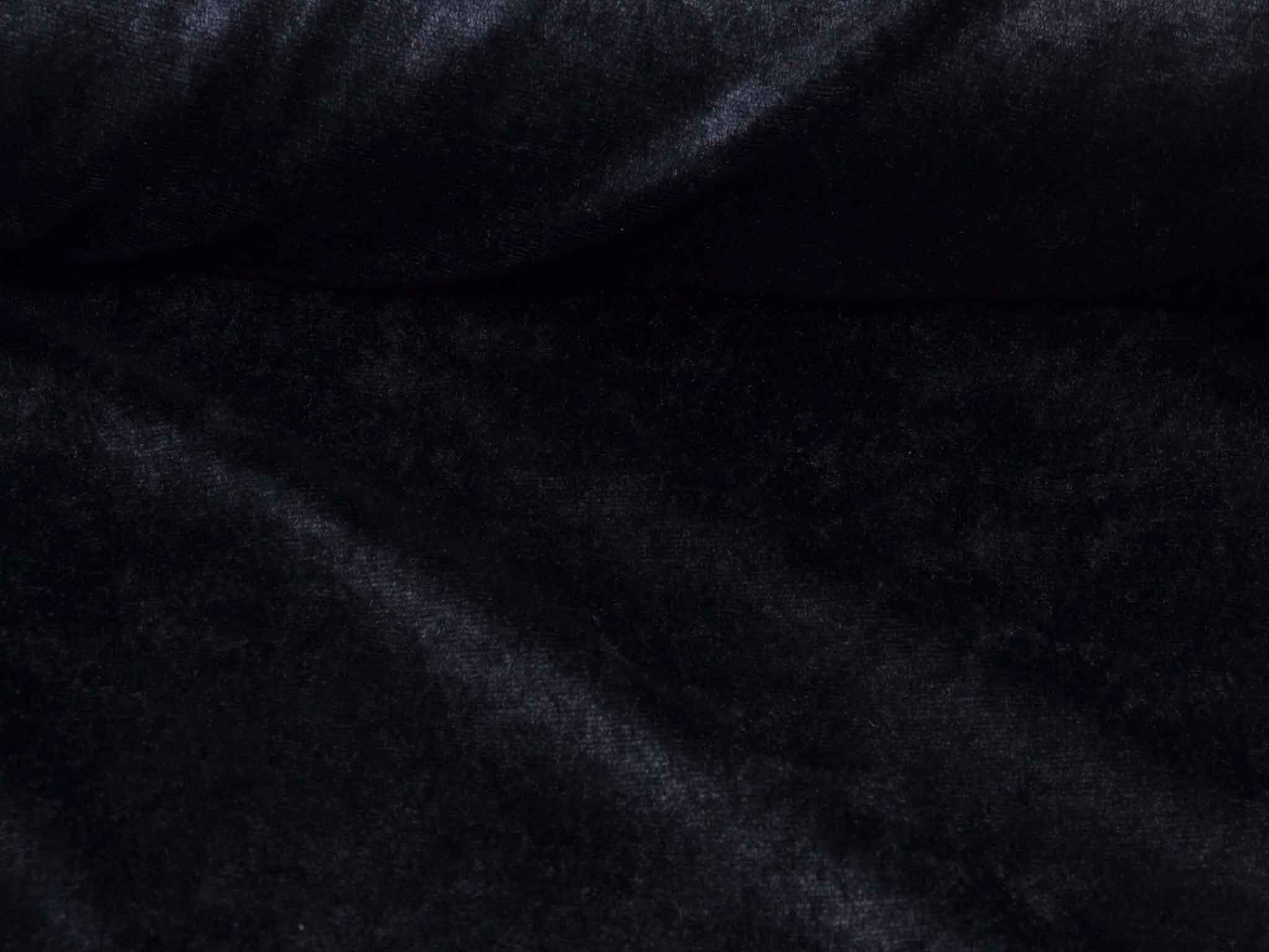 Stretchy, glossy panne velvet in solid black. The fabric feels soft and has a flowing drape. It's suitable for sewing costumes and decoration.