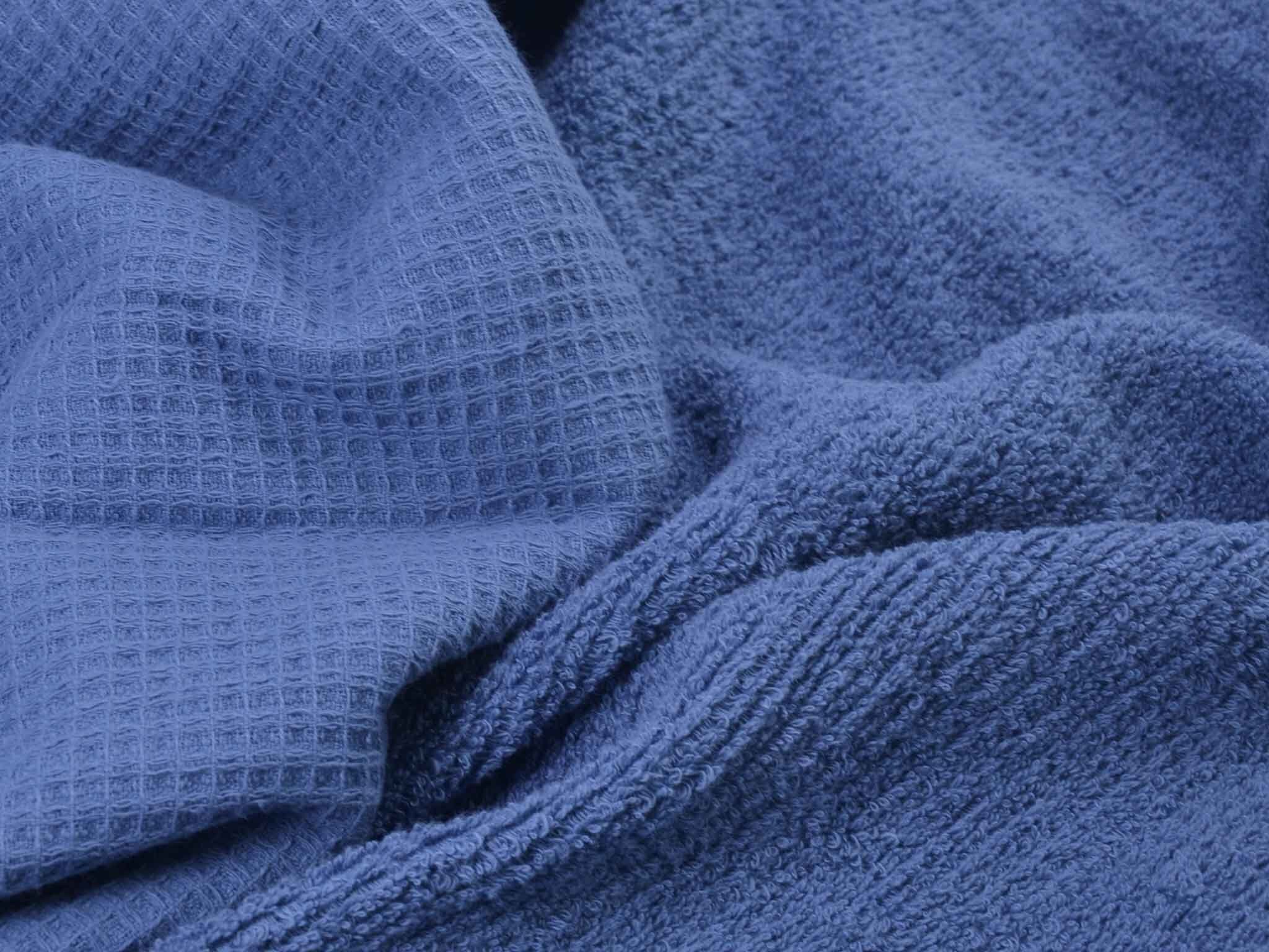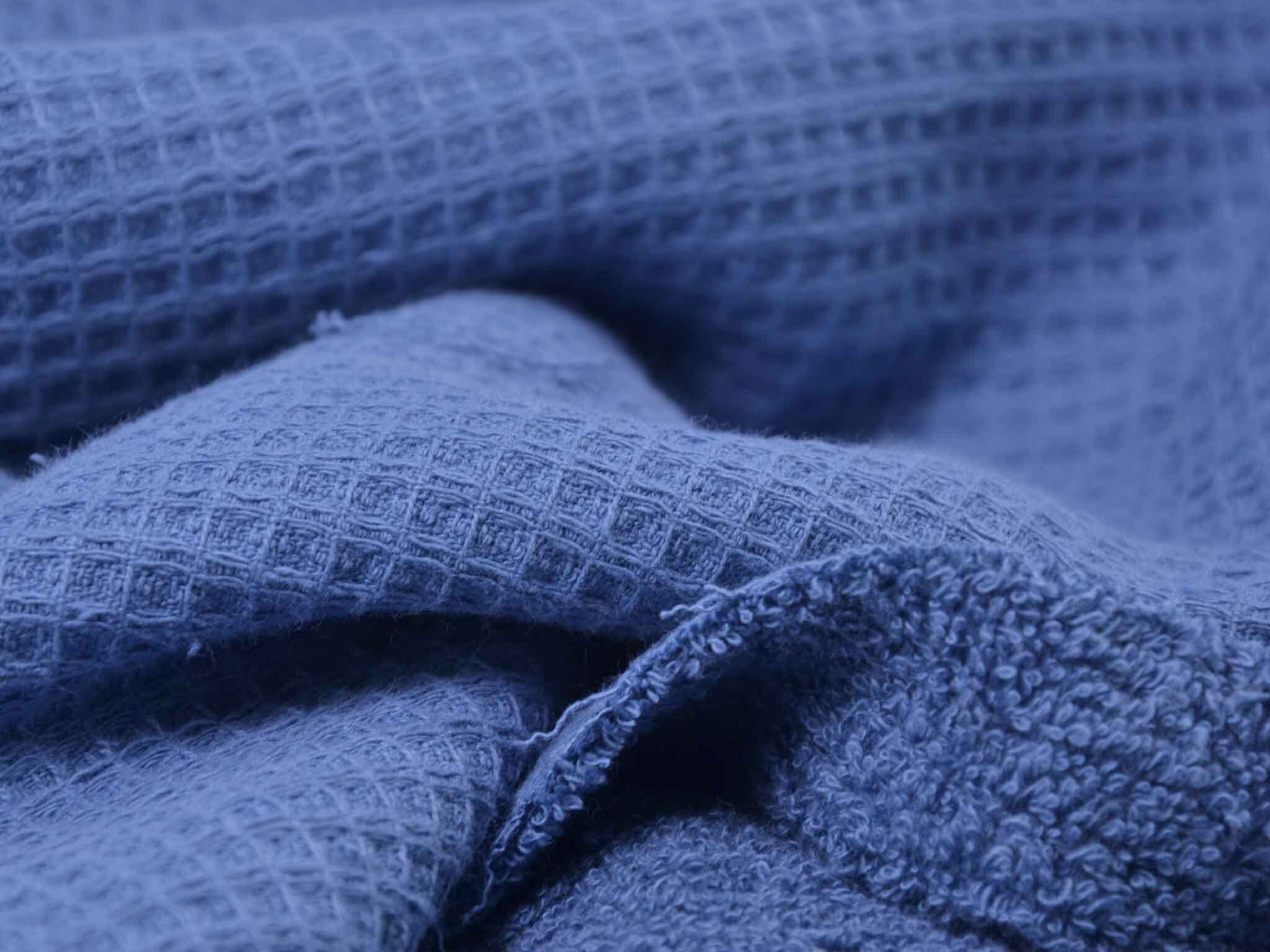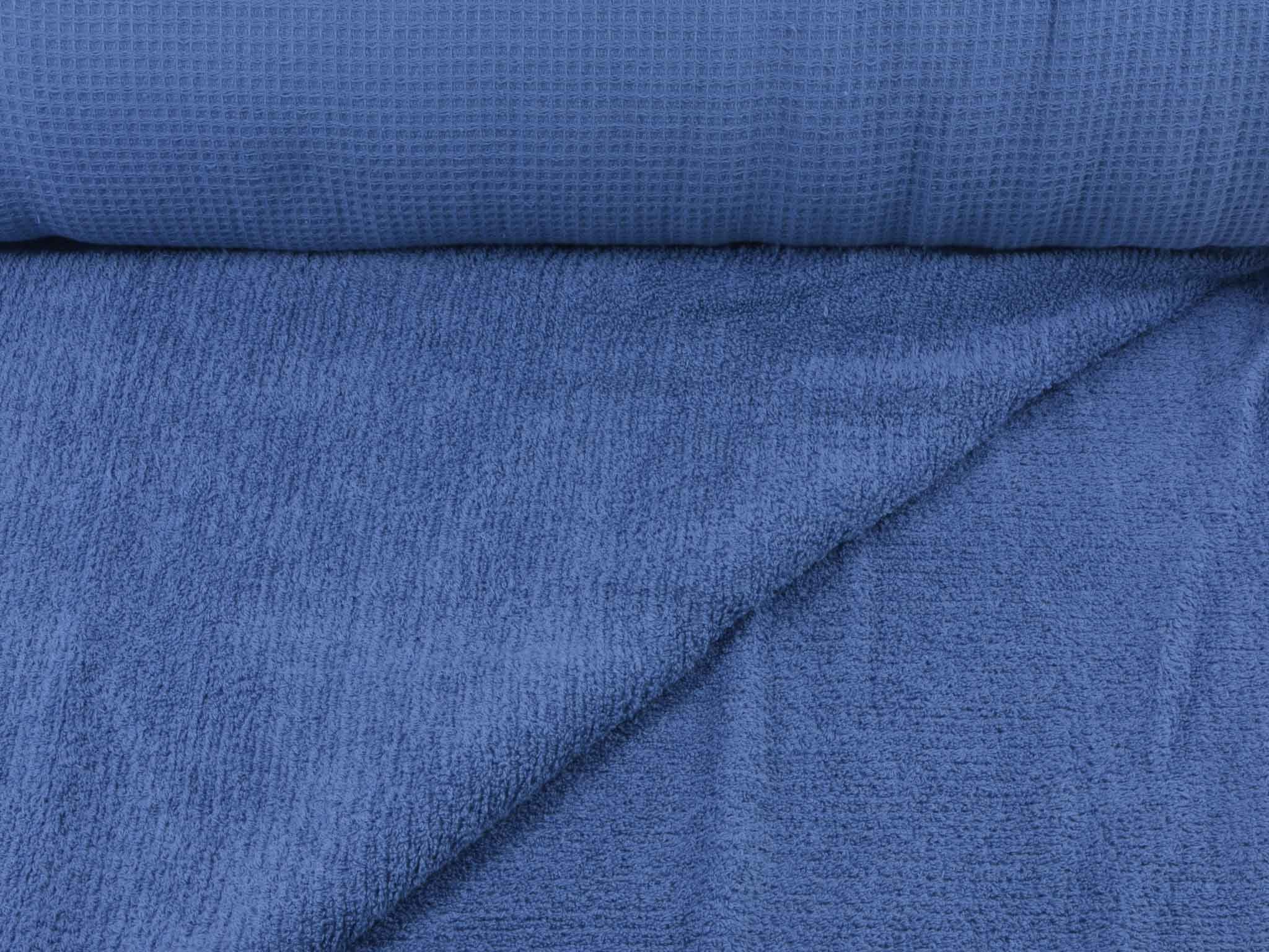 Frottestoff aus 100% Baumwolle mit Abseite aus Waffelpiqué. Der beidseitig verwendbare Stoff ist schön weich und eignet sich wunderbar für Bademäntel, Handtücher, Wickelunterlagen und vieles mehr.