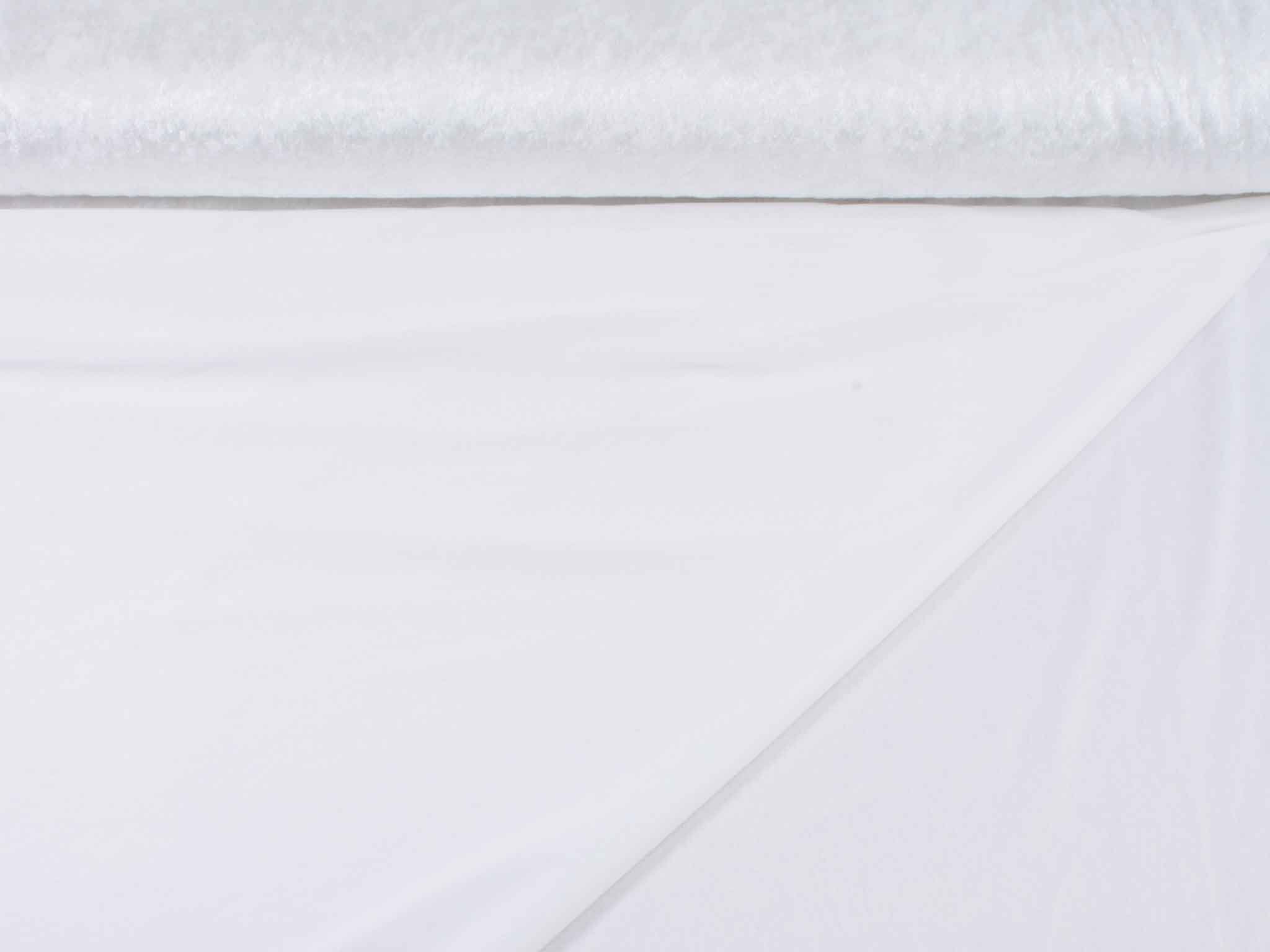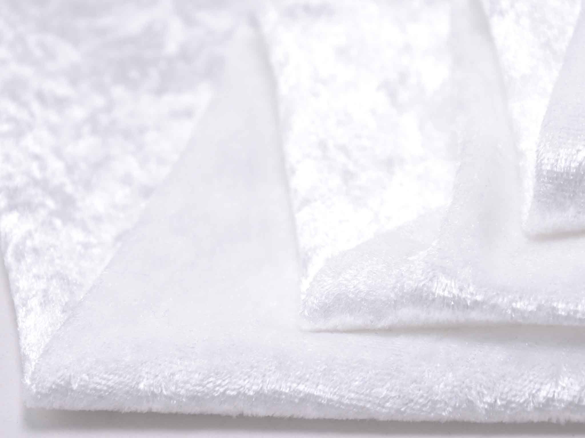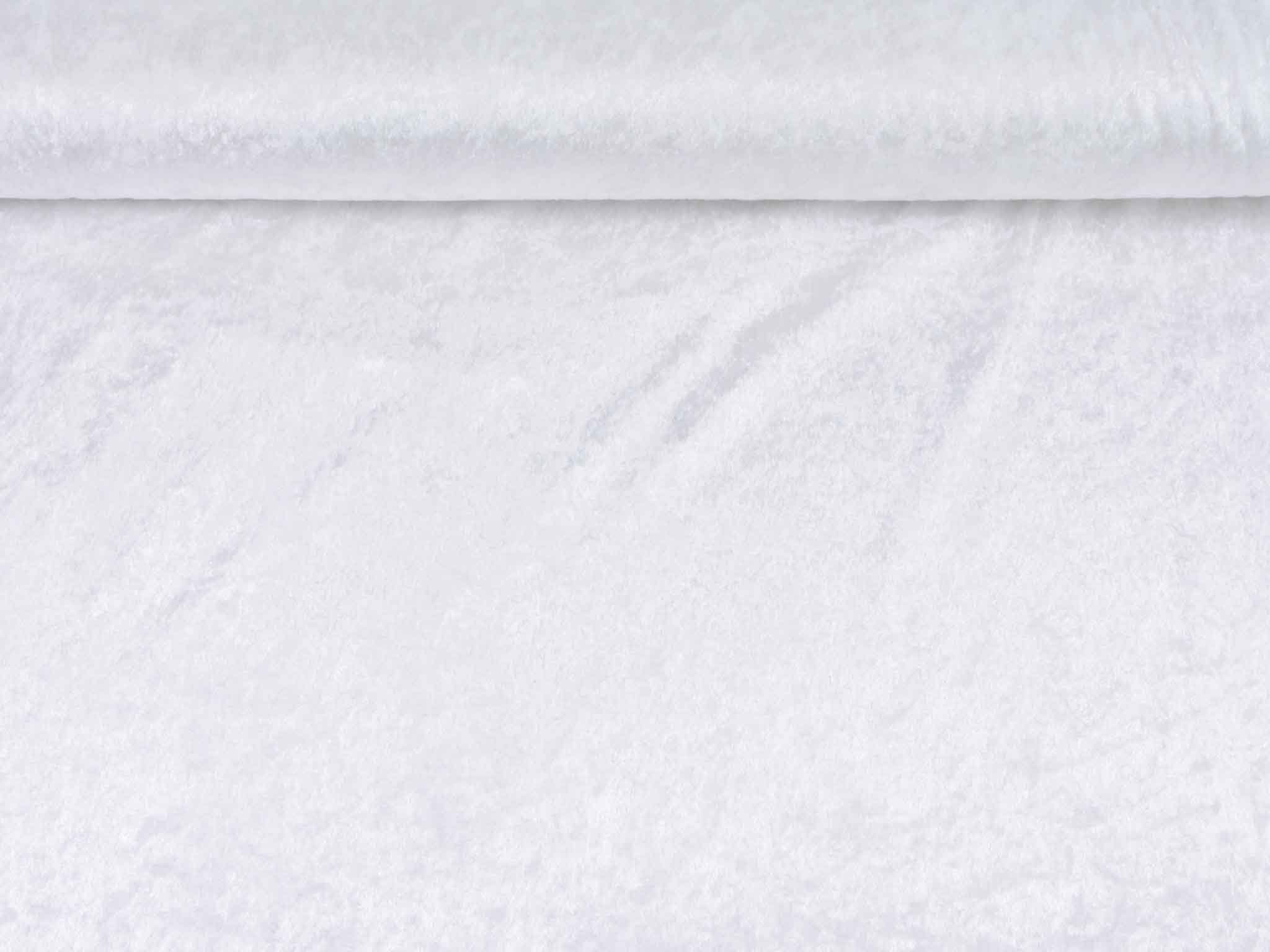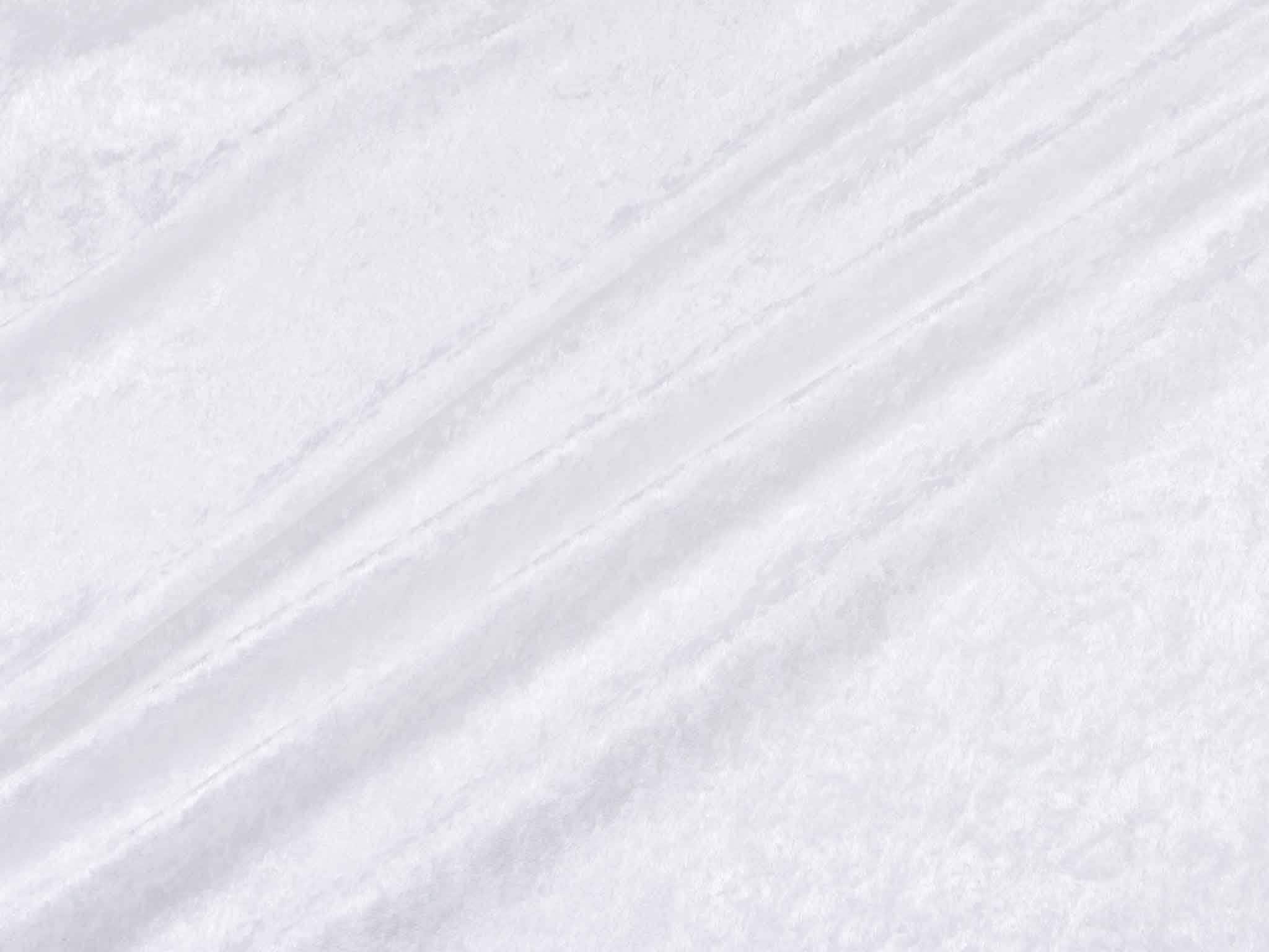 Elastischer, glänzender Pannesamt in uni weiß. Der Stoff fühlt sich weich an und hat einen fließenden Fall. Er eignet sich zum Nähen von Kostümen und zur Dekoration.