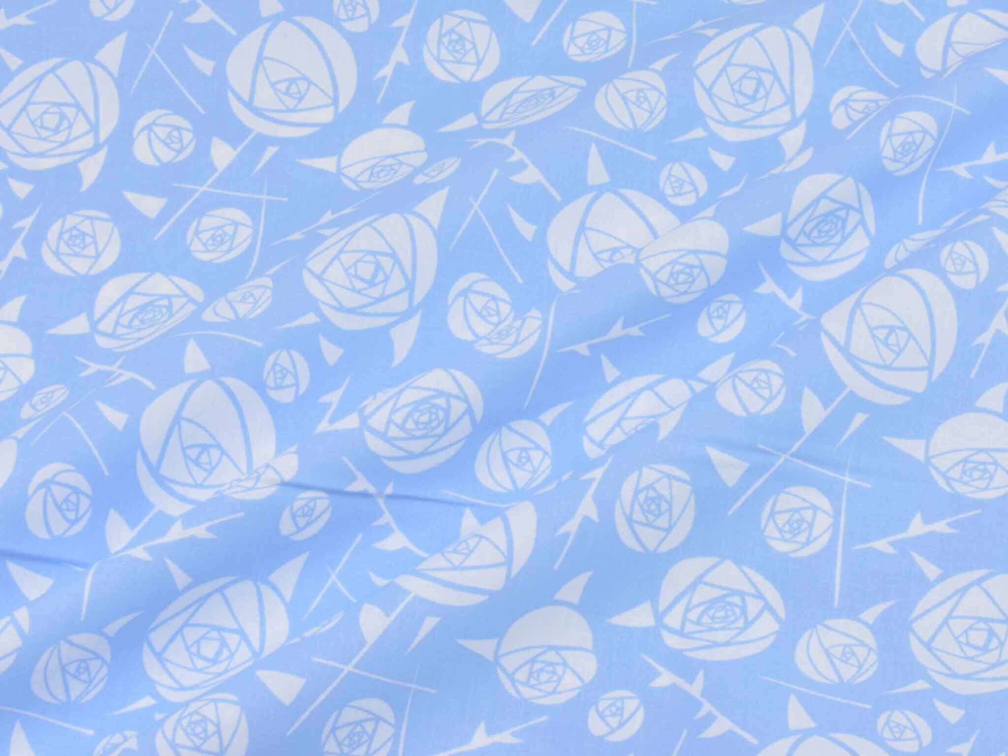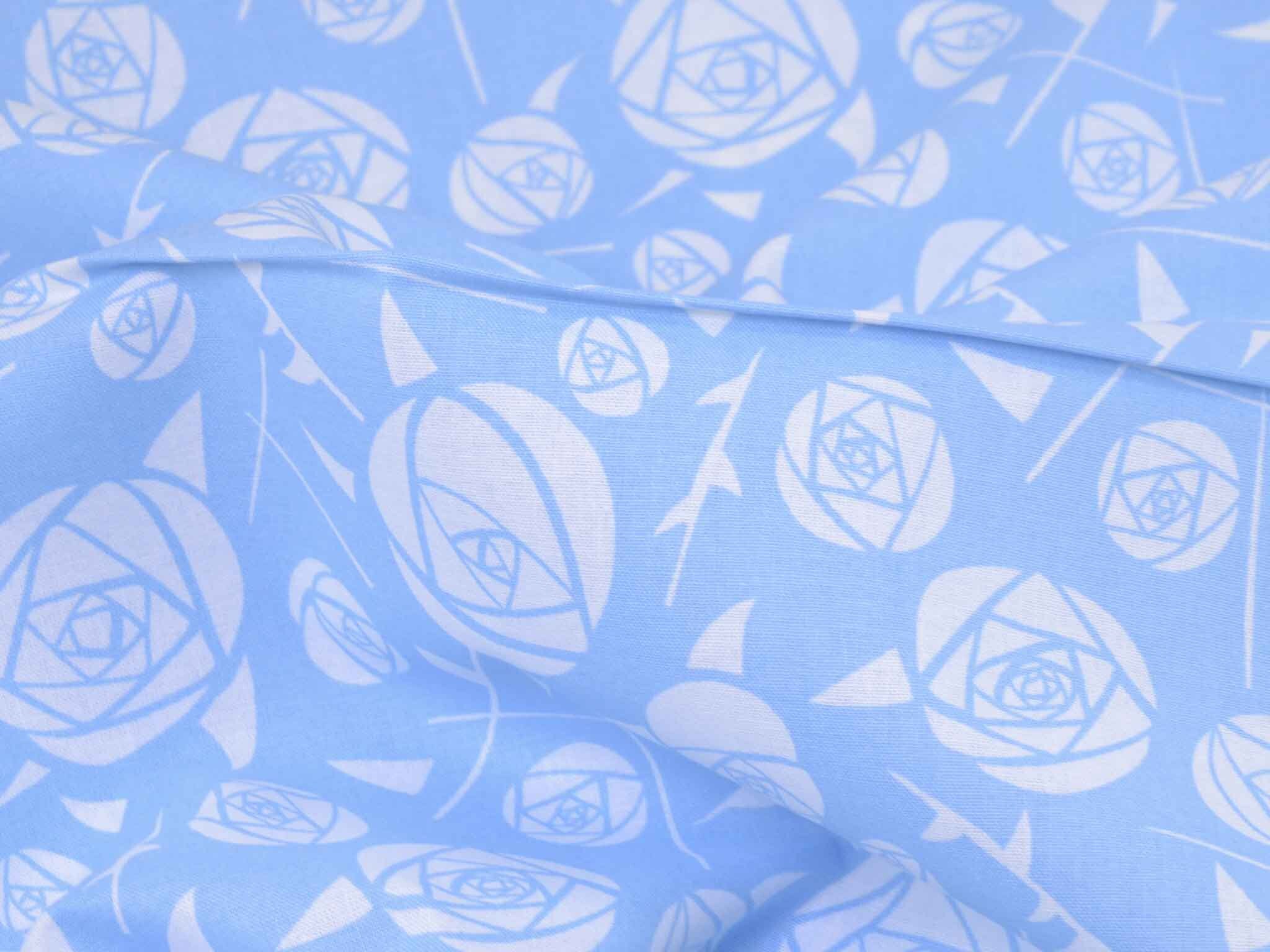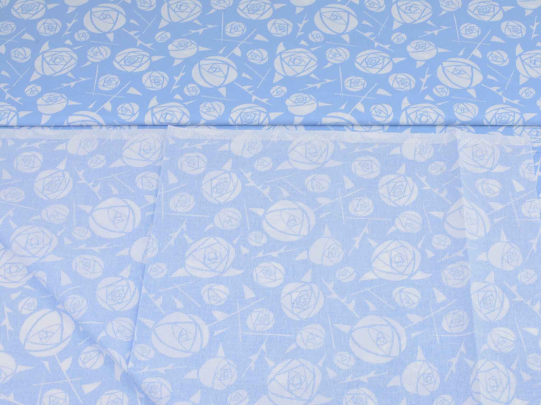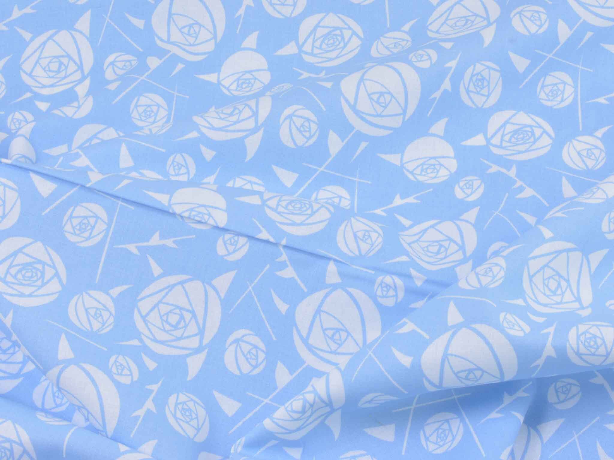 Sehr hochwertiger Webstoff aus Baumwolle von Westfalenstoffe. Der Stoff ist hellblau mit weißen Rosen. Er ist glatt und matt. Nähe daraus Blusen, Kleider, Röcke, Kissen, Taschen und vieles mehr. Der Stoff ist made in Germany.