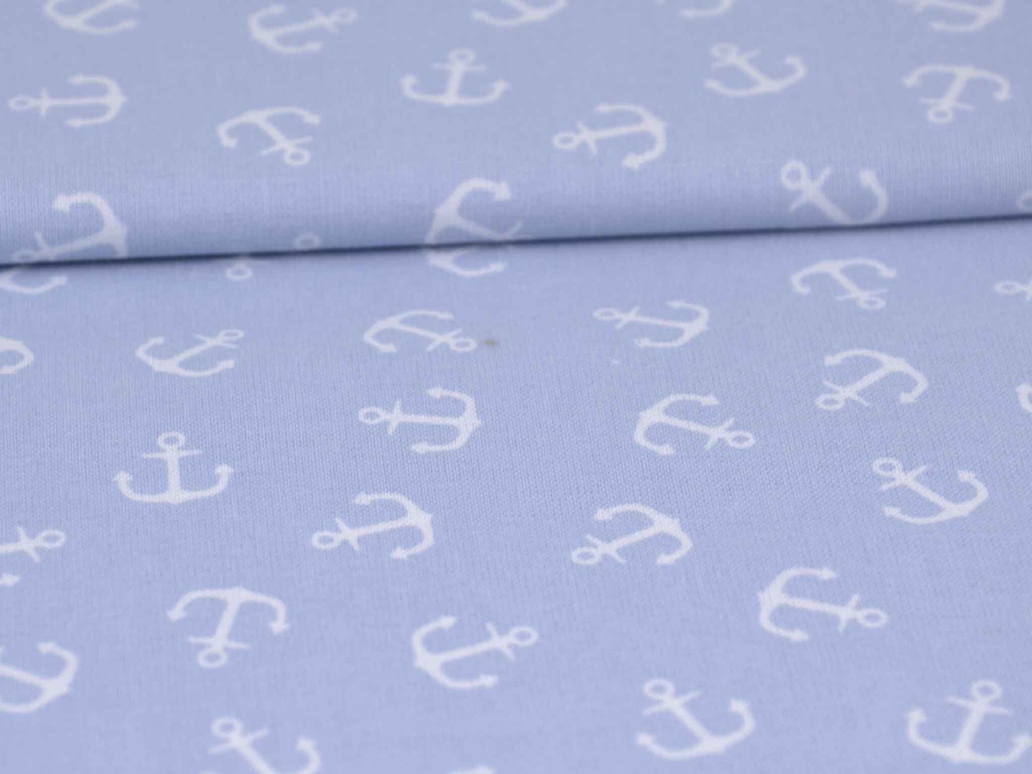 Sehr hochwertiger Webstoff aus Baumwolle von Westfalenstoffe. Der Digitaldruckstoff ist hellgrau mit weißen Ankern. Ein Anker ist ca. 1,5 cm mal 1,5 cm groß. Er ist glatt und matt. Nähe daraus Blusen, Kleider, Röcke, Kissen, Taschen und vieles mehr. Der Stoff ist made in Germany.