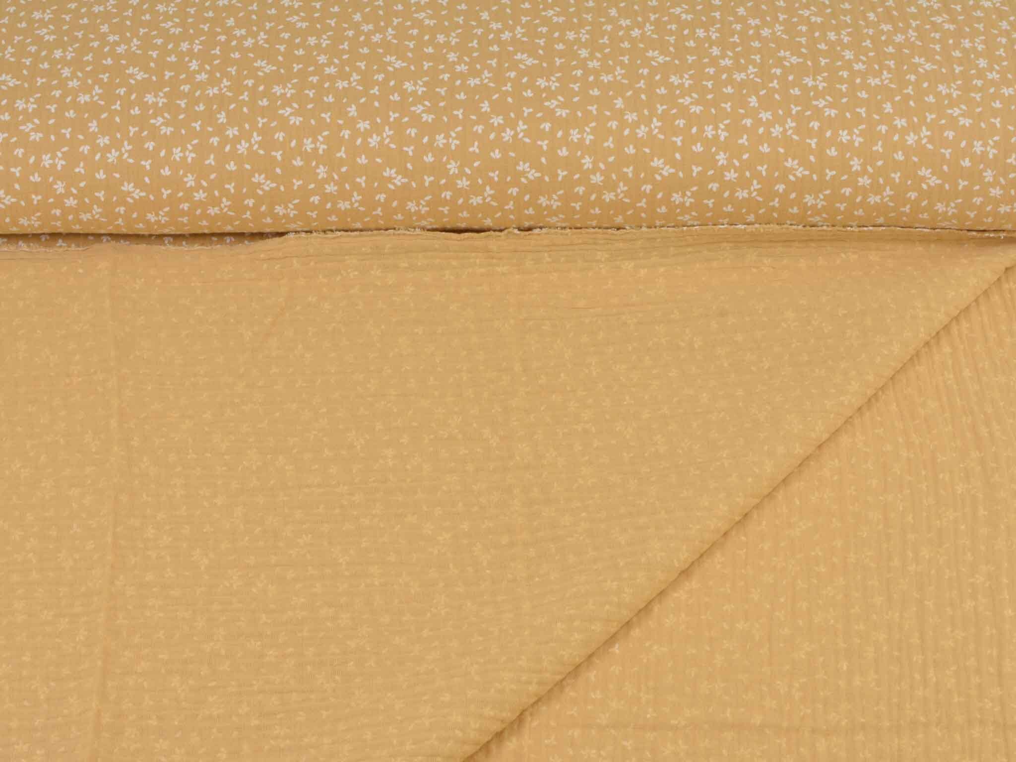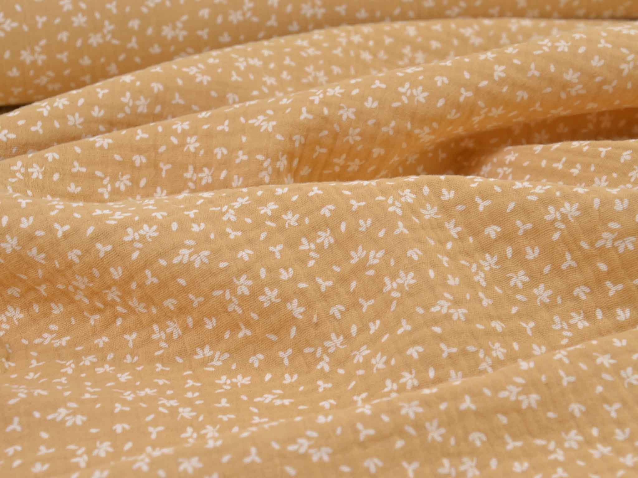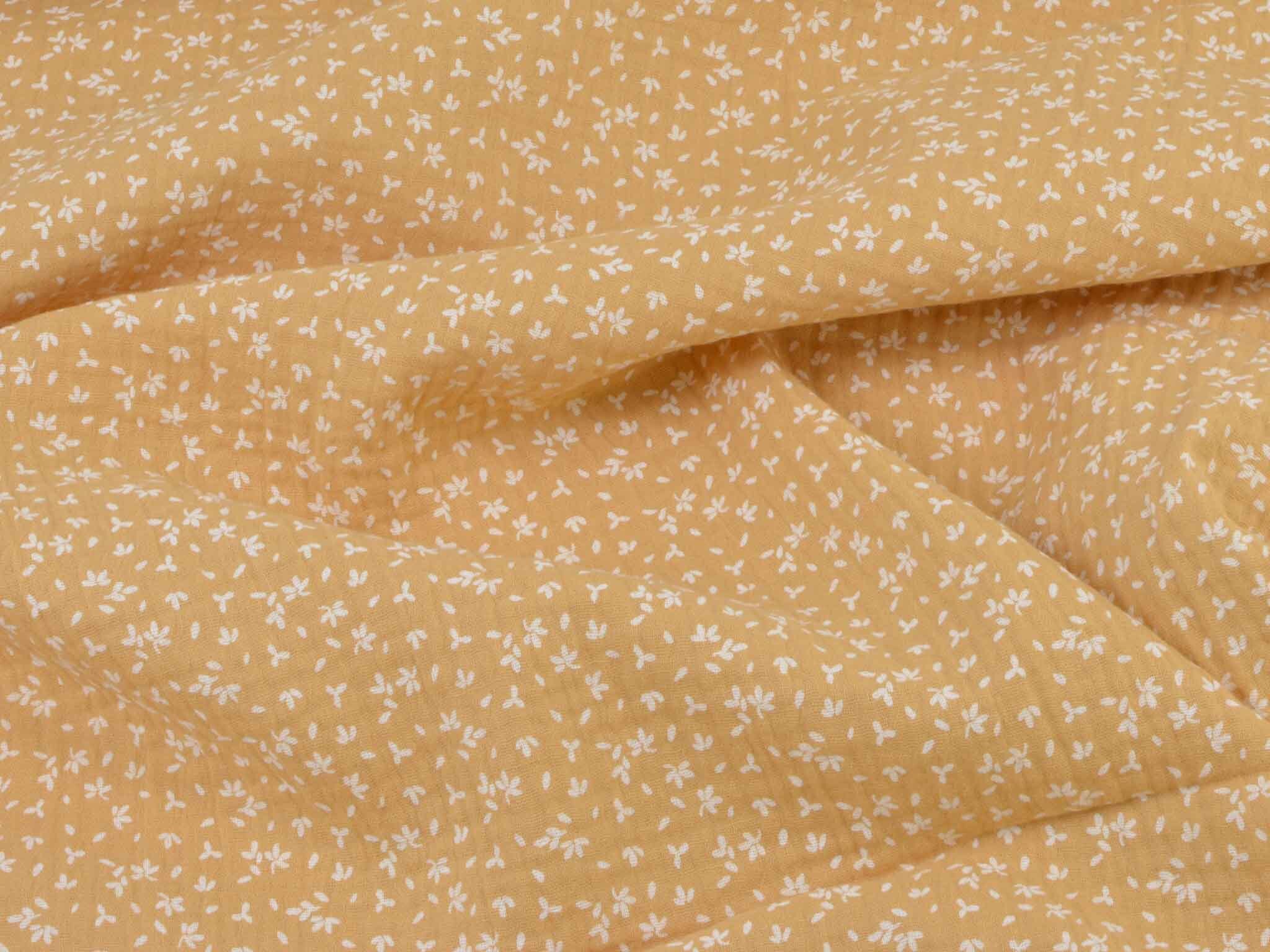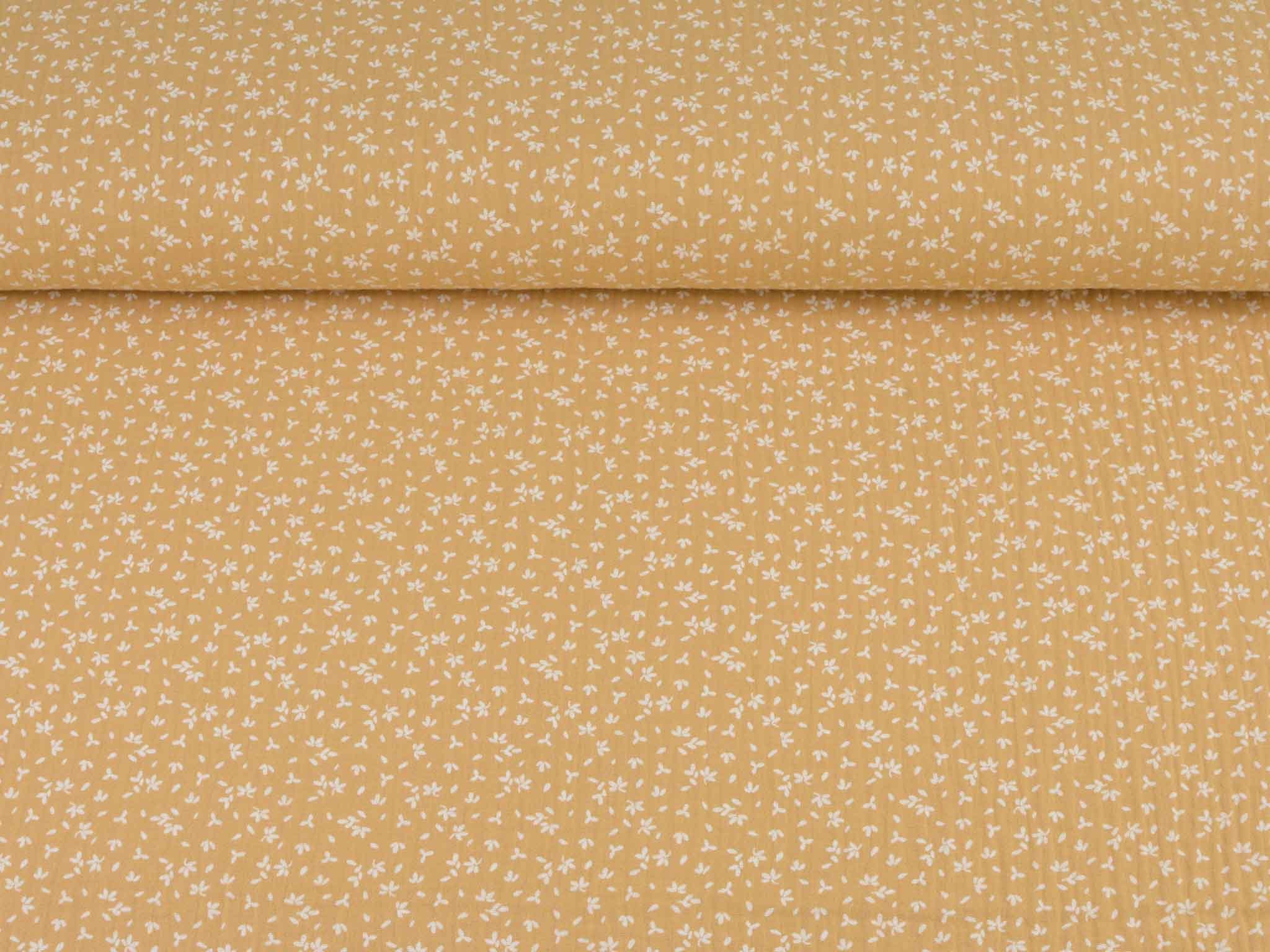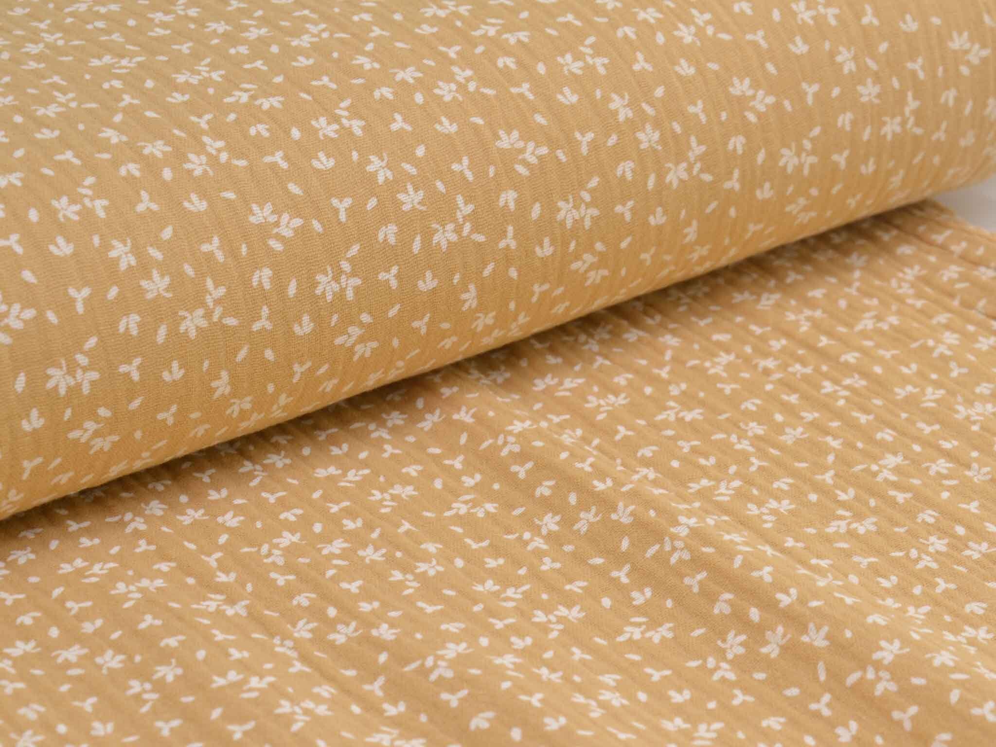 Hochwertiger Musselin aus Baumwolle. Der zweilagige Stoff zeigt kleine Blumen und Punkte in weiß. Musselin hat einen weichen Fall und fühlt sich auf der Haut gut an. Du kannst Musseline wunderbar miteinander kombinieren. Nähe dir zum Beispiel Blusen, Kleider, Röcke, Kissen, Tagesdecken, Tücher und so so vieles mehr.
