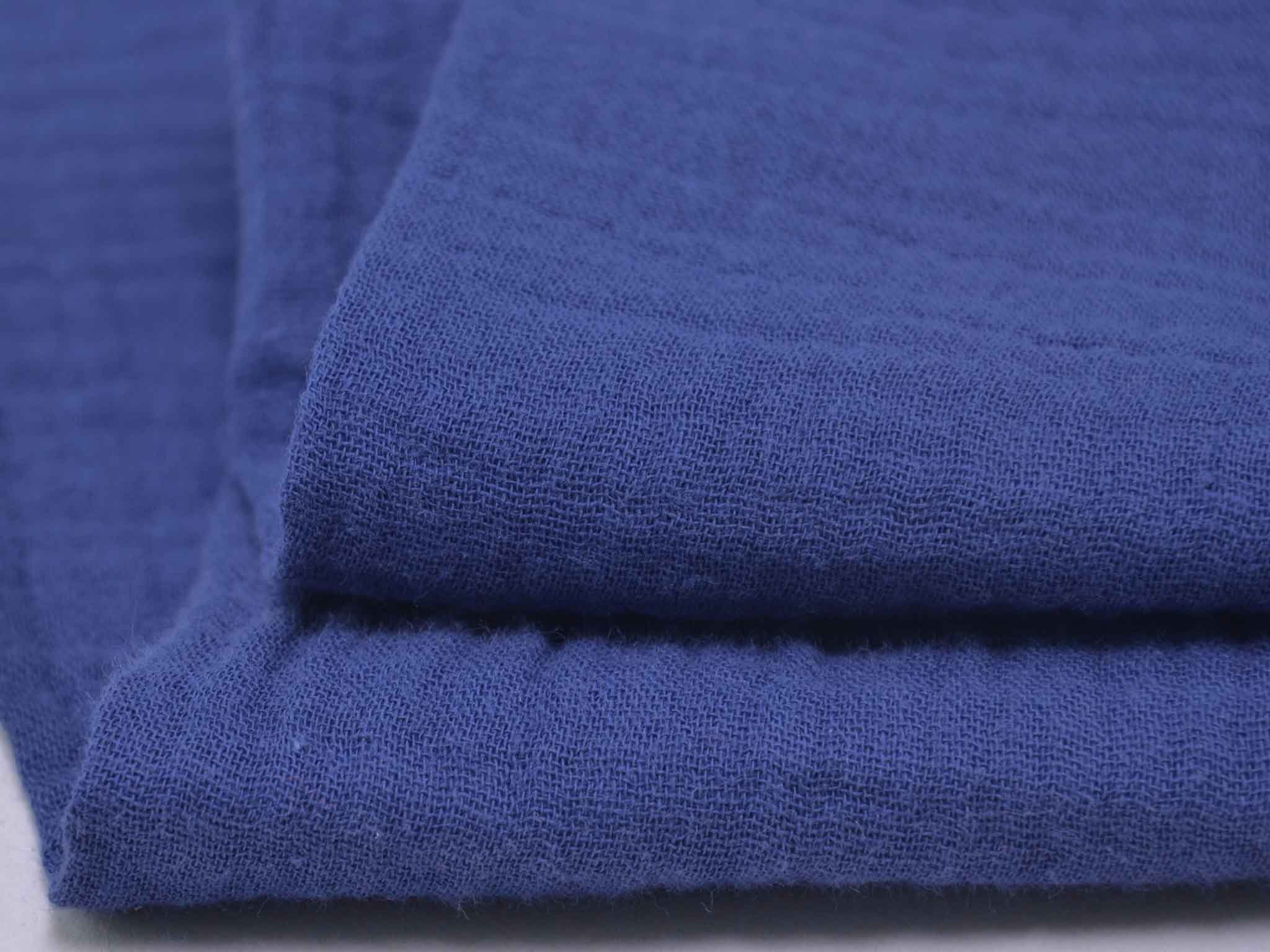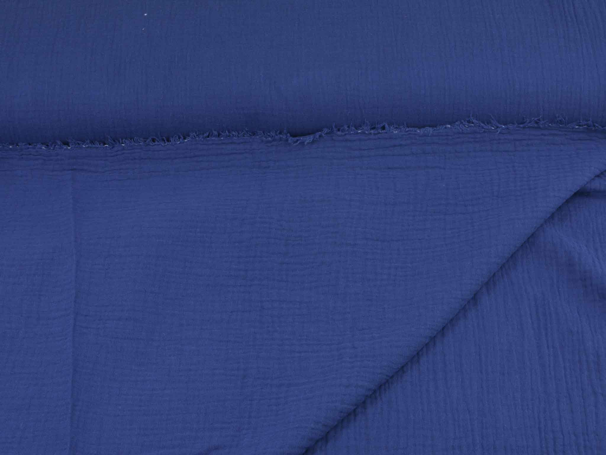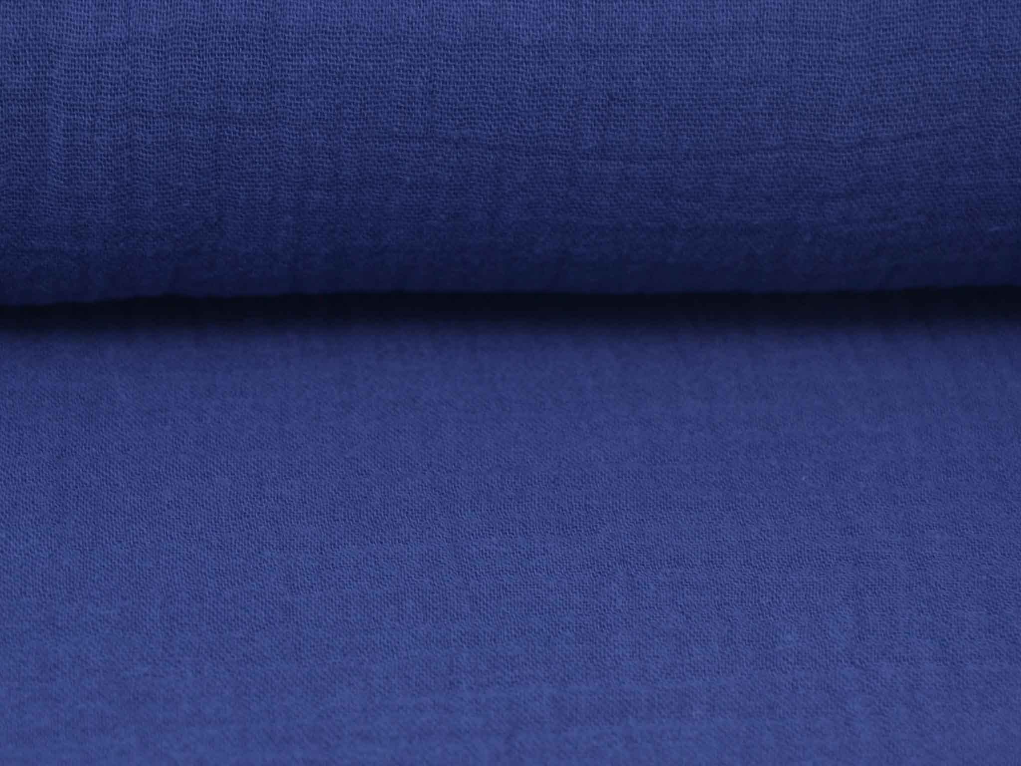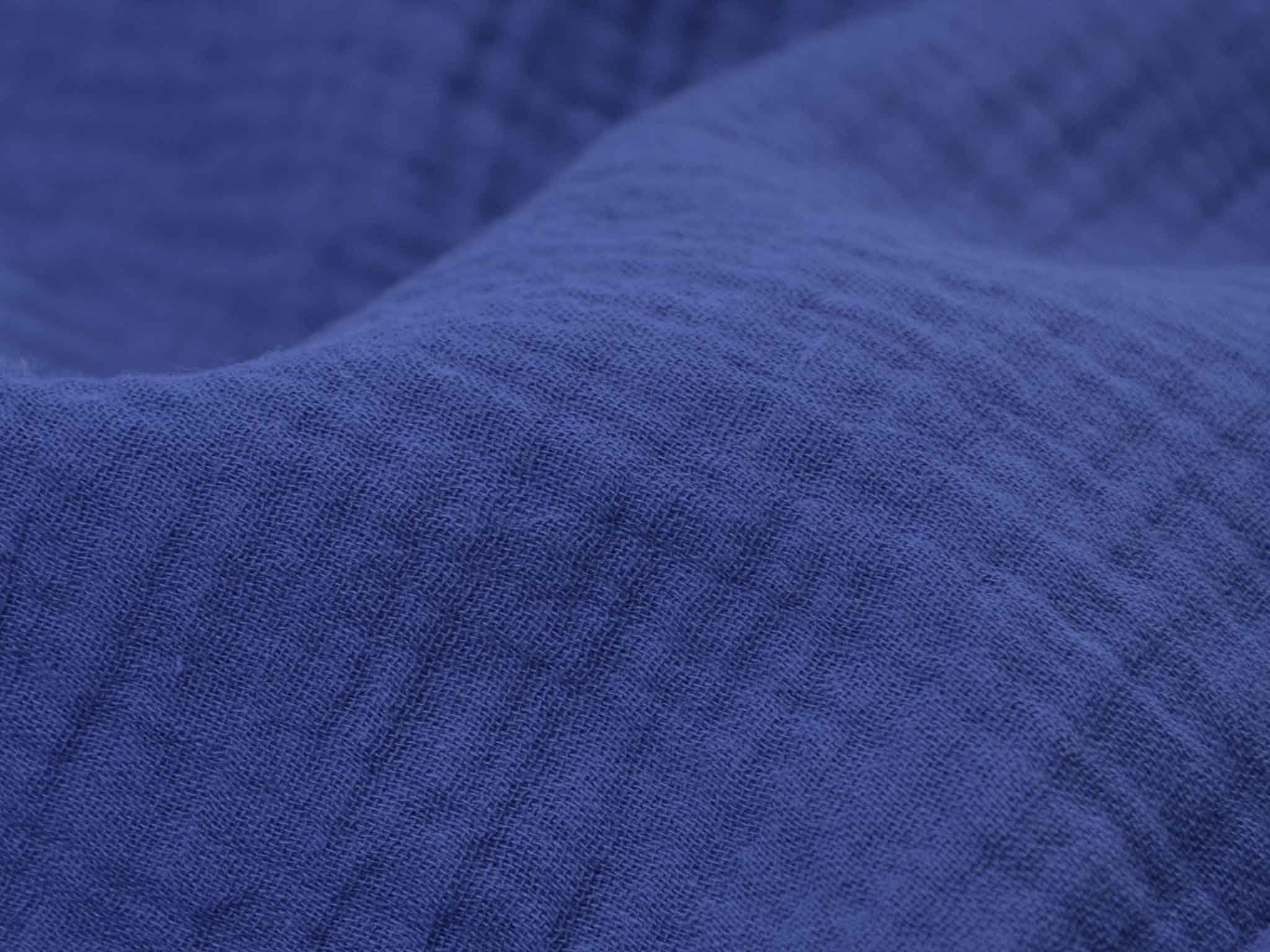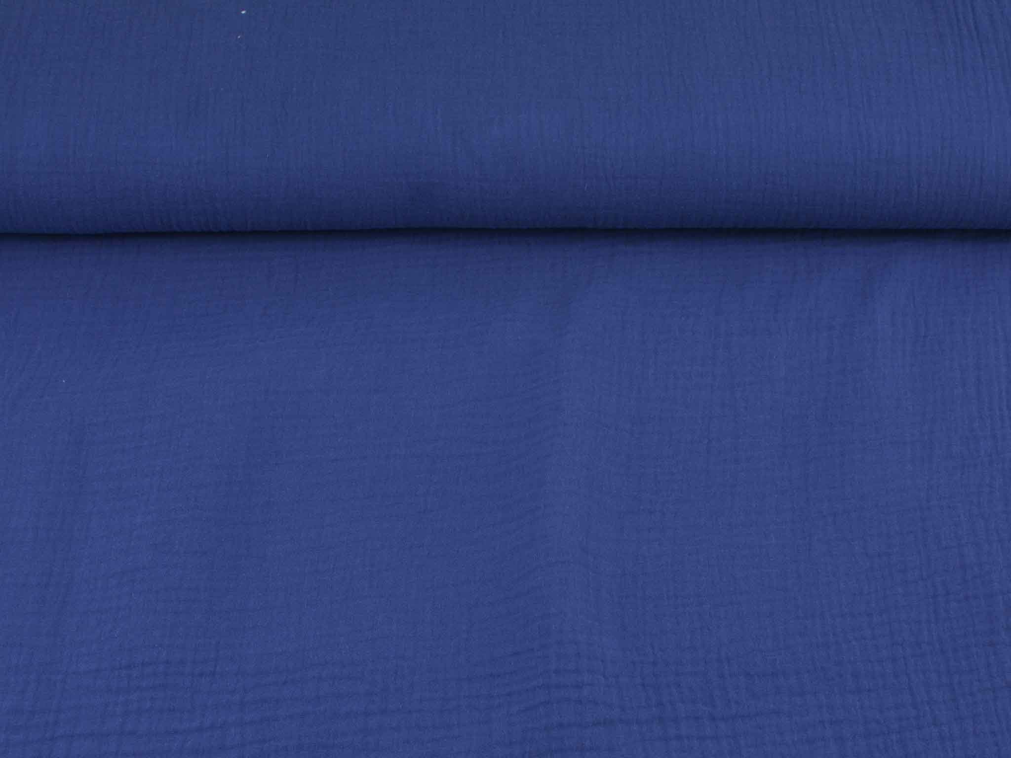Hochwertiger Musselin aus Baumwolle. Der zweilagige Stoff in einfarbig dunkelblau. Musselin hat einen weichen Fall und fühlt sich auf der Haut gut an. Du kannst Musseline wunderbar miteinander kombinieren. Nähe dir zum Beispiel Blusen, Kleider, Röcke, Kissen, Tagesdecken, Tücher und so so vieles mehr.