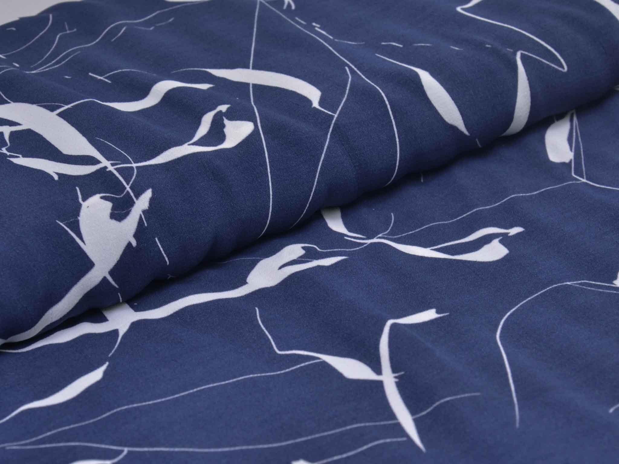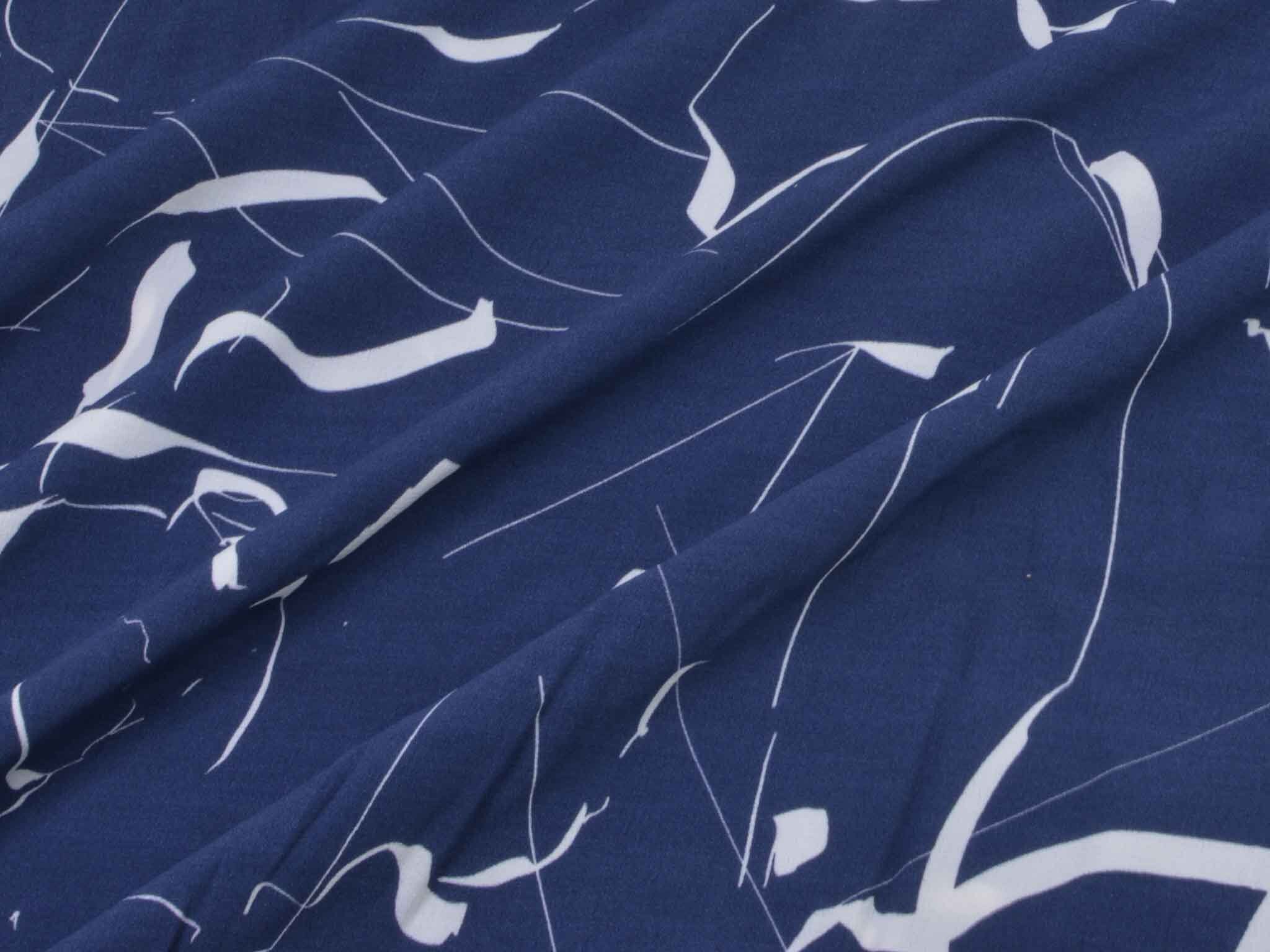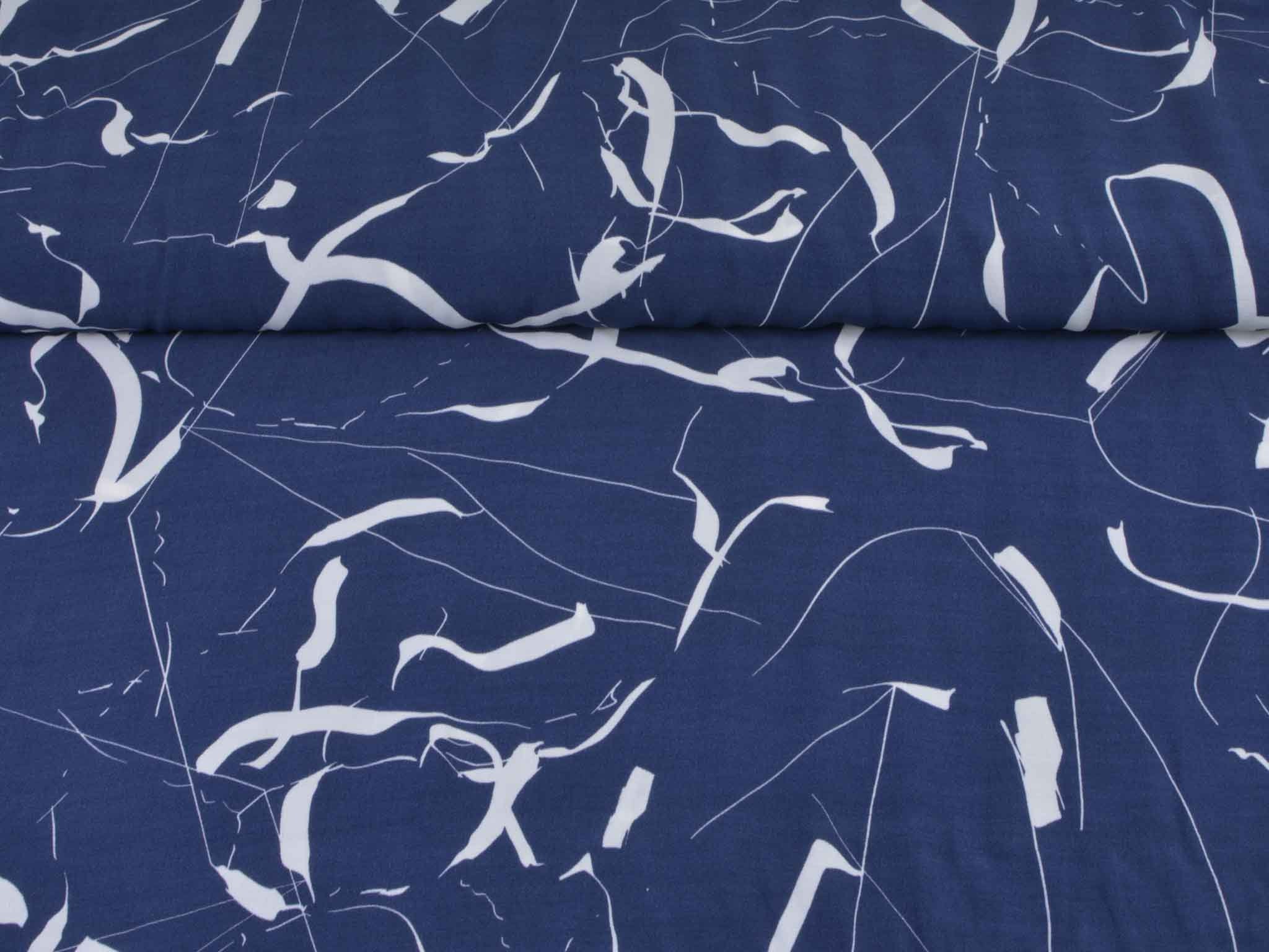 Hochwertige Webware aus dem Hause Hilco. Die blau Viskose mit großen, weißen Strichen eignet sich wunderbar zum Nähen von Blusen, Kleidern, fließenden Röcken und Hosen und vielem mehr. Der Stoff ist dünn und fällt fließend.