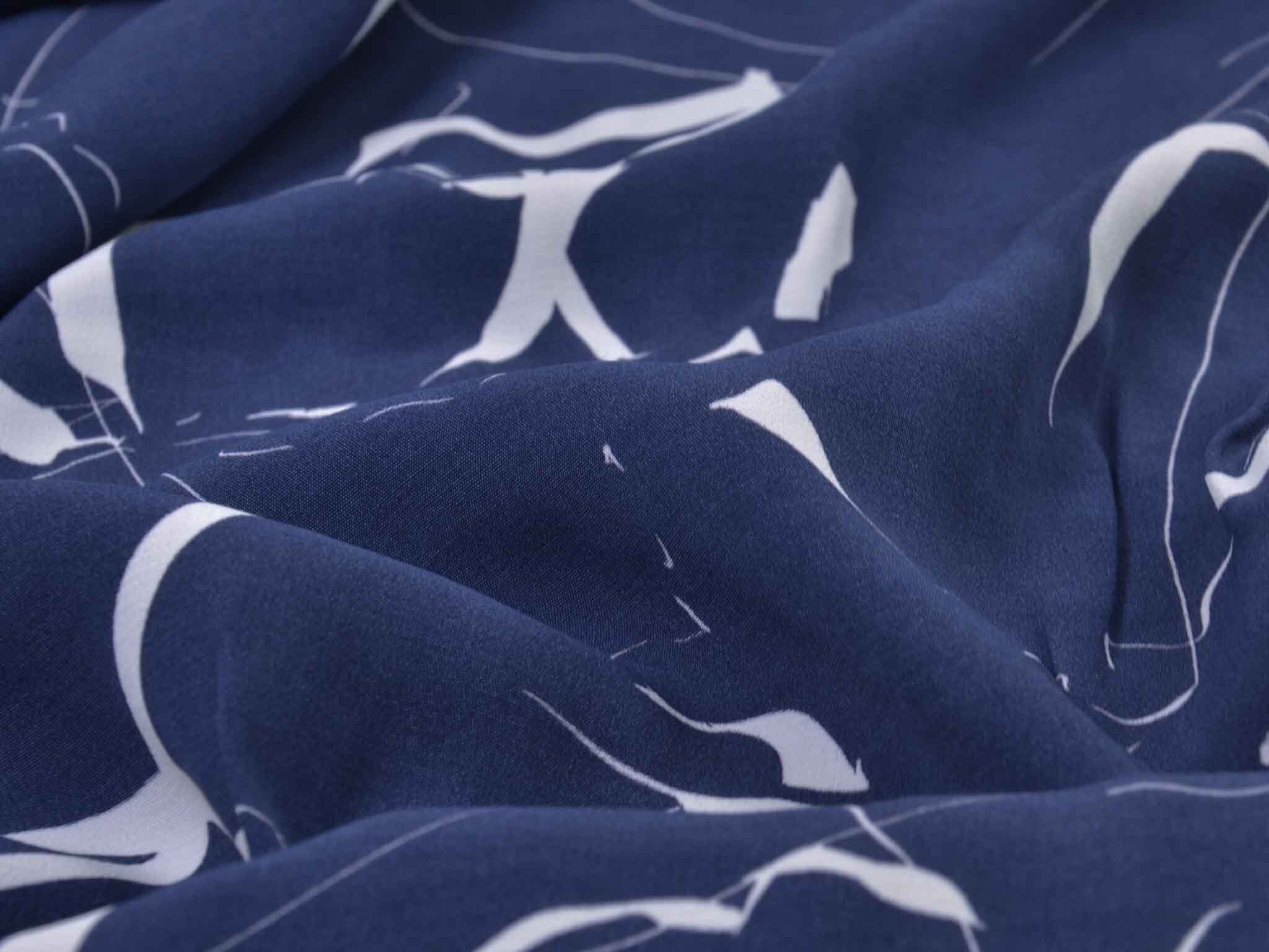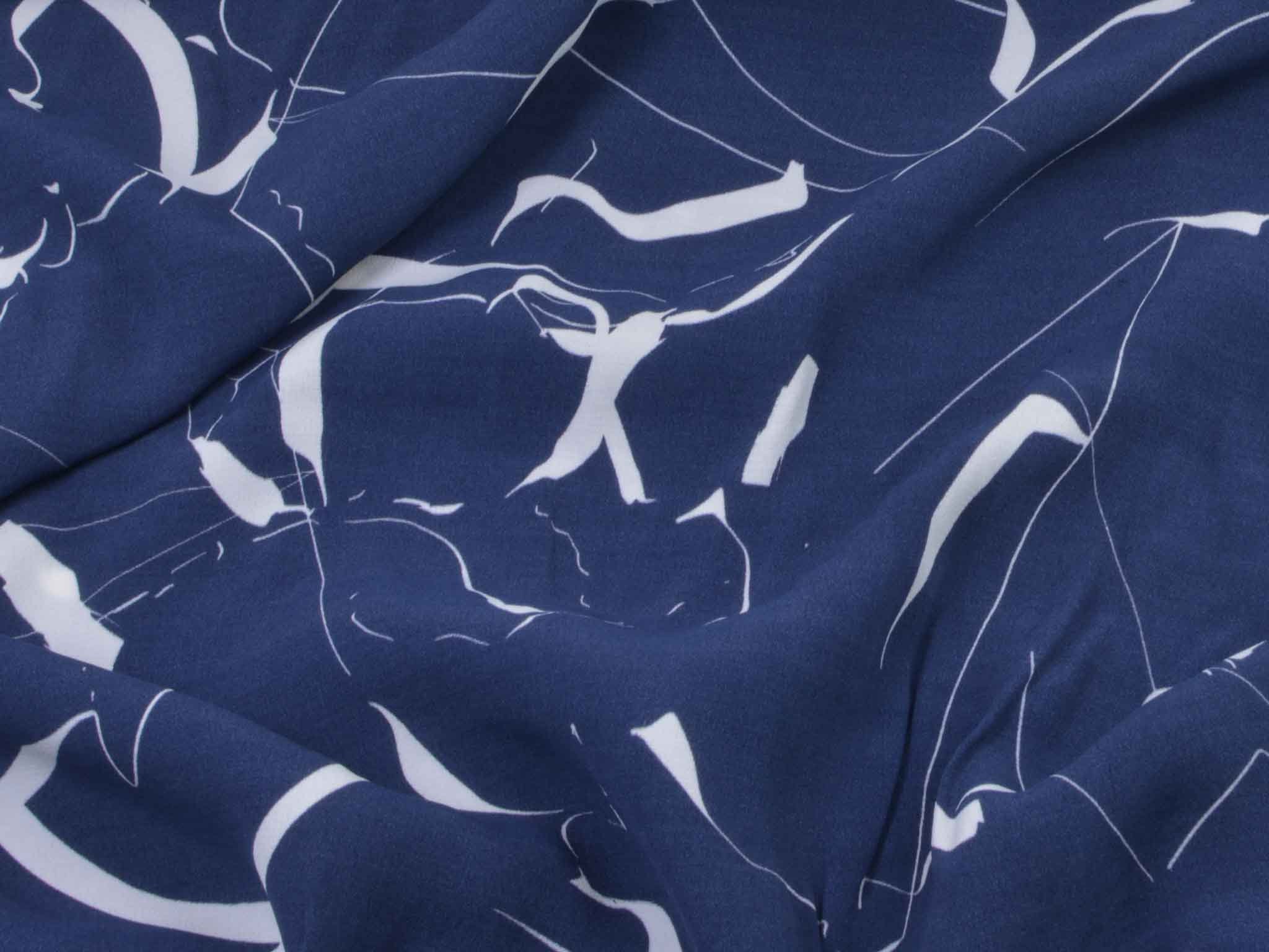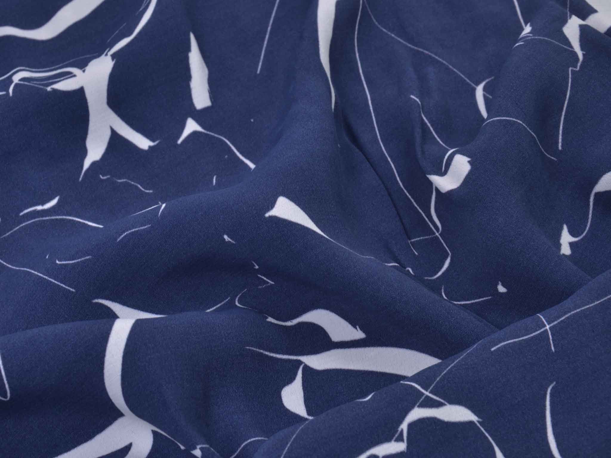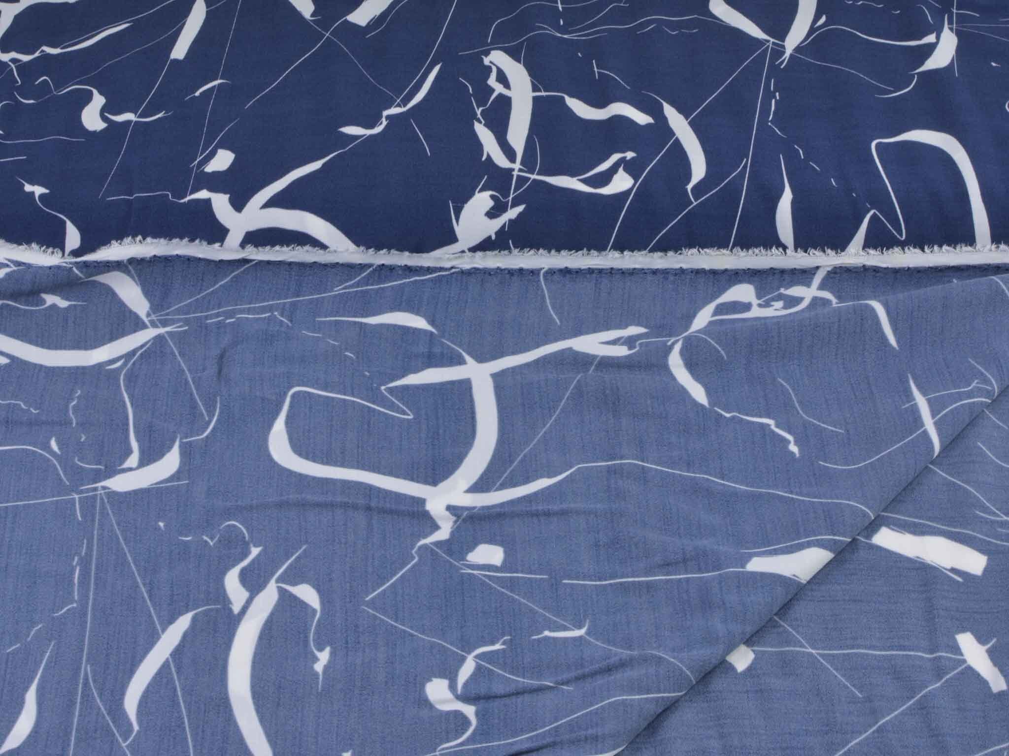 Hochwertige Webware aus dem Hause Hilco. Die blau Viskose mit großen, weißen Strichen eignet sich wunderbar zum Nähen von Blusen, Kleidern, fließenden Röcken und Hosen und vielem mehr. Der Stoff ist dünn und fällt fließend.