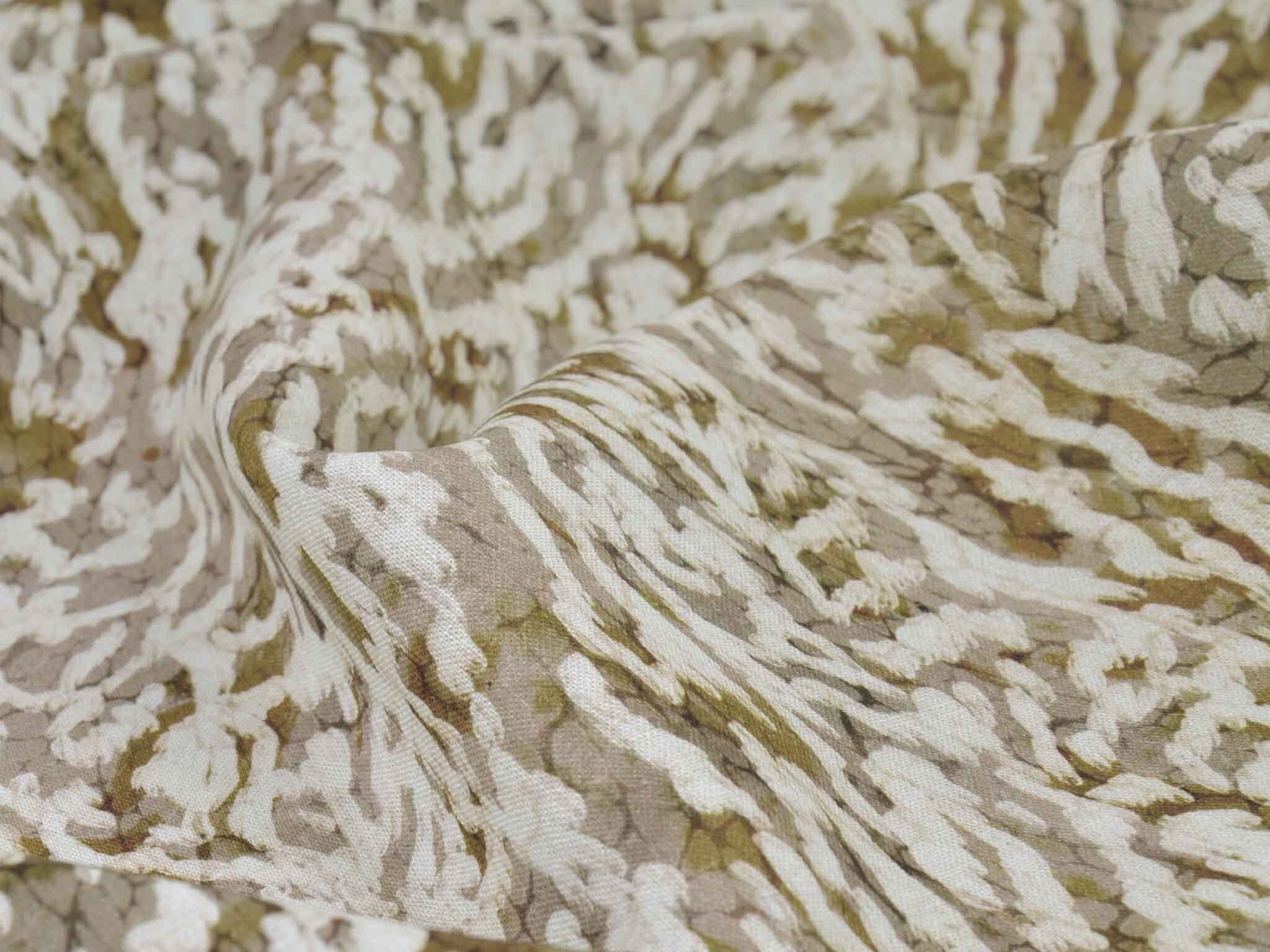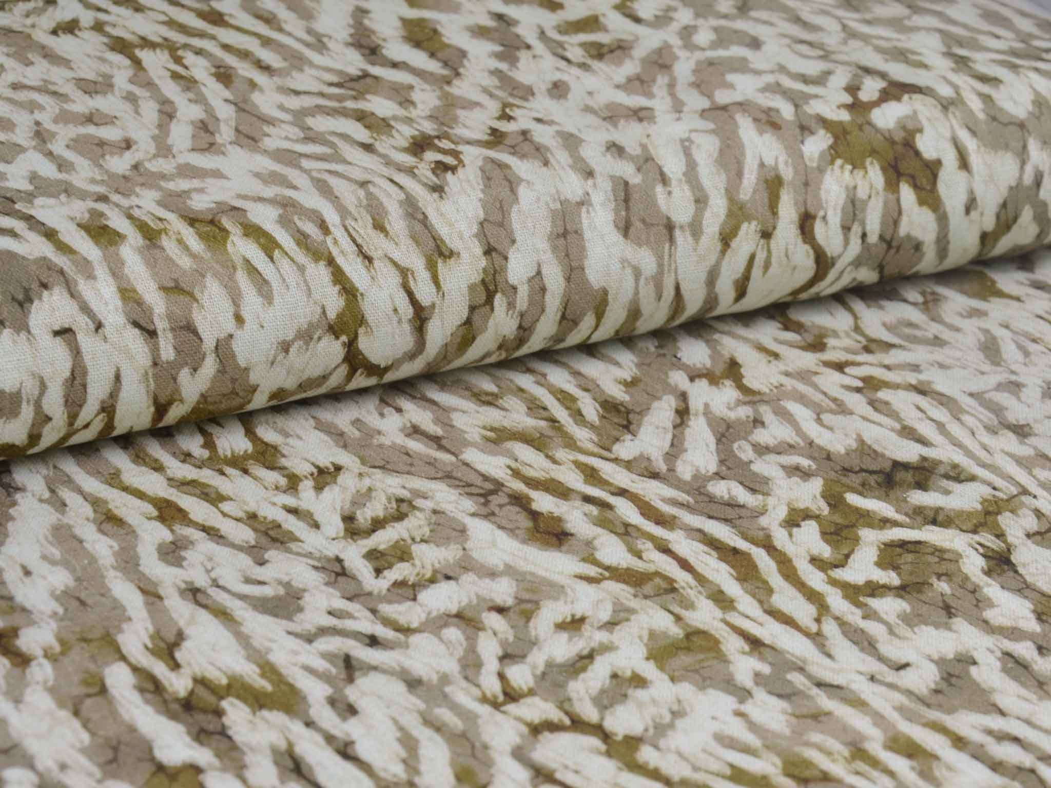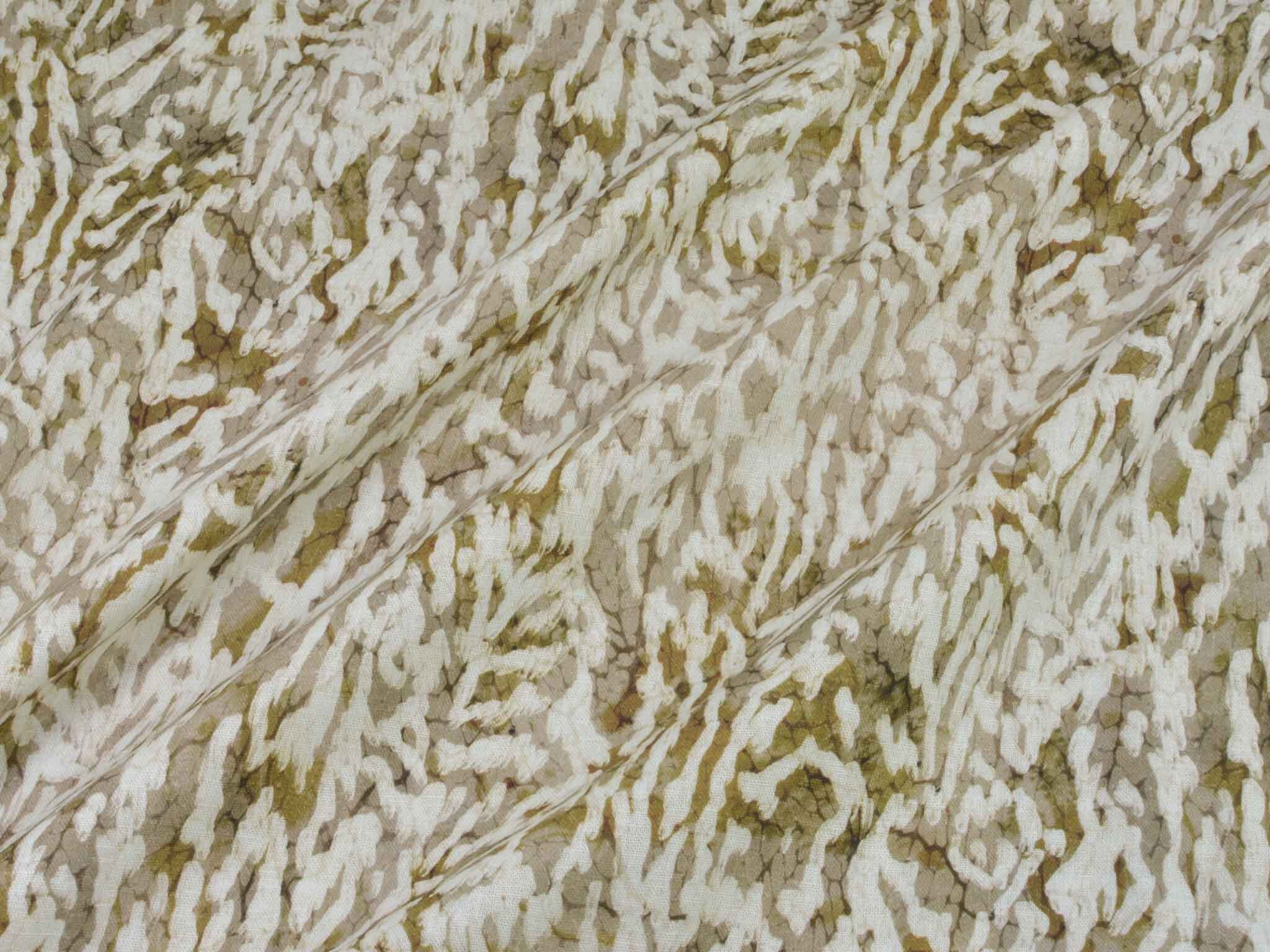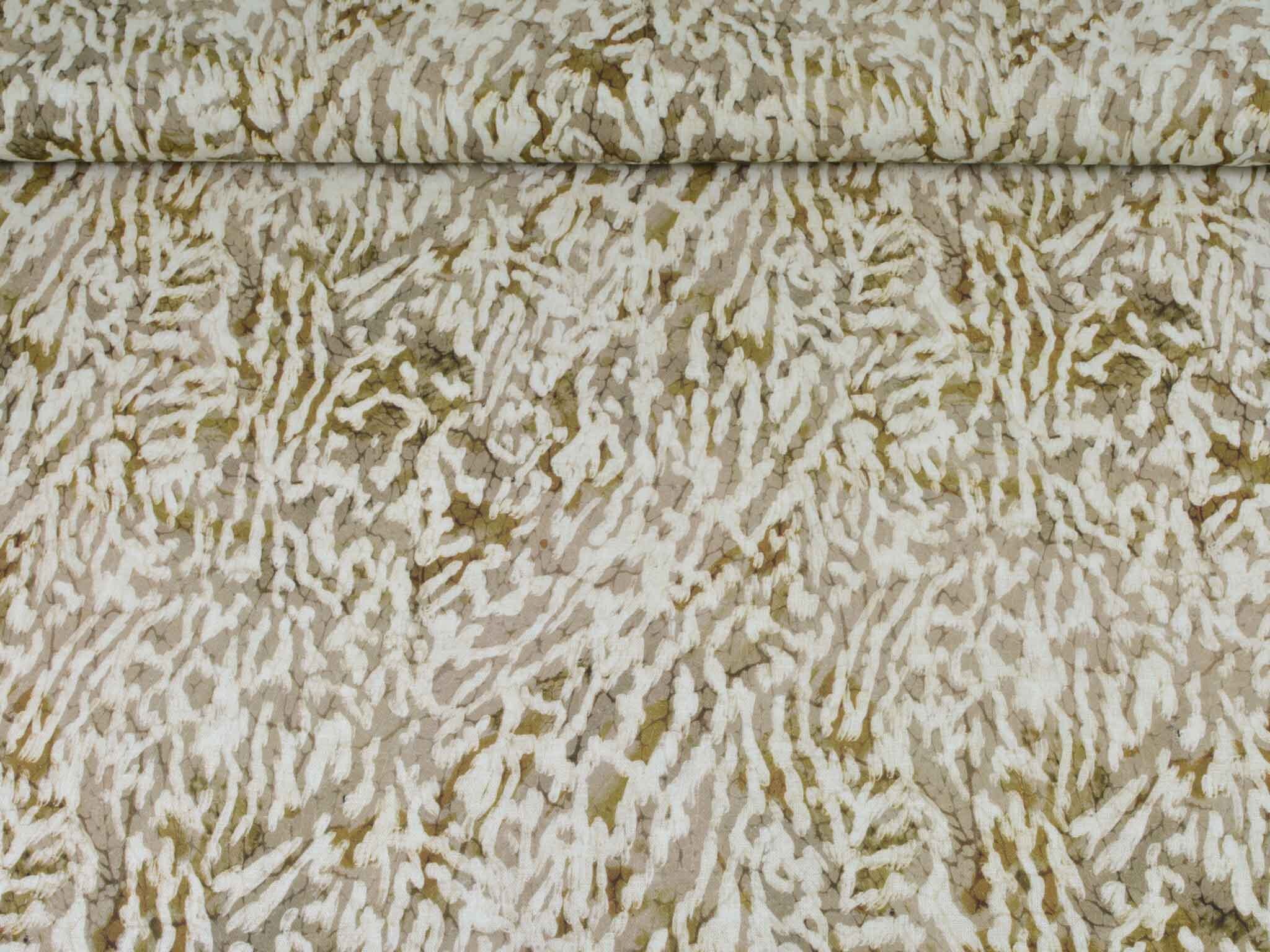 Webware aus Leinen und Viskose in mit Print beige und grün. Der Stoff ist mittelschwer. Nähe dir daraus tolle Sommerkleider, Röcke, Hosen und vieles mehr.