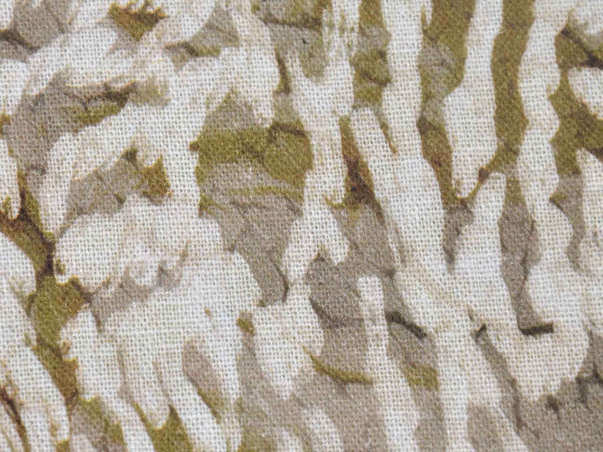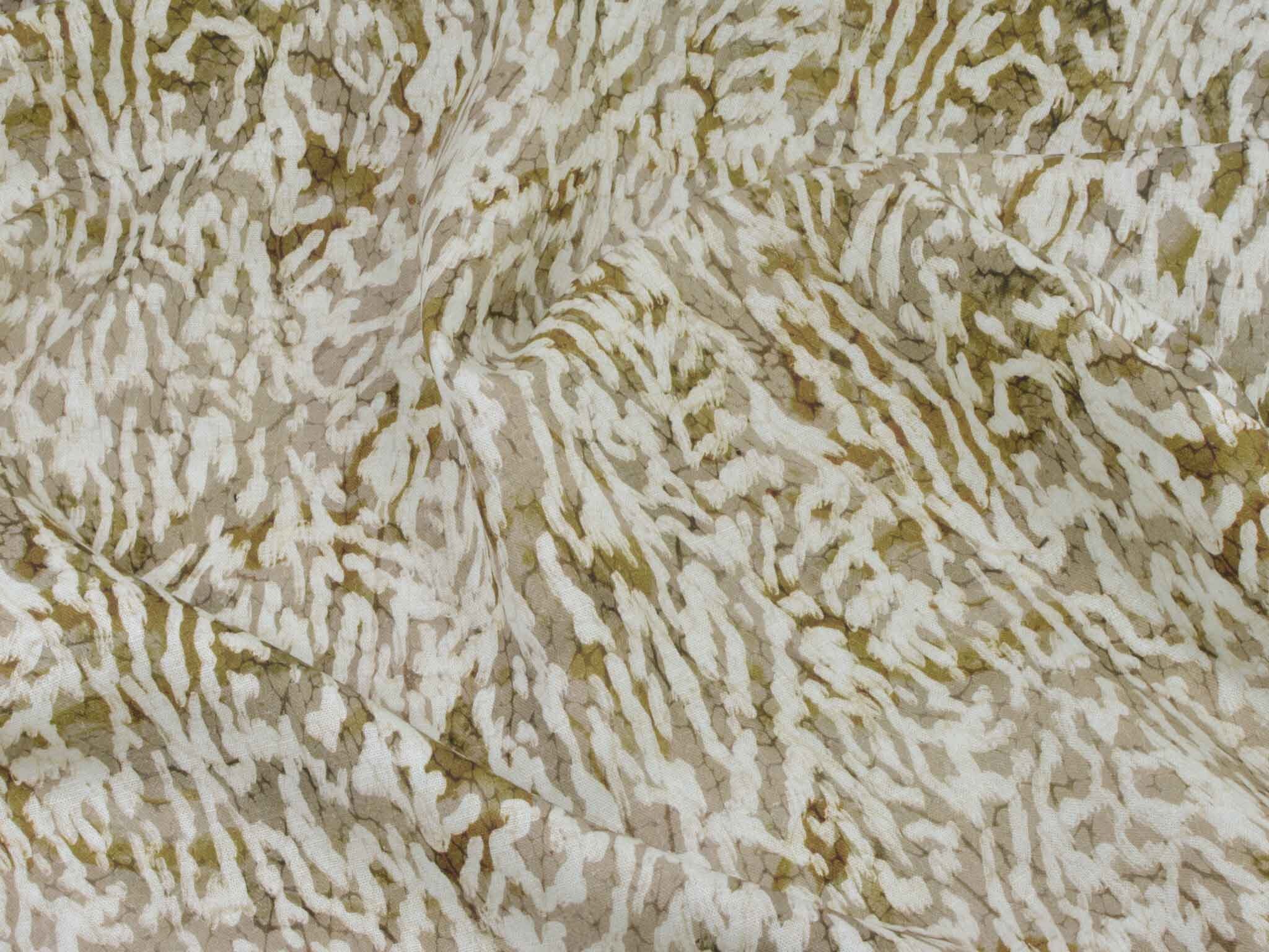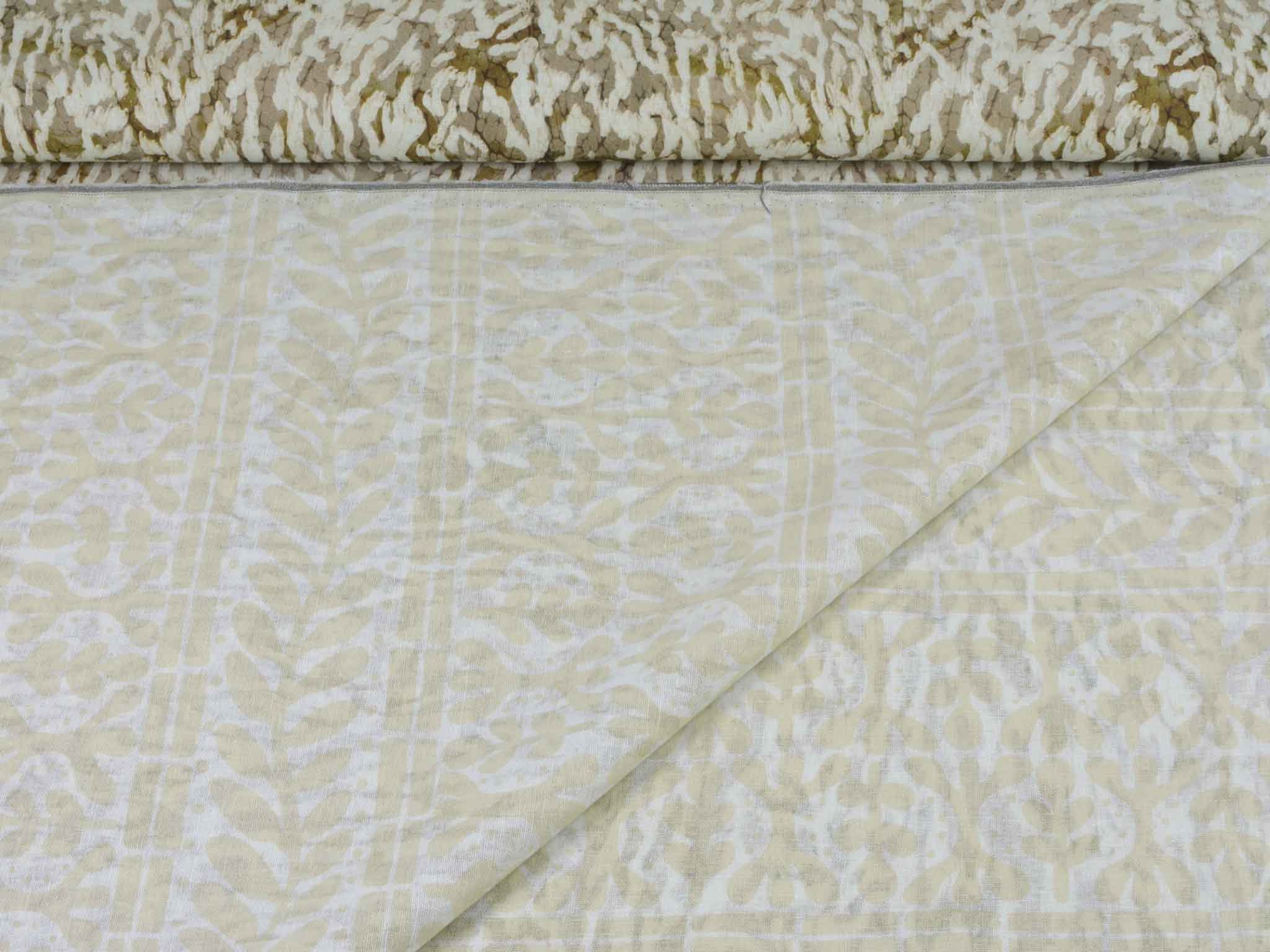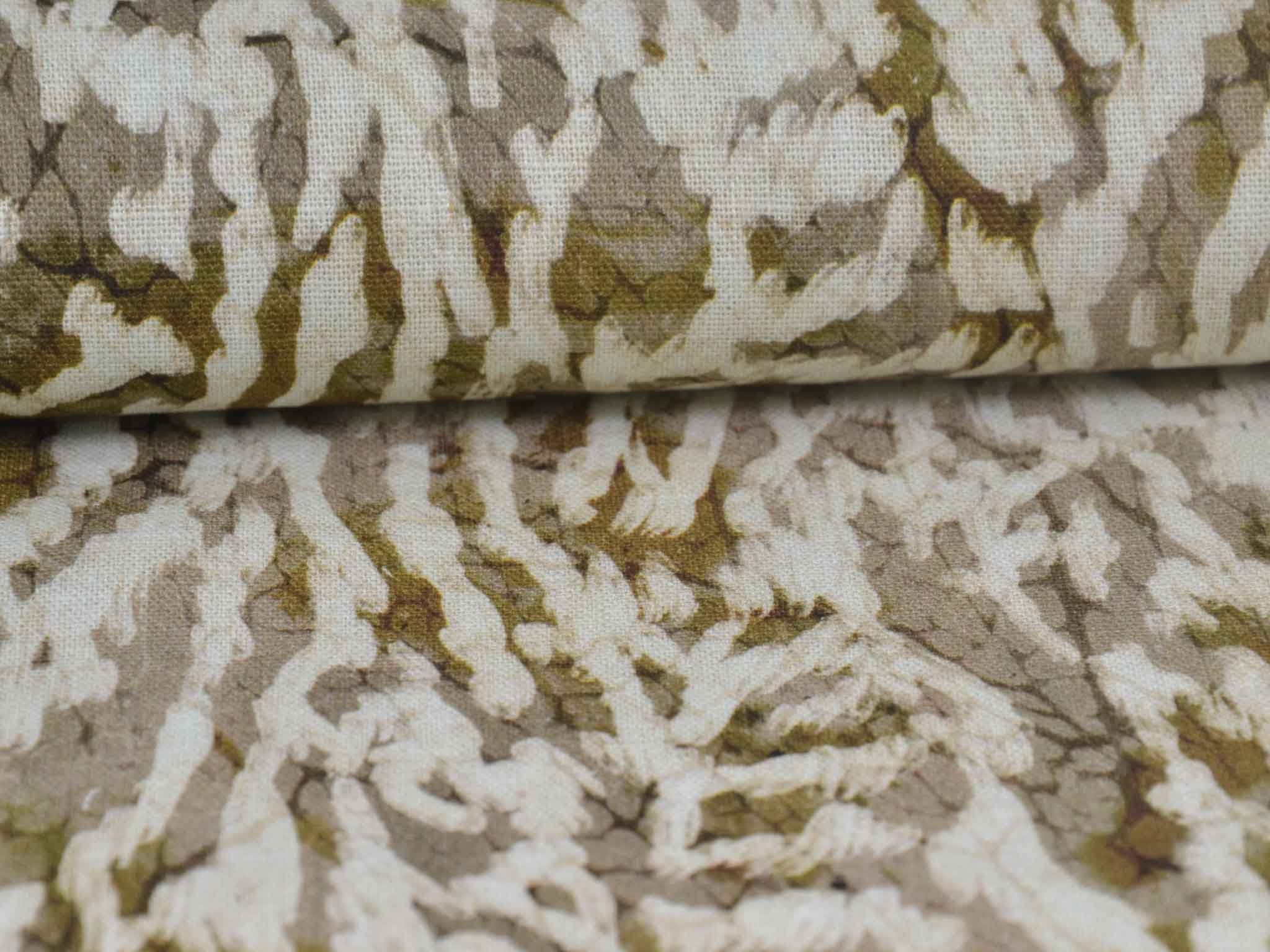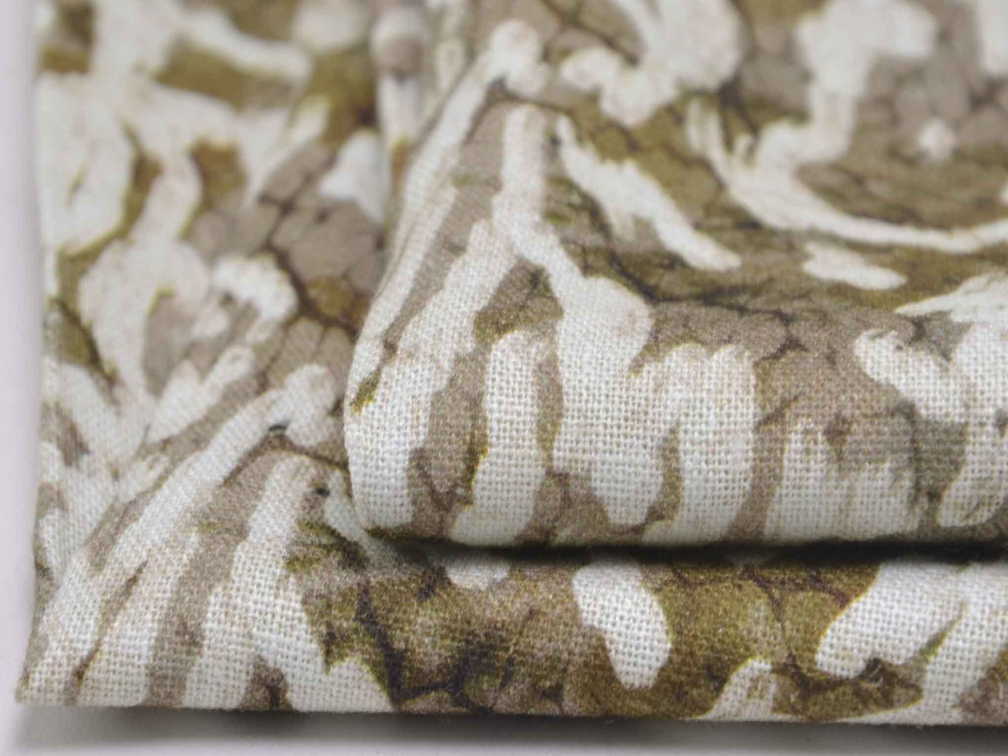 Webware aus Leinen und Viskose in mit Print beige und grün. Der Stoff ist mittelschwer. Nähe dir daraus tolle Sommerkleider, Röcke, Hosen und vieles mehr.