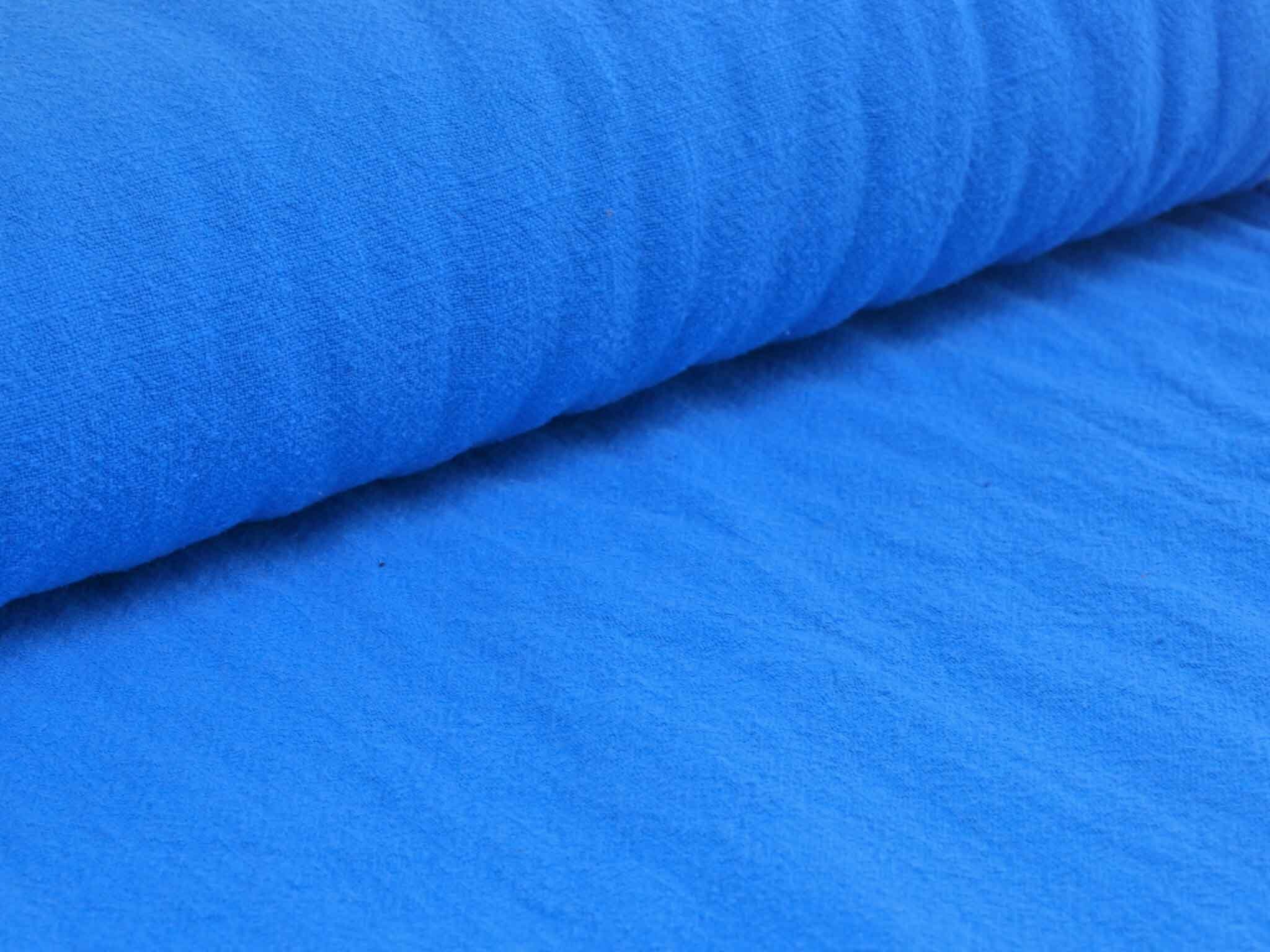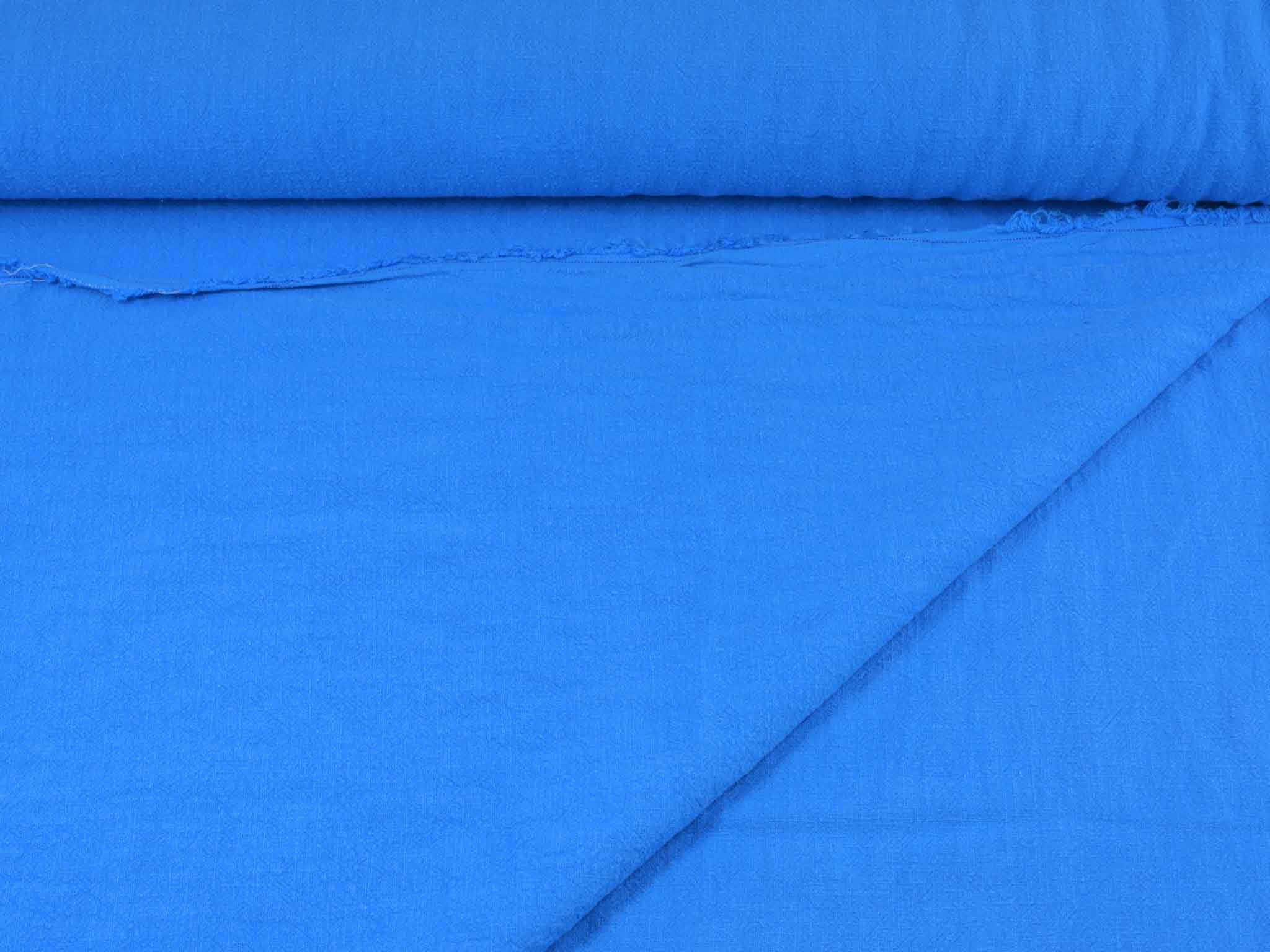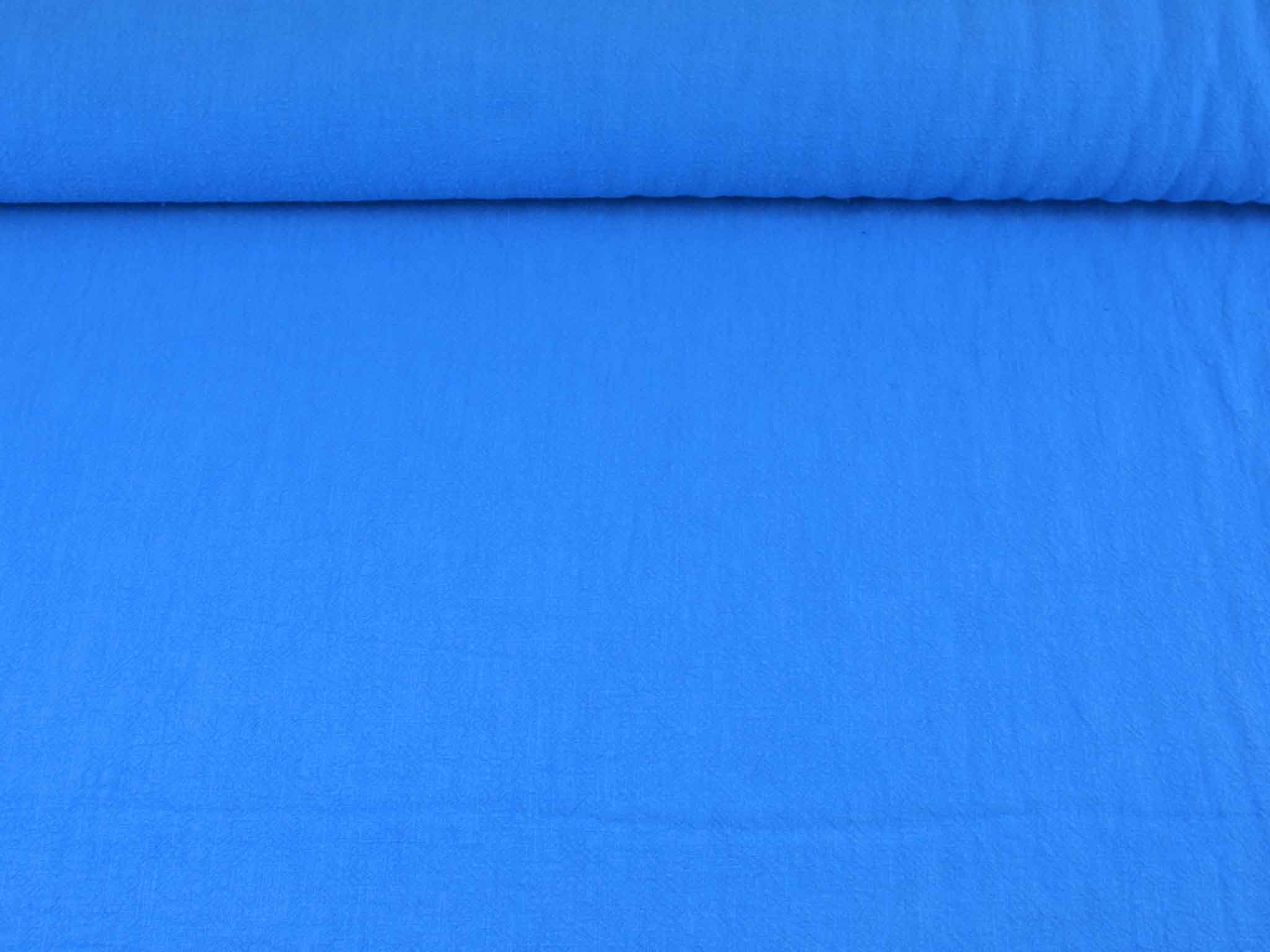 Hochwertiger Webstoff aus reinem Leinen. Der Stoff in einem leuchtendem blau ist stone washed, dies verleiht dem Stoff einen „used look“. Der Stoff ist mittelschwer und fühlt sich angenehm kühl an. Er hat einen eher weichen Fall. Nähe dir daraus Kleider, Röcke, weite Hosen und vieles mehr. Leinen knittert und sollte vor dem Zuschnitt gewaschen werden, da Leinen einläuft.