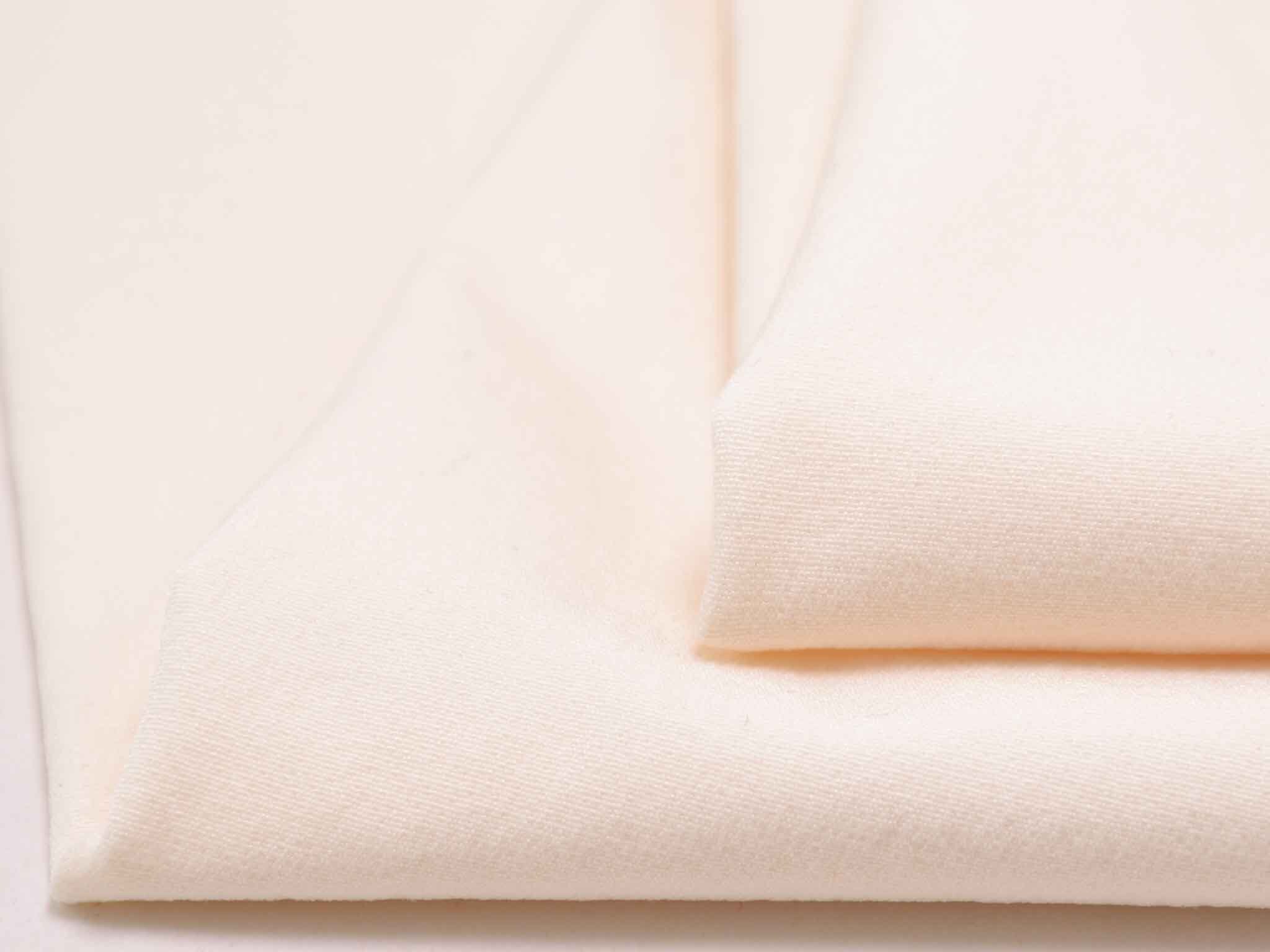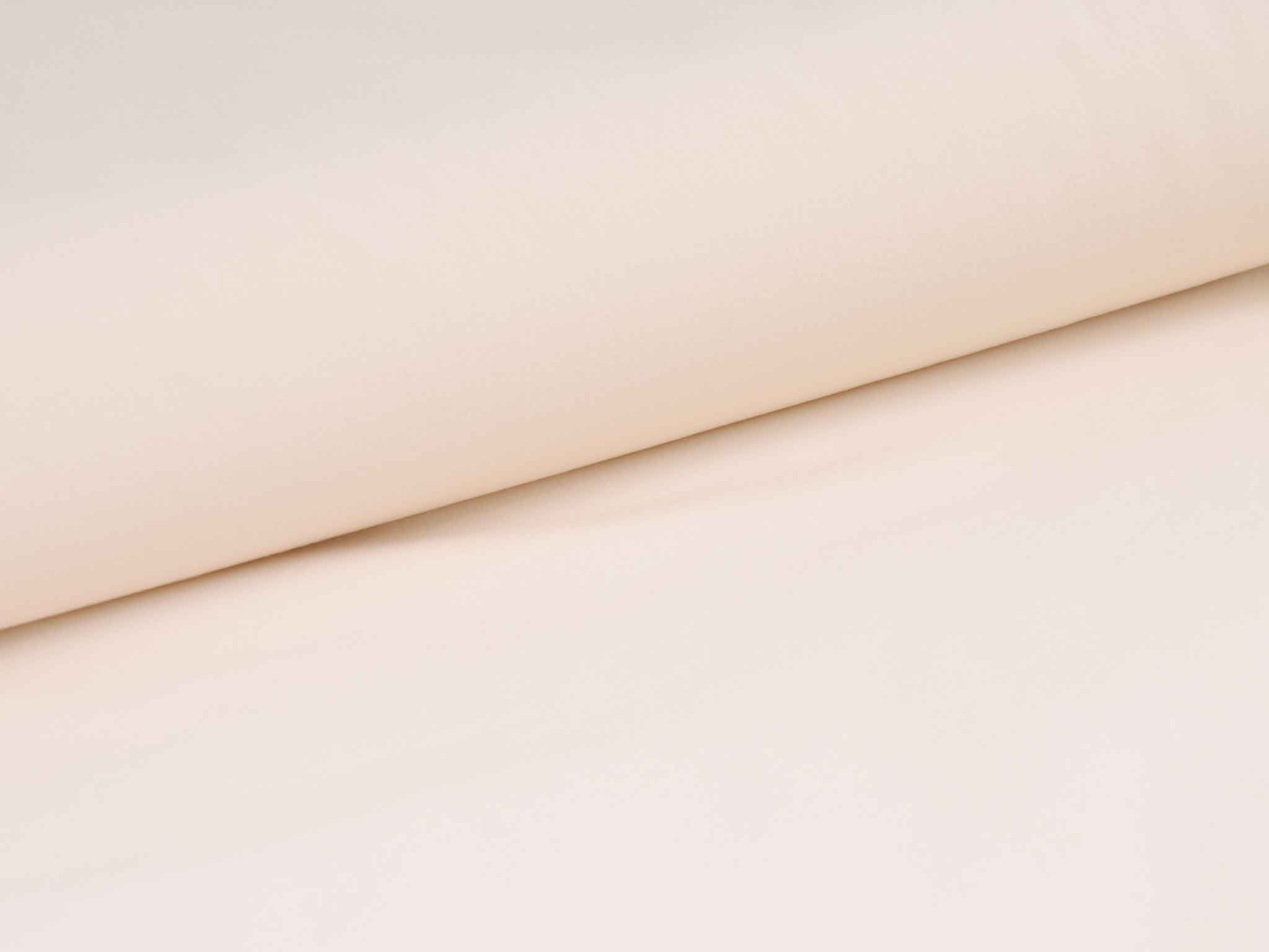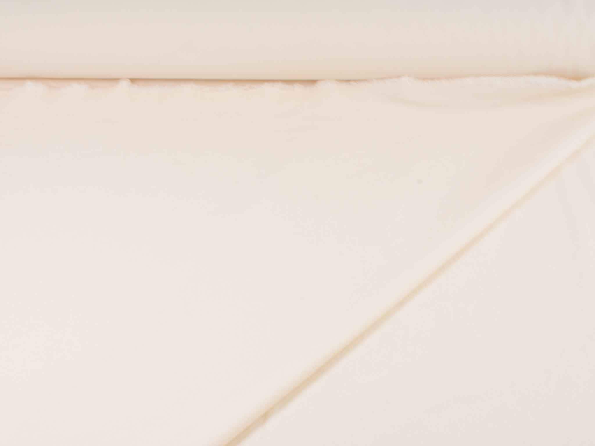 Waterproof woven fabric made of nylon and polyester in cream-white/eggshell. The right side is smooth, while the reverse side is soft with small loops, like French terry. The fabric is perfect for sports and outdoor clothing, such as jackets, cycling shorts, and coats, as it is medium-weight and waterproof.