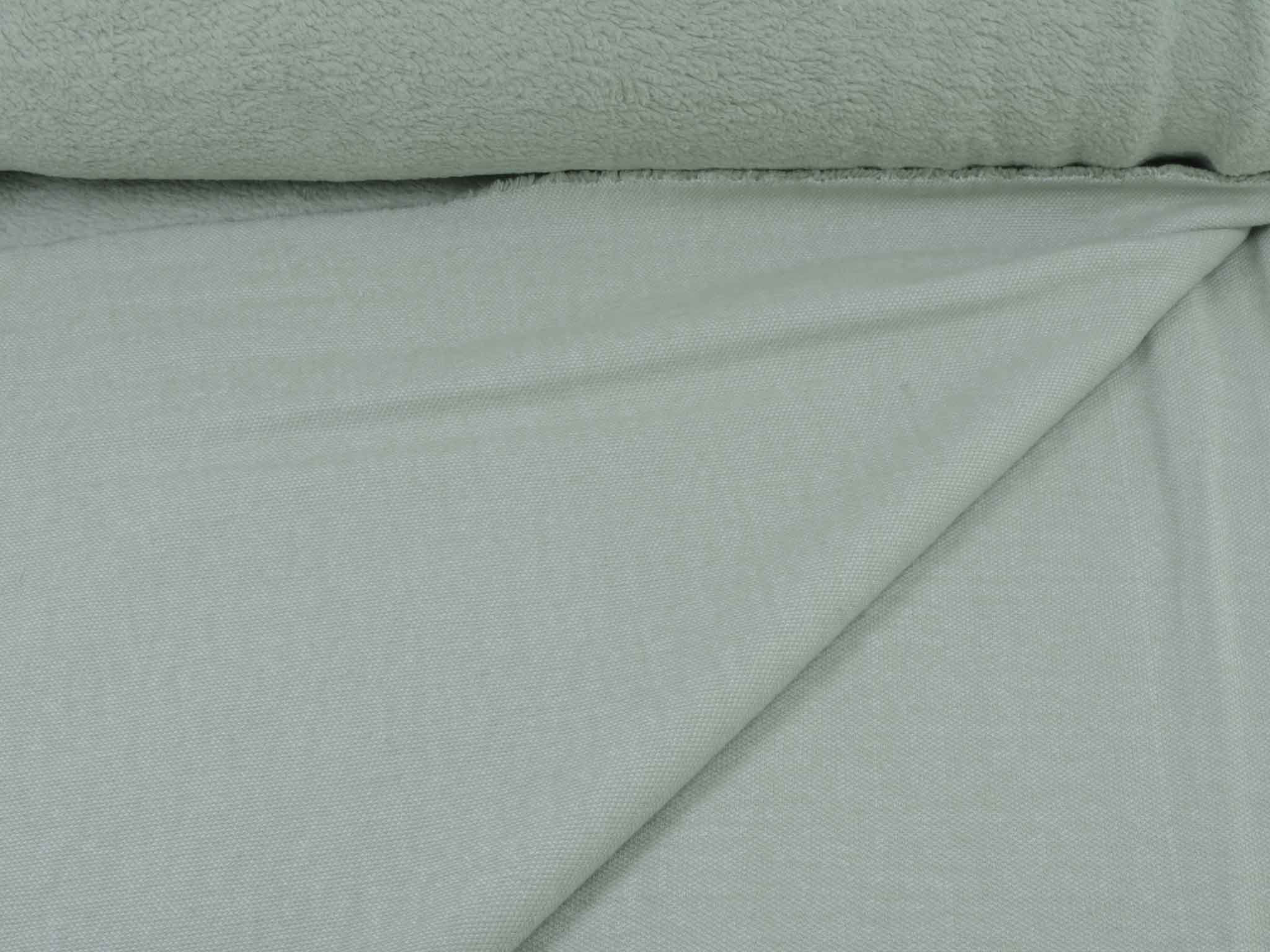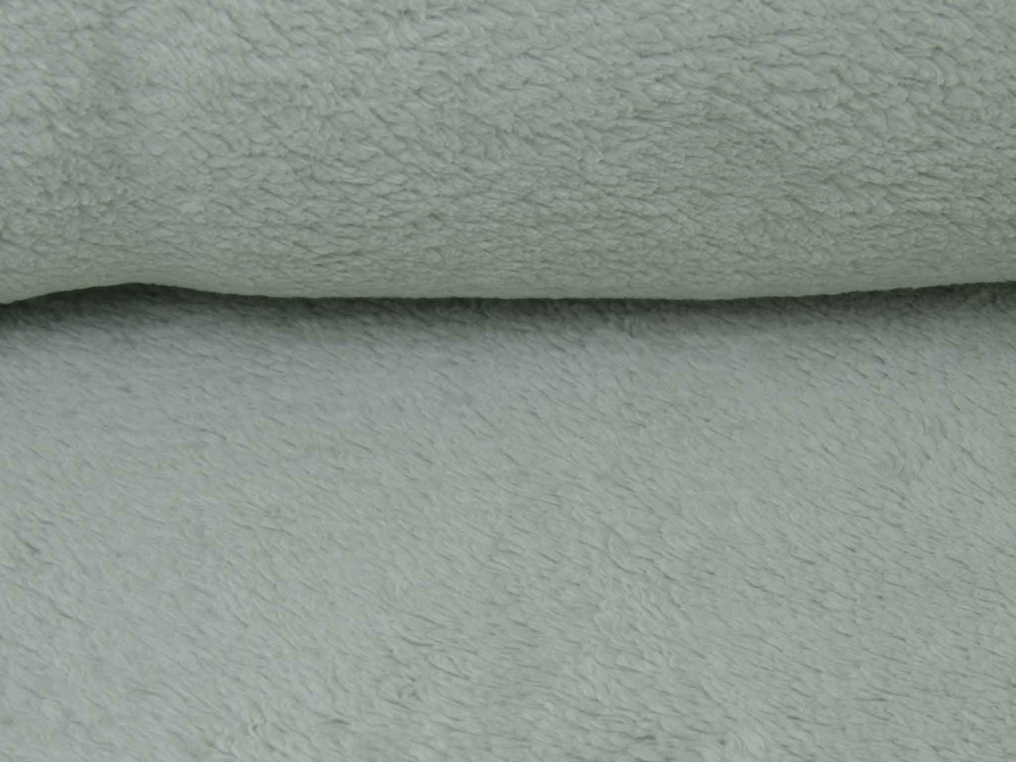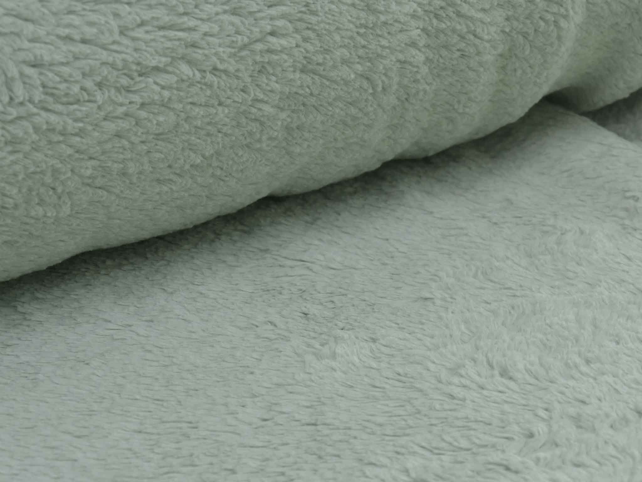 Fleece-Stoff aus Baumwolle in grün. Der Stoff fühlt sich auf der einen Seite weich und flauschig an, auf der anderen Seite ist er gestrickt. Er eignet sich super für Babyzubehör, wie zum Beispiel Krabbeldecken, Schlafsäcke oder Kuscheltiere. Auch als Innenfutter für Jacken (ob groß oder klein) ist er optimal.