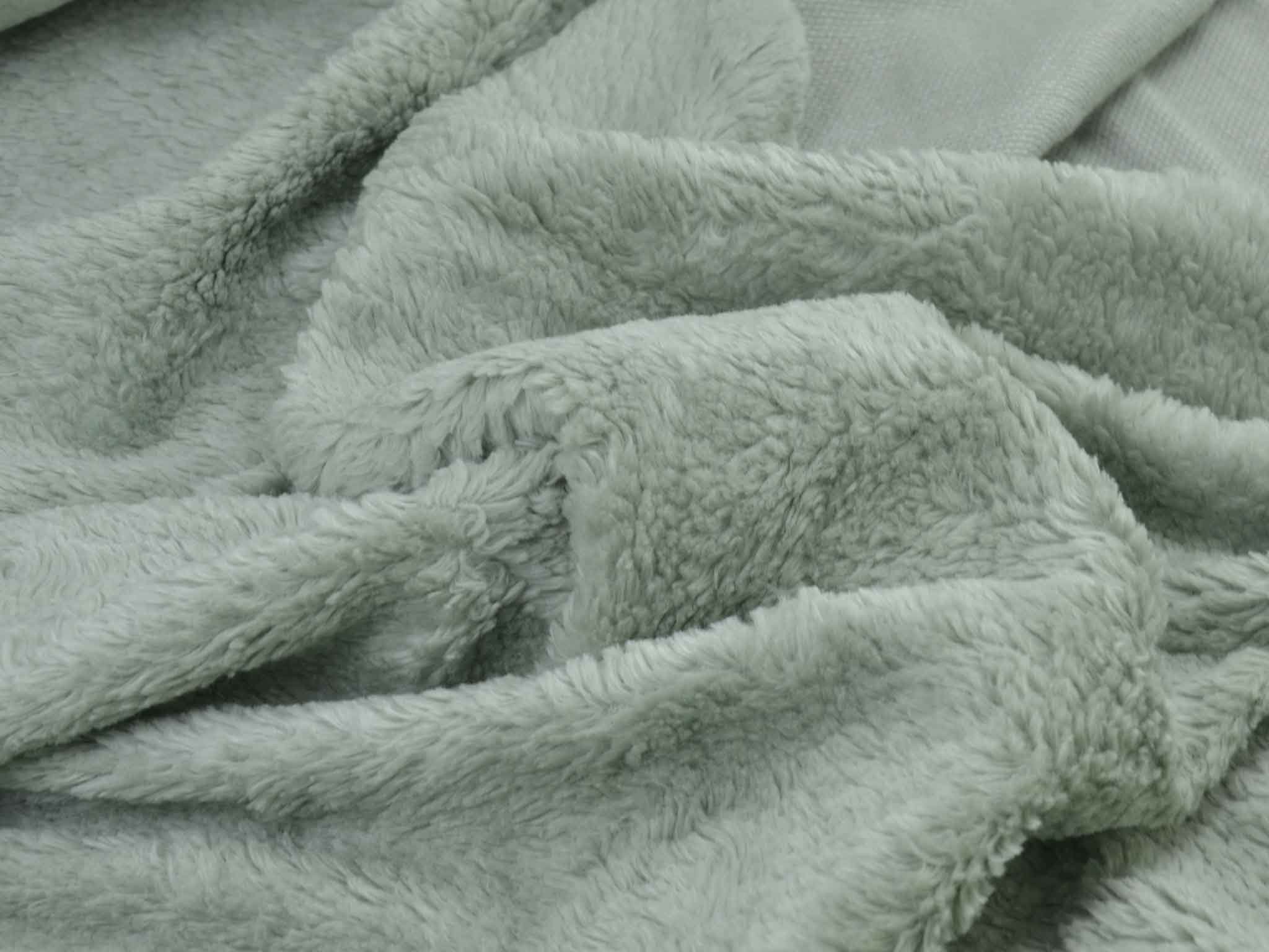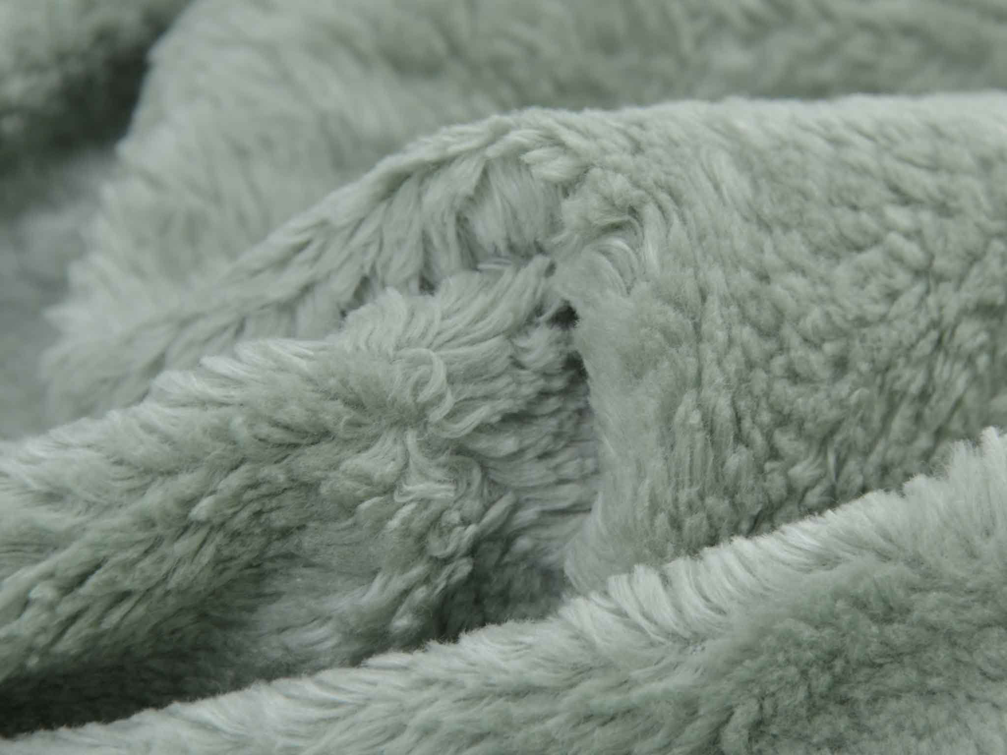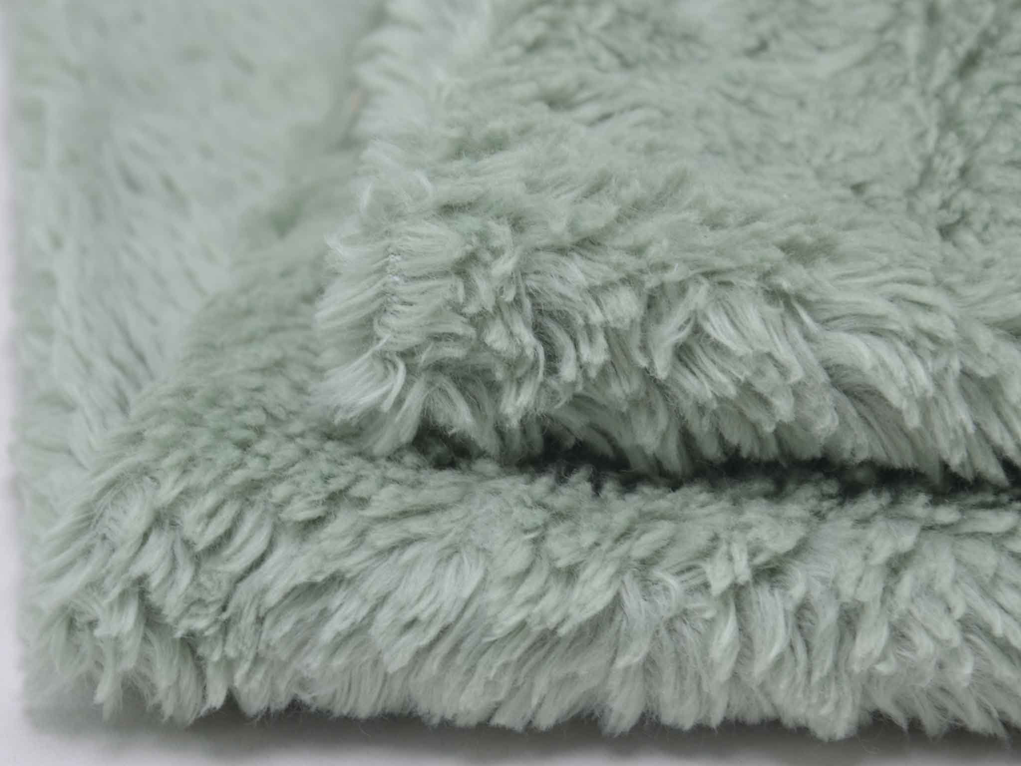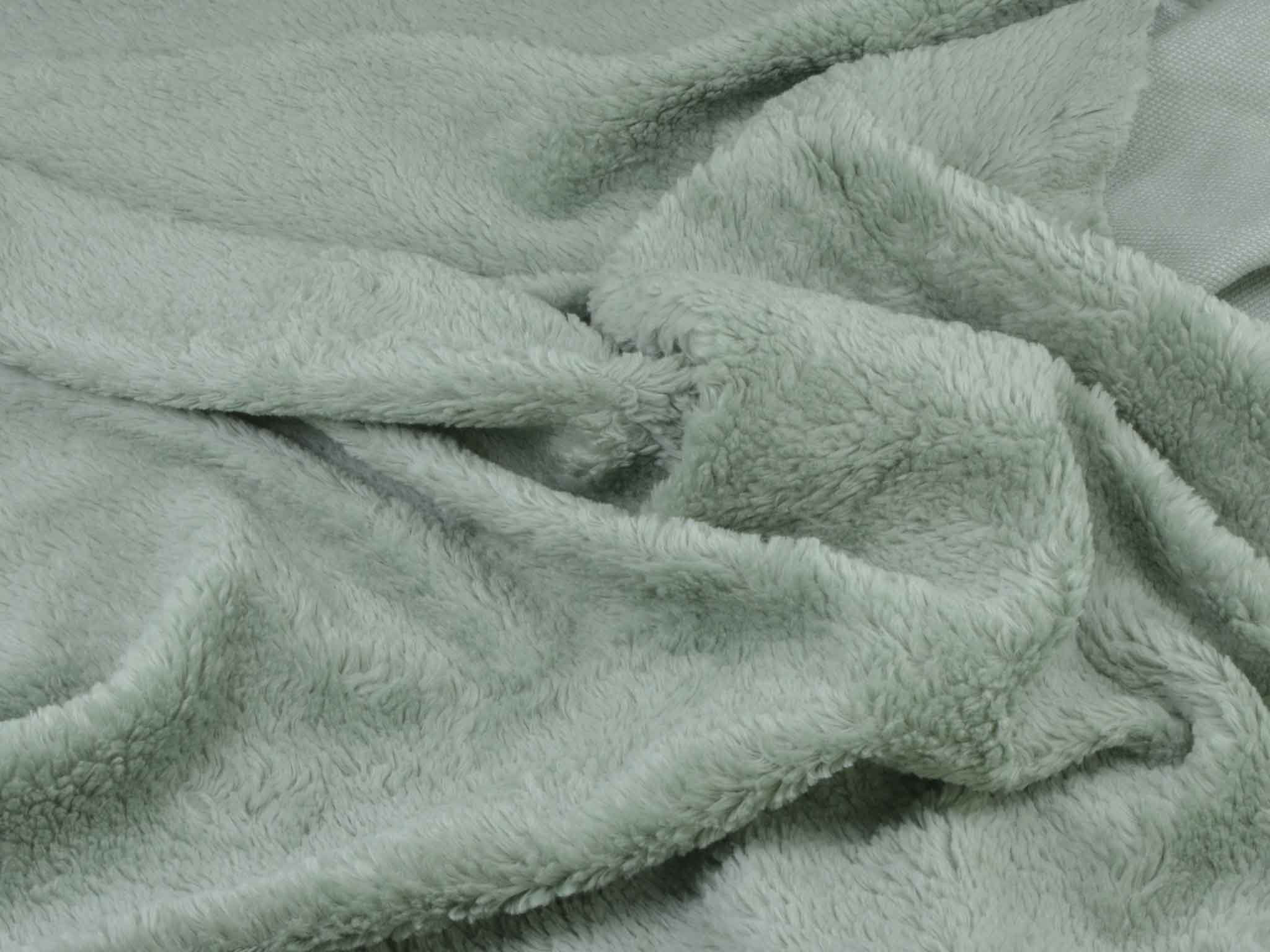 Fleece-Stoff aus Baumwolle in grün. Der Stoff fühlt sich auf der einen Seite weich und flauschig an, auf der anderen Seite ist er gestrickt. Er eignet sich super für Babyzubehör, wie zum Beispiel Krabbeldecken, Schlafsäcke oder Kuscheltiere. Auch als Innenfutter für Jacken (ob groß oder klein) ist er optimal.