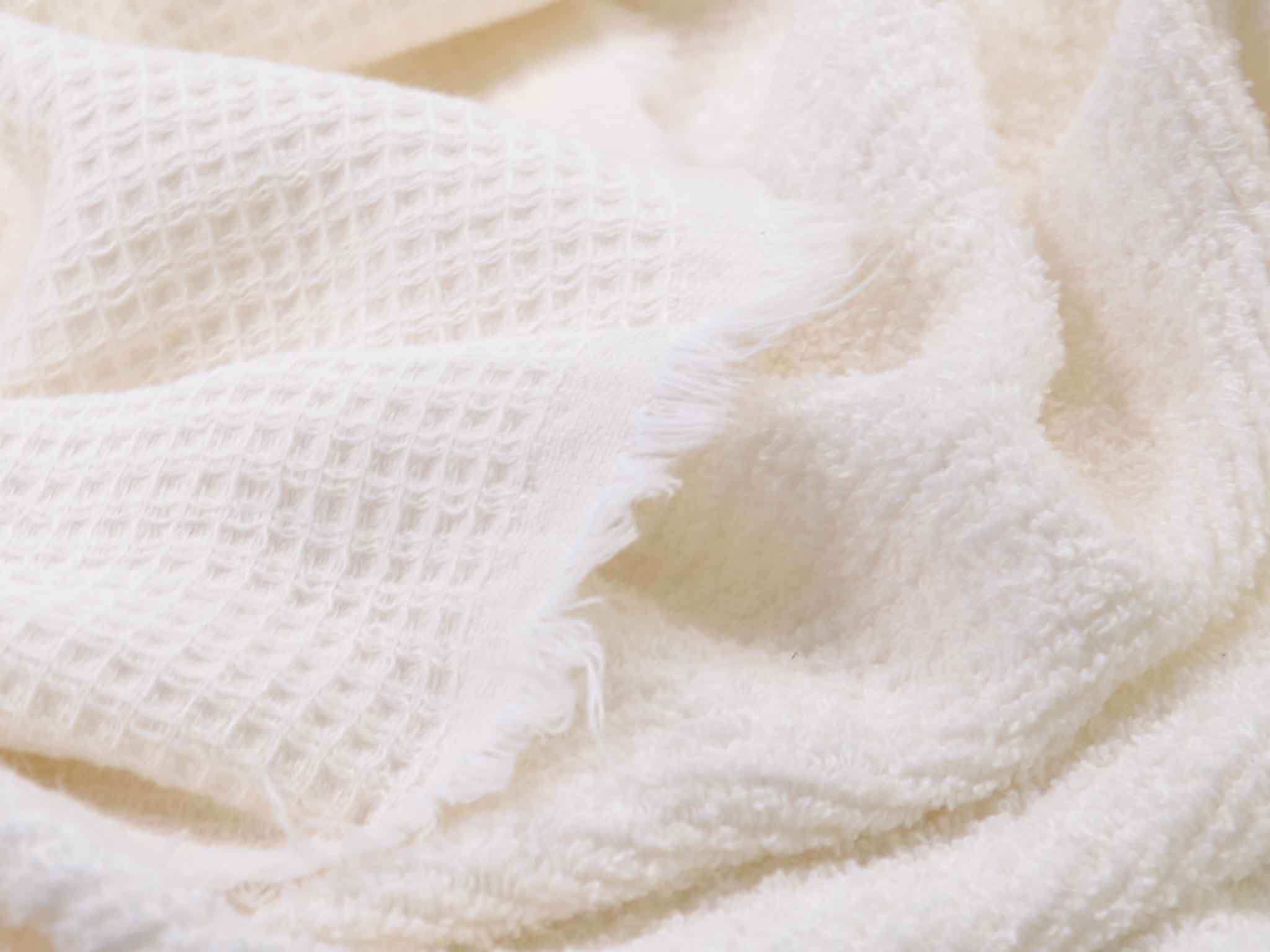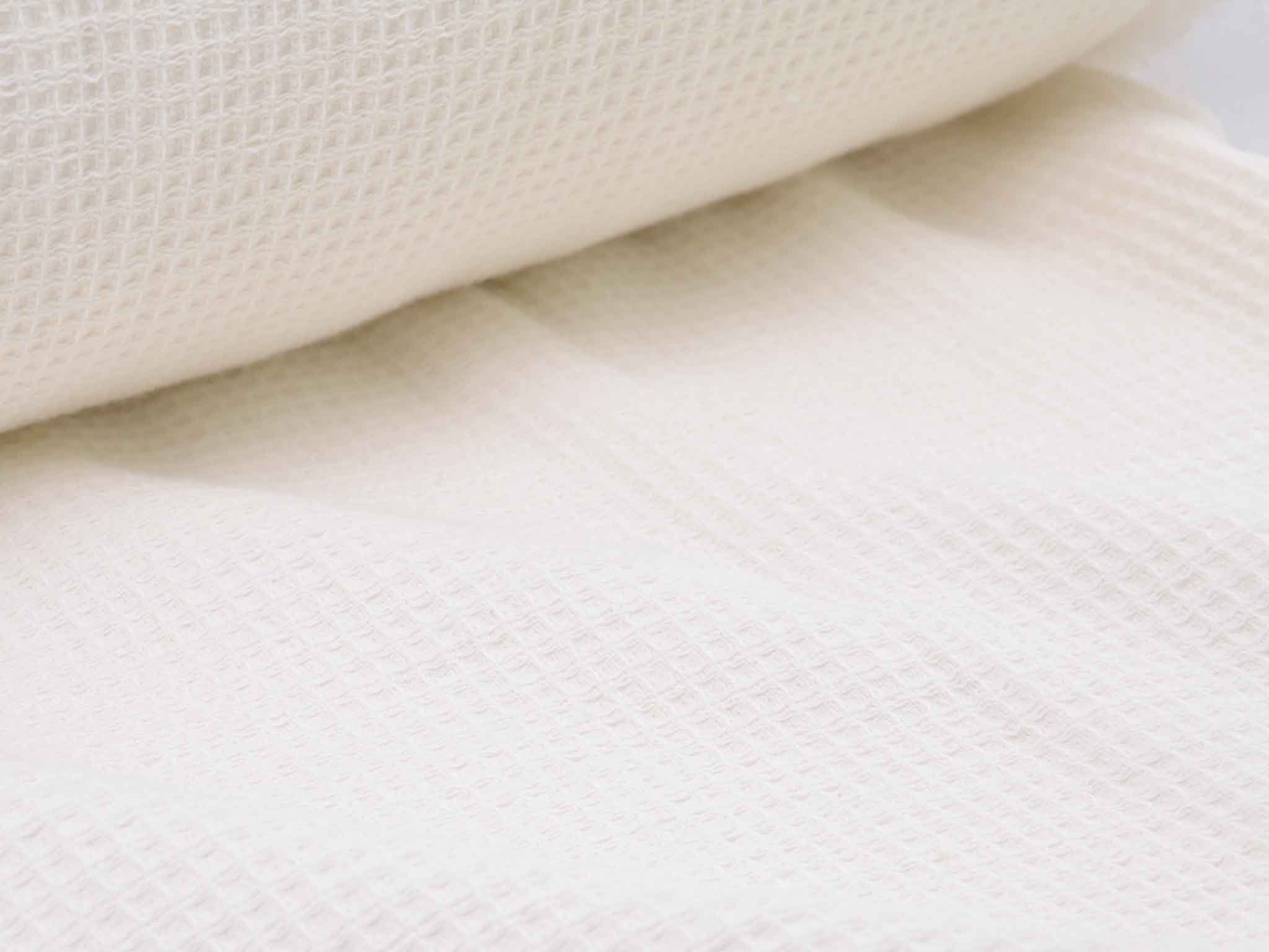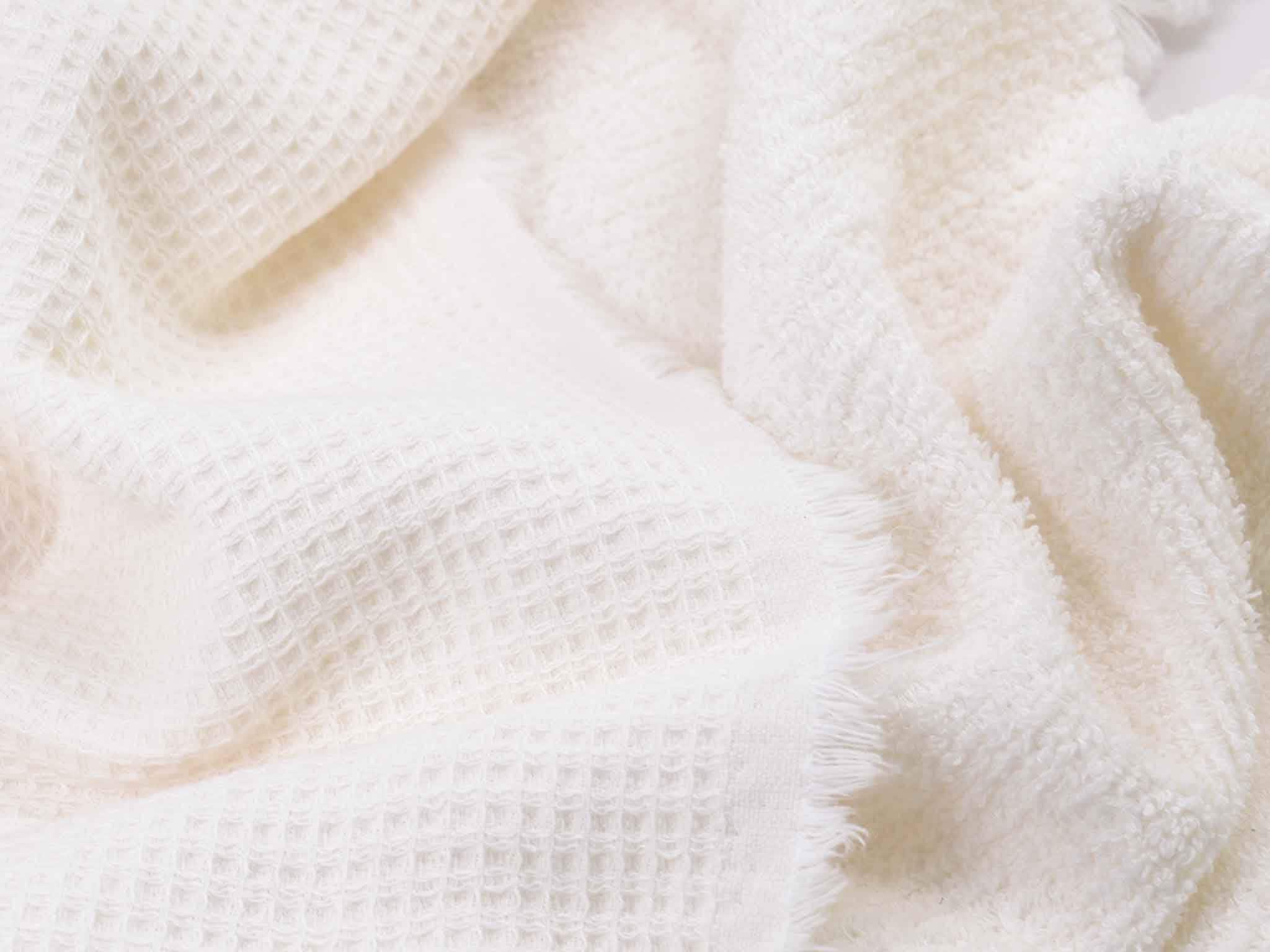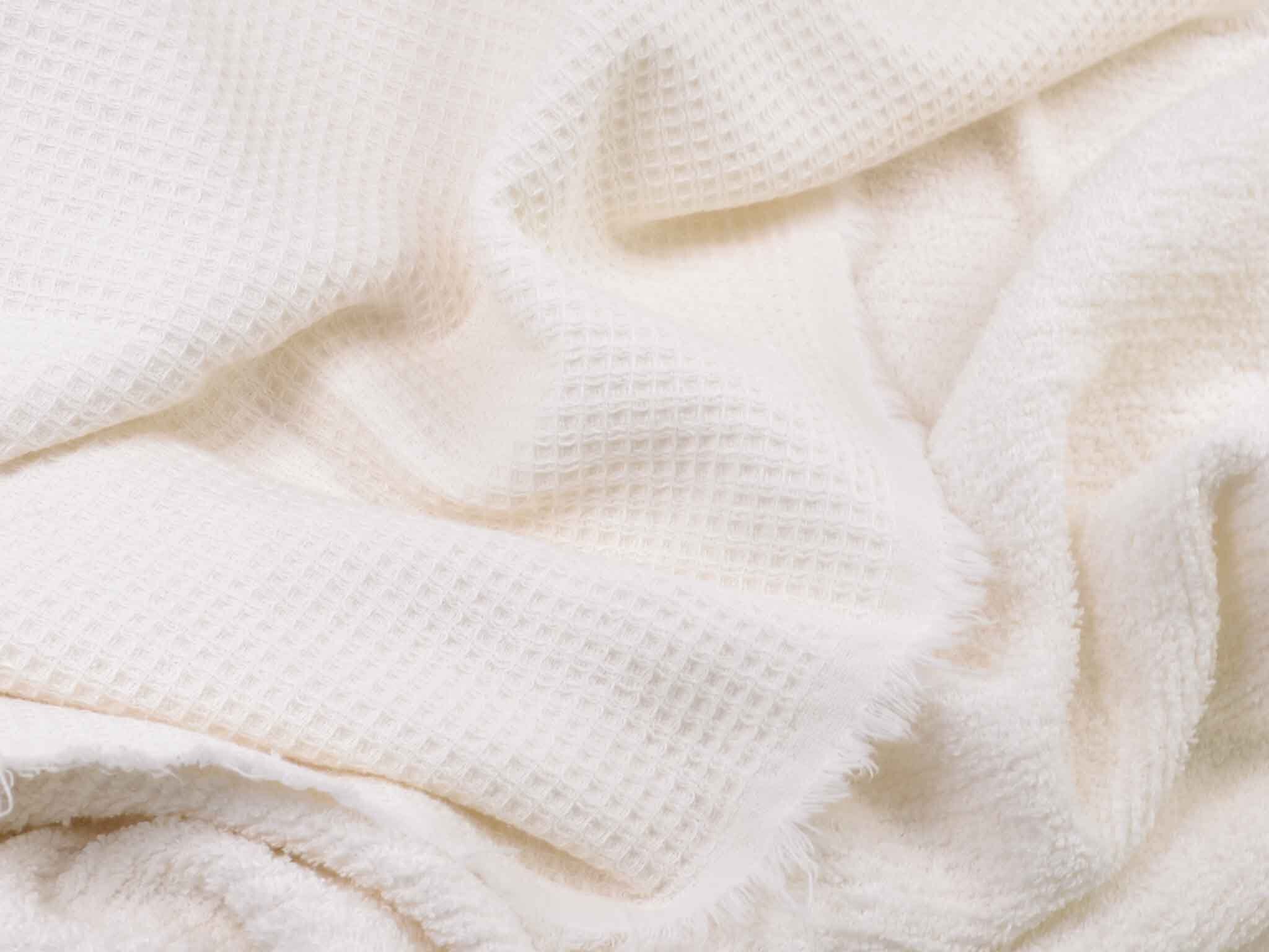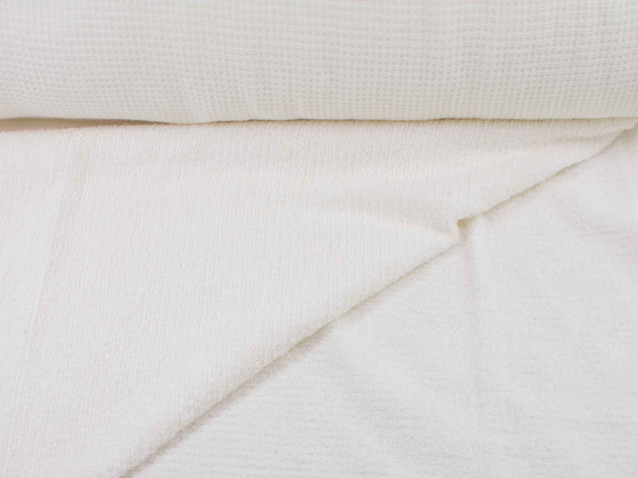 Frottestoff aus 100% Baumwolle mit Abseite aus Waffelpiqué. Der beidseitig verwendbare Stoff ist schön weich und eignet sich wunderbar für Bademäntel, Handtücher, Wickelunterlagen und vieles mehr.