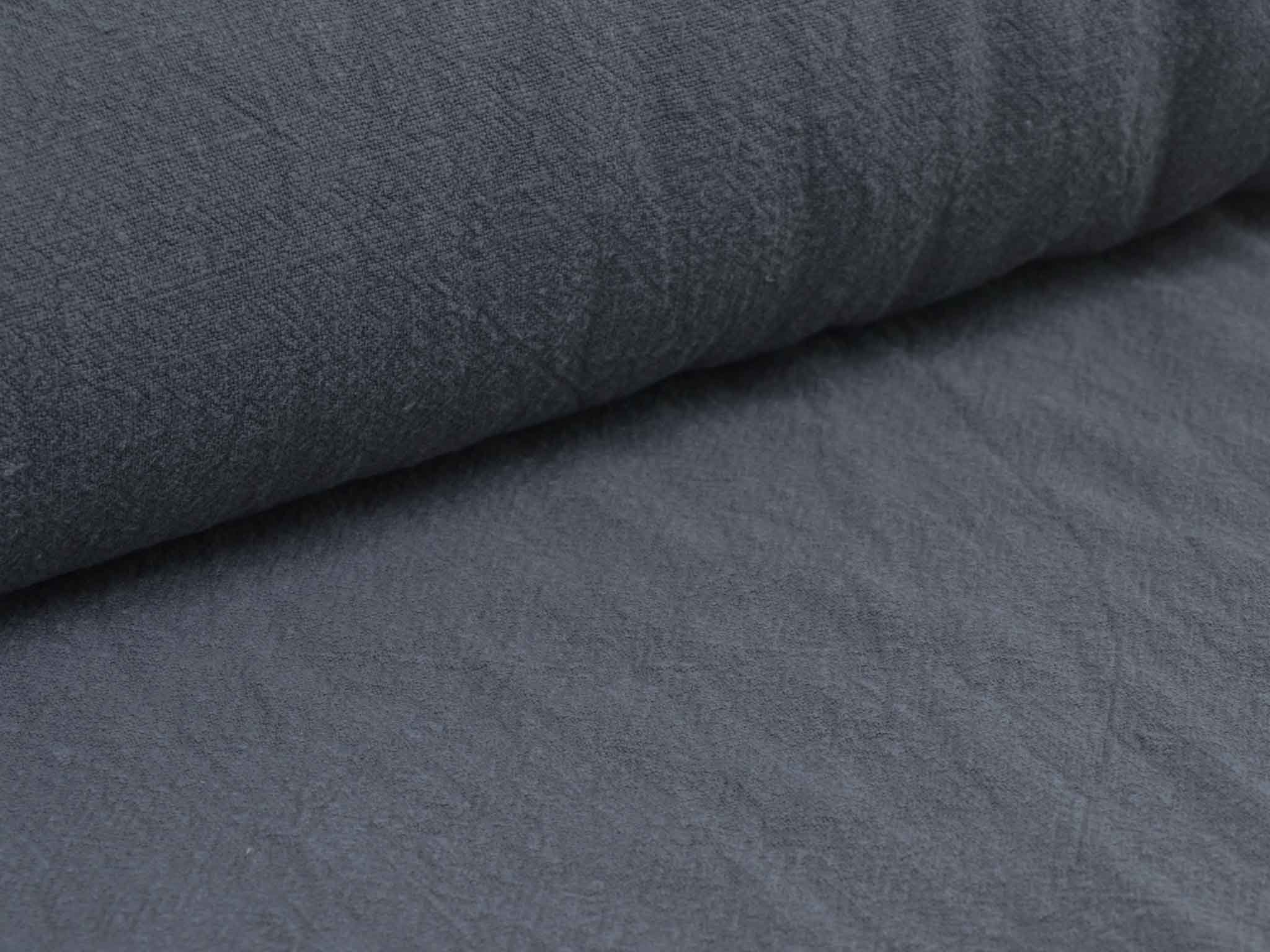 Hochwertiger Webstoff aus reinem Leinen. Der Stoff in grau ist stone washed, dies verleiht dem Stoff einen „used look“. Der Stoff ist mittelschwer und fühlt sich angenehm kühl an. Er hat einen eher weichen Fall. Nähe dir daraus Kleider, Röcke, weite Hosen und vieles mehr. Leinen knittert und sollte vor dem Zuschnitt gewaschen werden, da Leinen einläuft.