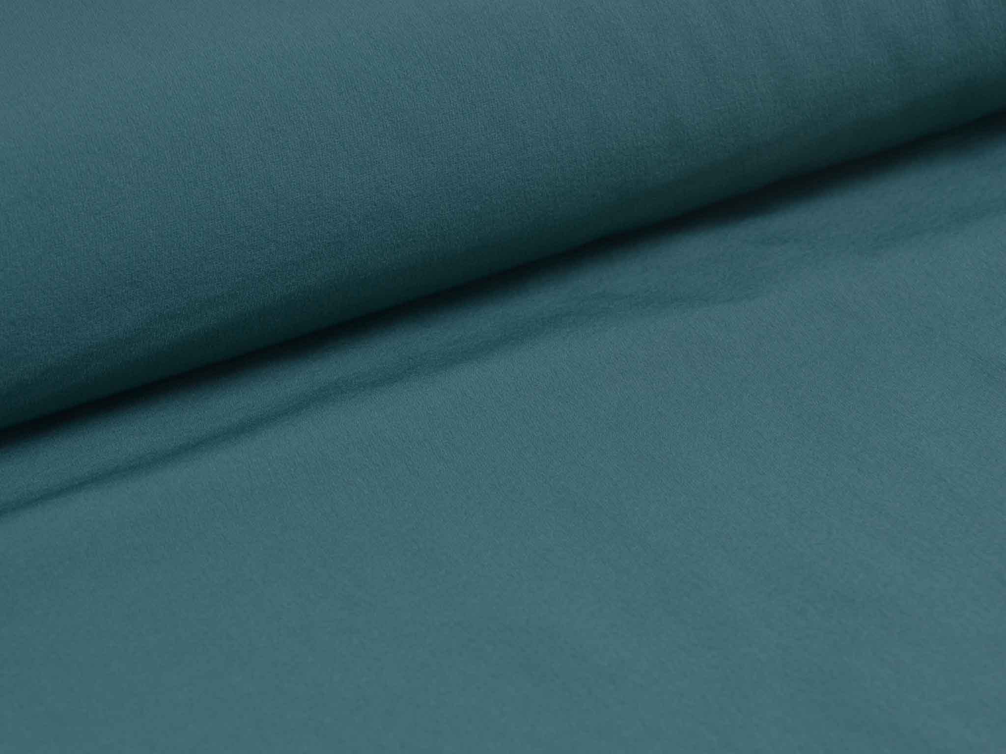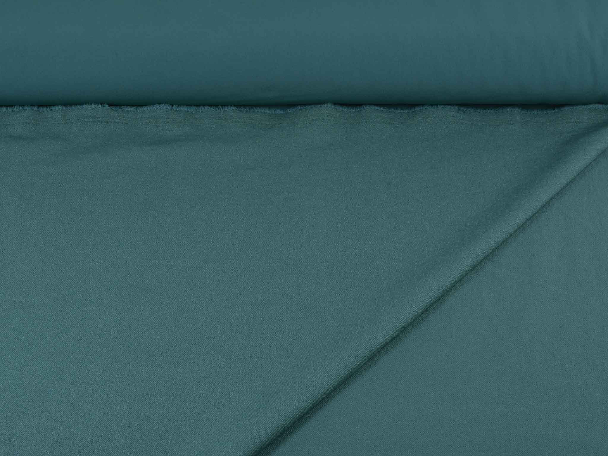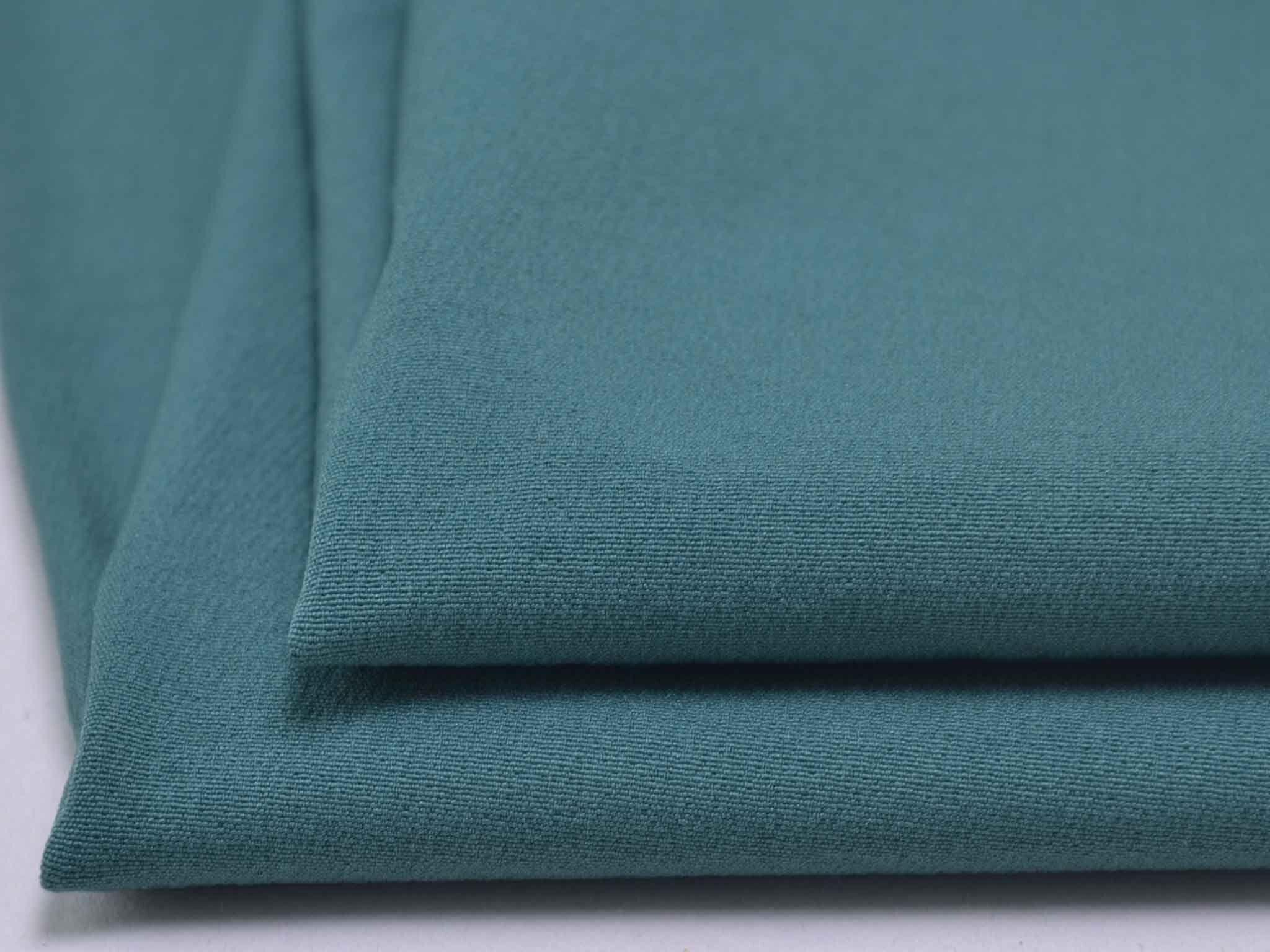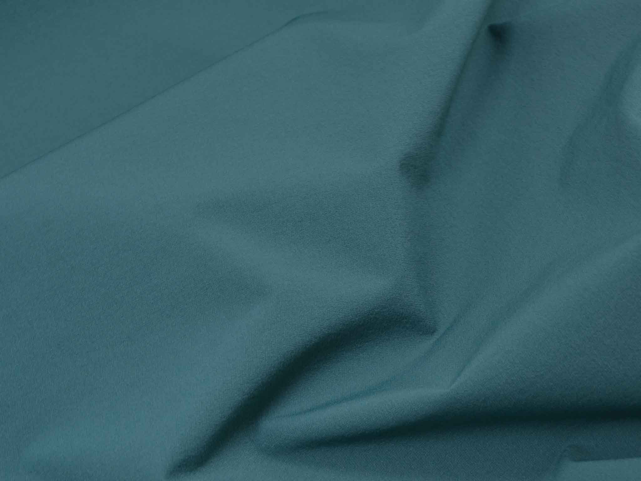A waterproof woven fabric made of nylon and polyester in green. The right side is smooth, while the left side is soft with small loops, like French terry. The fabric is perfect for sports and outdoor clothing, such as jackets, cycling shorts, and coats, as it is medium-weight and waterproof.