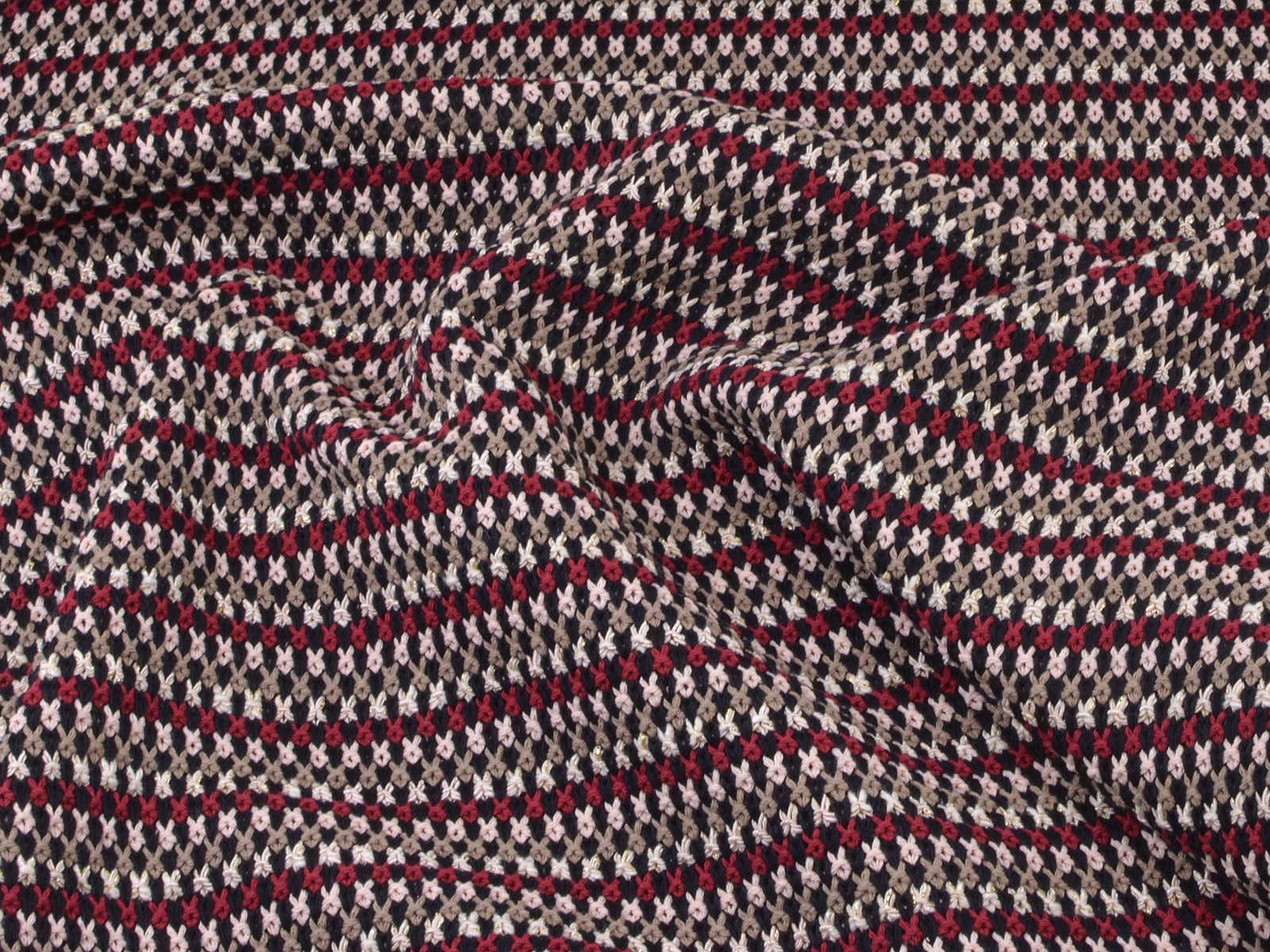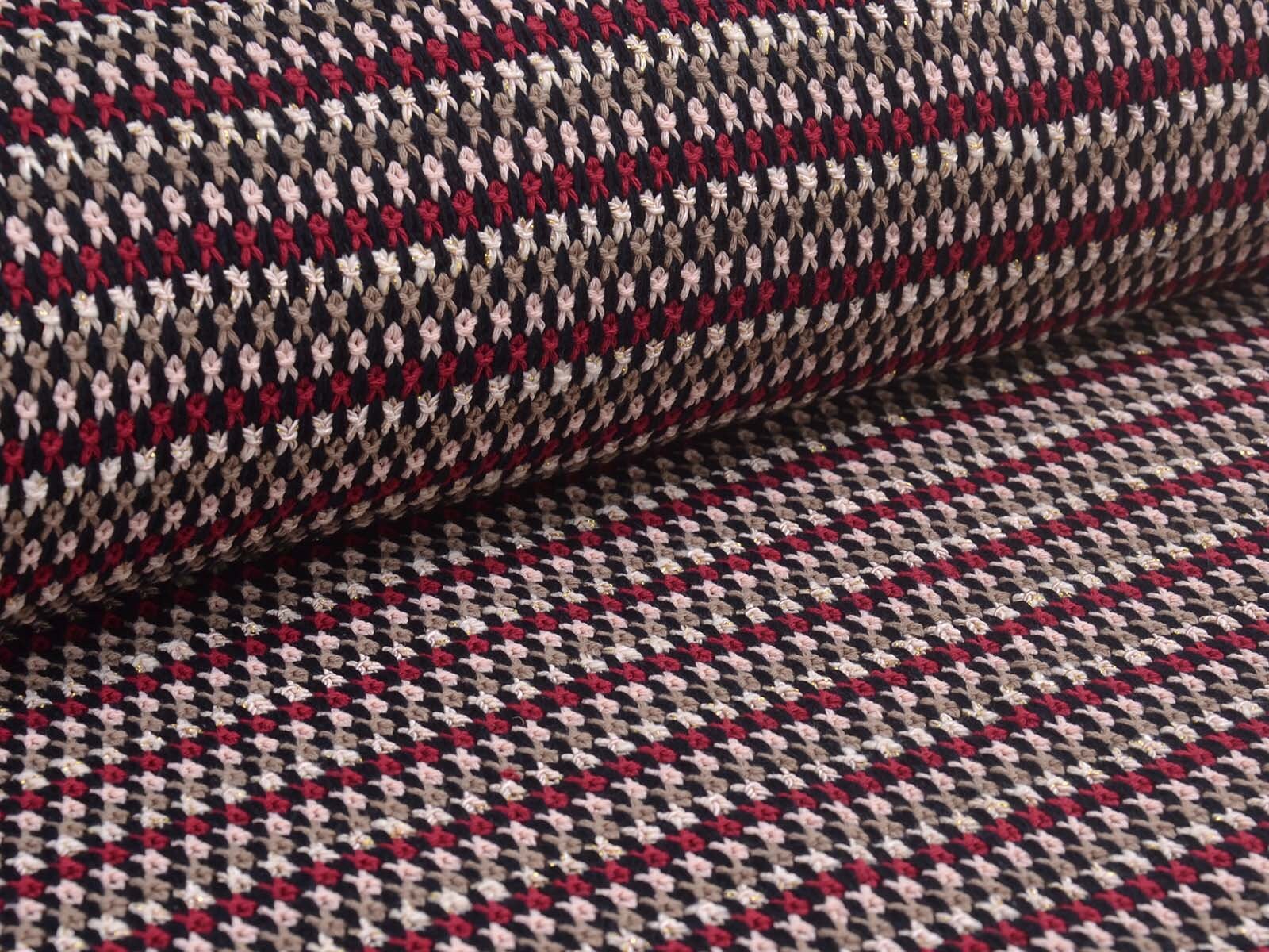 Hochwertiger Strickstoff aus Baumwolle und Viskose made in Italy. Der Stoff ist grob gestrickt, quergestreift, fühlt sich körnig an und funkelt leicht. Der Strick ist etwas schwerer, hat aber trotzdem einen weichen Fall. Er eignet sich wunderbar zum Nähen von Strickjacken, Cardigans, Sommerkleidern und vielem mehr.
