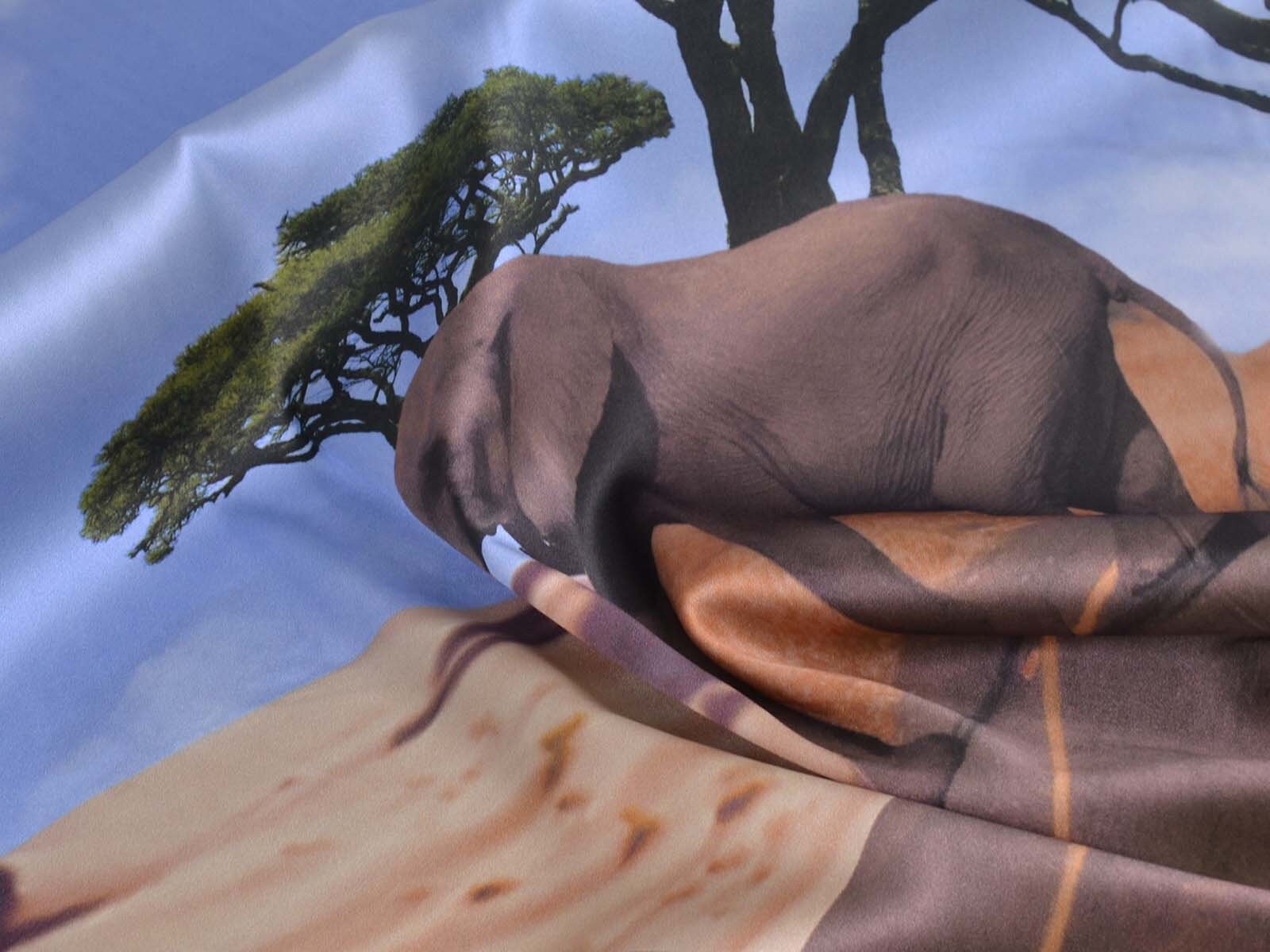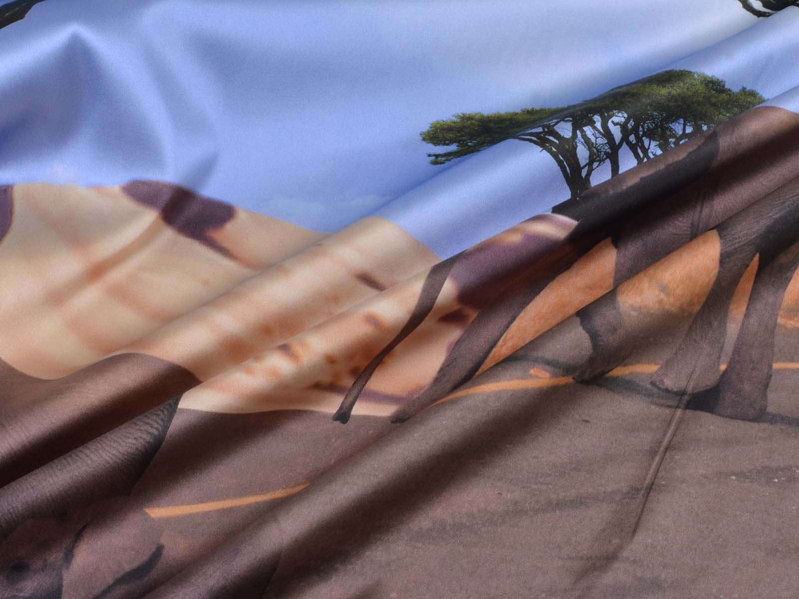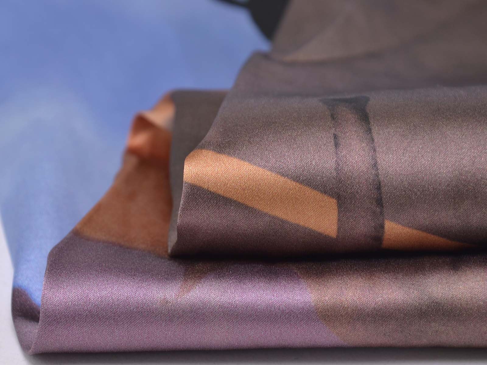 Sehr hochwertige Webware aus Seide mit Stretch. Die Seide ist dünn, glatt, glänzend und hat einen fließenden Fall. Ein Panel ist ca. 105 cm lang. Nähe dir einzigartige Kleider, lange Tops oder Tuniken.