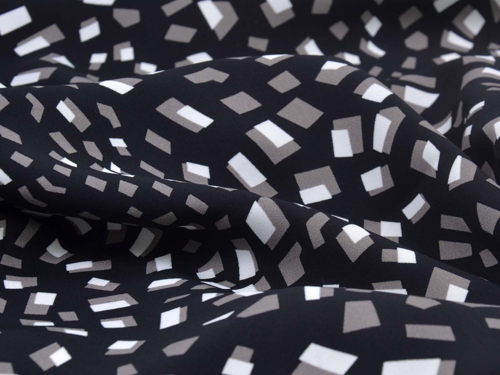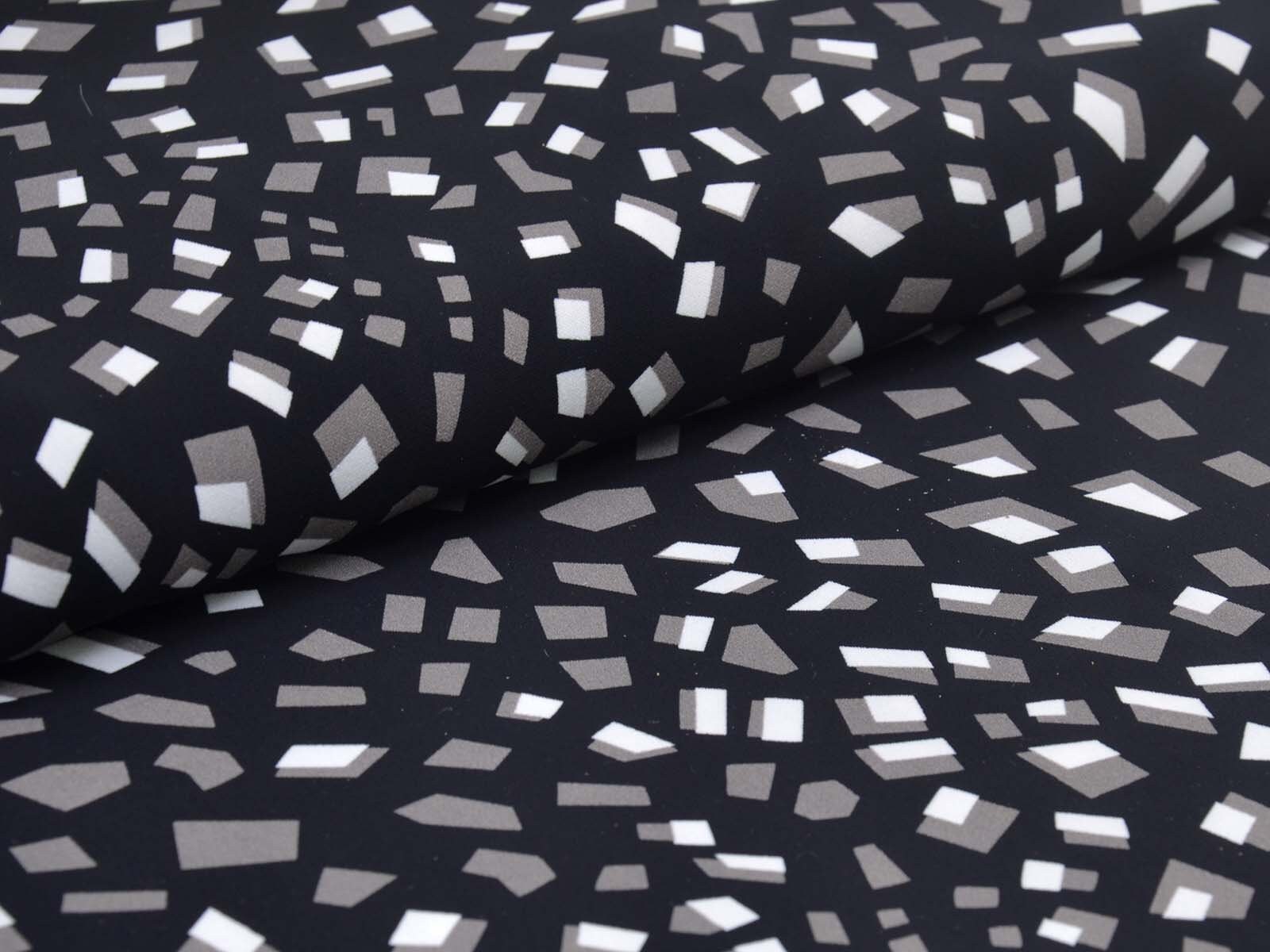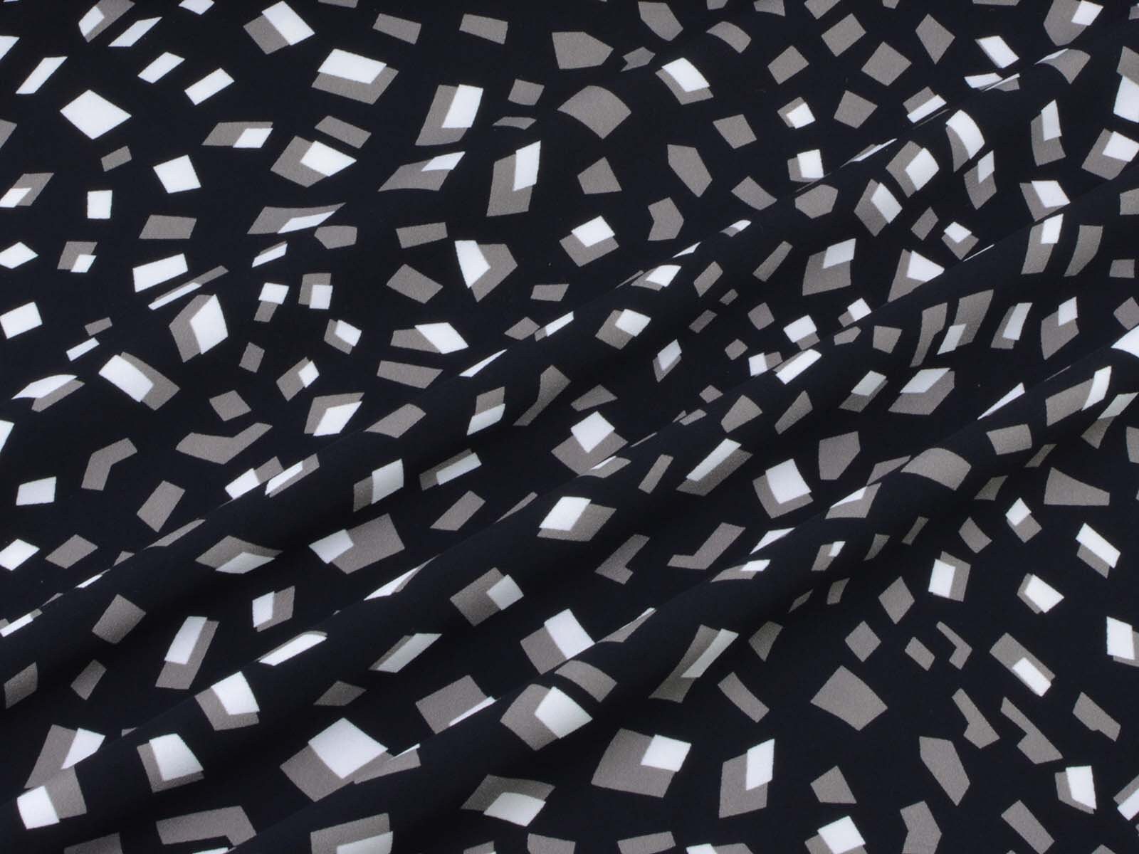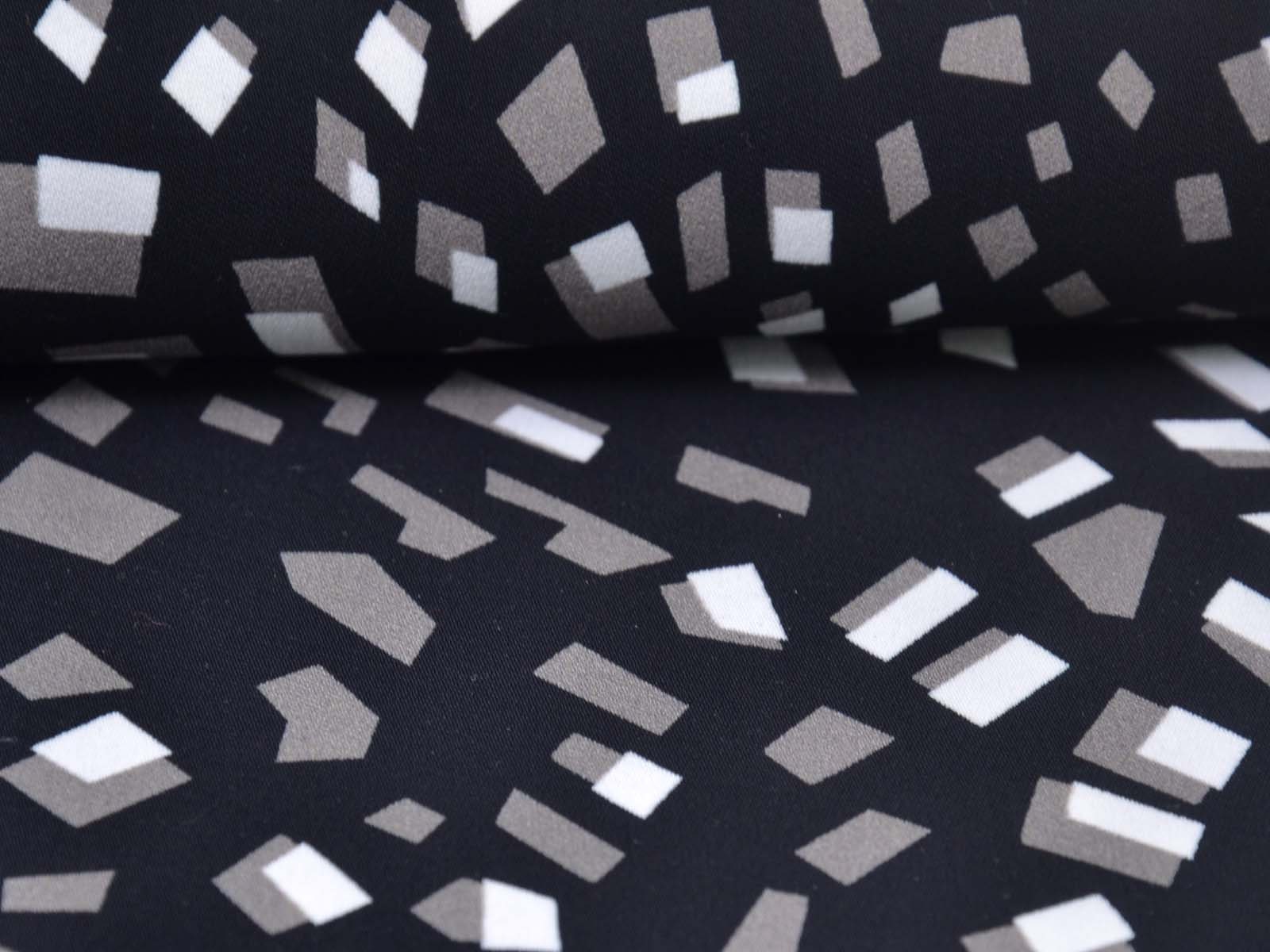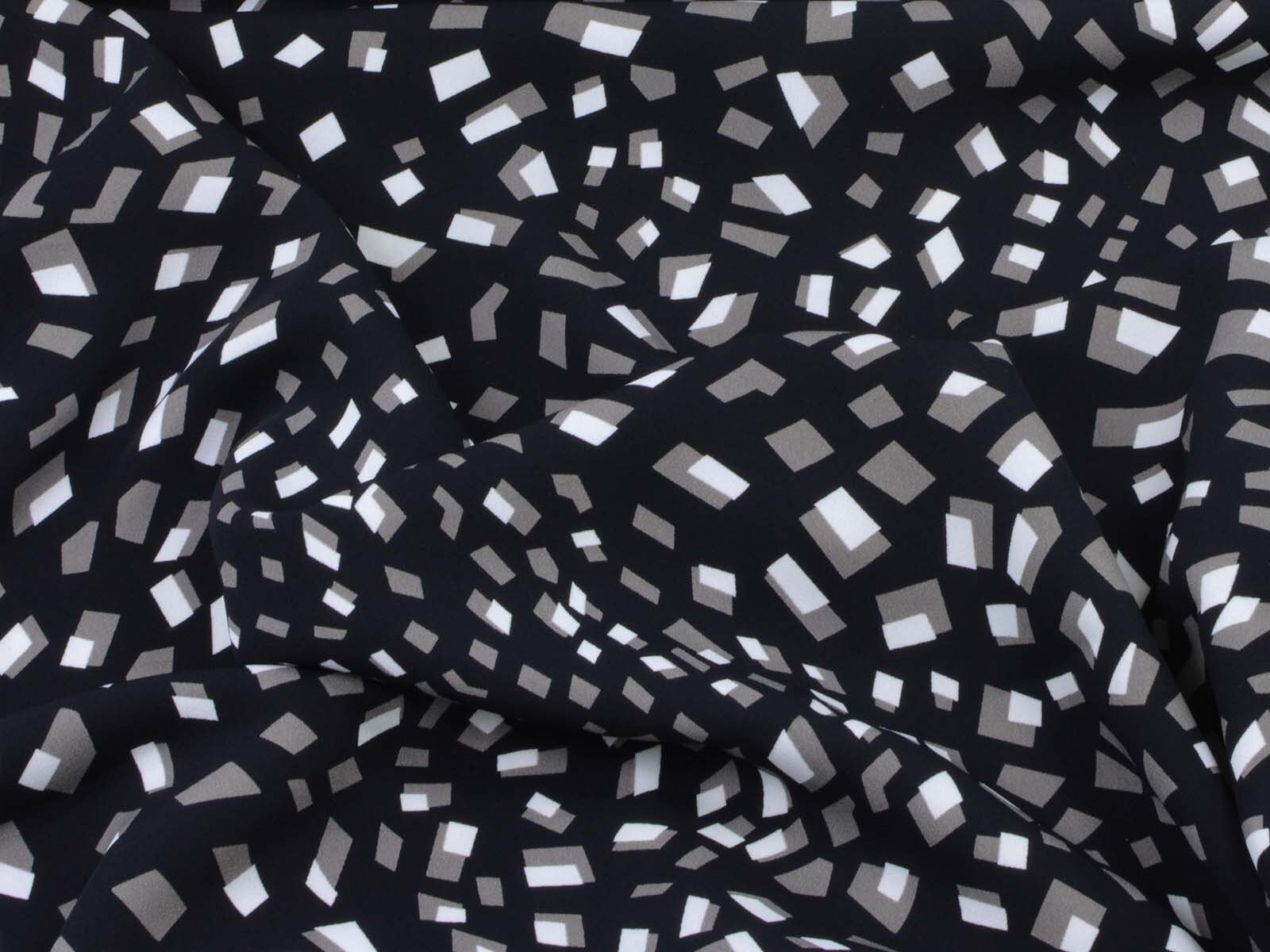 Webware aus Polyester mit Rechtecken in schwarz, beige und weiß. Der Stoff ist dünn, aber schwerer und hat einen fließenden Fall. Nähe dir daraus Blusen, Kleider, Röcke, Sommerhosen und vieles mehr.