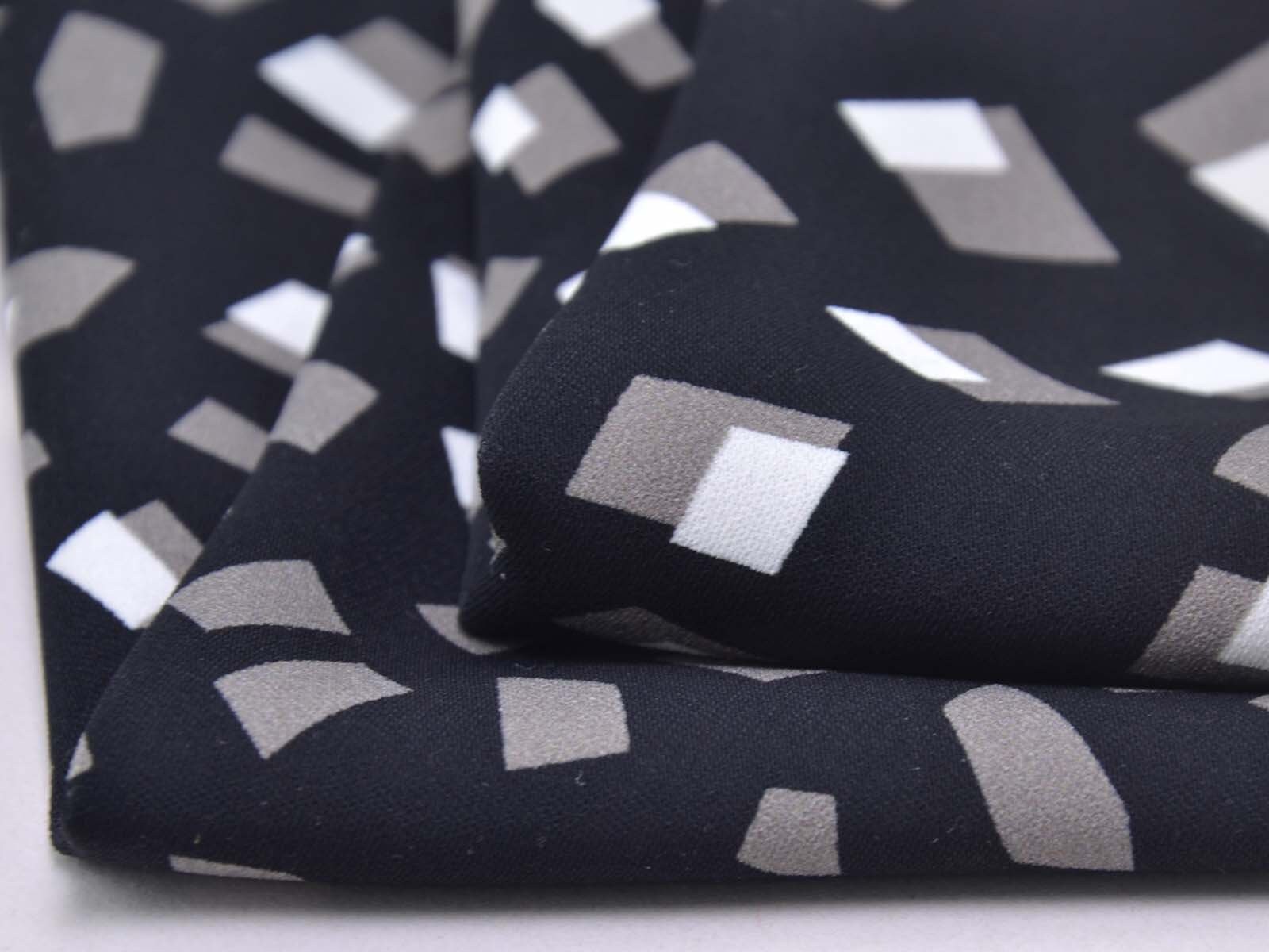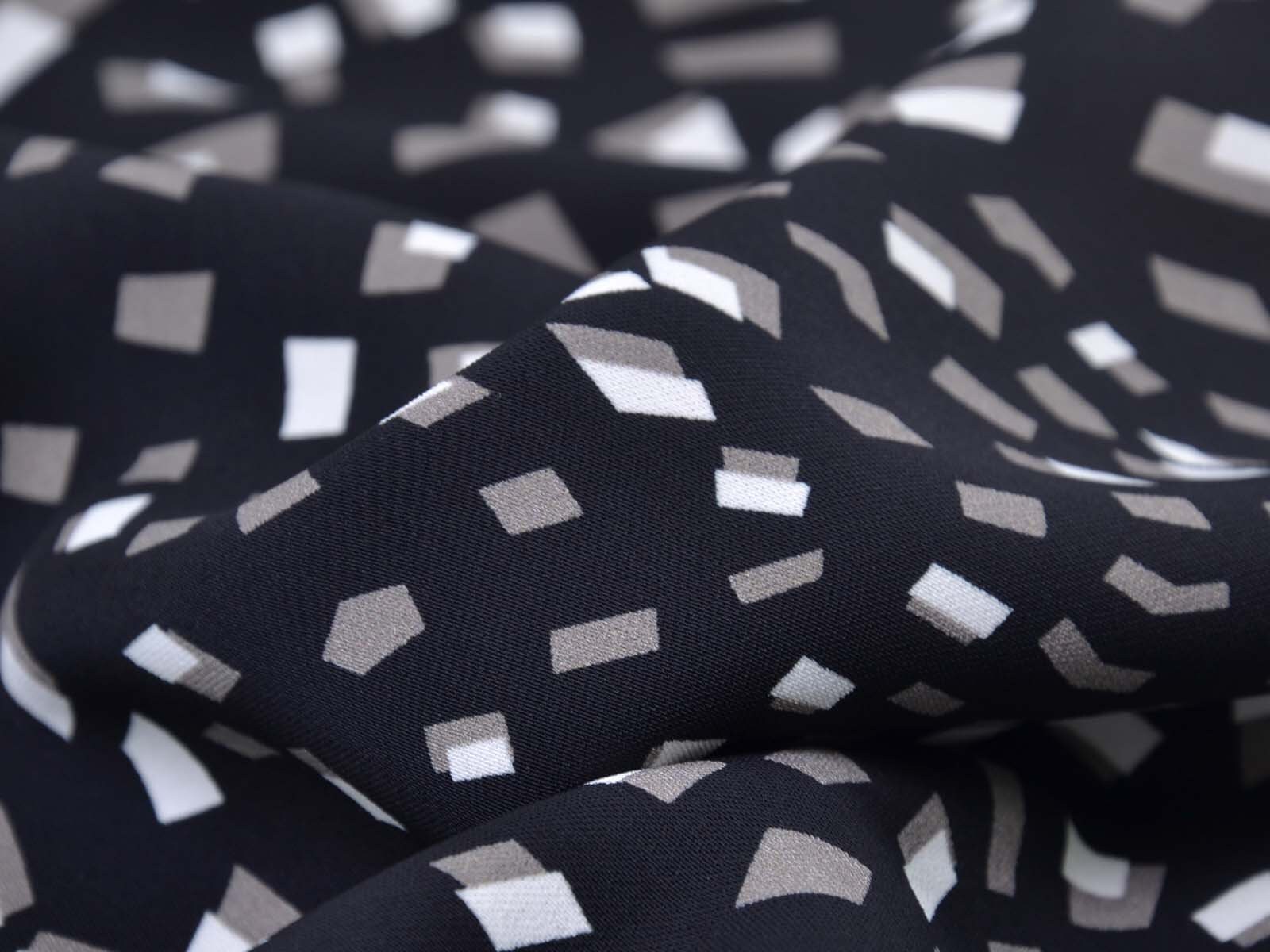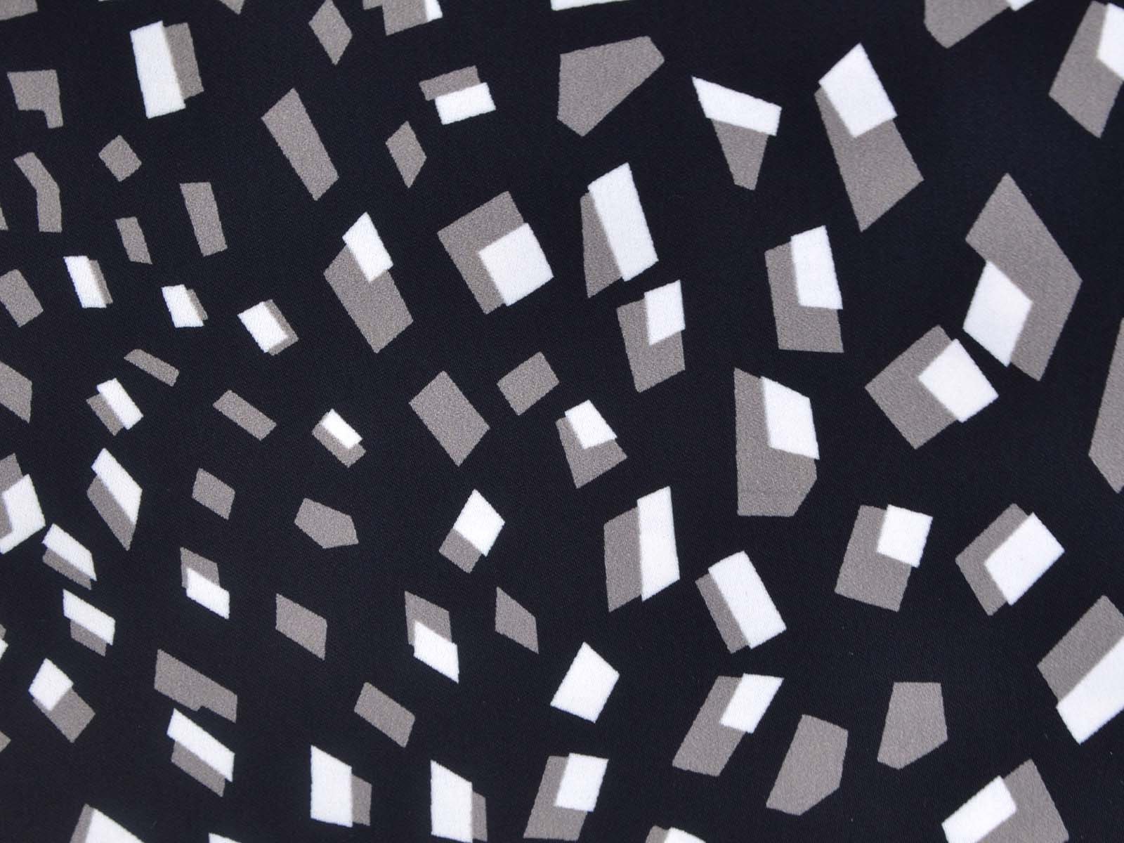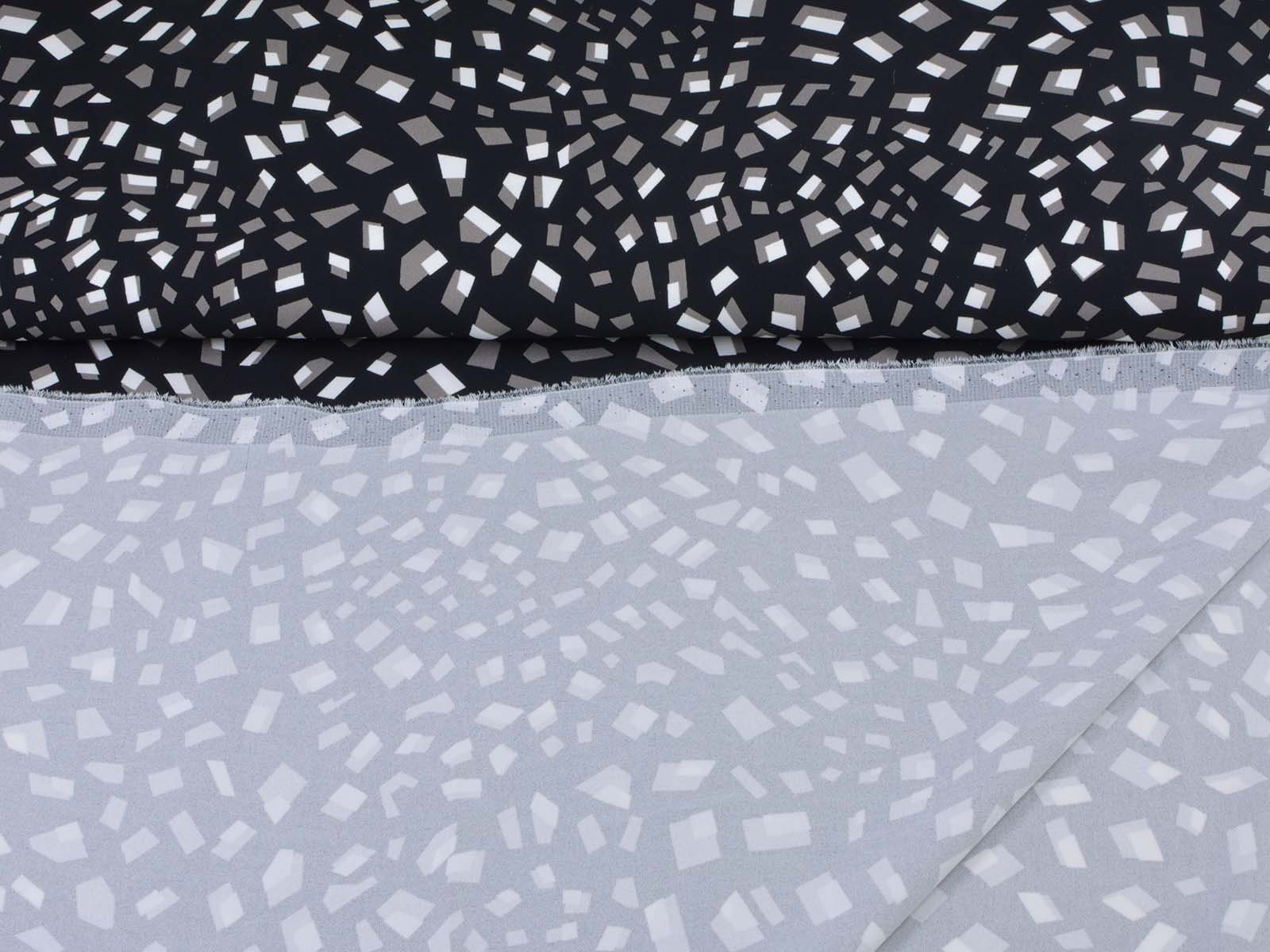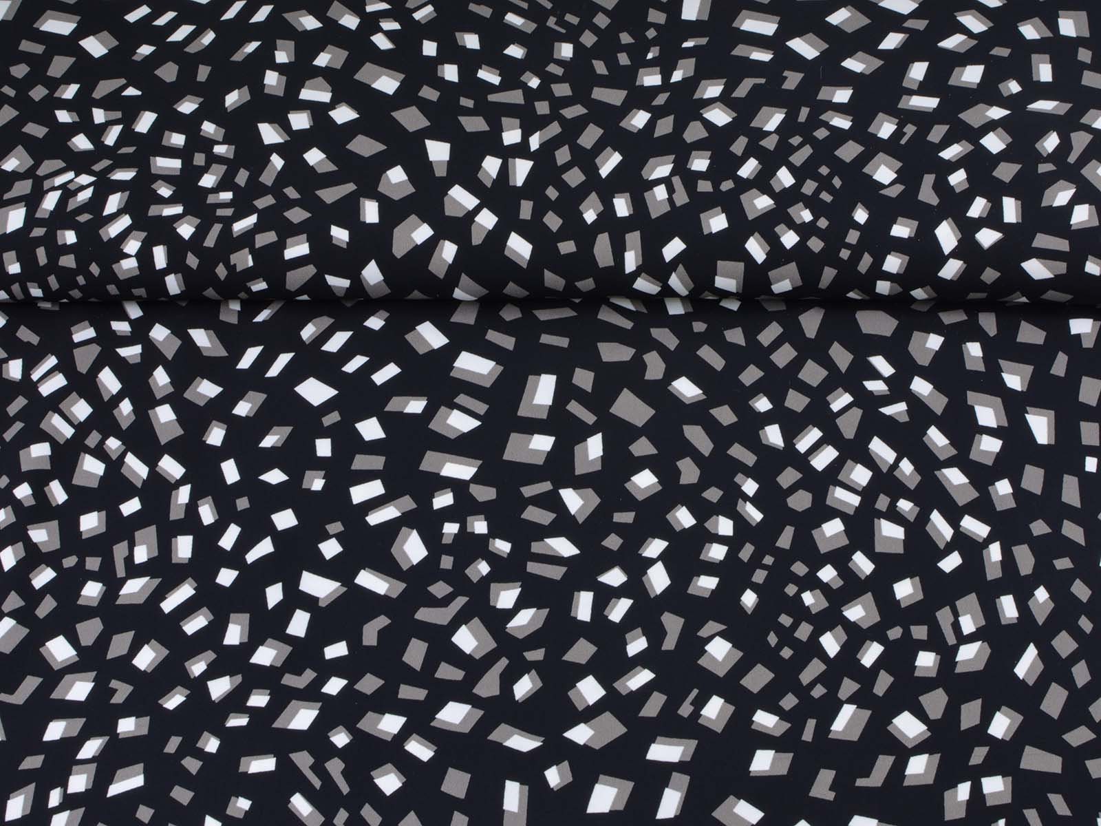 Webware aus Polyester mit Rechtecken in schwarz, beige und weiß. Der Stoff ist dünn, aber schwerer und hat einen fließenden Fall. Nähe dir daraus Blusen, Kleider, Röcke, Sommerhosen und vieles mehr.
